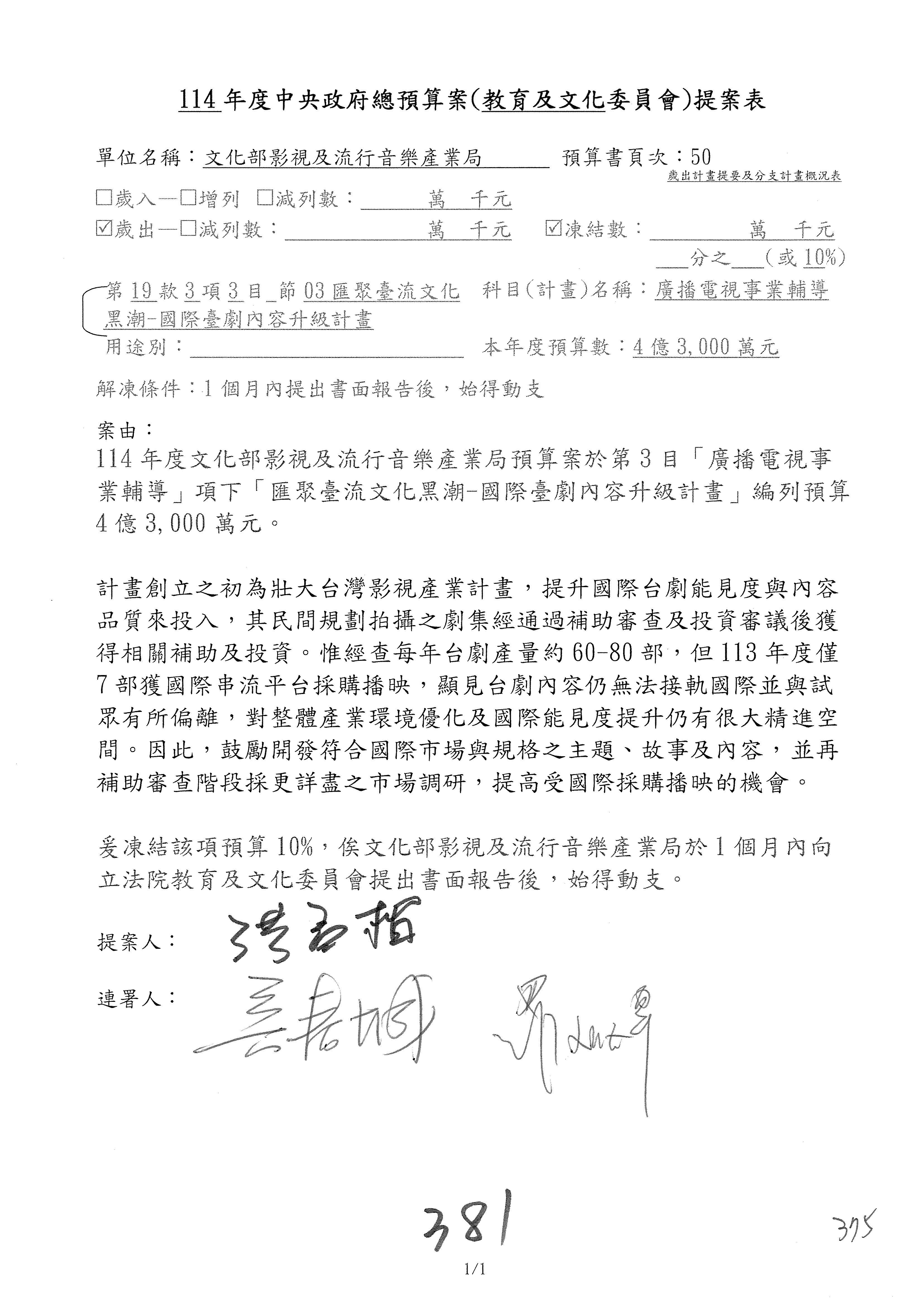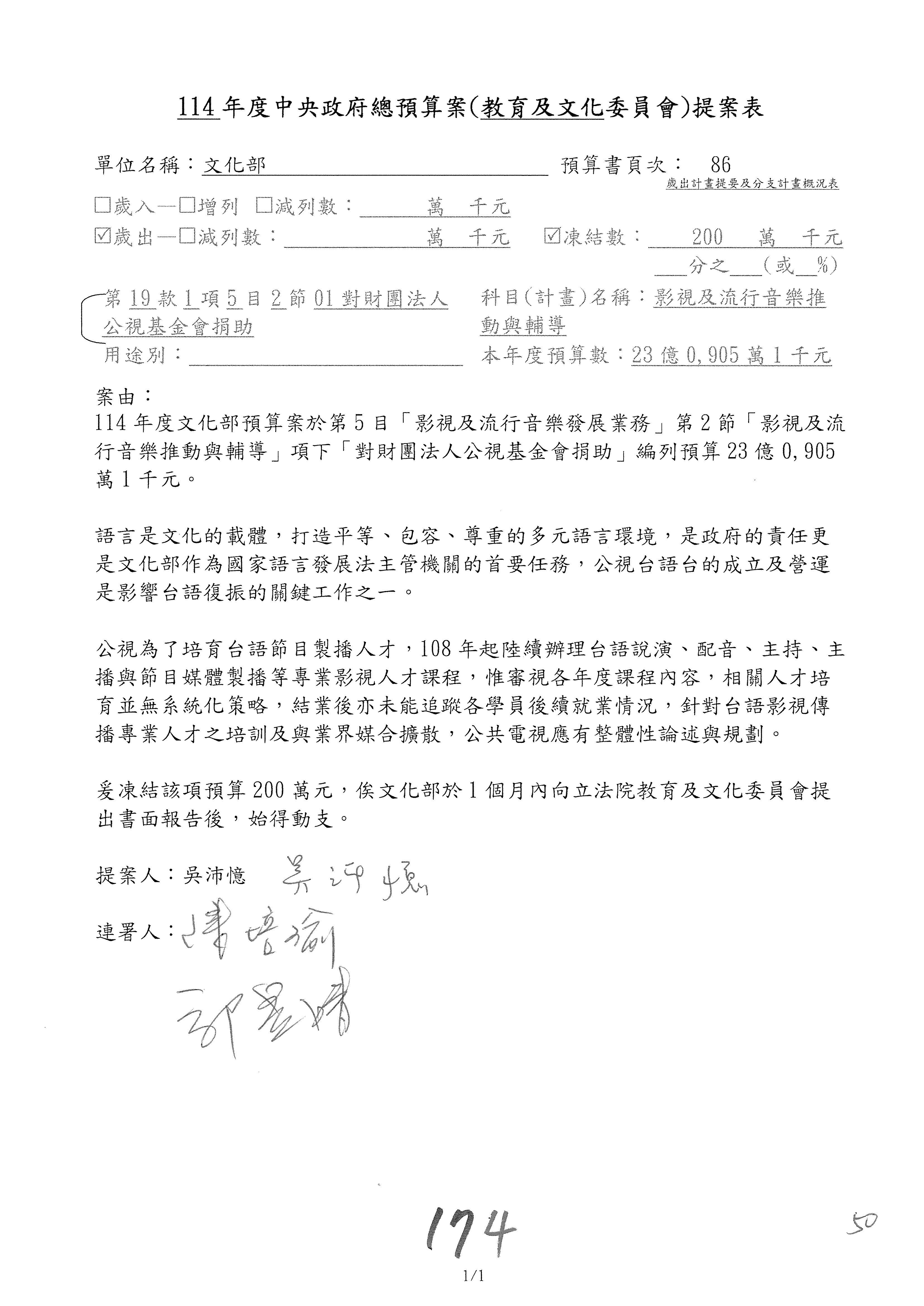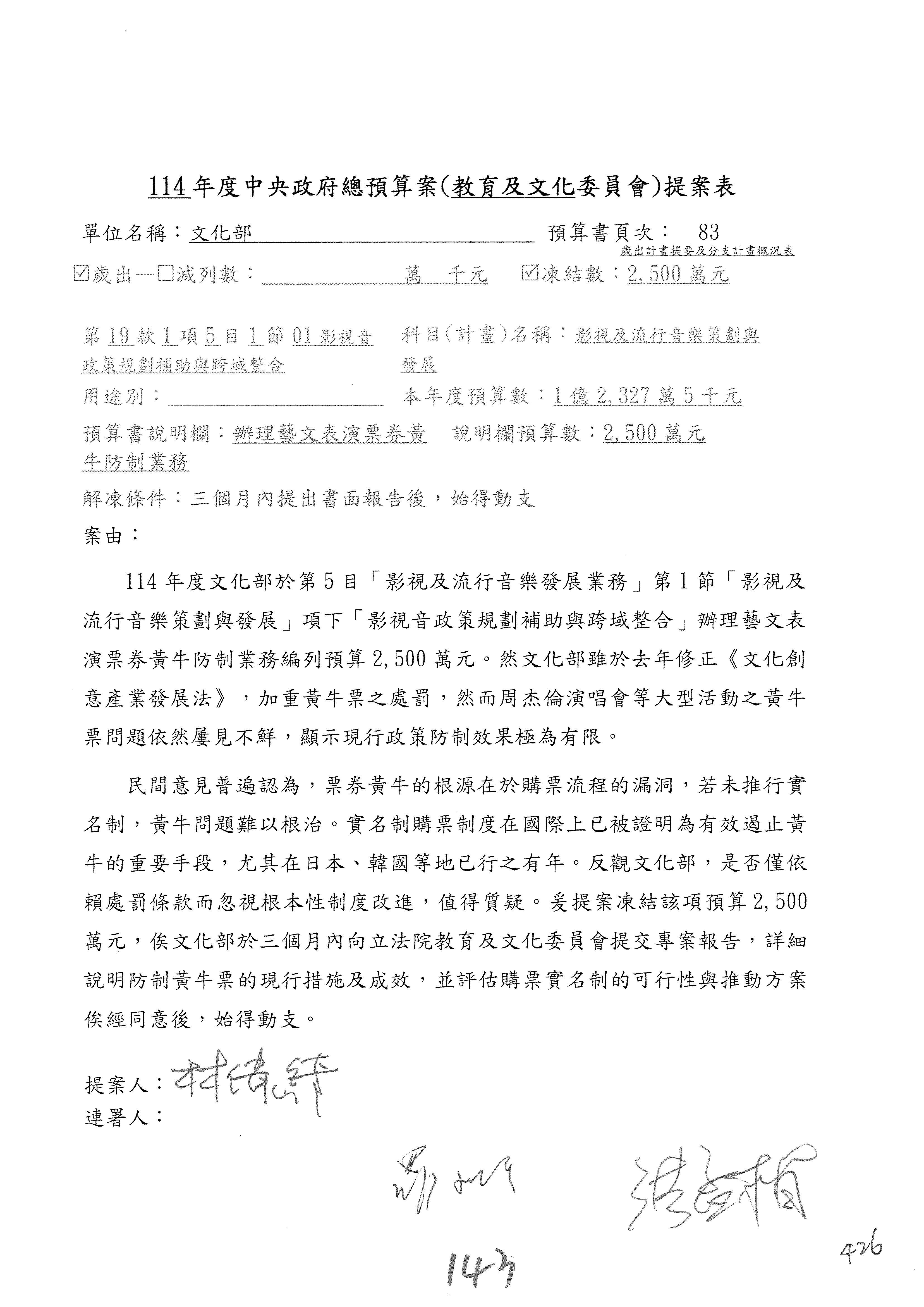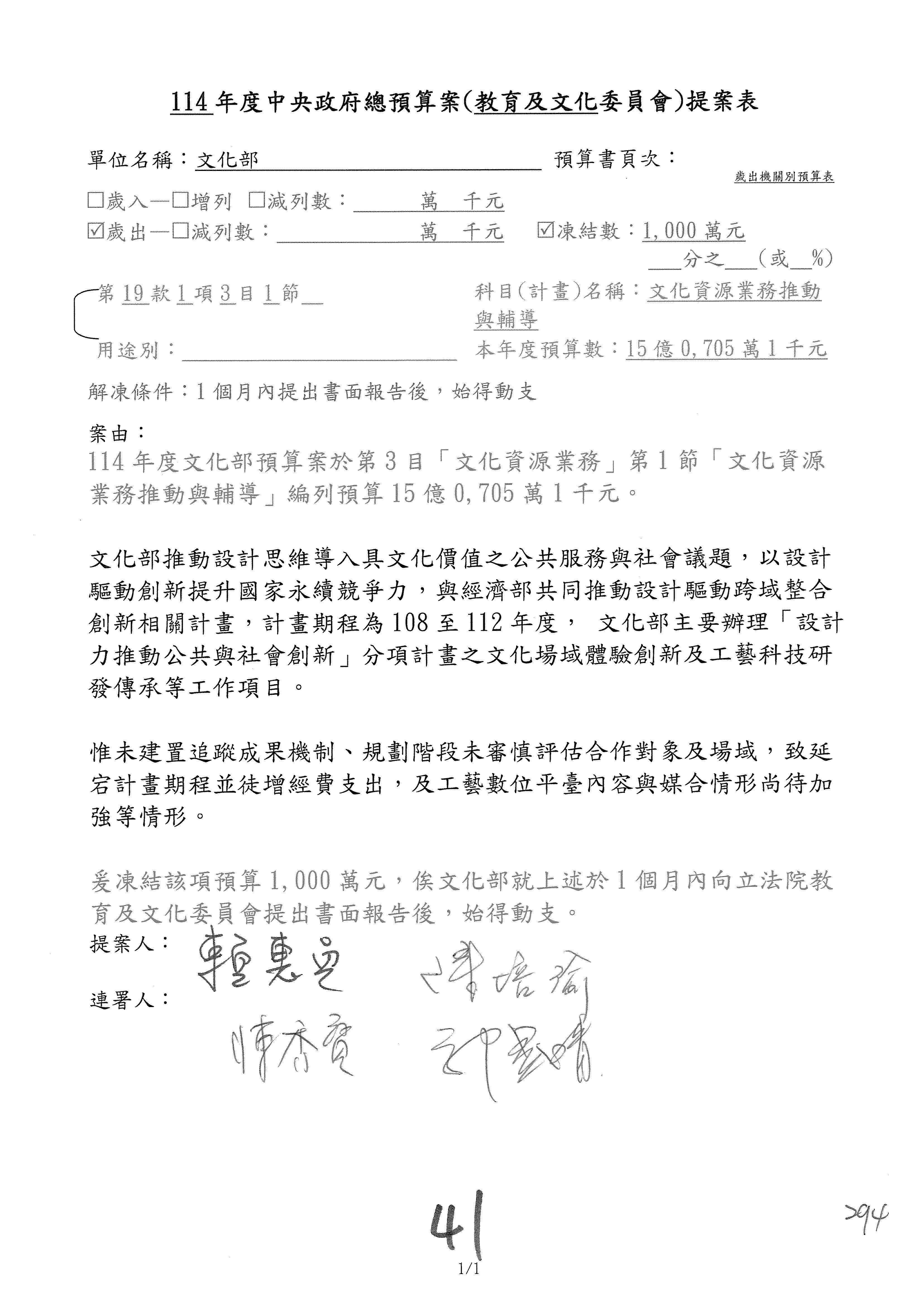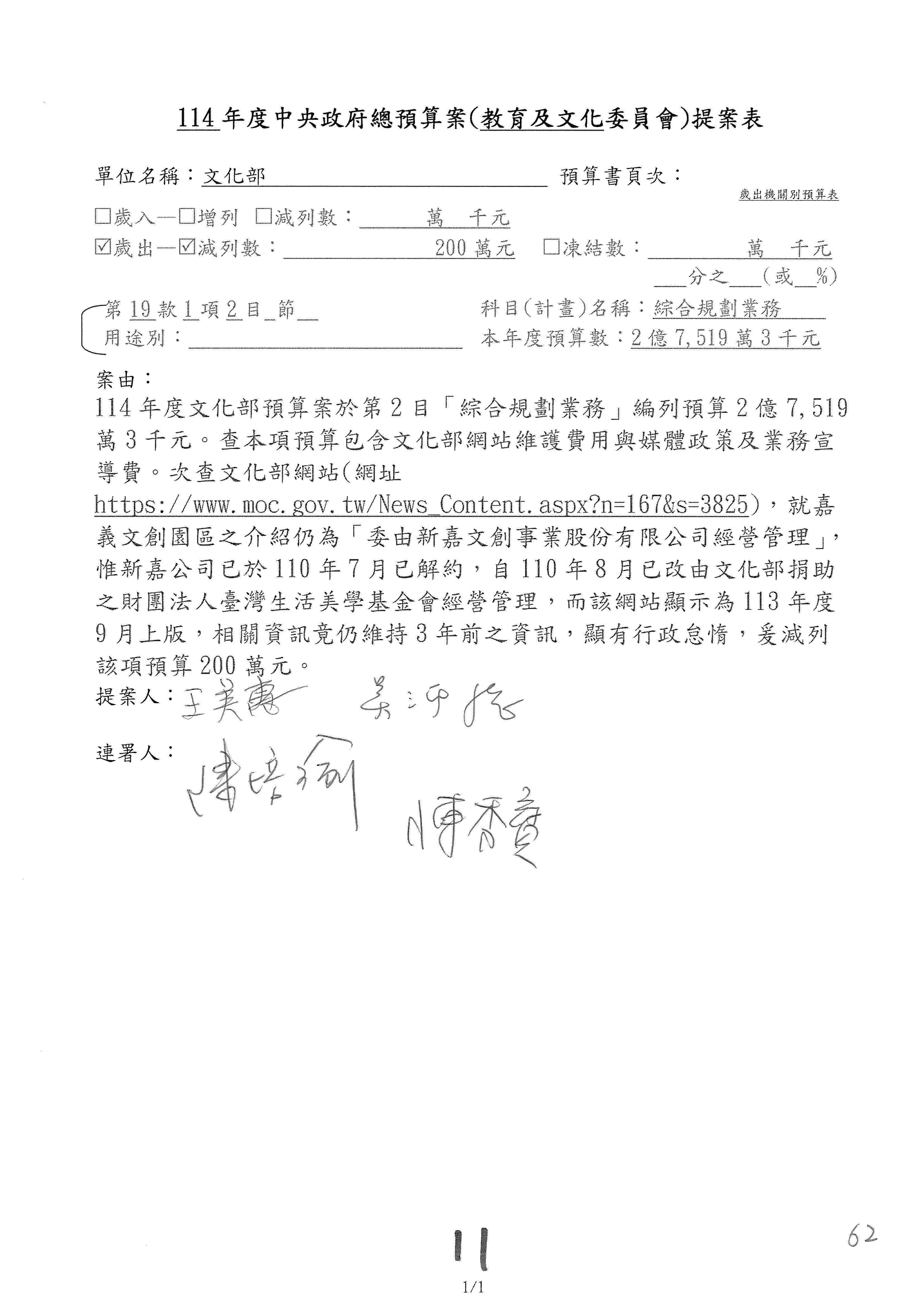 提案人:吳沛憶 羅廷瑋 柯志恩 萬美玲 陳秀寳 葉元之 林倩綺 洪孟楷 徐巧芯