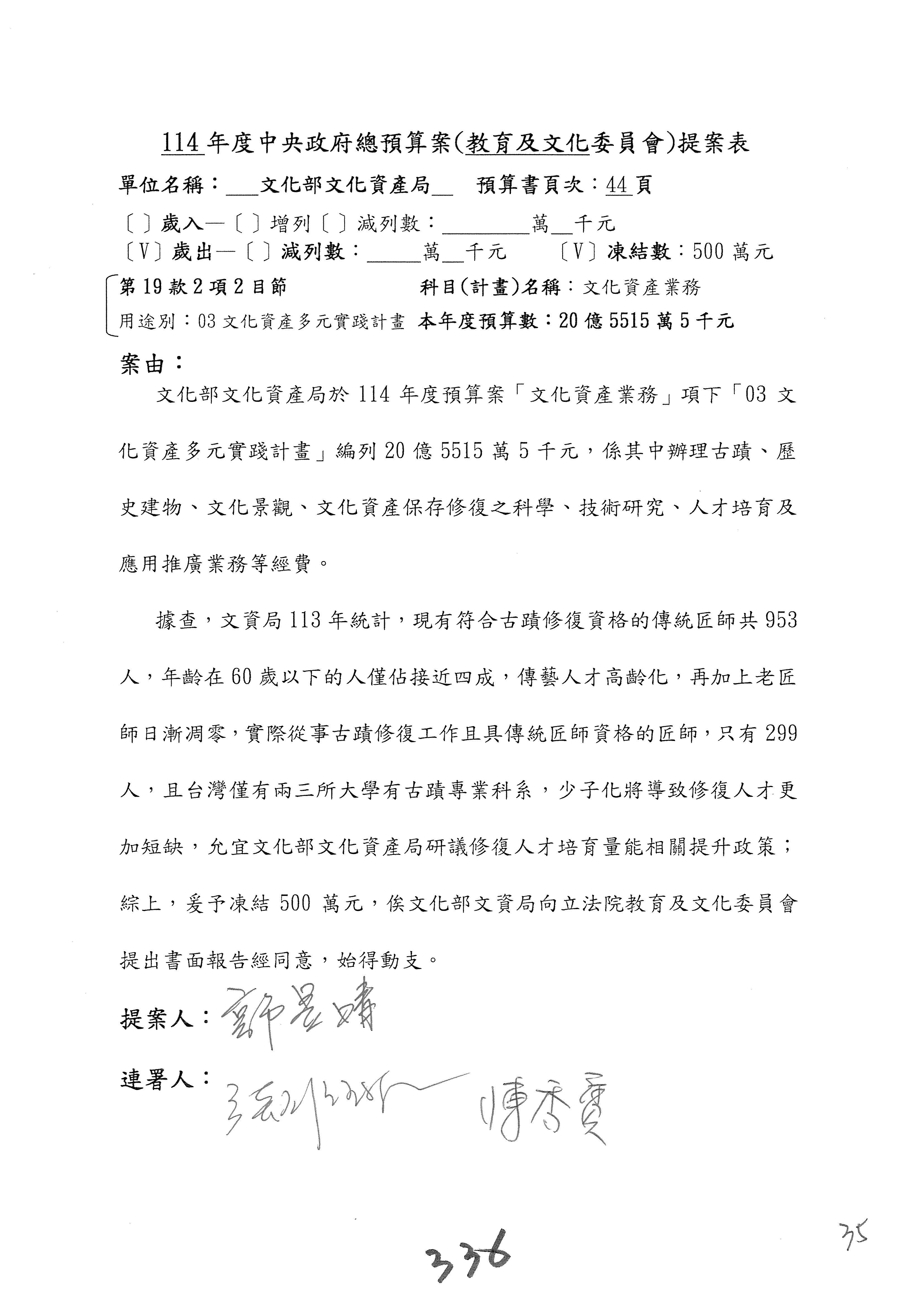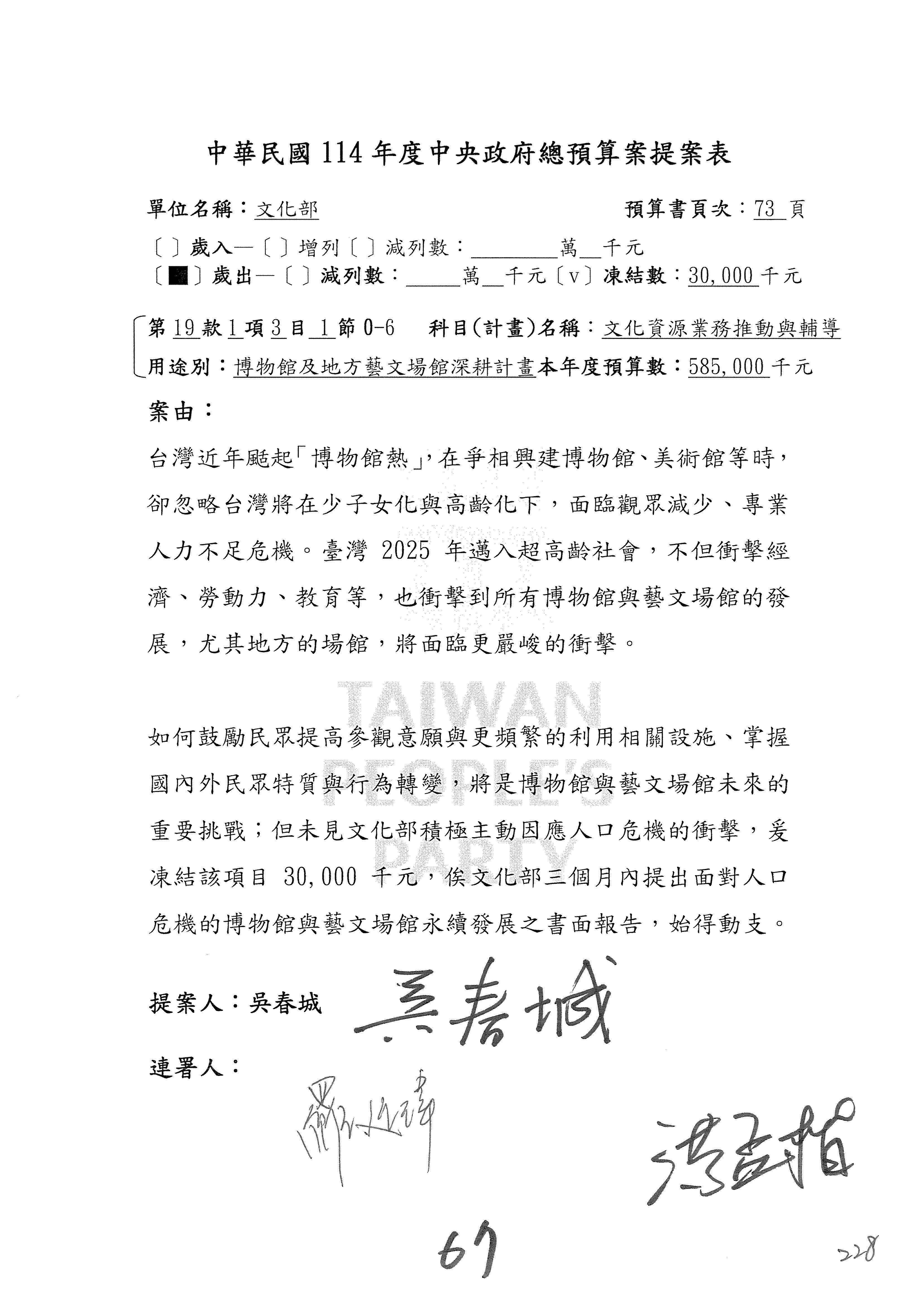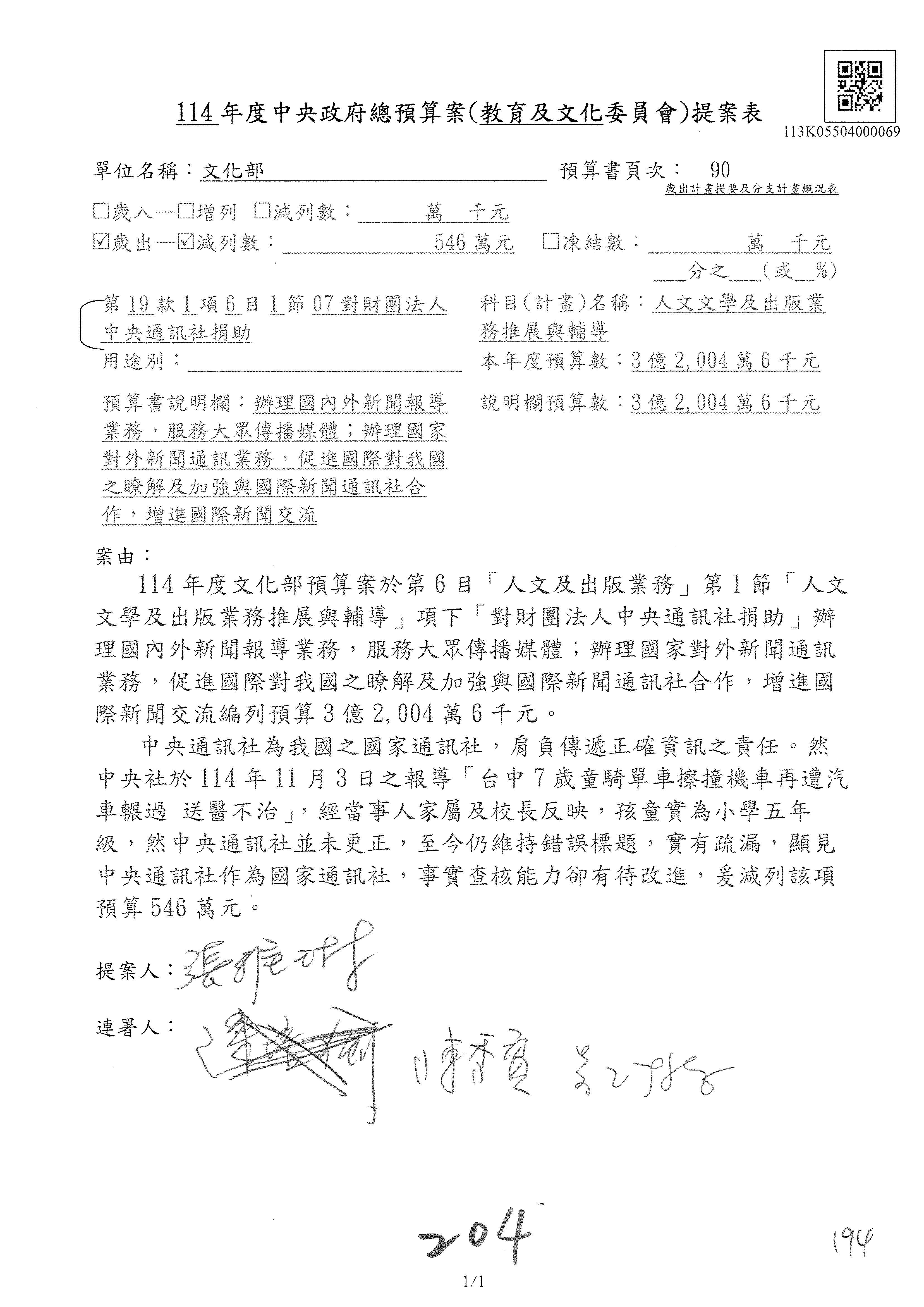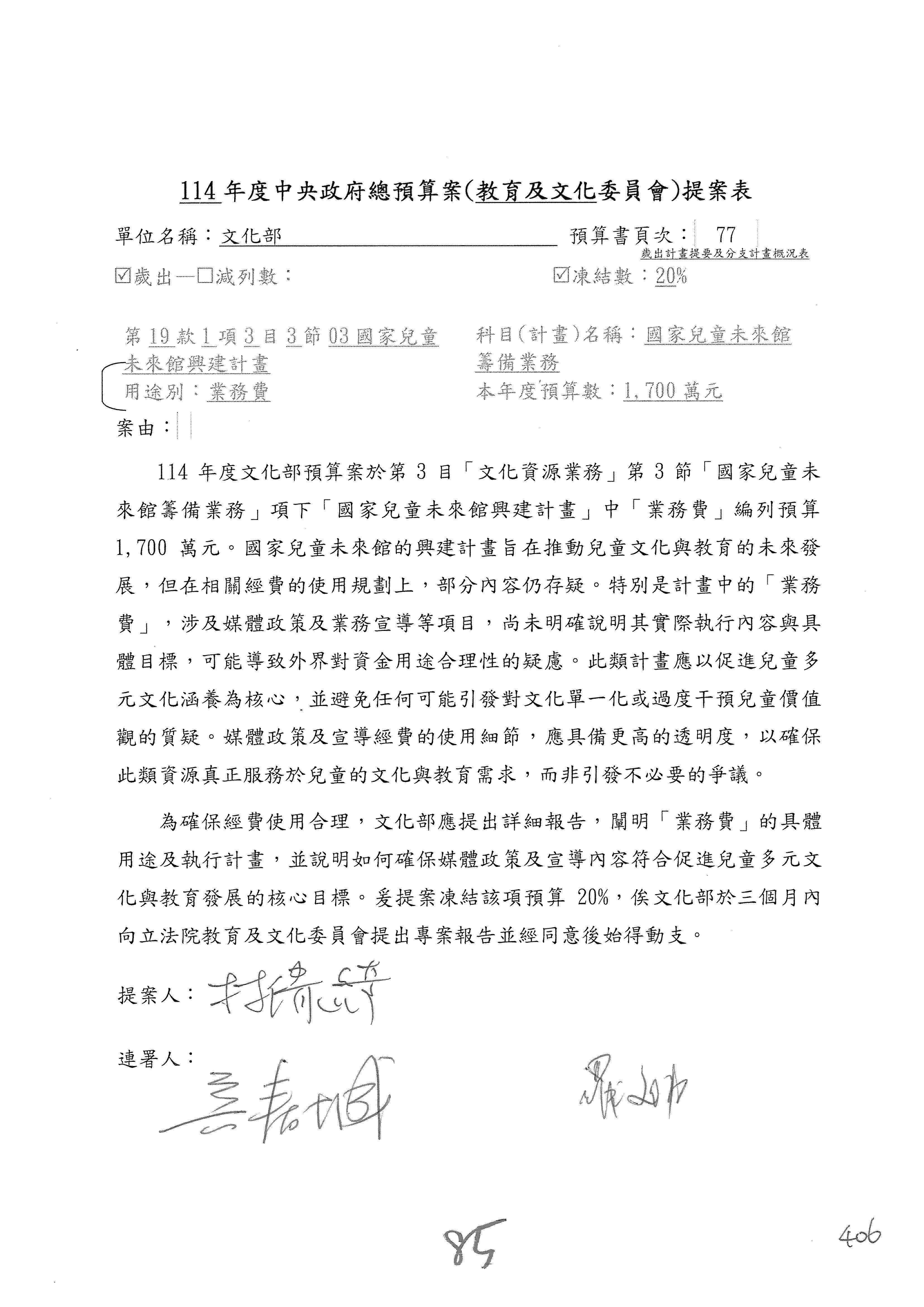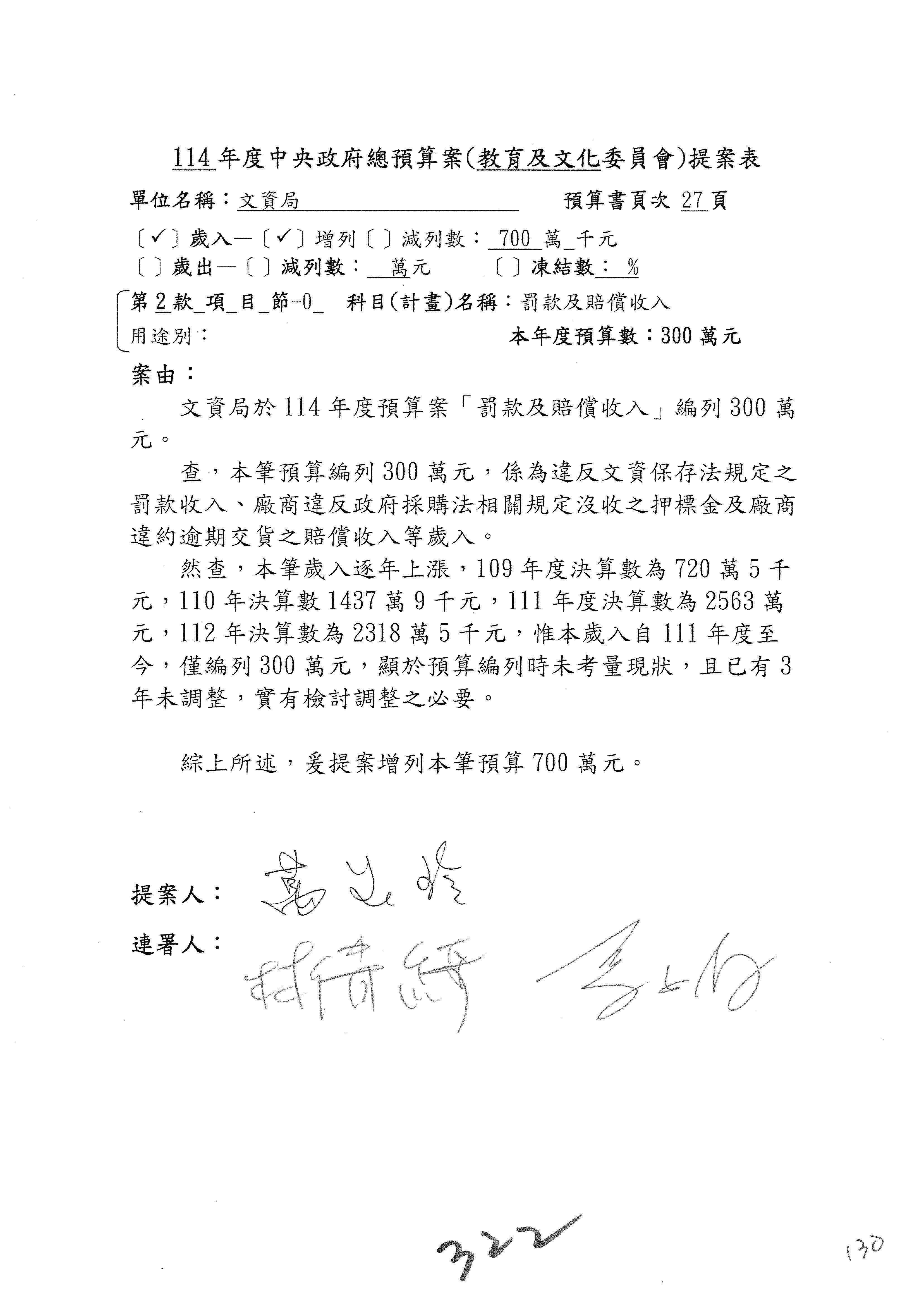 提案人:吳沛憶 羅廷瑋 柯志恩 萬美玲 陳秀寳 葉元之 林倩綺 洪孟楷 徐巧芯