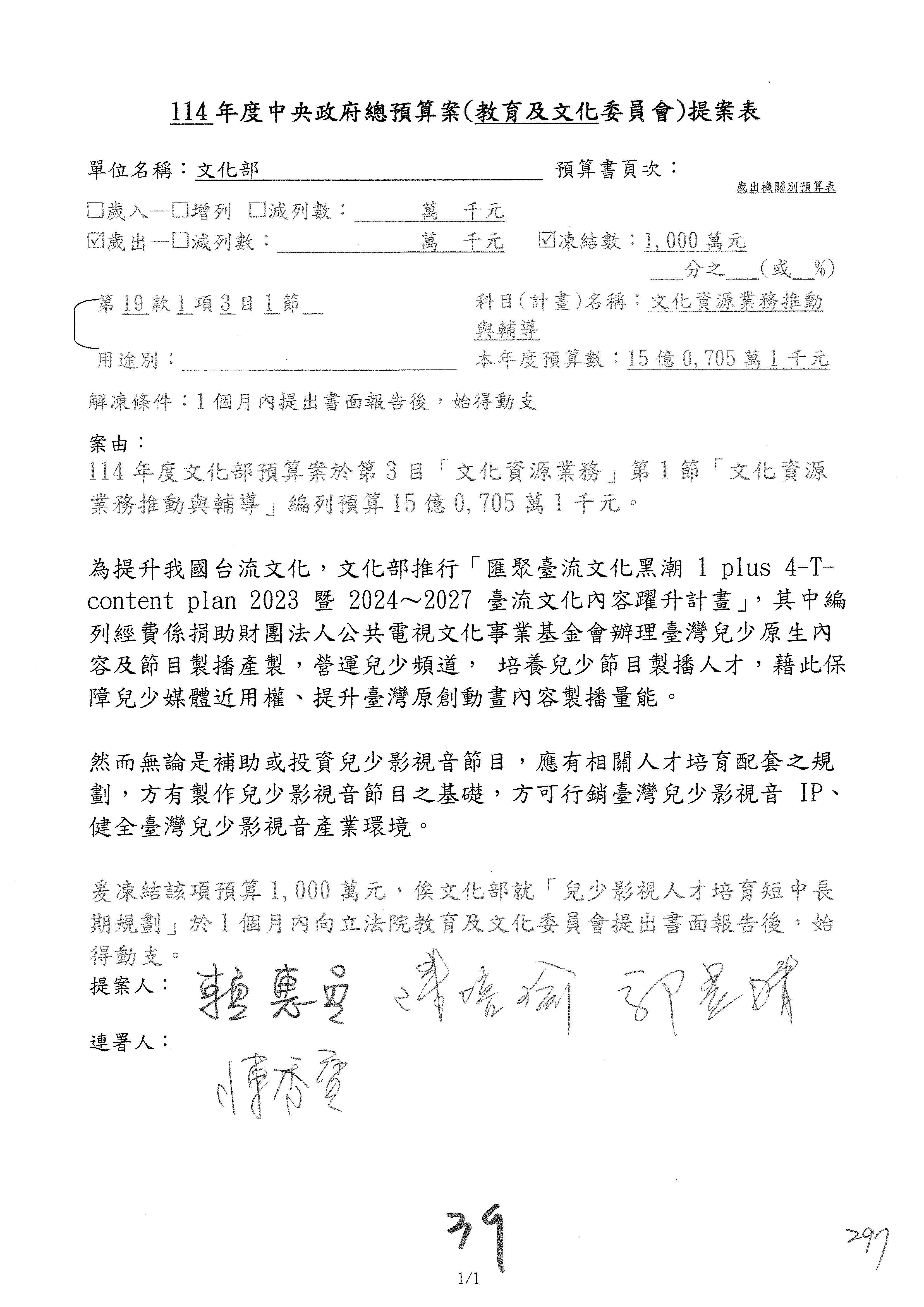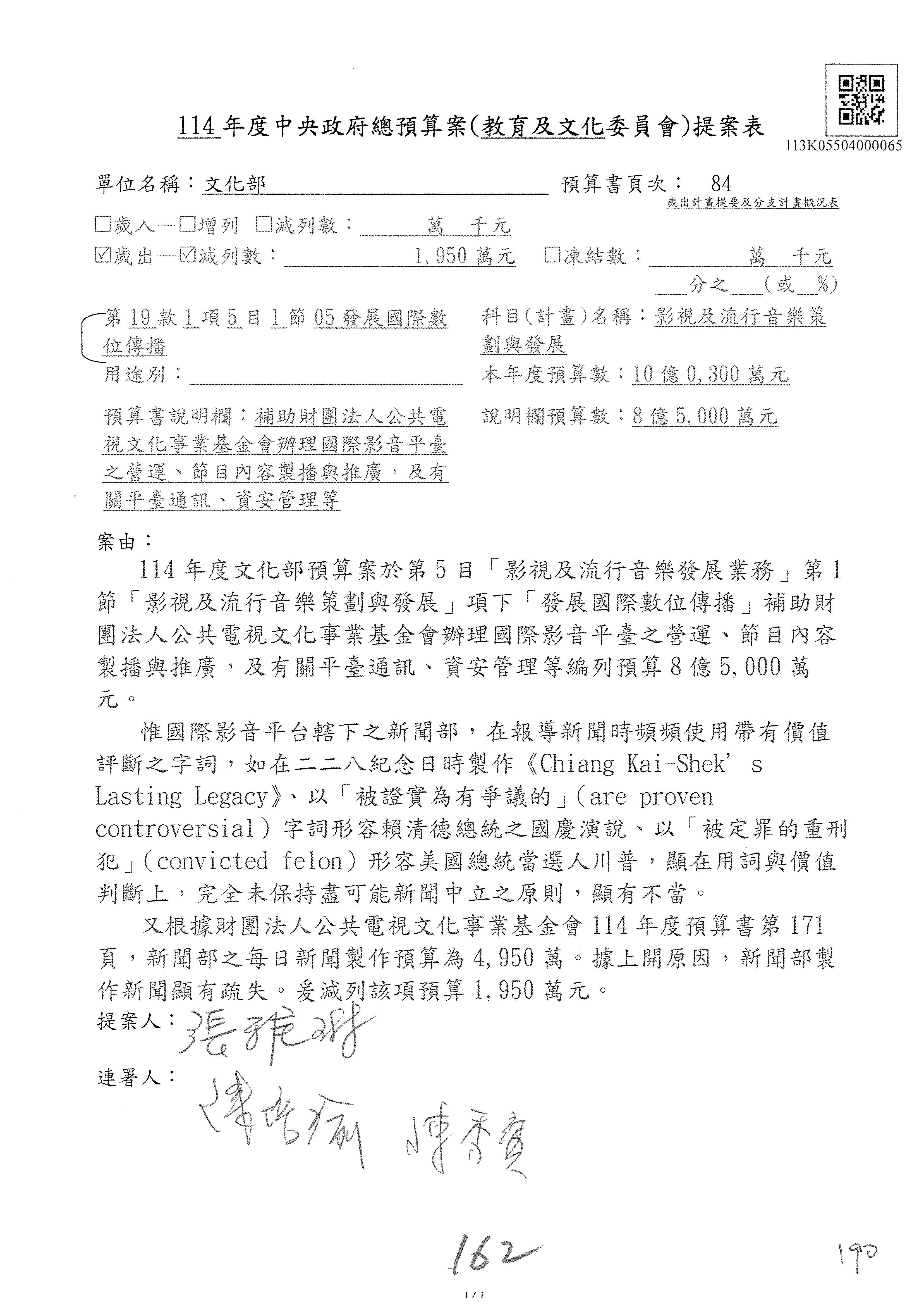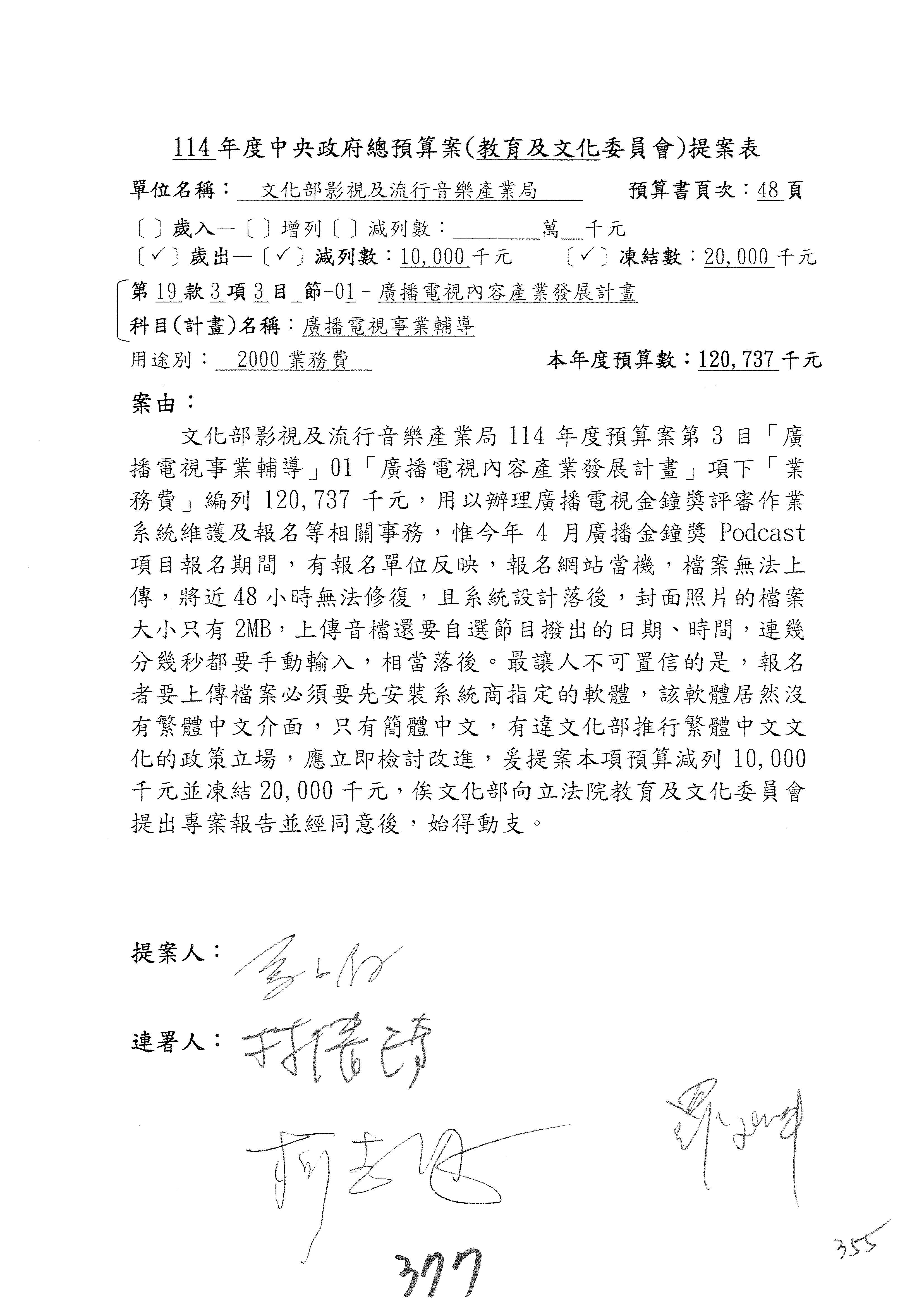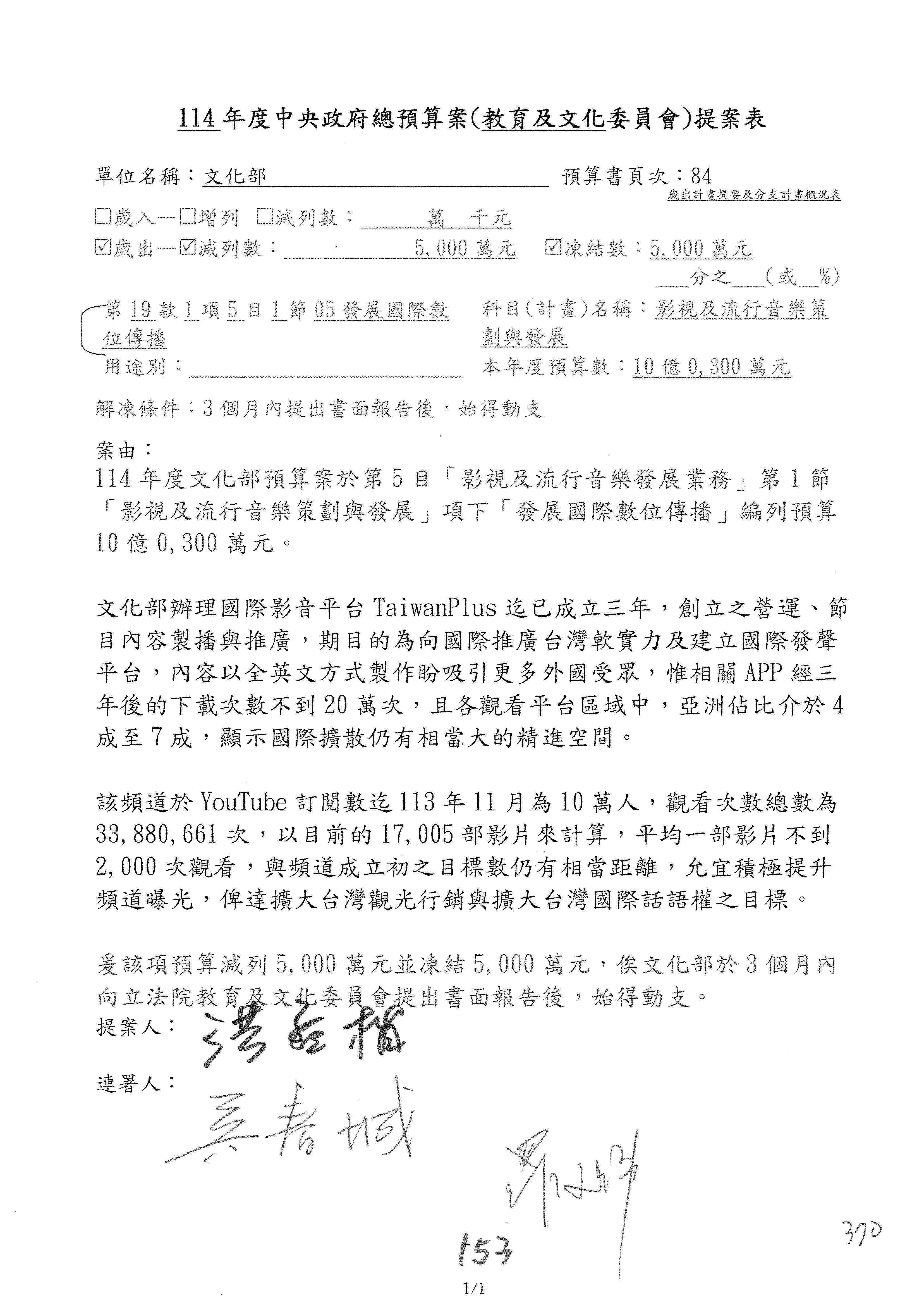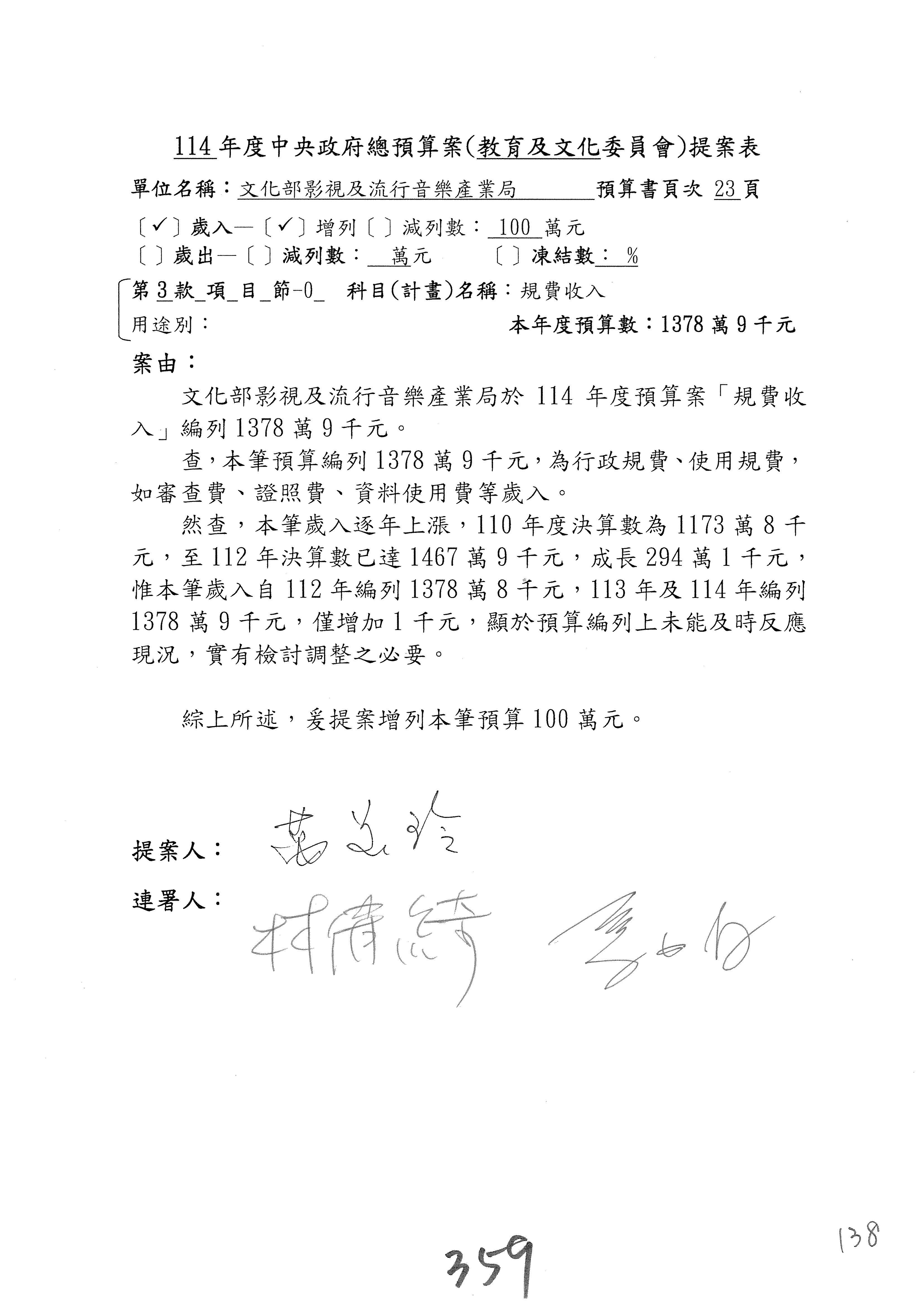 提案人:吳沛憶 羅廷瑋 柯志恩 萬美玲 陳秀寳 葉元之 林倩綺 洪孟楷 徐巧芯
