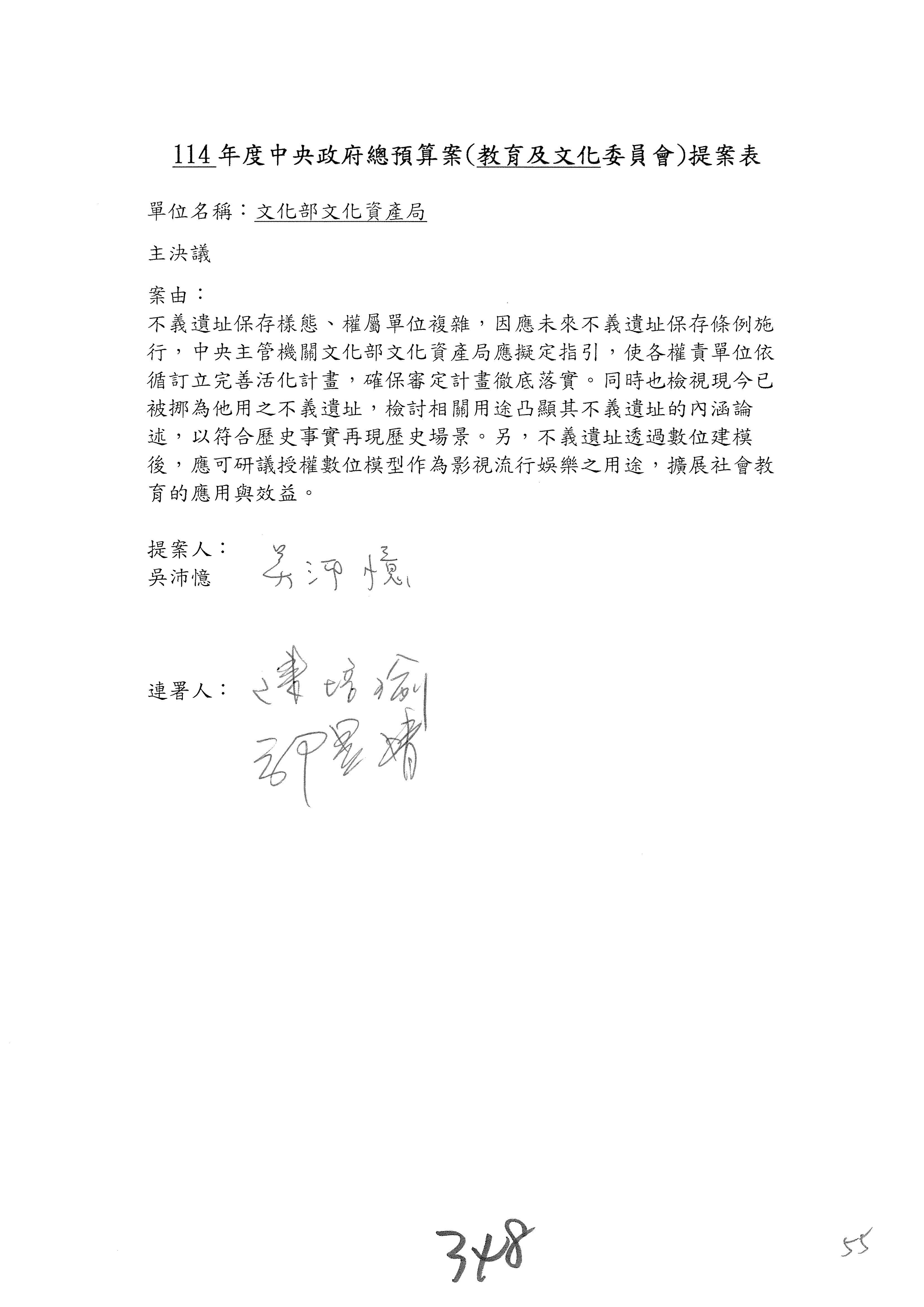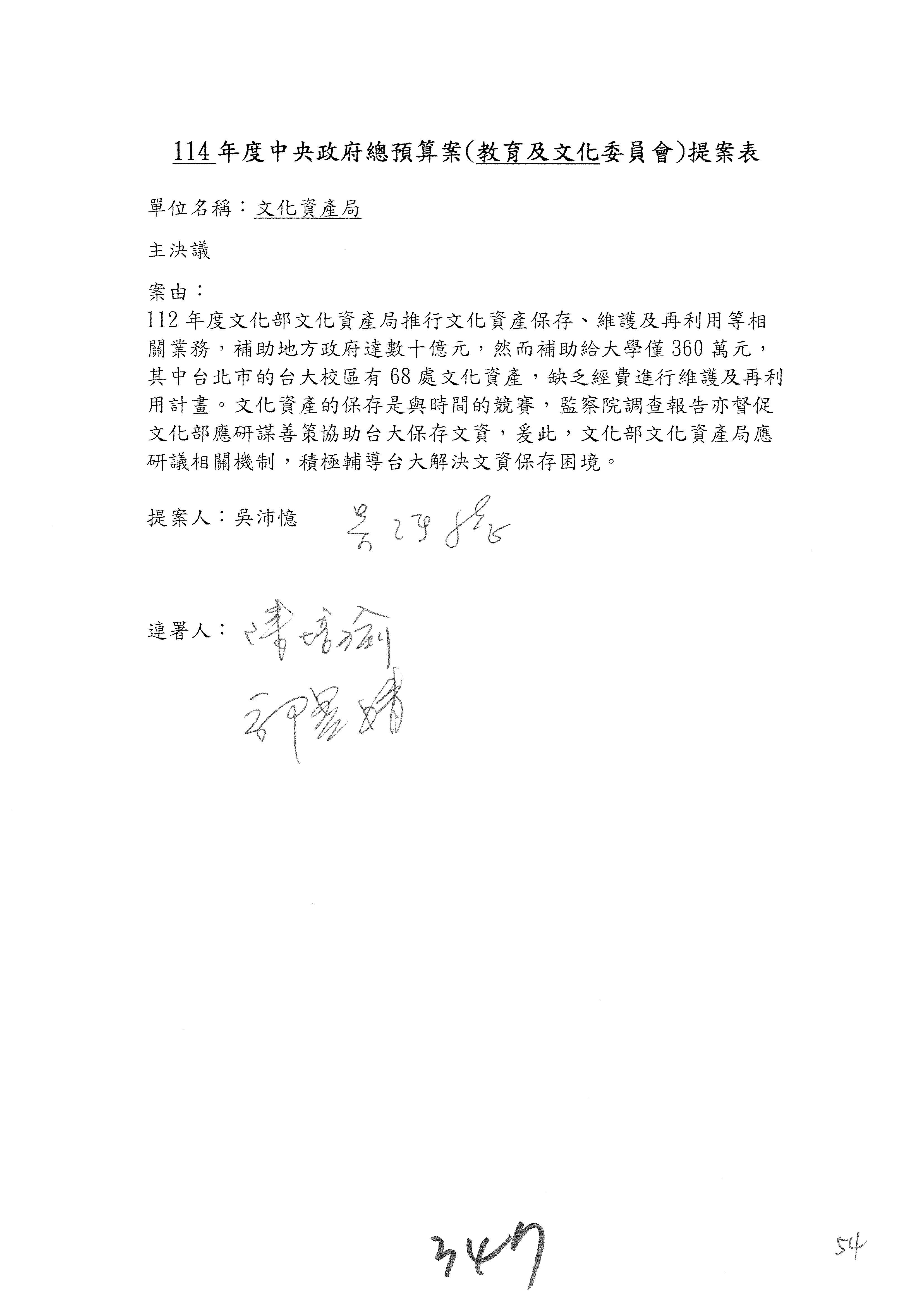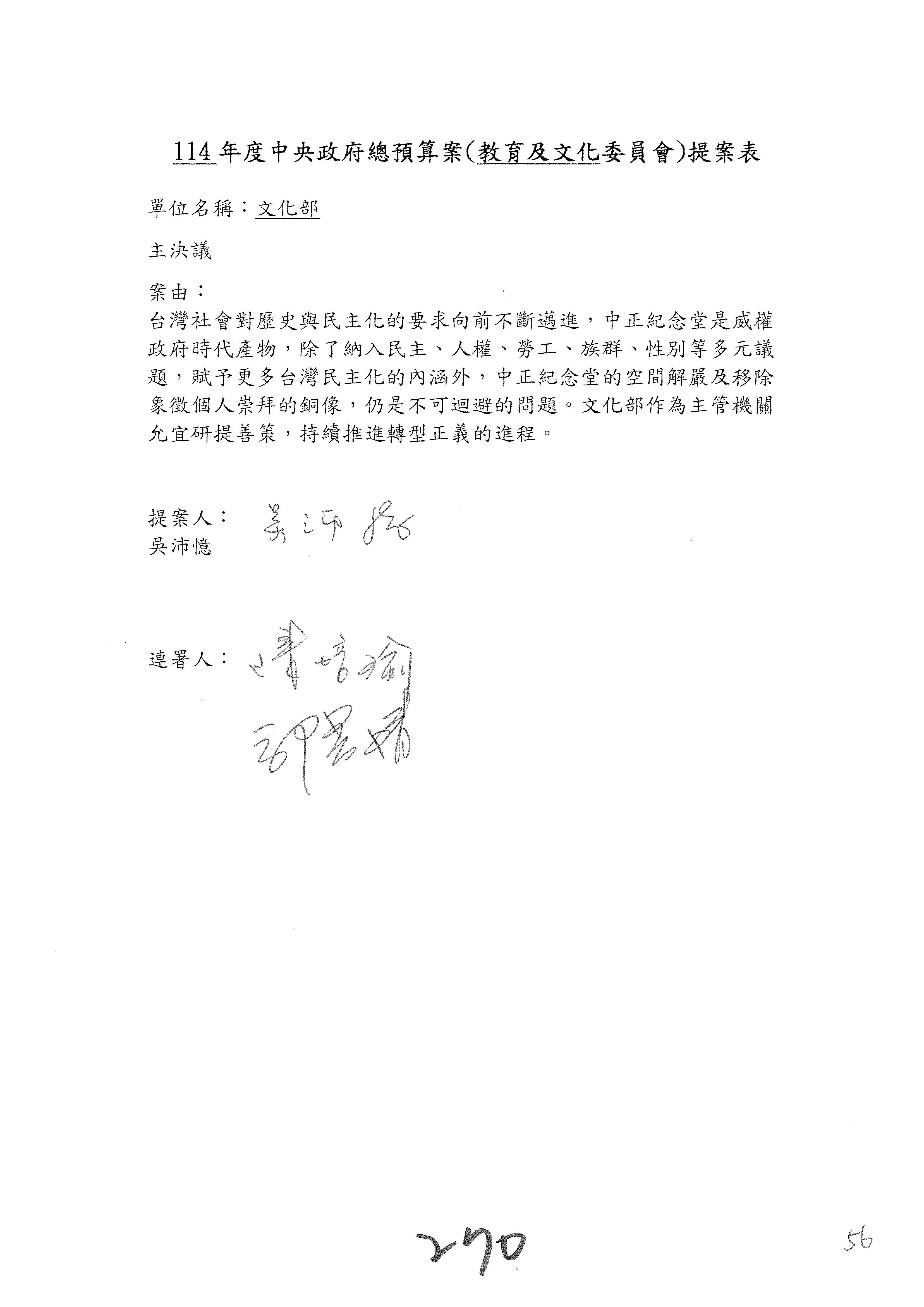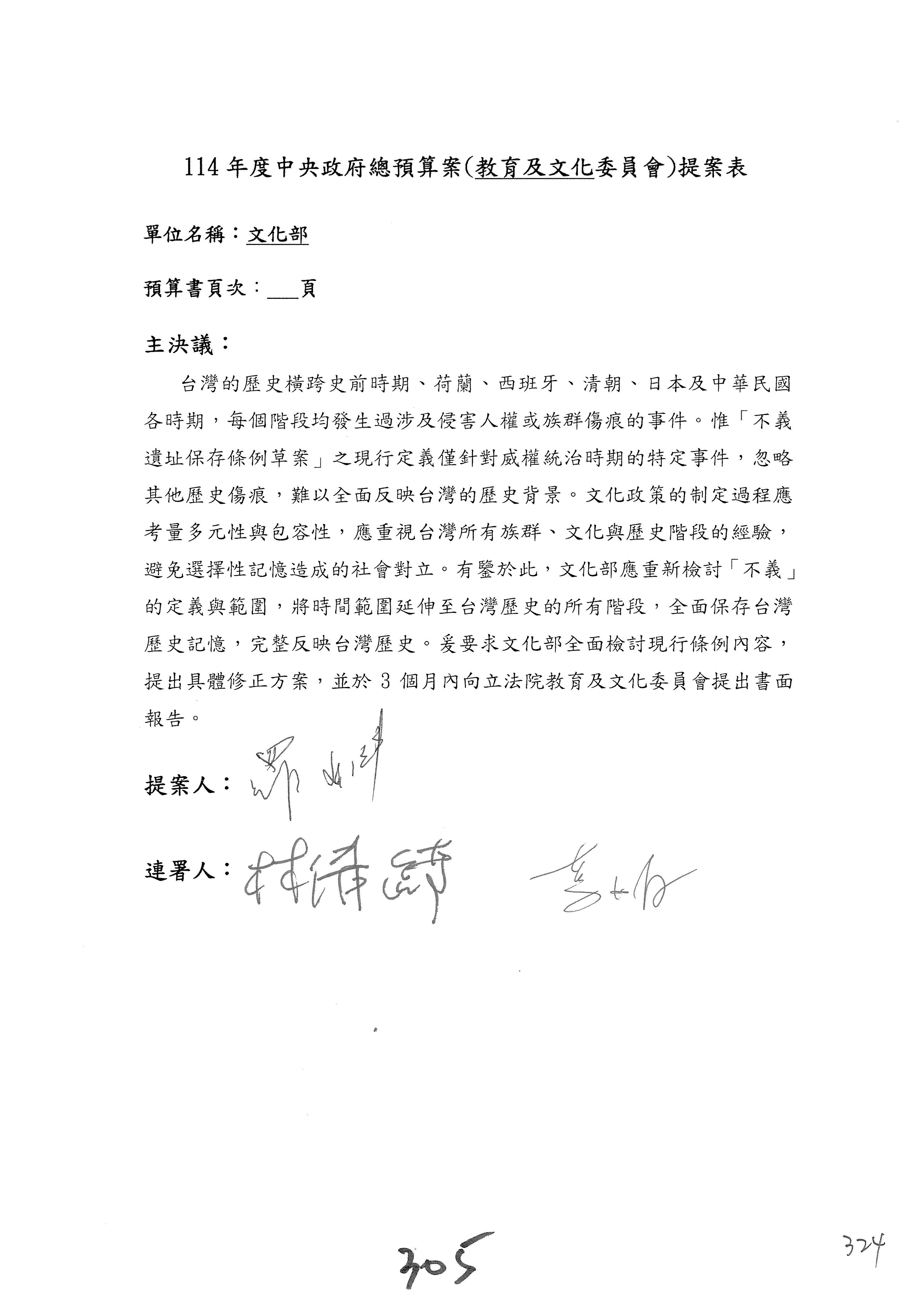 提案人:吳沛憶 張雅琳 陳培瑜 葉元之 萬美玲 陳秀寳 羅廷瑋 林倩綺 洪孟楷 吳春城 郭昱晴 林宜瑾 葛如鈞 徐巧芯