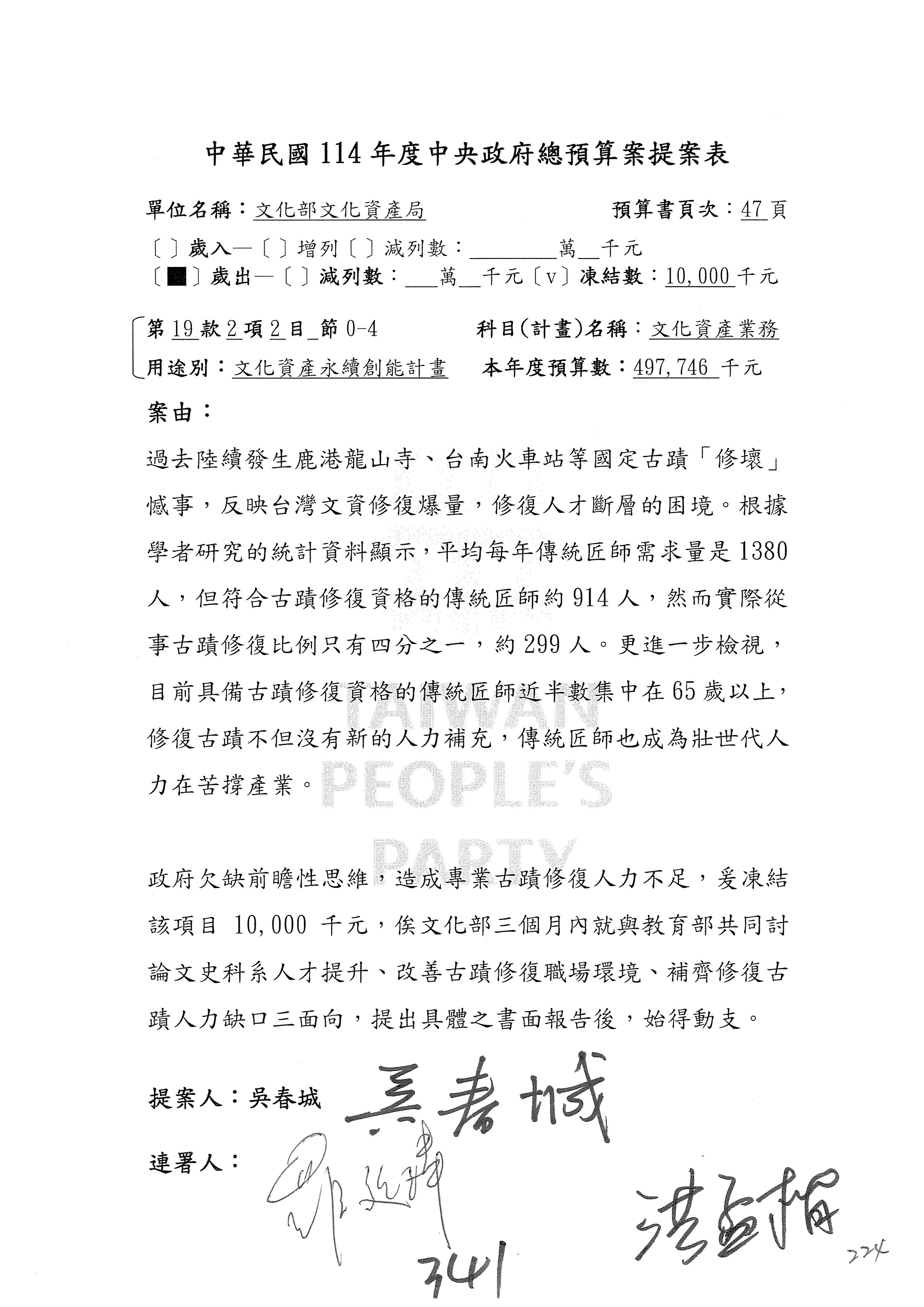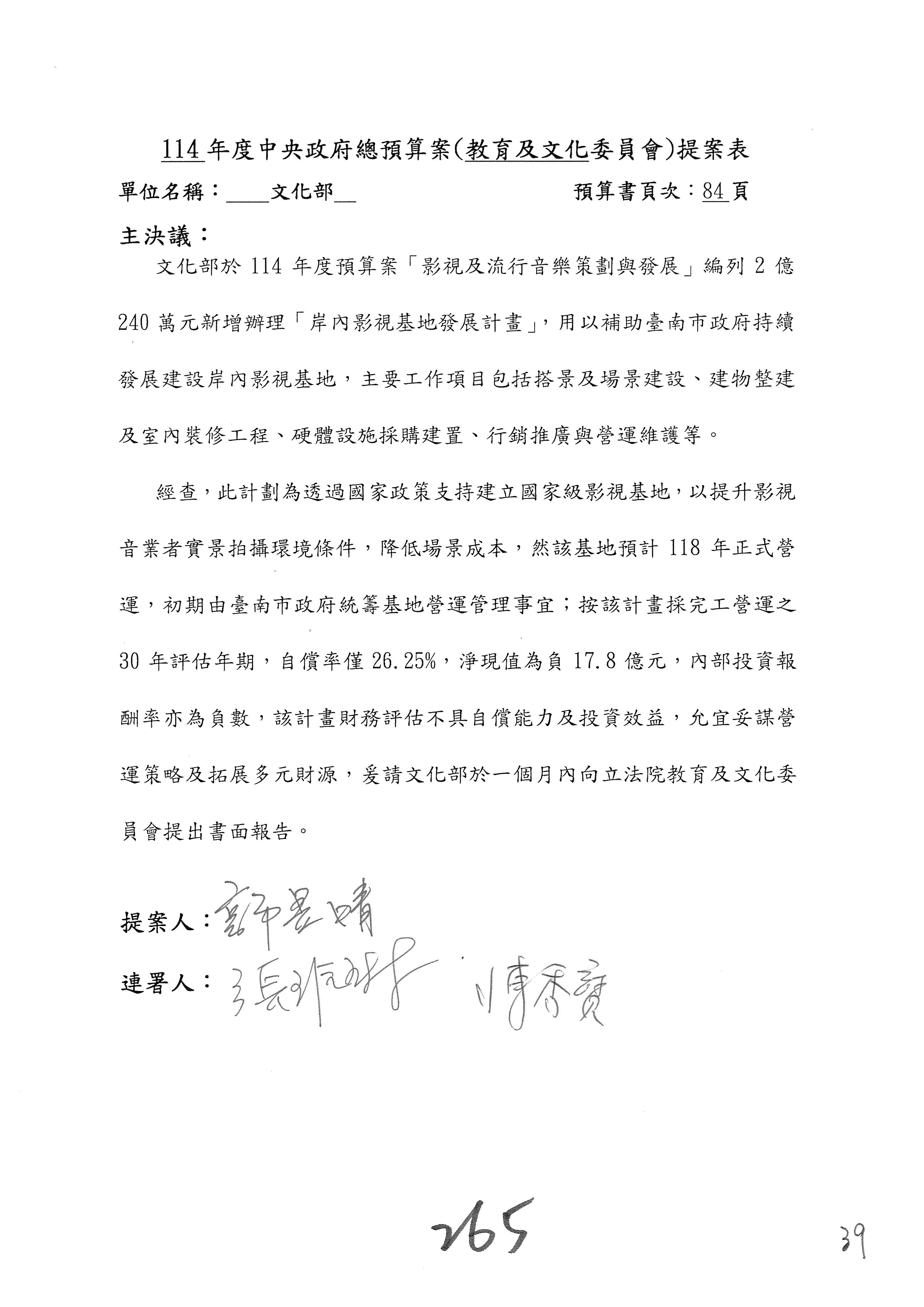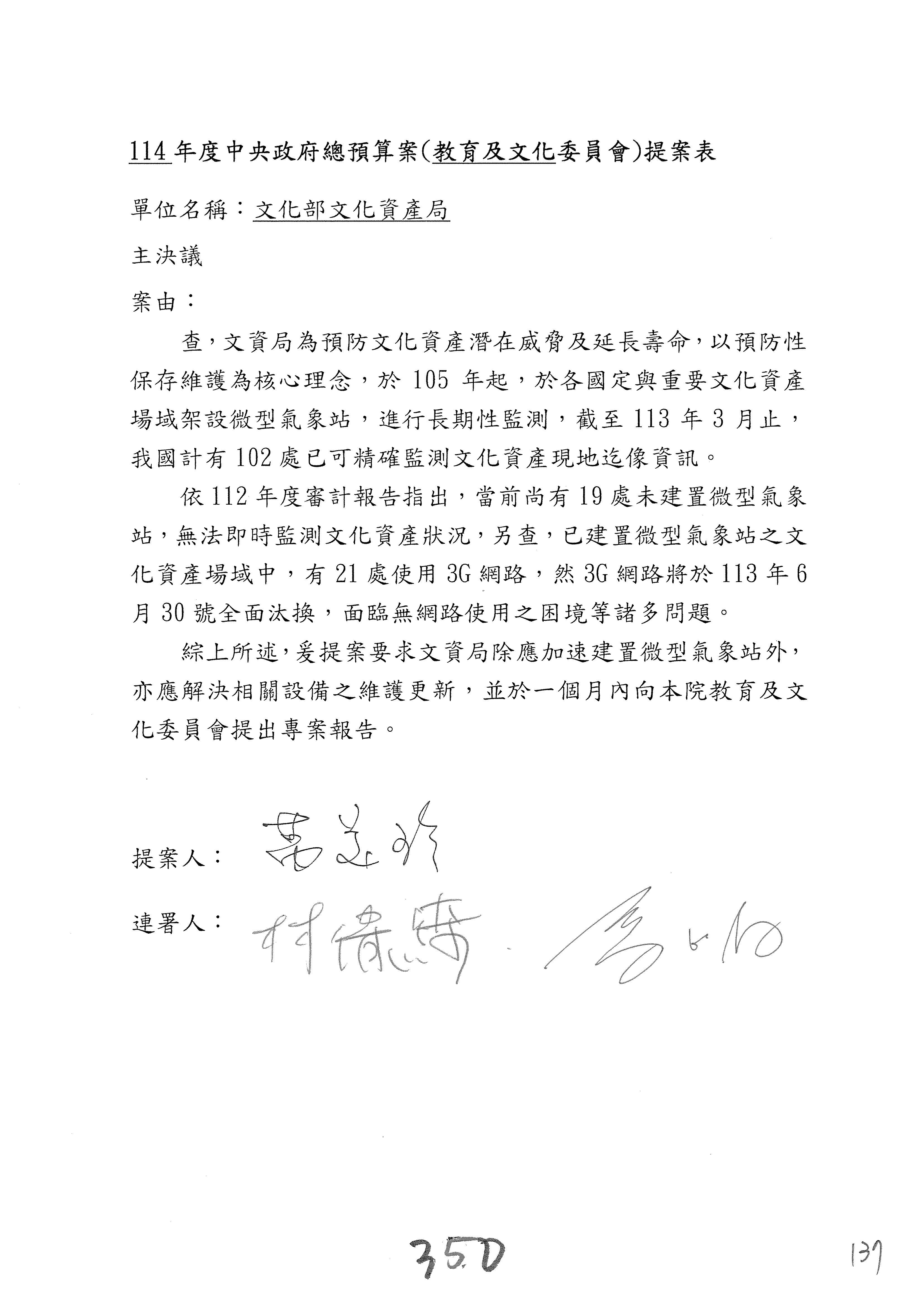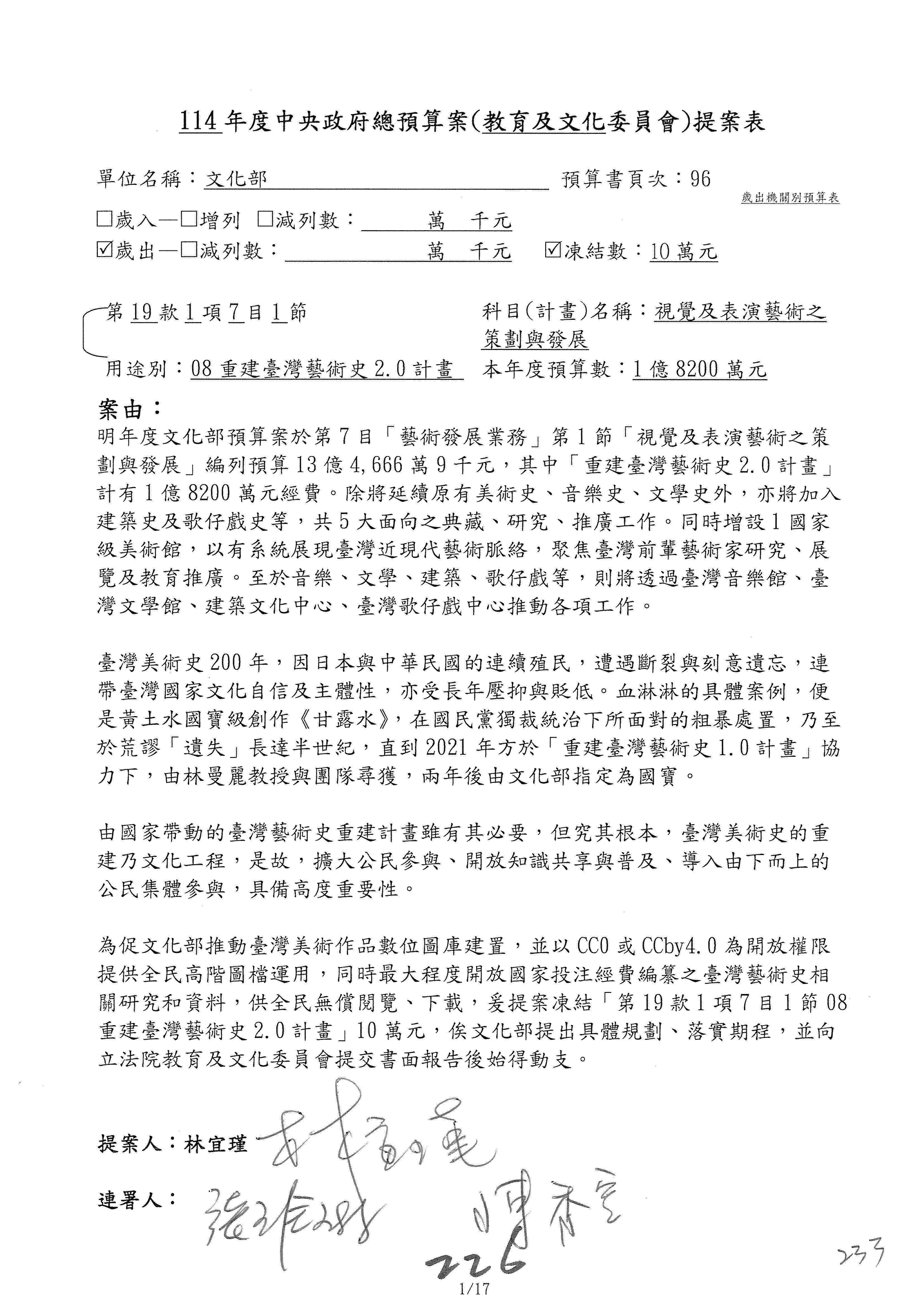 提案人:吳沛憶 張雅琳 陳培瑜 葉元之 萬美玲 陳秀寳 羅廷瑋 林倩綺 洪孟楷 吳春城 郭昱晴 林宜瑾 葛如鈞 徐巧芯