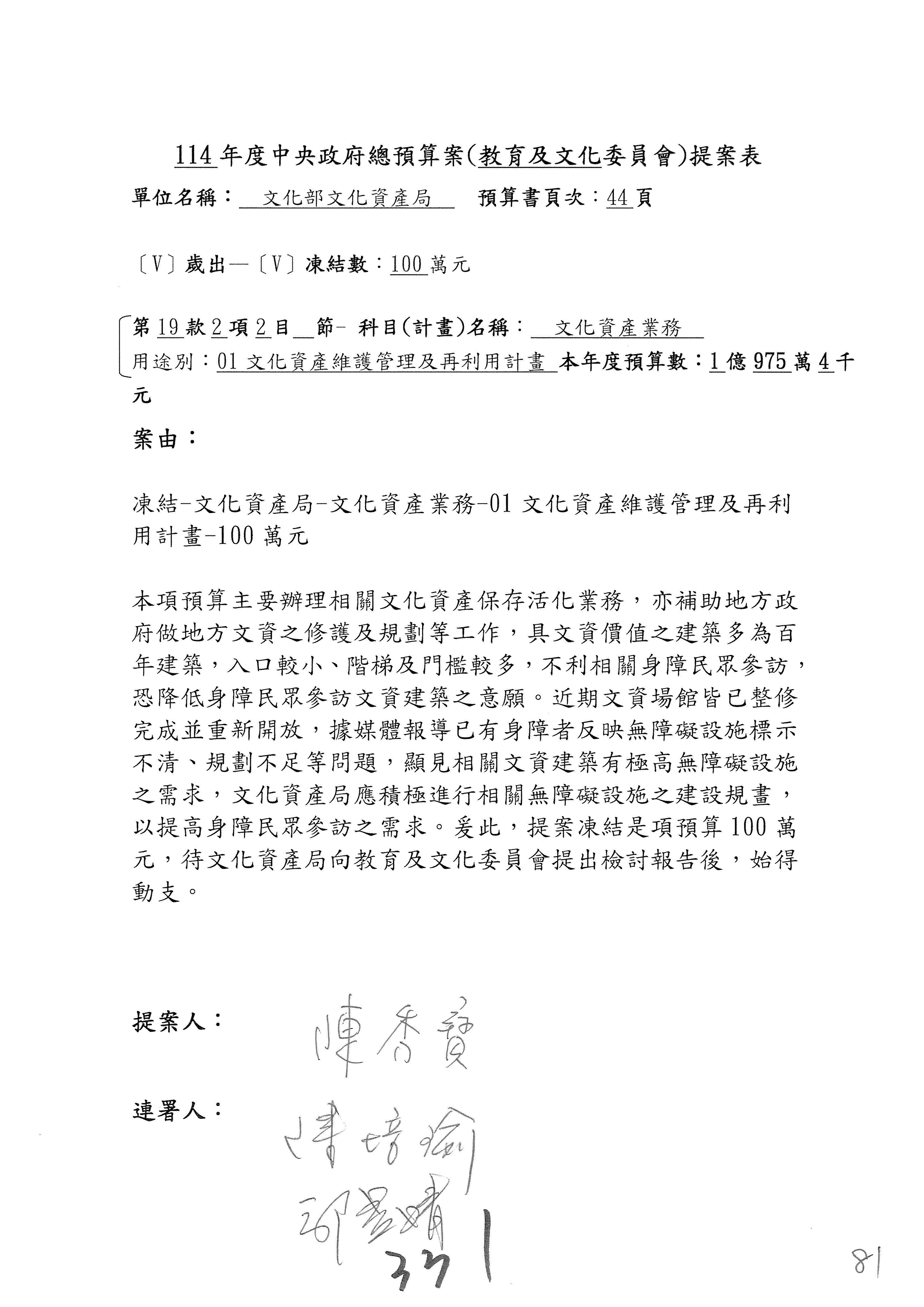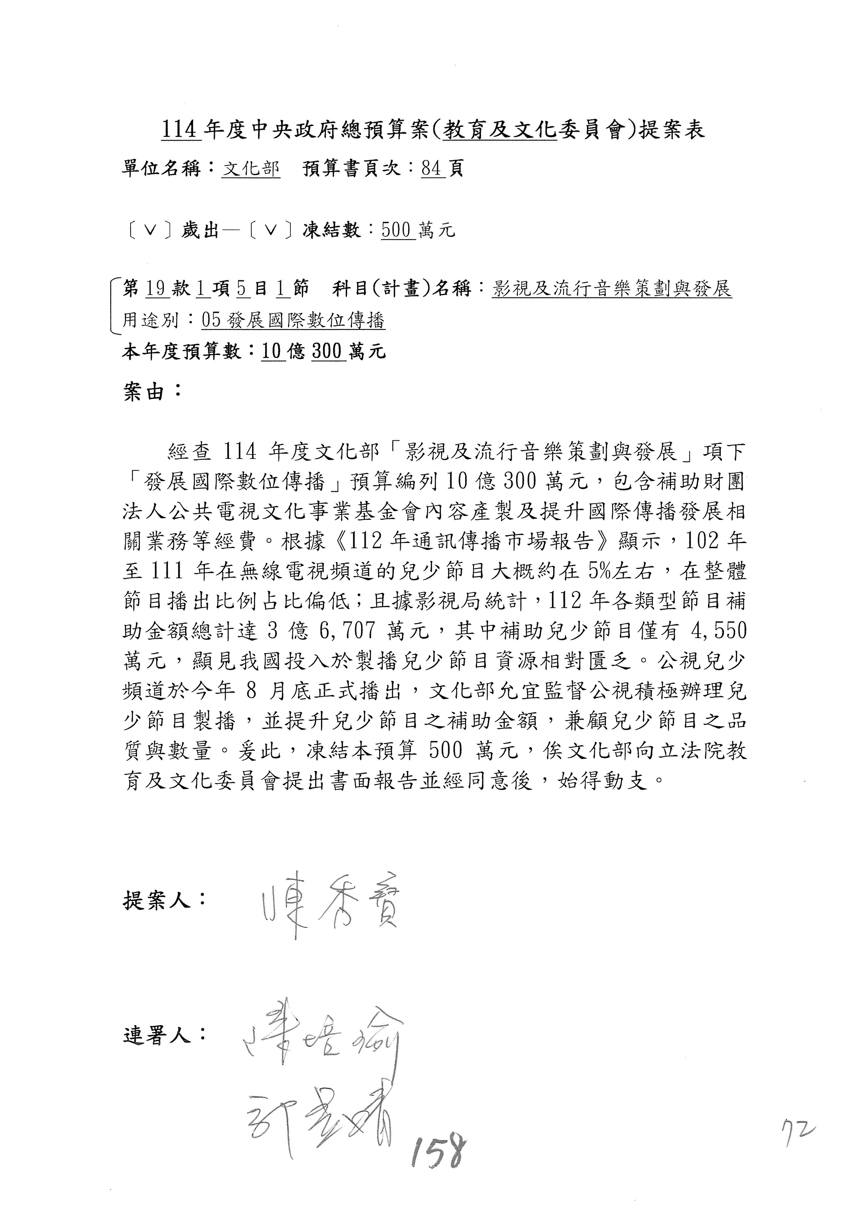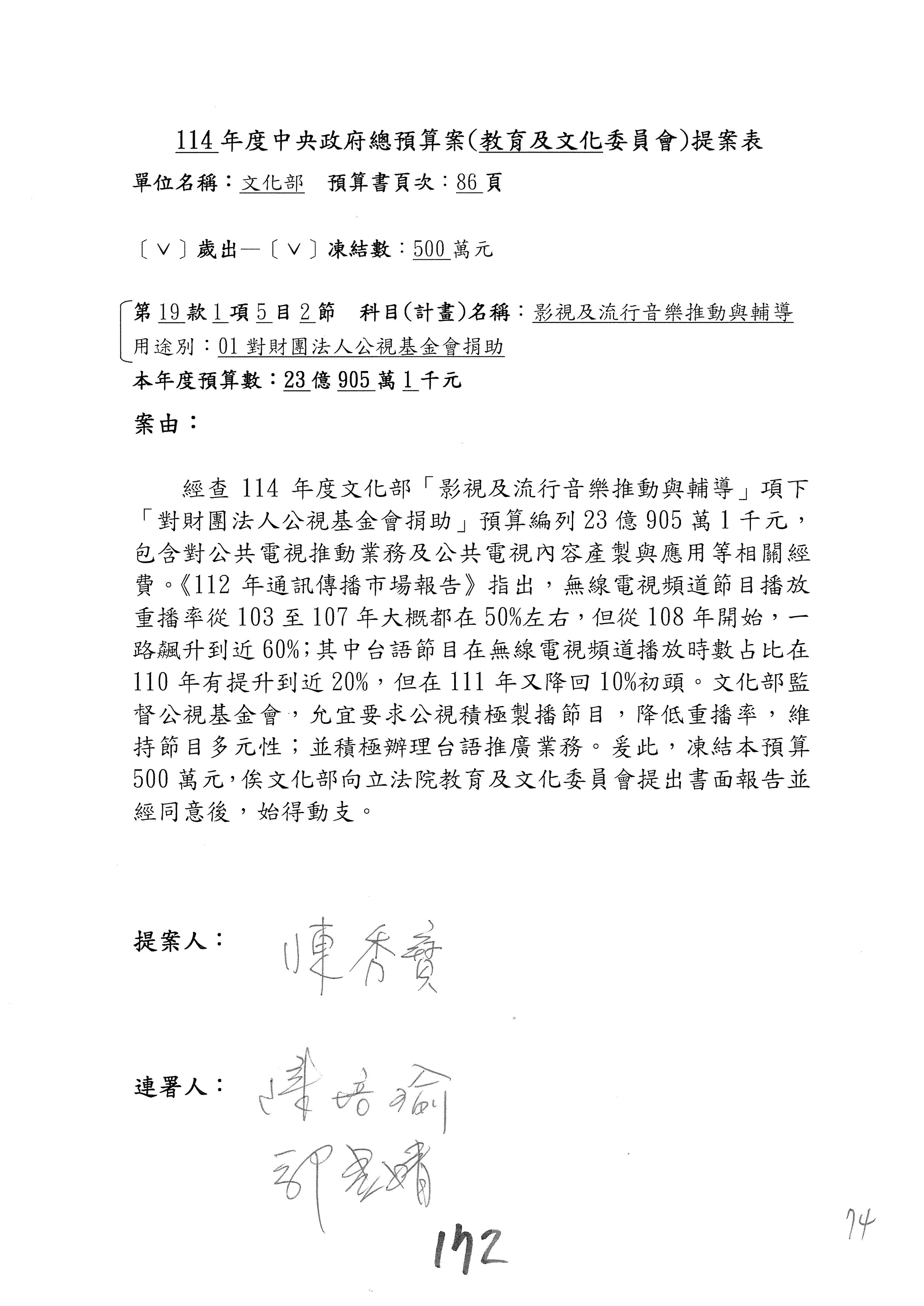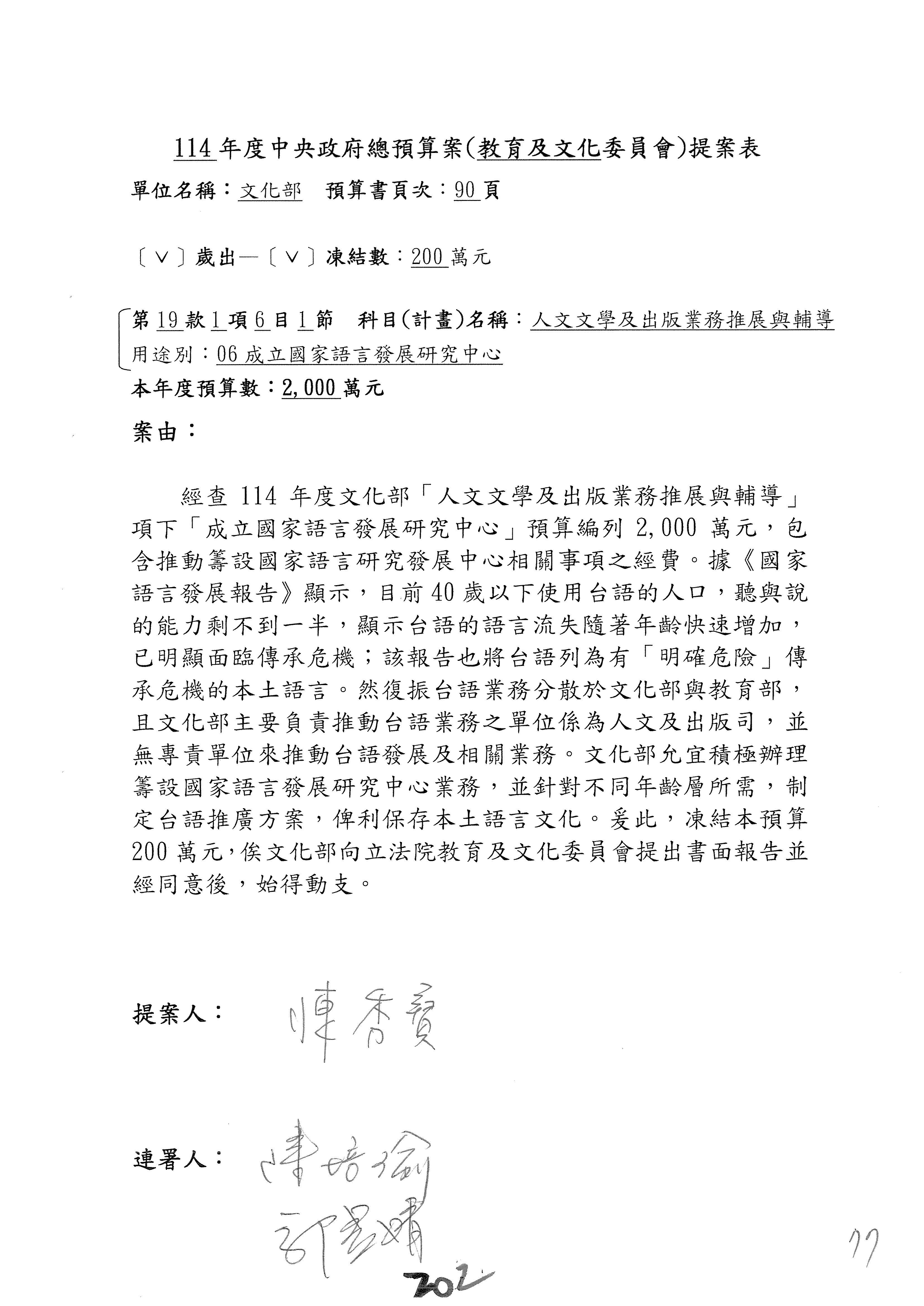 連署人:陳秀寳 陳培瑜