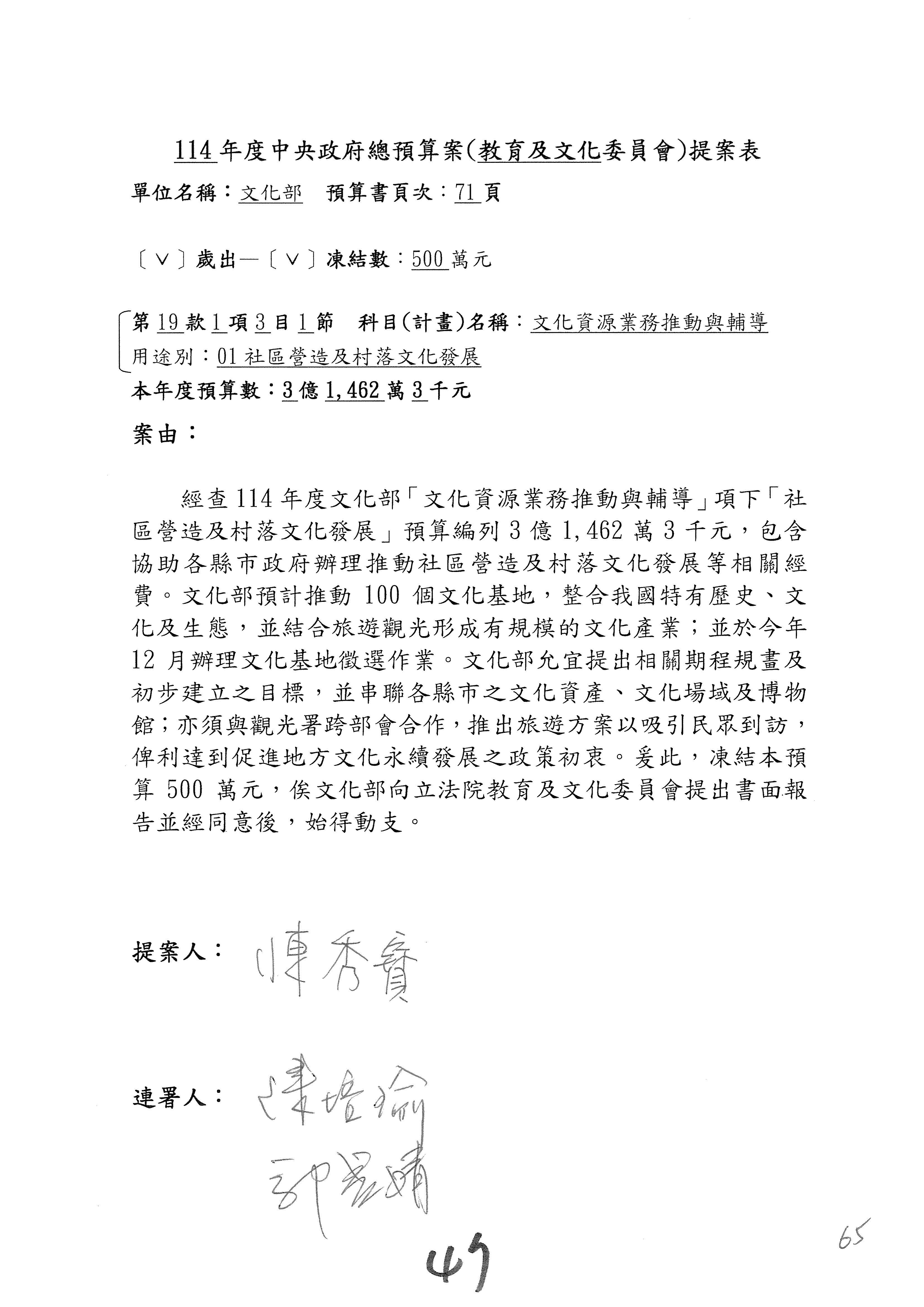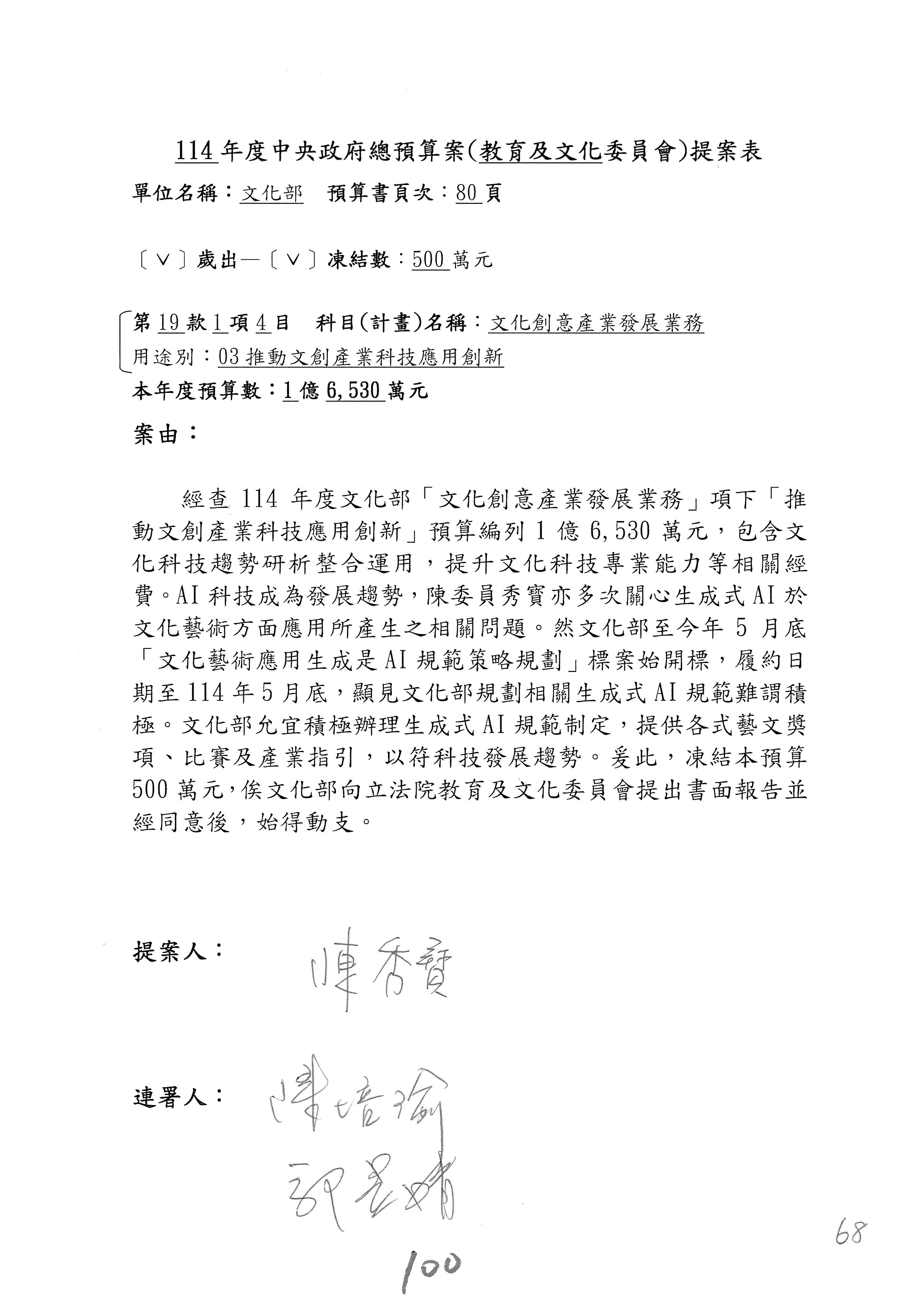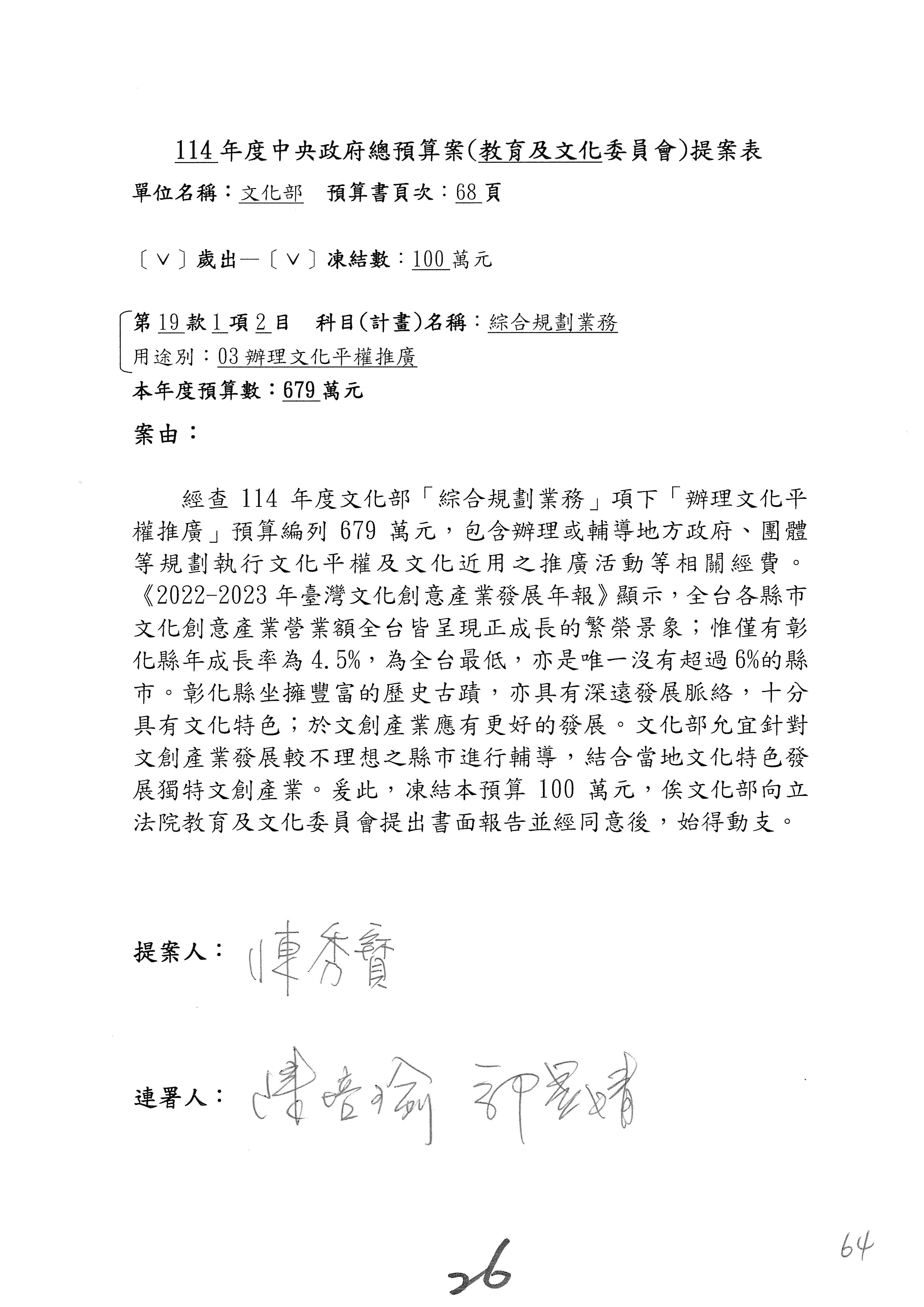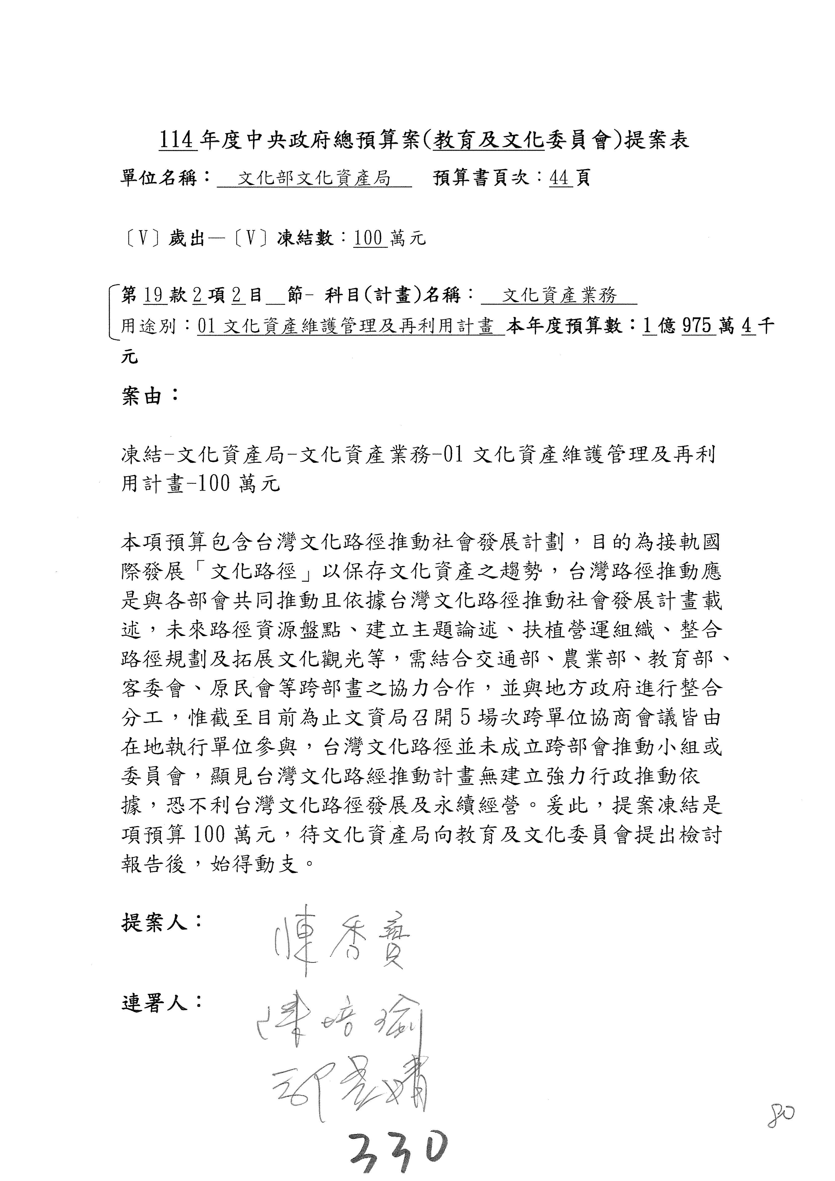 連署人:陳秀寳 陳培瑜