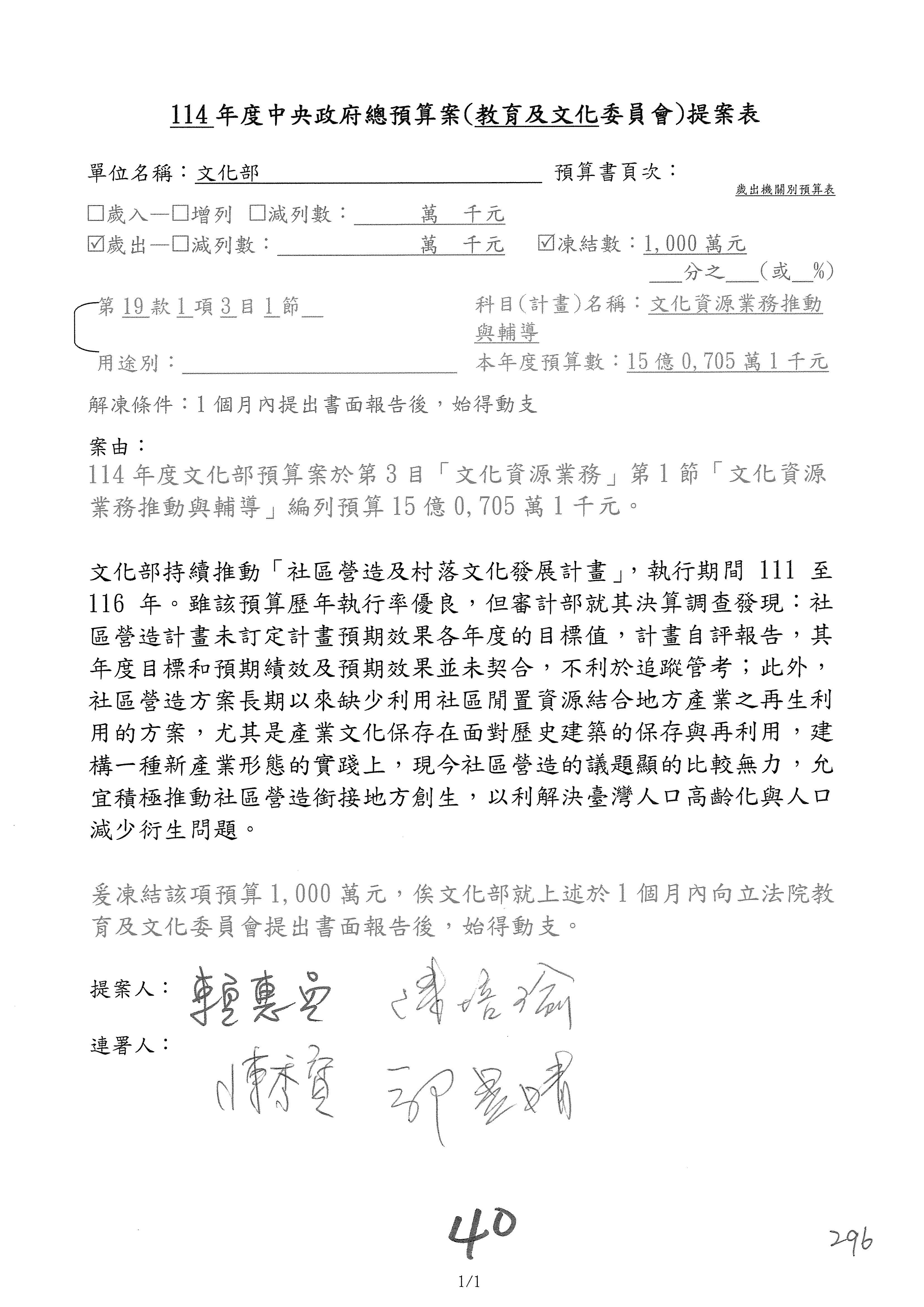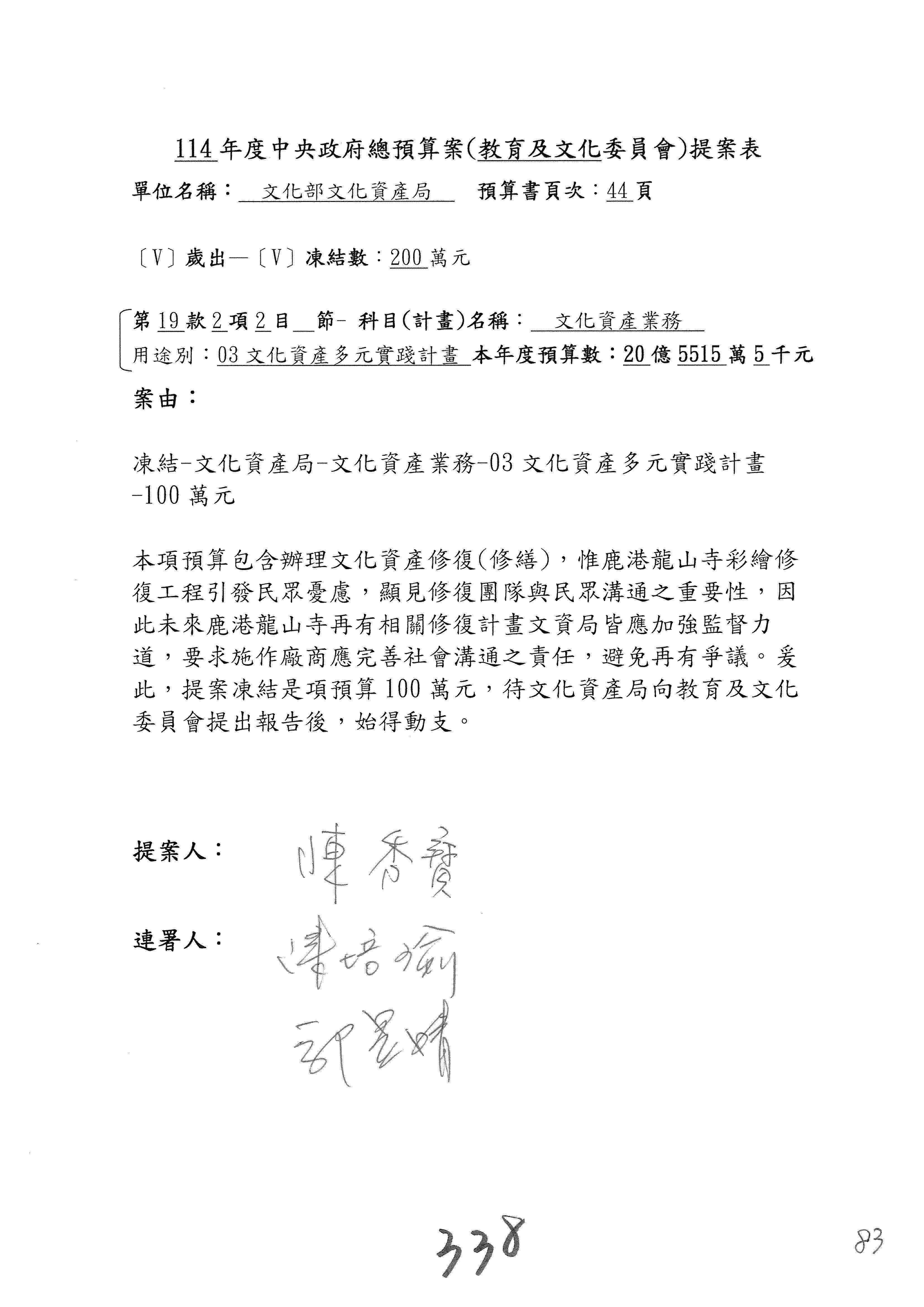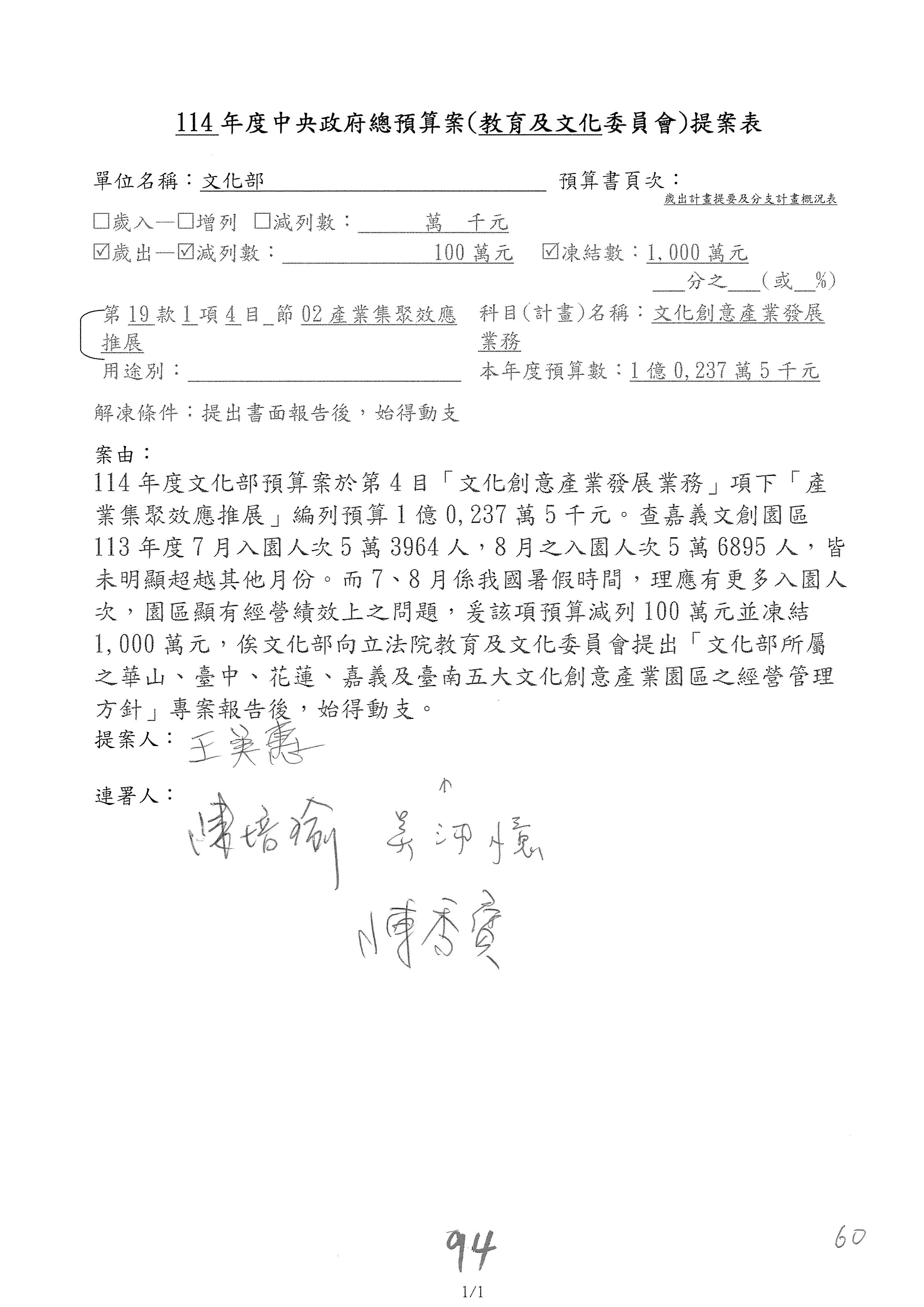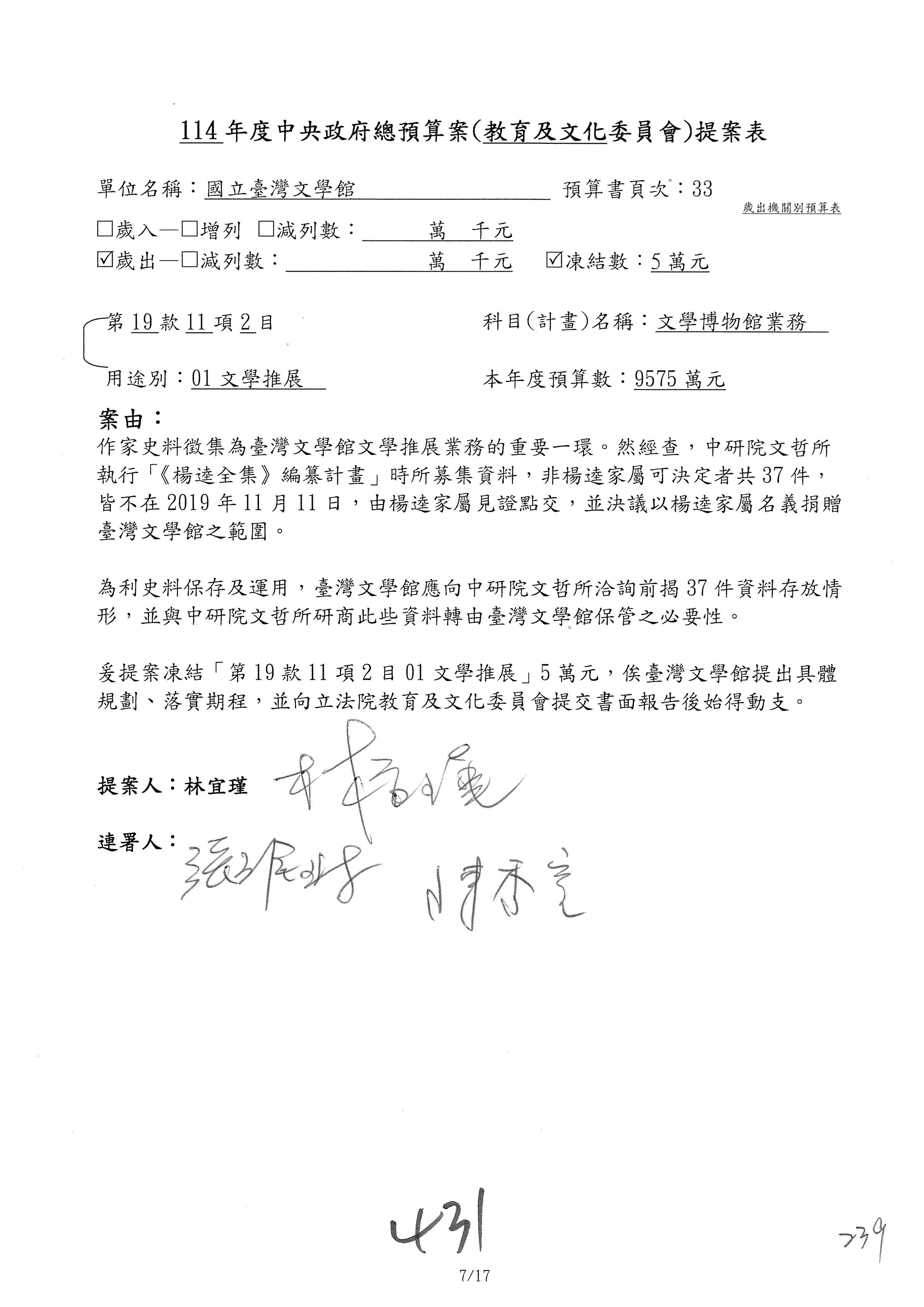 連署人:陳秀寳 陳培瑜