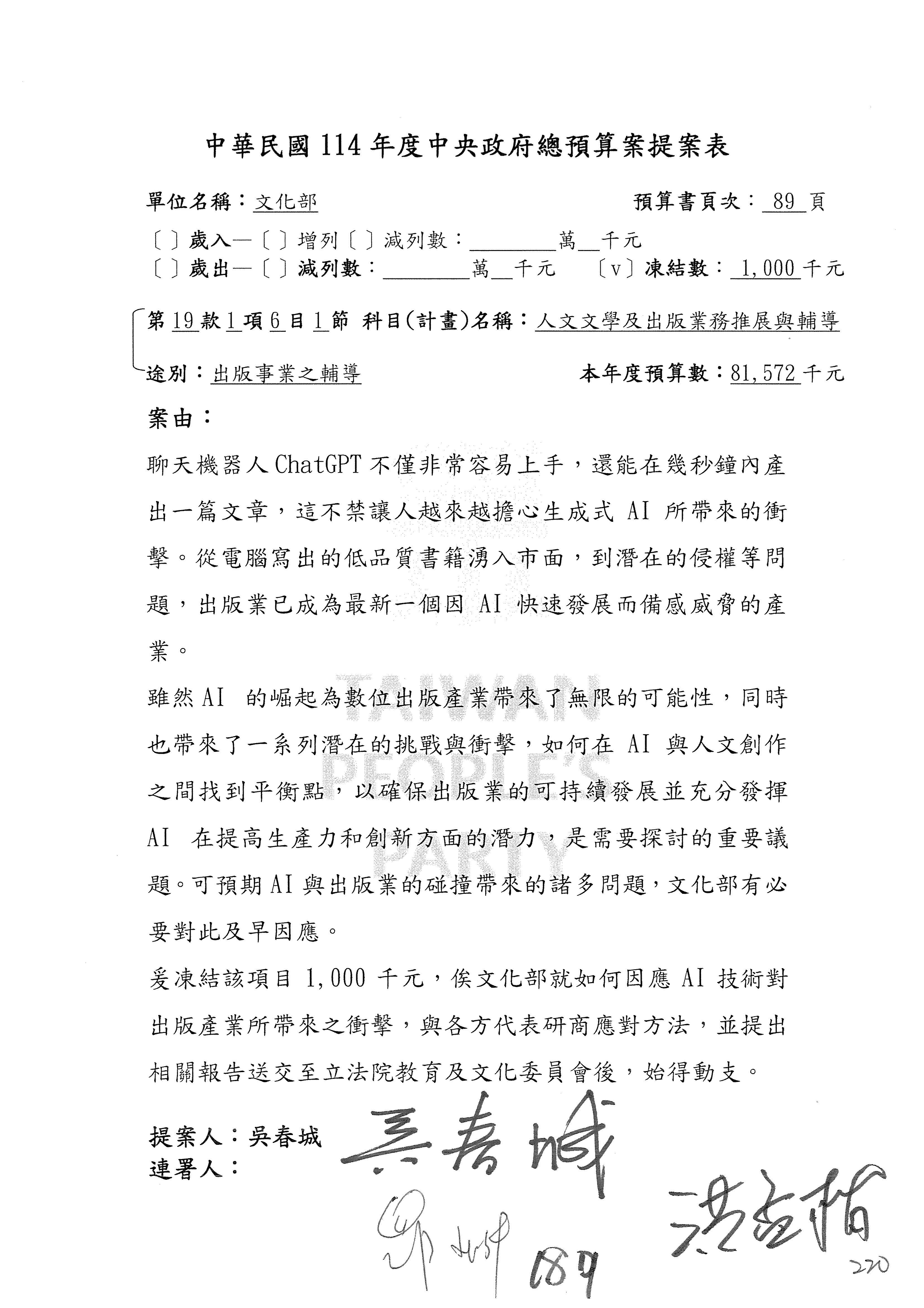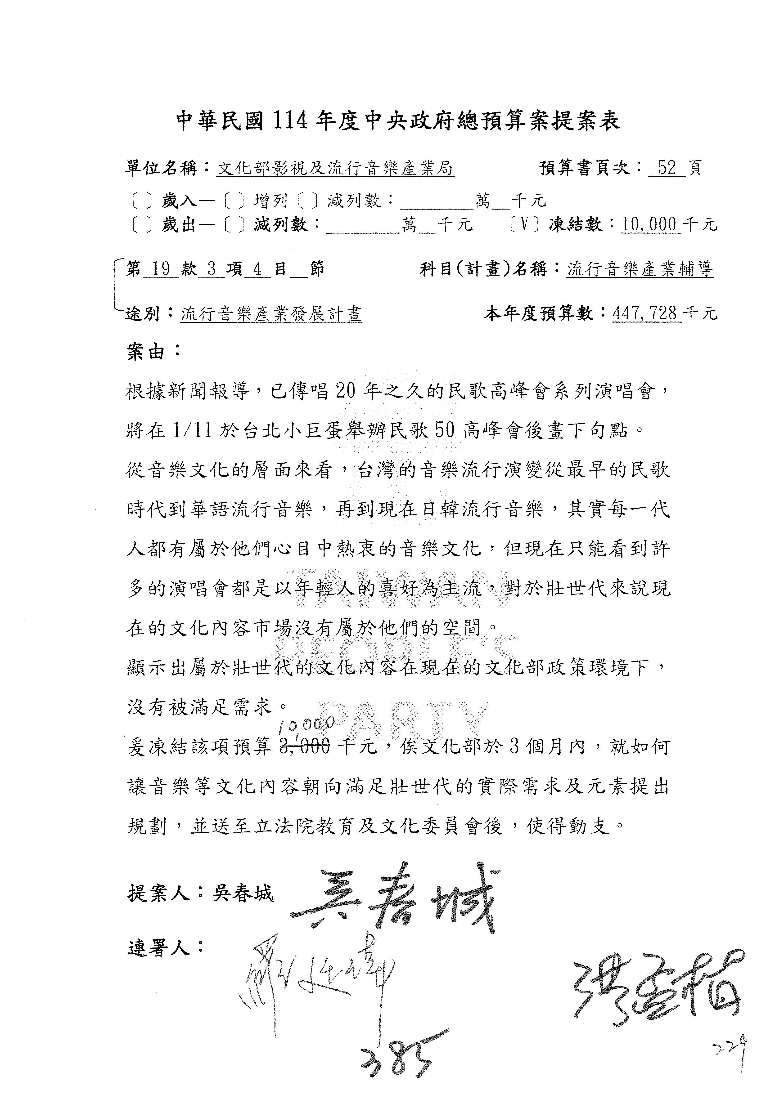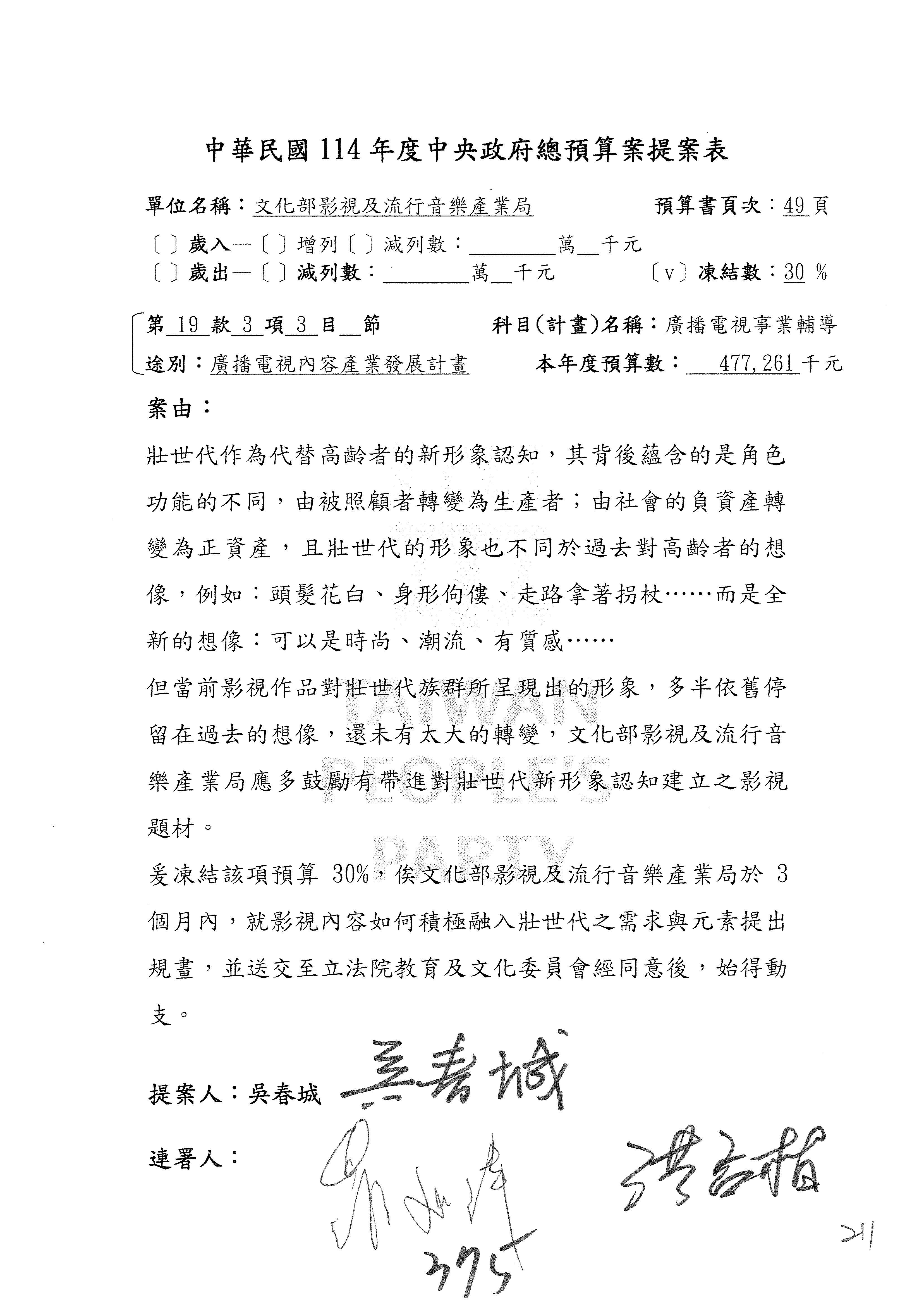 提案人:吳沛憶 范 雲 張雅琳 陳培瑜 陳秀寳 郭昱晴 萬美玲 羅廷瑋 柯志恩 林宜瑾 葛如鈞 葉元之 林倩綺 洪孟楷 吳春城 徐巧芯