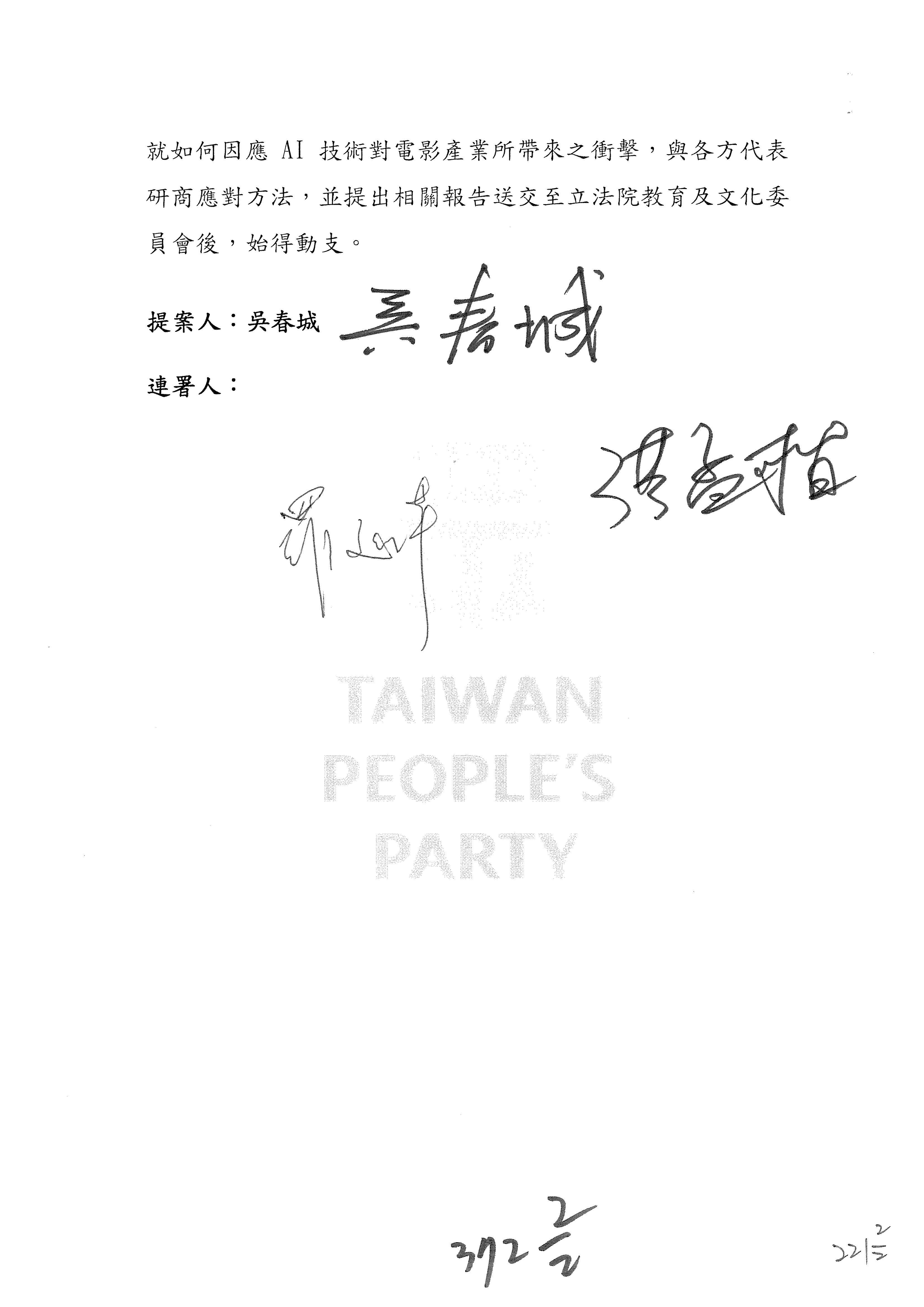 連署人:郭昱晴 陳培瑜 萬美玲 羅廷瑋 林倩綺
