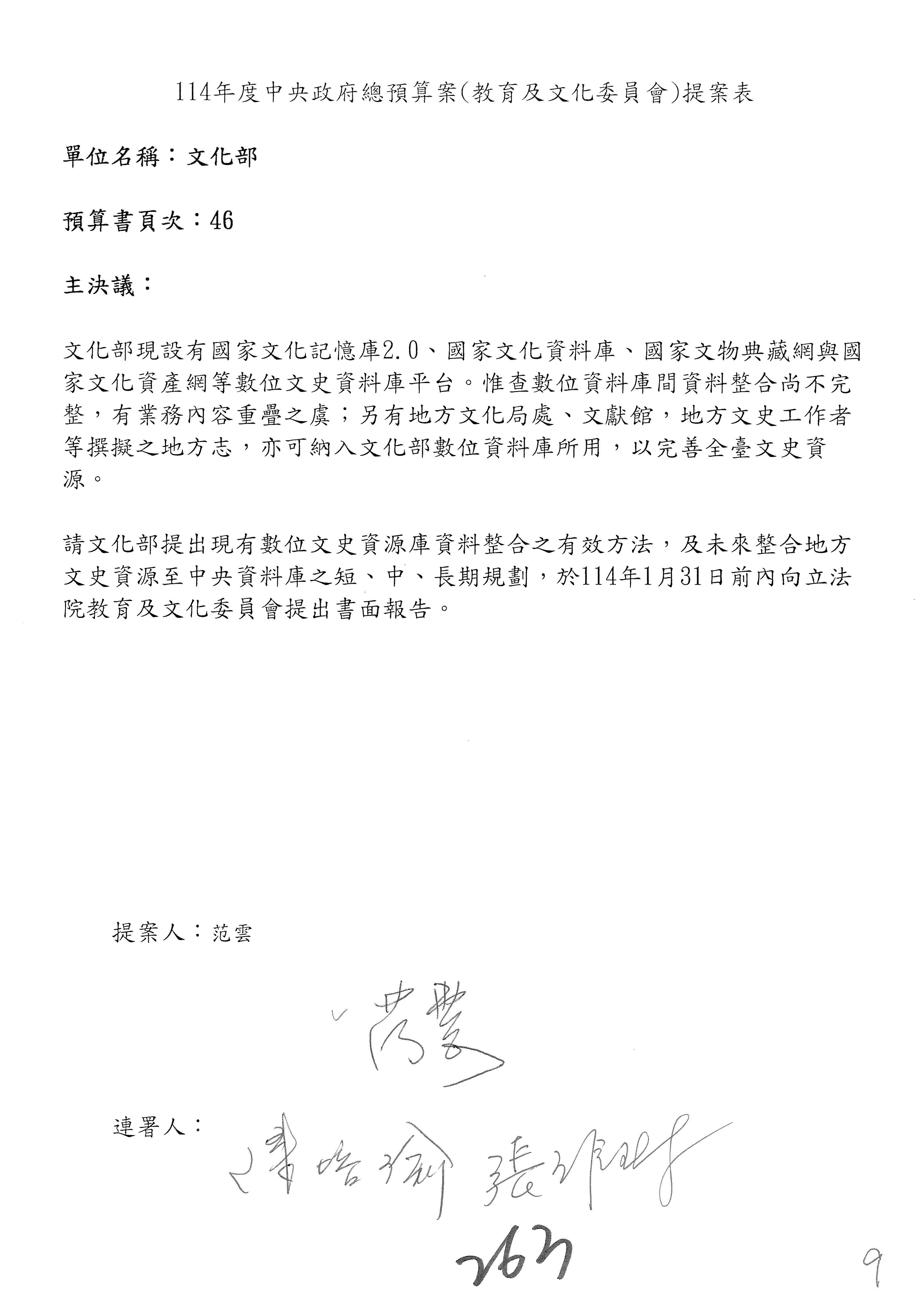 提案人:范 雲
