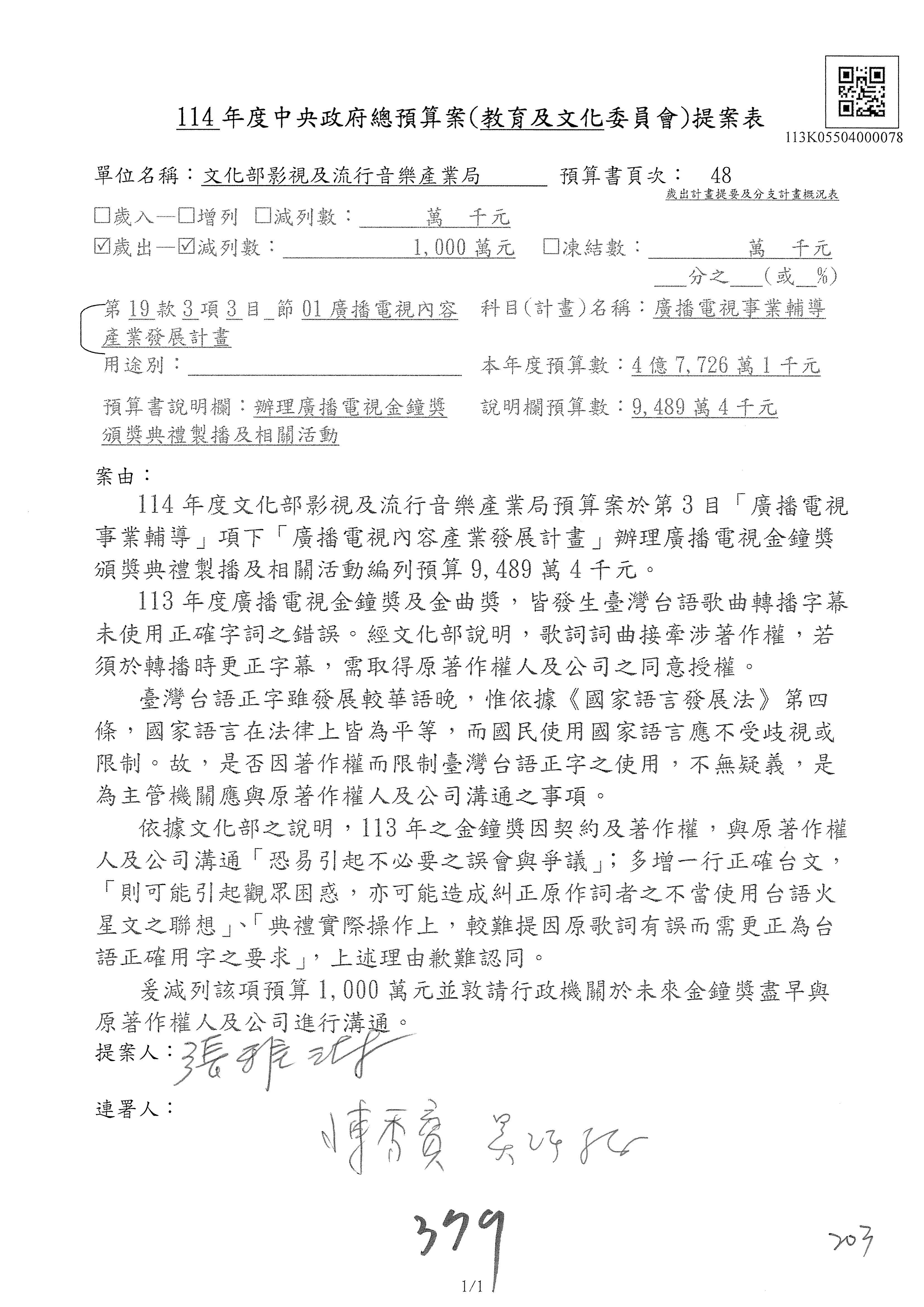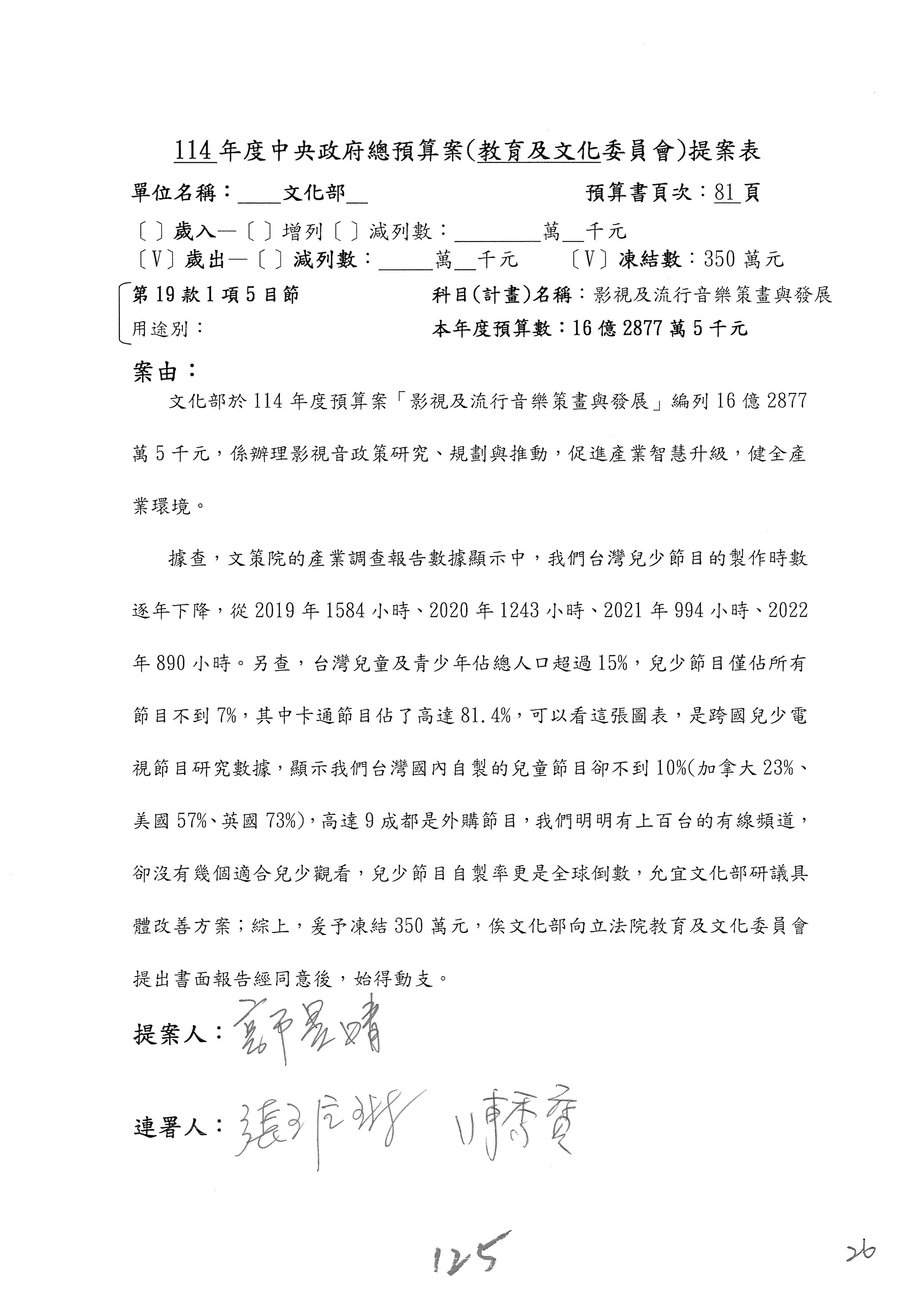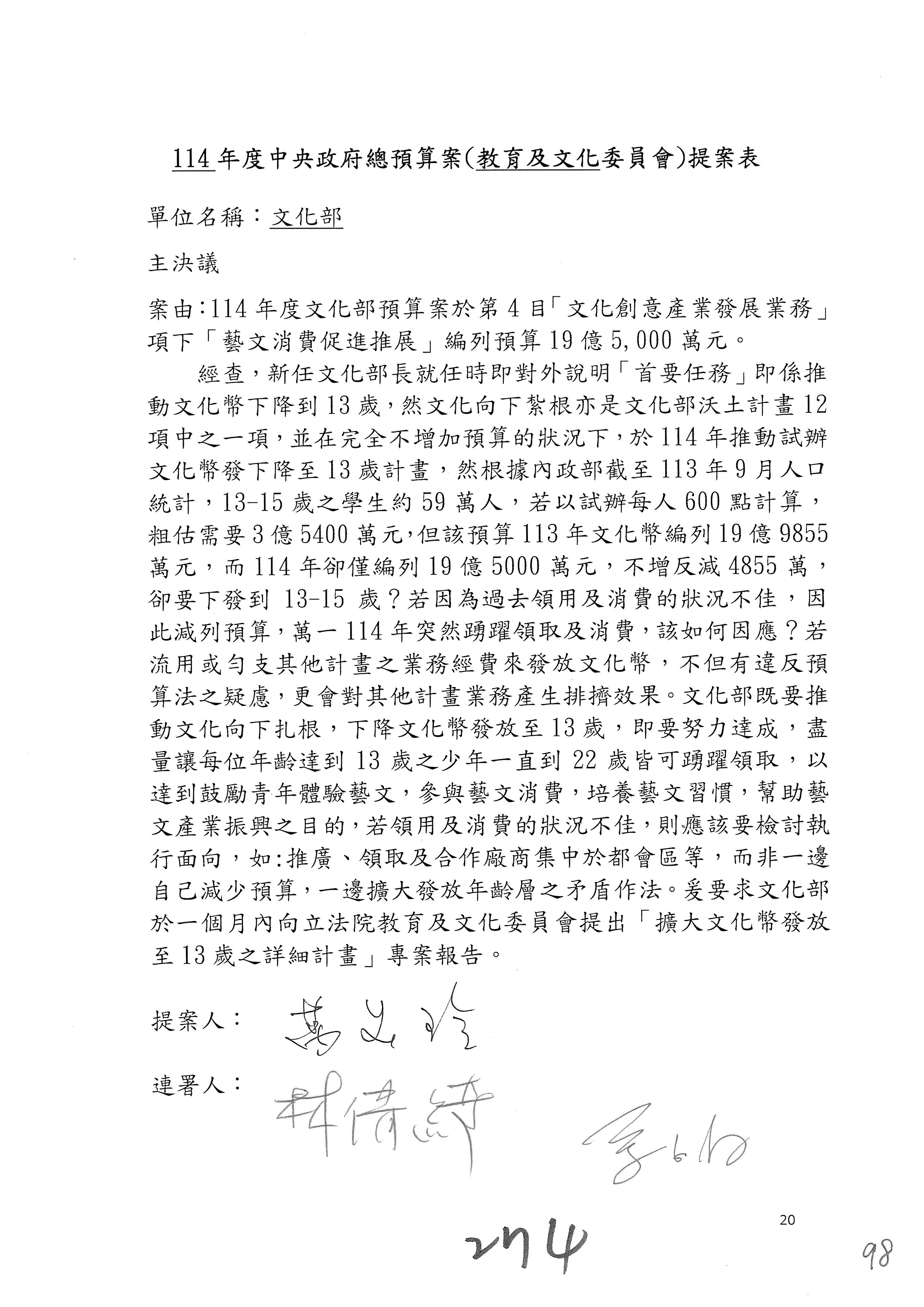 提案人:萬美玲 張雅琳 陳培瑜 柯志恩 洪孟楷 郭昱晴 葛如鈞 羅廷瑋 葉元之 林倩綺