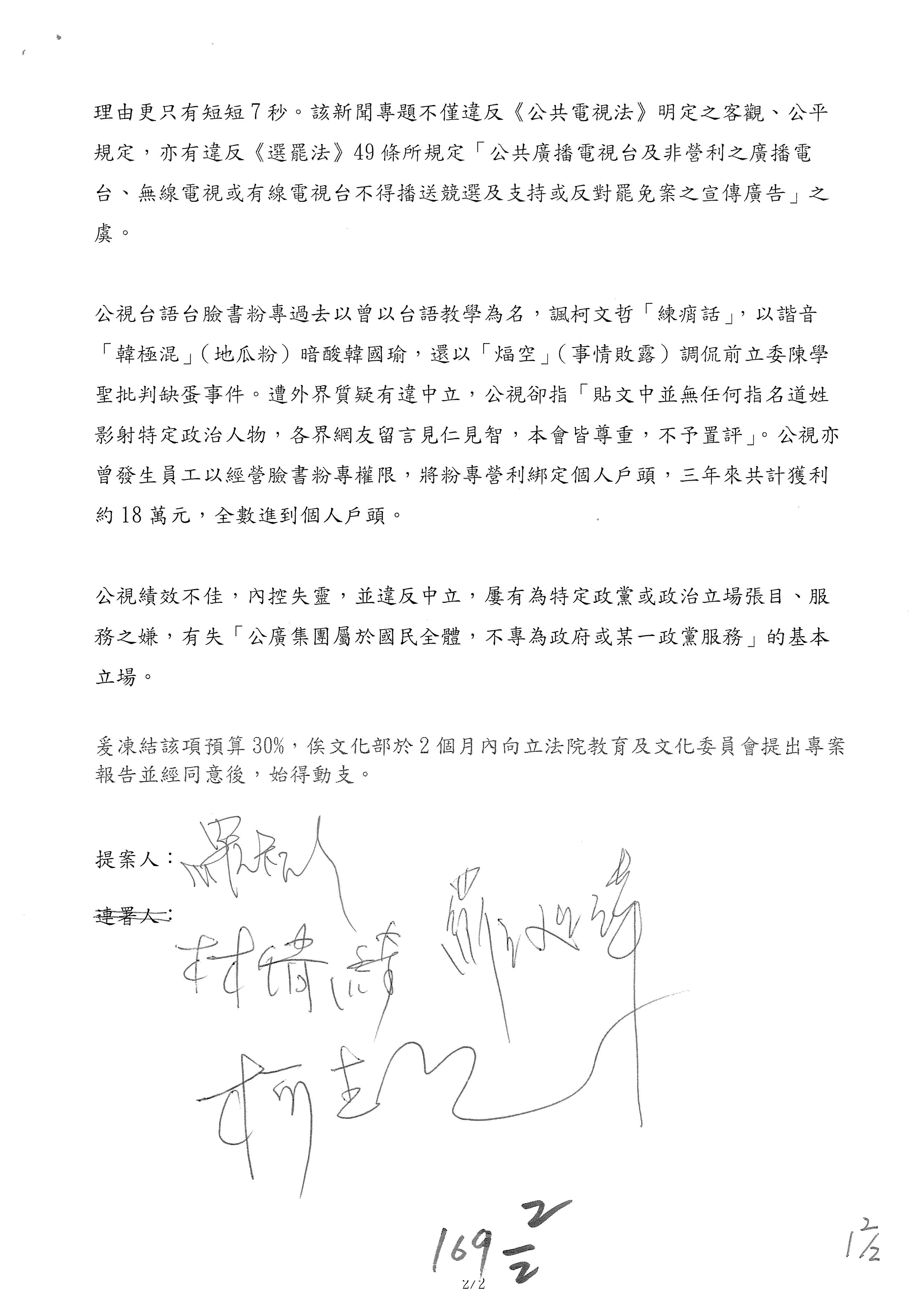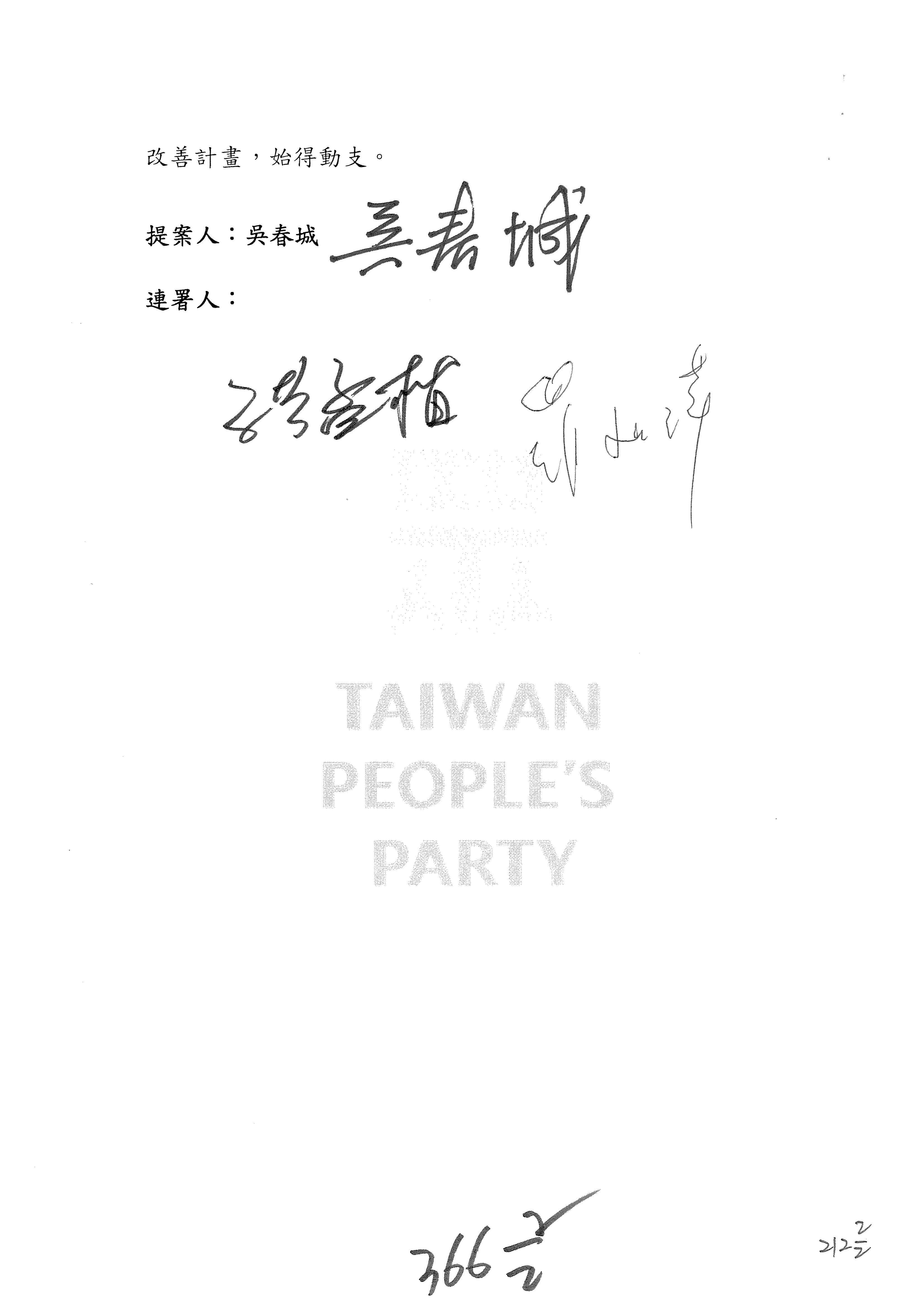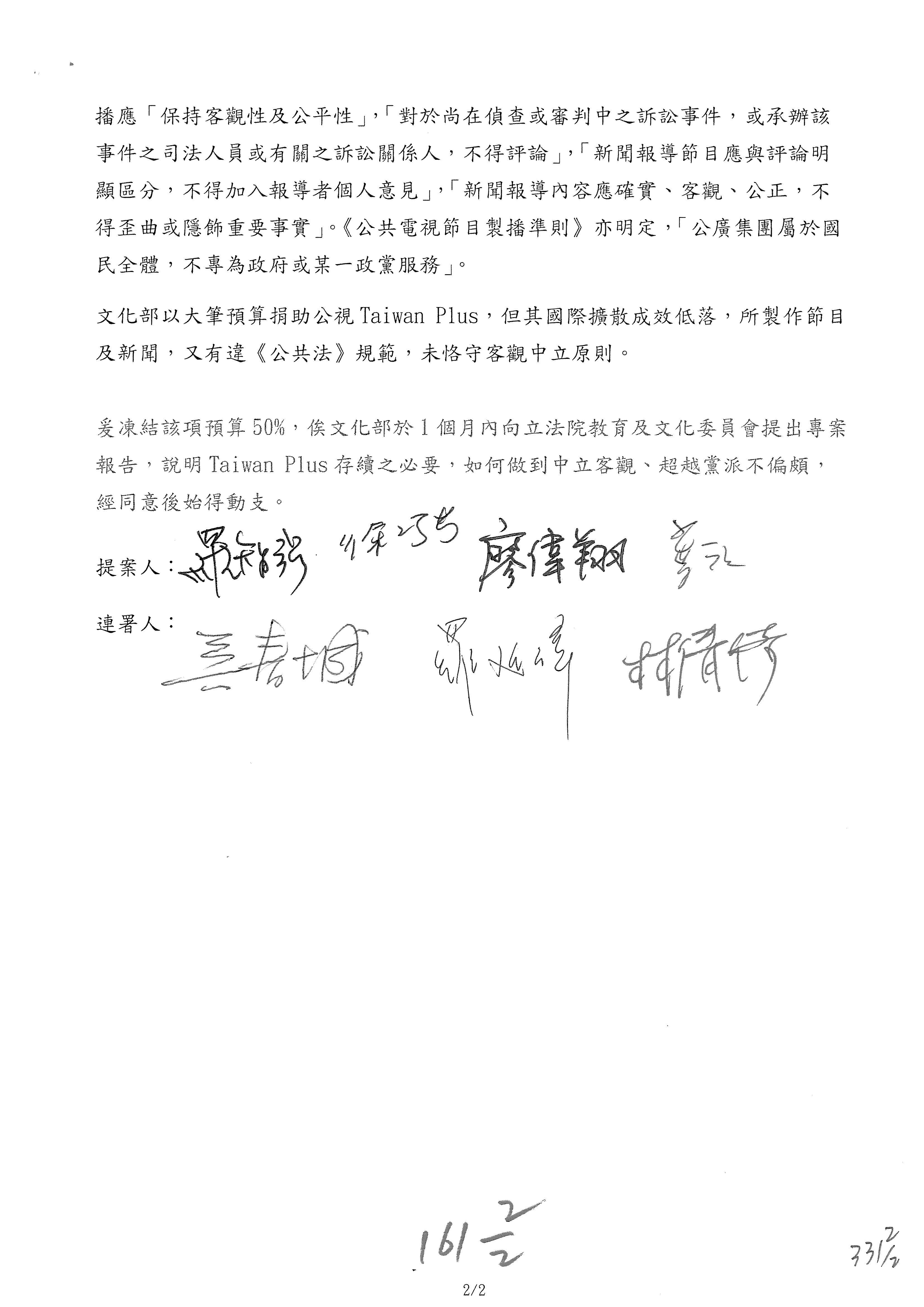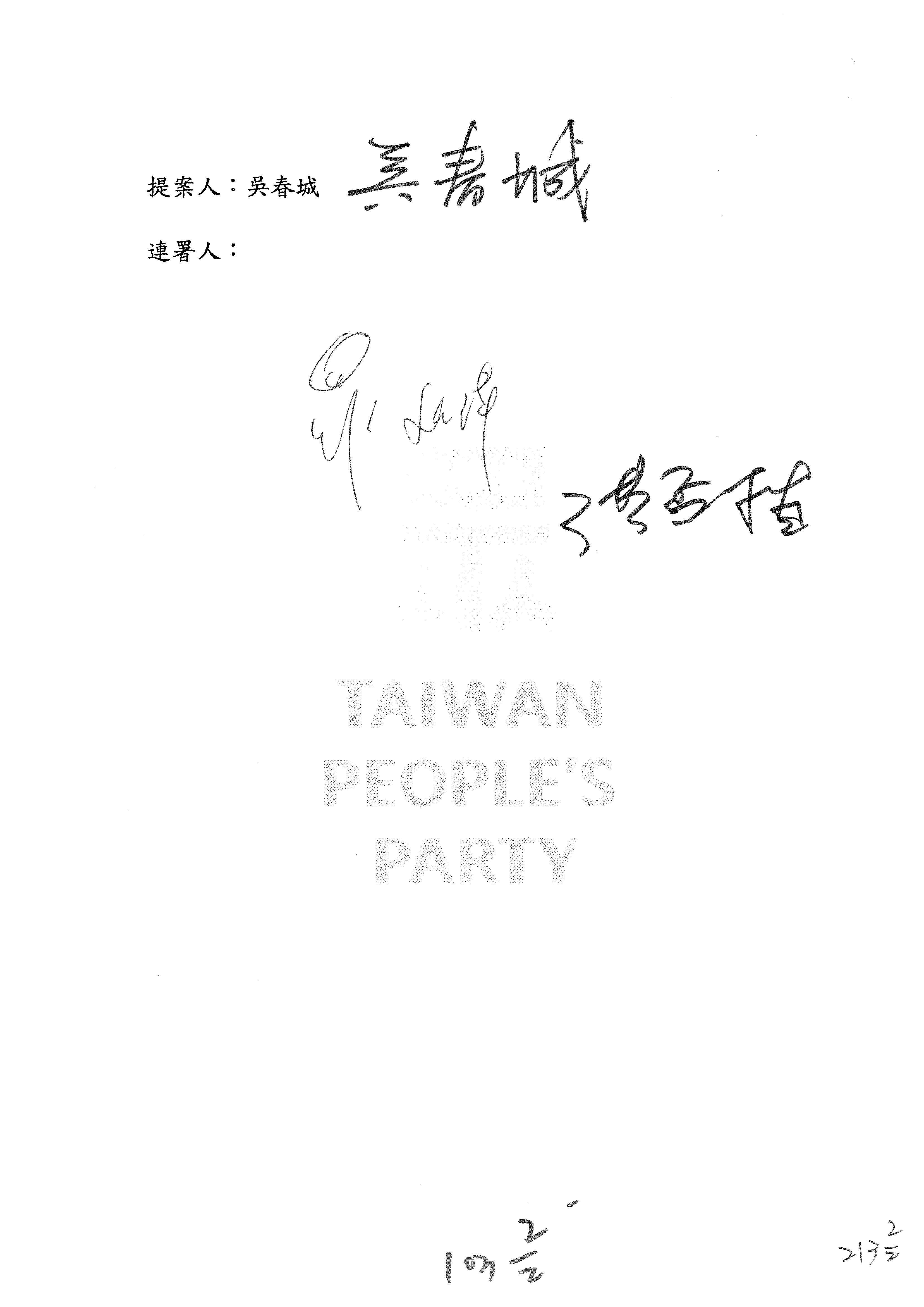 提案人:羅廷瑋 洪孟楷 吳春城 葉元之 范 雲 林倩綺 柯志恩 林宜瑾 郭昱晴 陳秀寳 萬美玲 吳沛憶 張雅琳 陳培瑜 葛如鈞