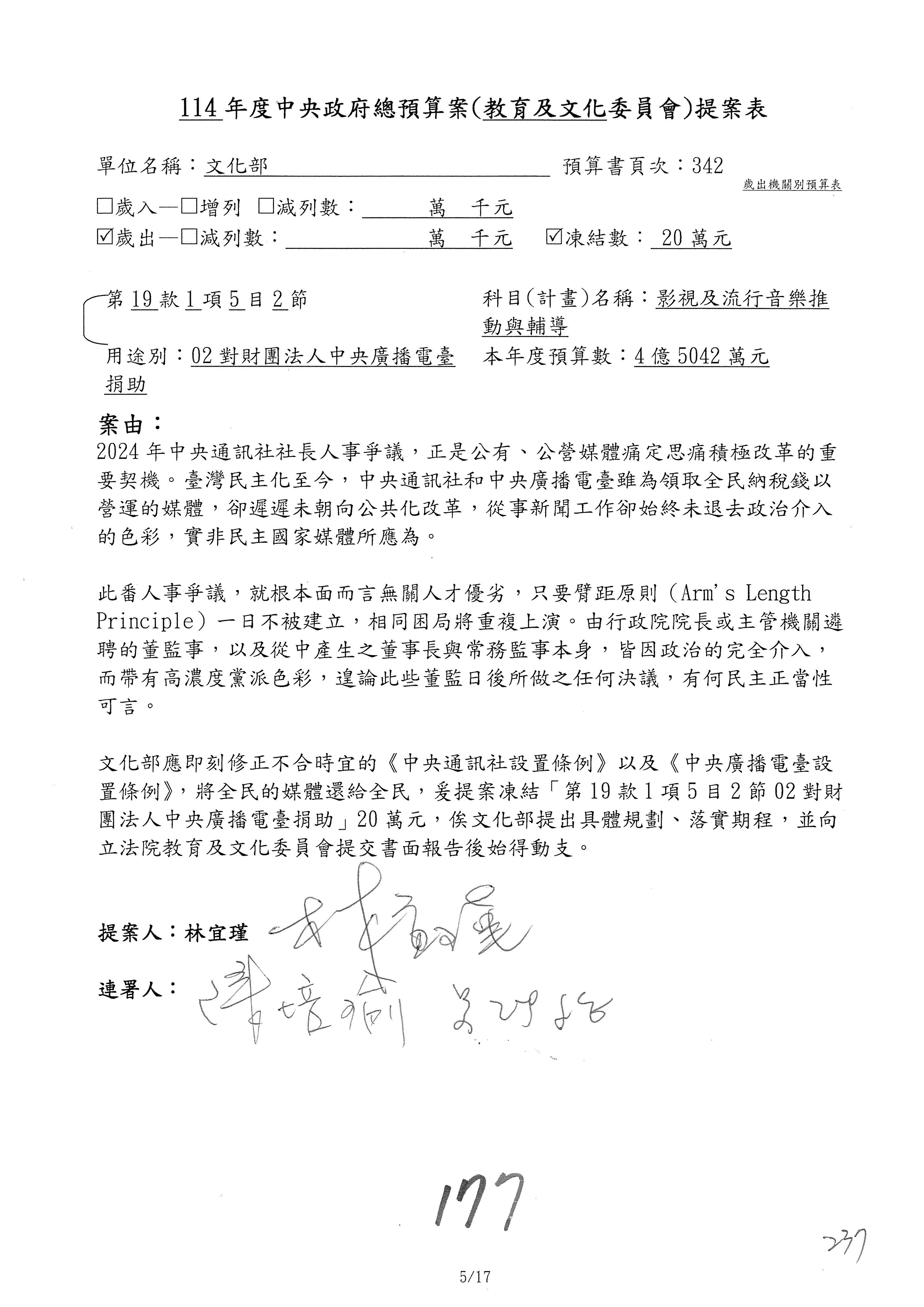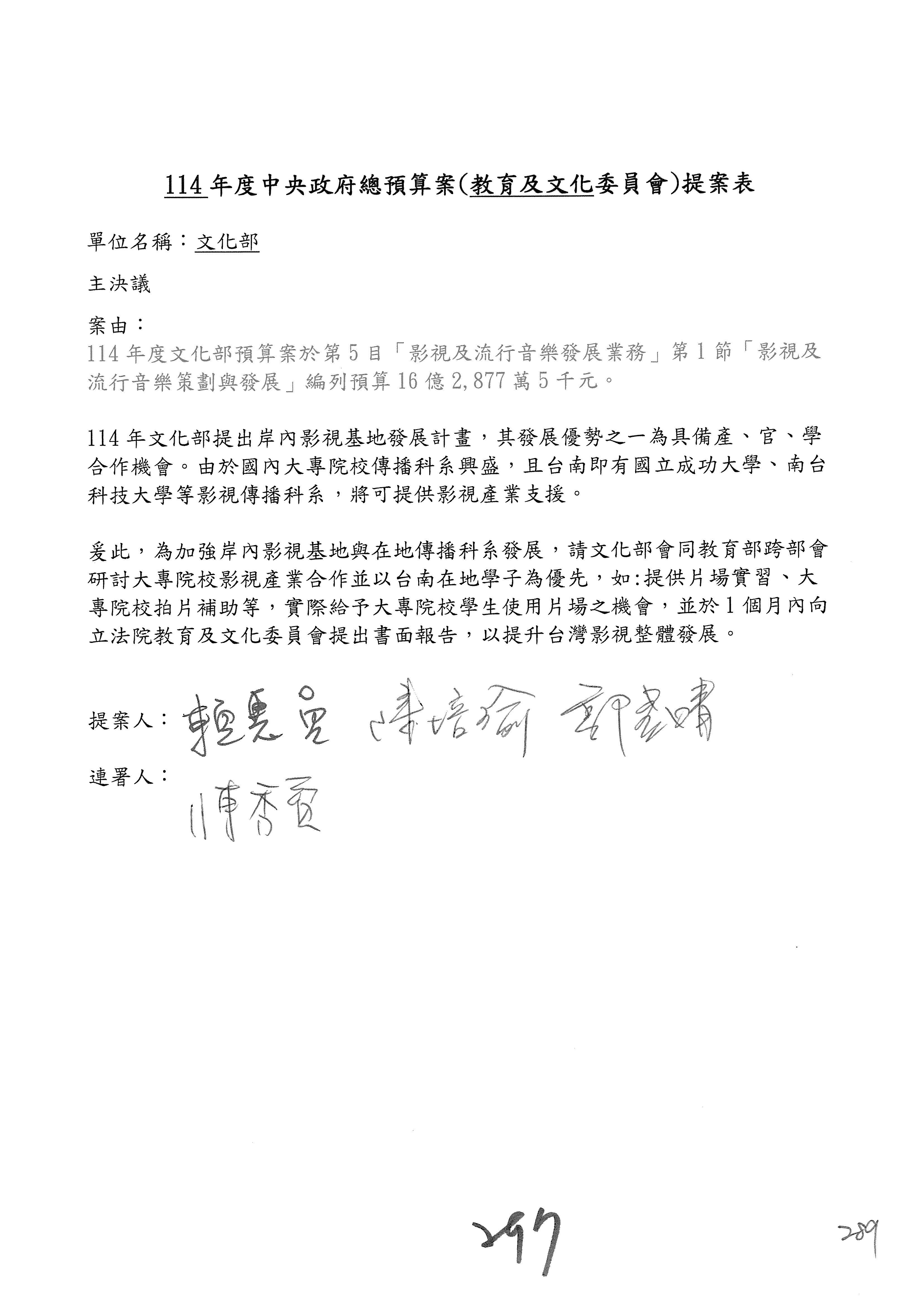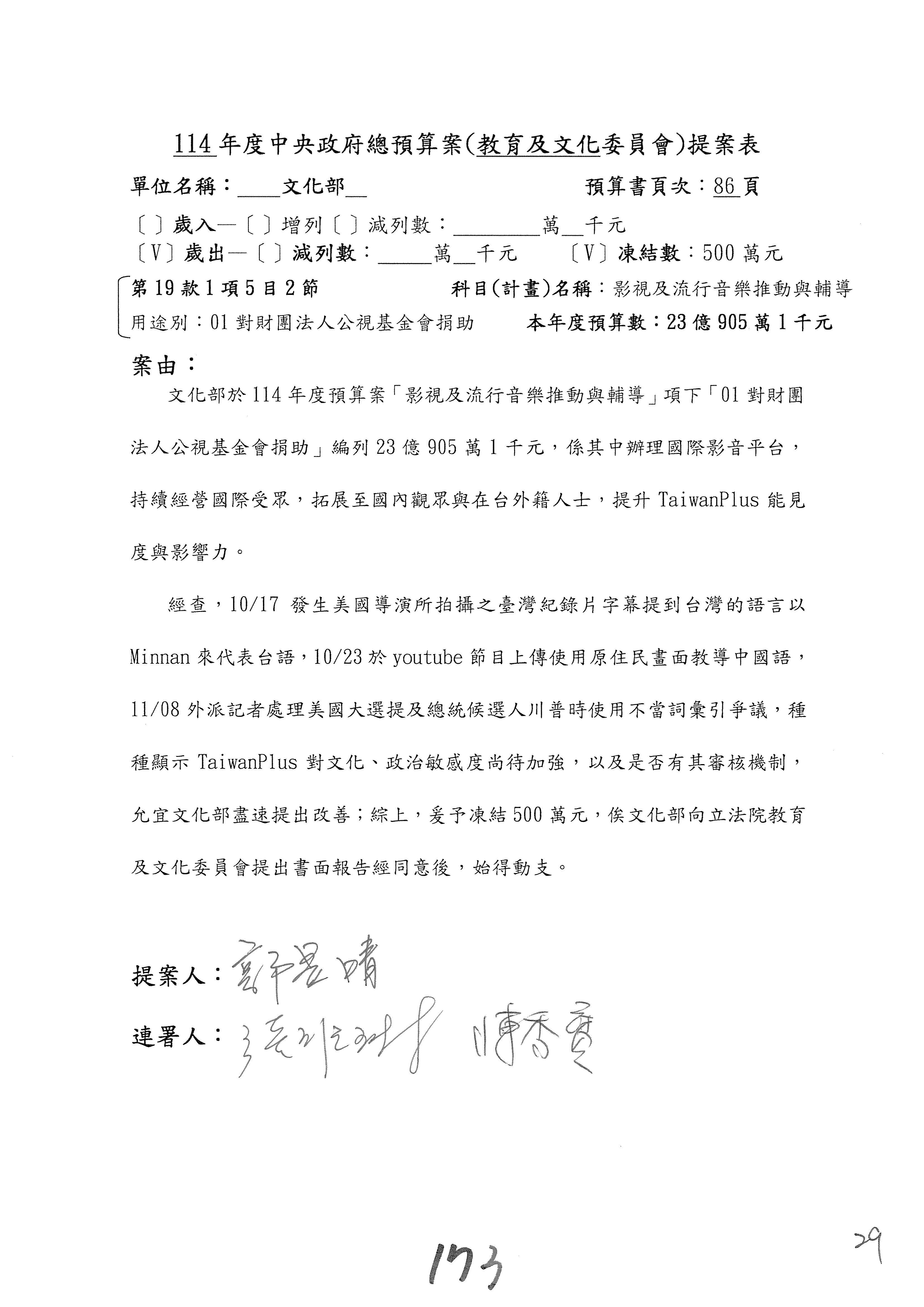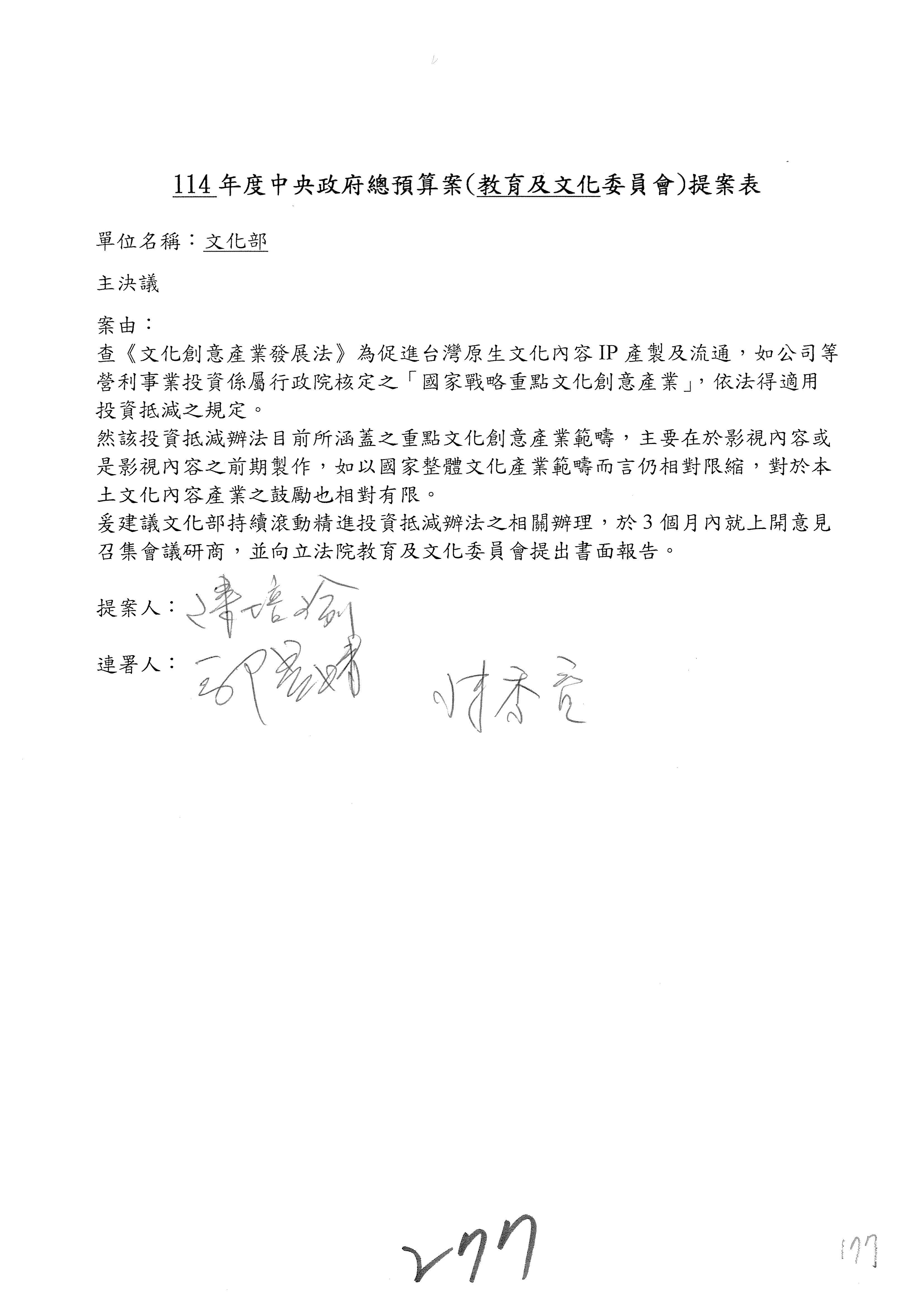 提案人:羅廷瑋 洪孟楷 吳春城 葉元之 范 雲 林倩綺 柯志恩 林宜瑾 郭昱晴 陳秀寳 萬美玲 吳沛憶 張雅琳 陳培瑜 葛如鈞
