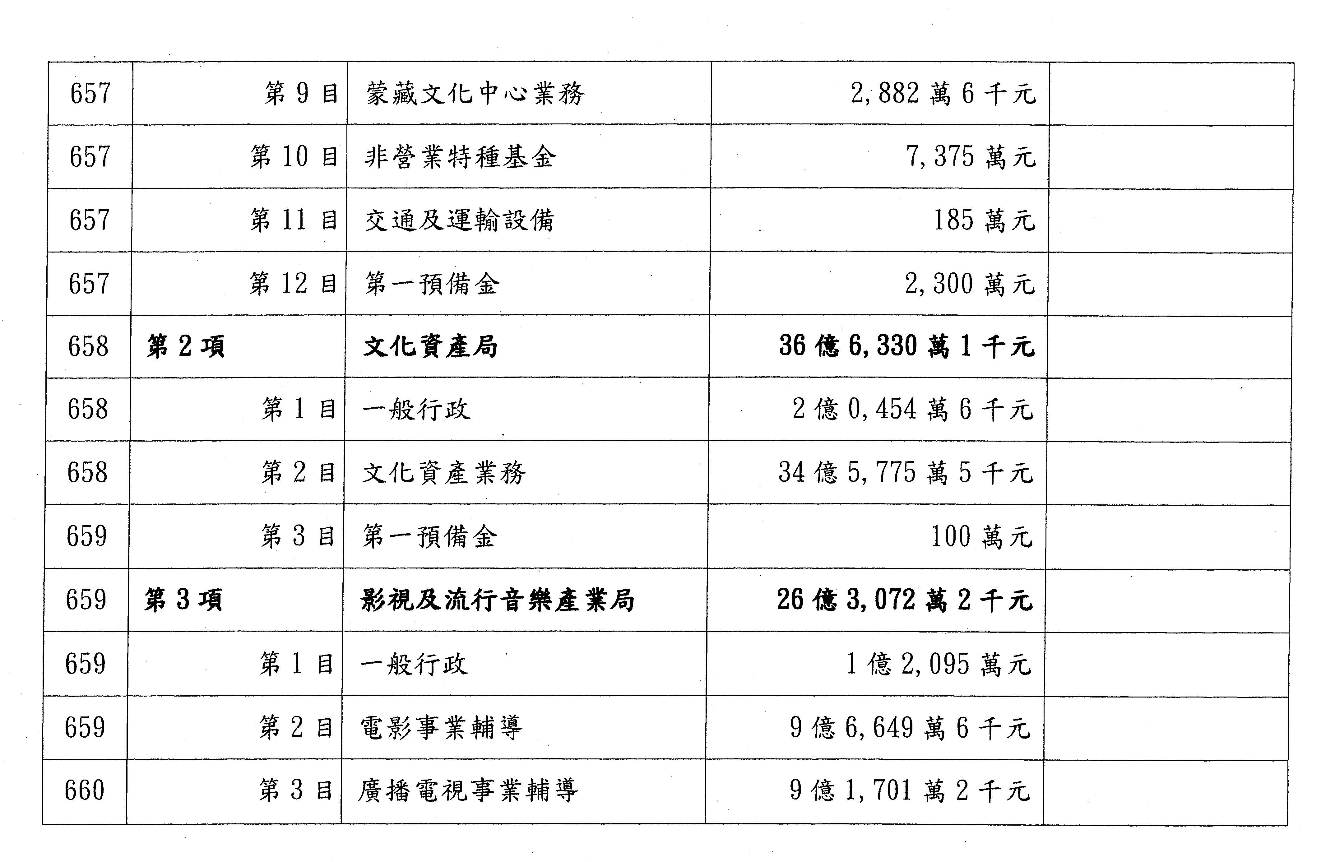 1.文化部及所屬: