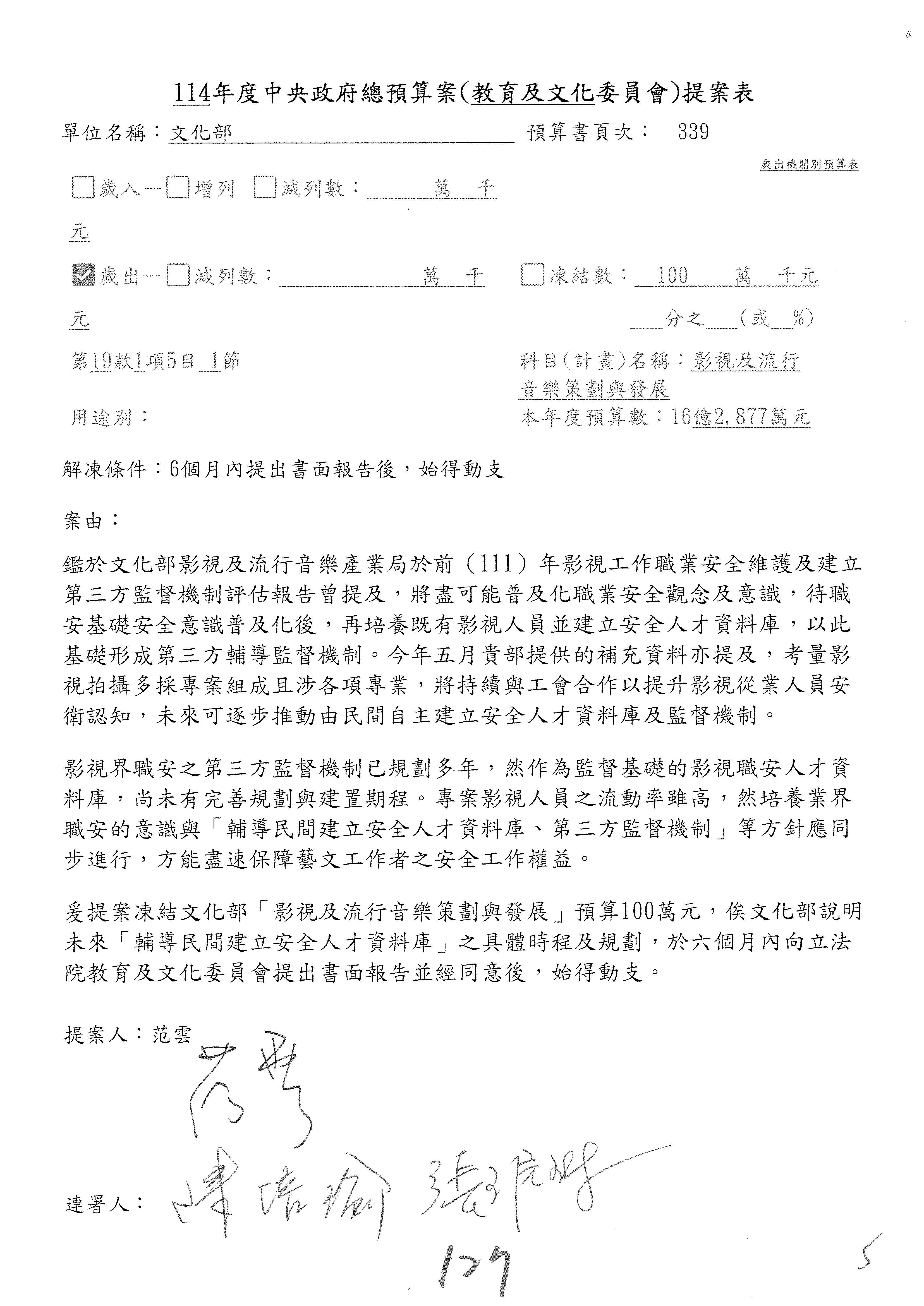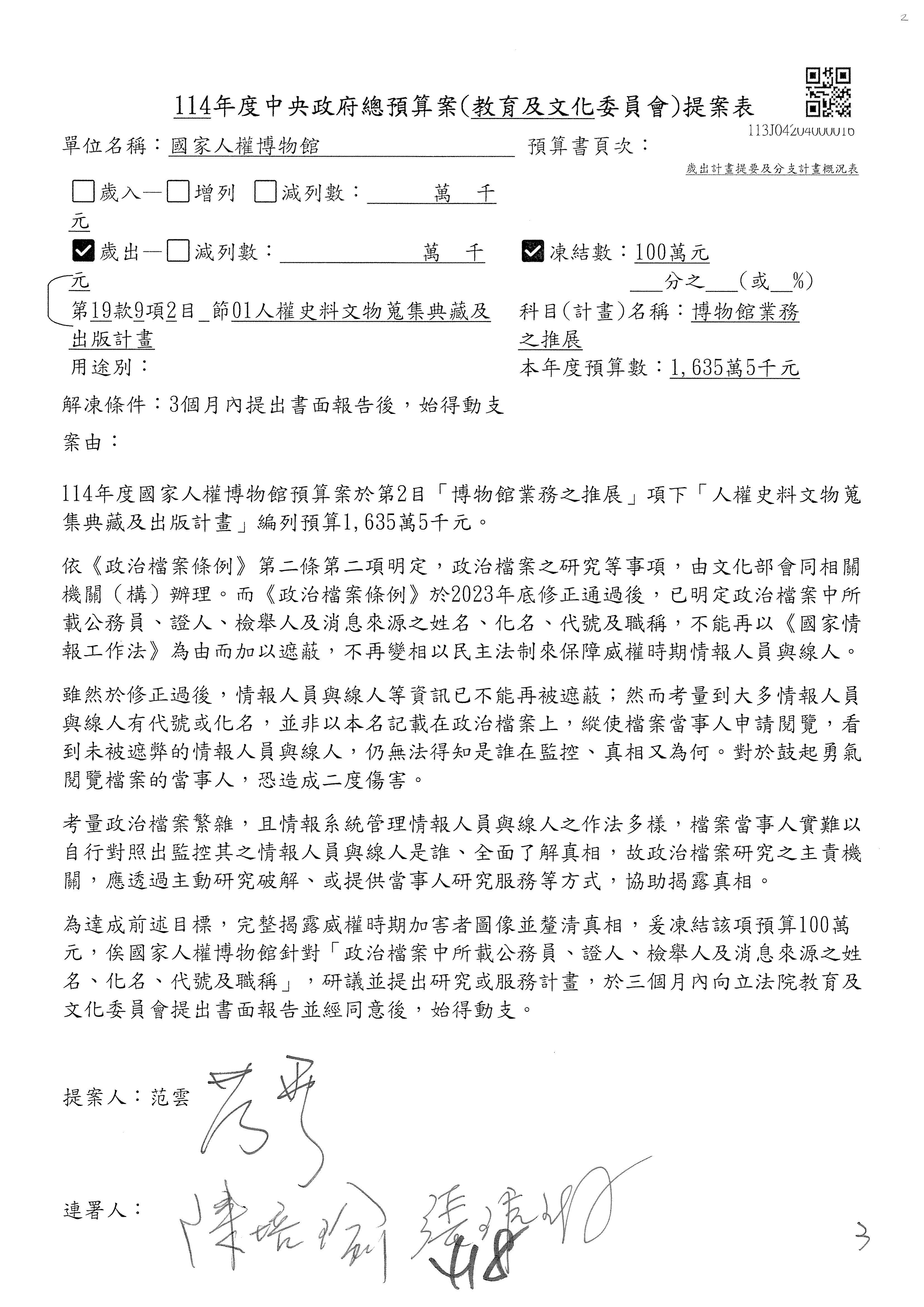 連署人:陳秀寳 范 雲