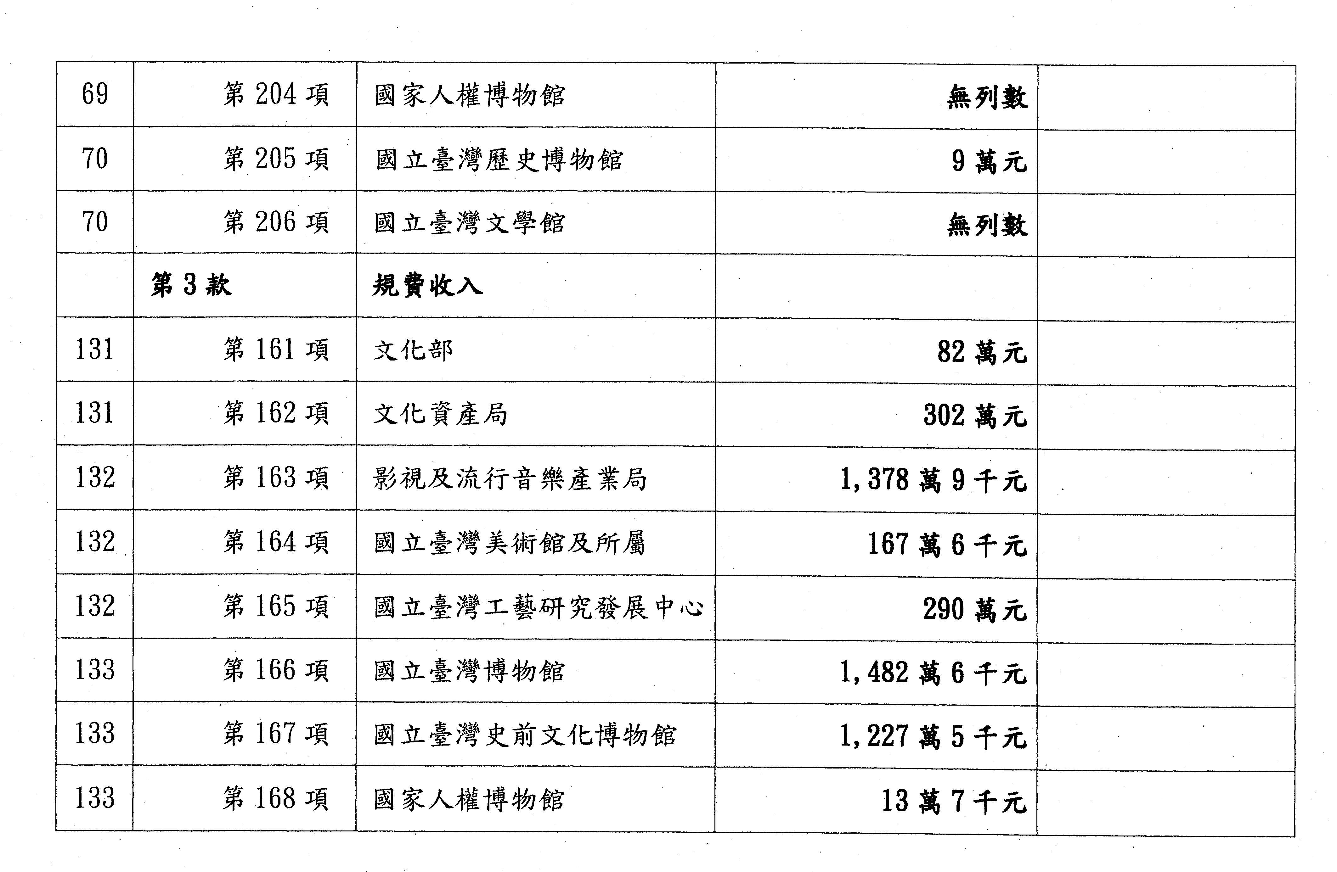 3.國立文化機構作業基金:
