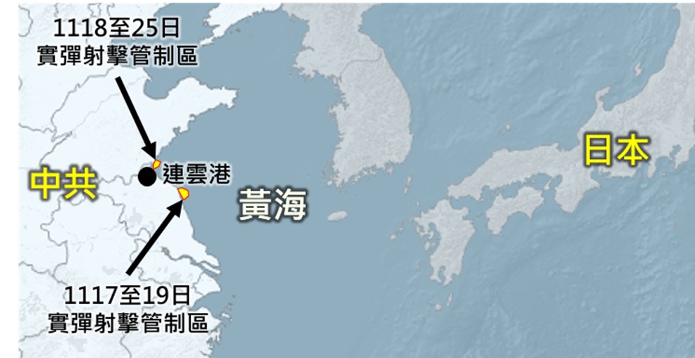一、中共運用「複合式」有限度手段施壓:外交方面,中共外交部、國臺辦、國防部等部門,發表恫嚇言論,並取消原訂11月下旬日、韓、「中」文化部長會議;輿論方面,透過官媒操作日本間諜竊密、「琉球地位未定論」等敘事;經貿方面,發布赴日旅遊留學警示、暫緩民間藝文交流活動,以及中止重啟日本水產品進口;灰帶及軍事方面,渲染中共海警船在釣魚臺12浬內例行活動,以及在黃海岸際小型火砲射擊(詳如次頁圖),配合爭議訊息操作,企圖透過「複合式」、「有限度」脅迫手段,施壓日本撤回言論與讓步。
