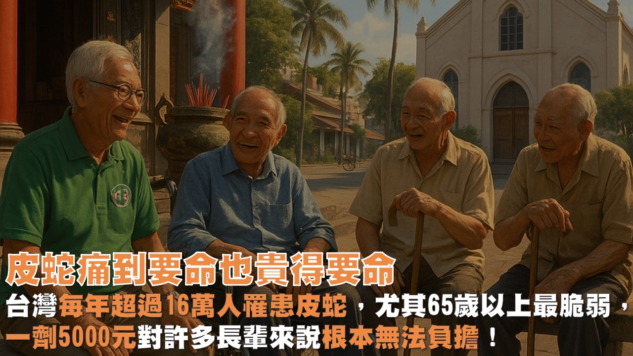 我們都很努力在推動、打造健康台灣,但最能保護老人的疫苗卻遲遲沒有補助。帶狀皰疹(皮蛇)疫苗不是奢侈品,是老人最需要、最有效的公共衛生投資。