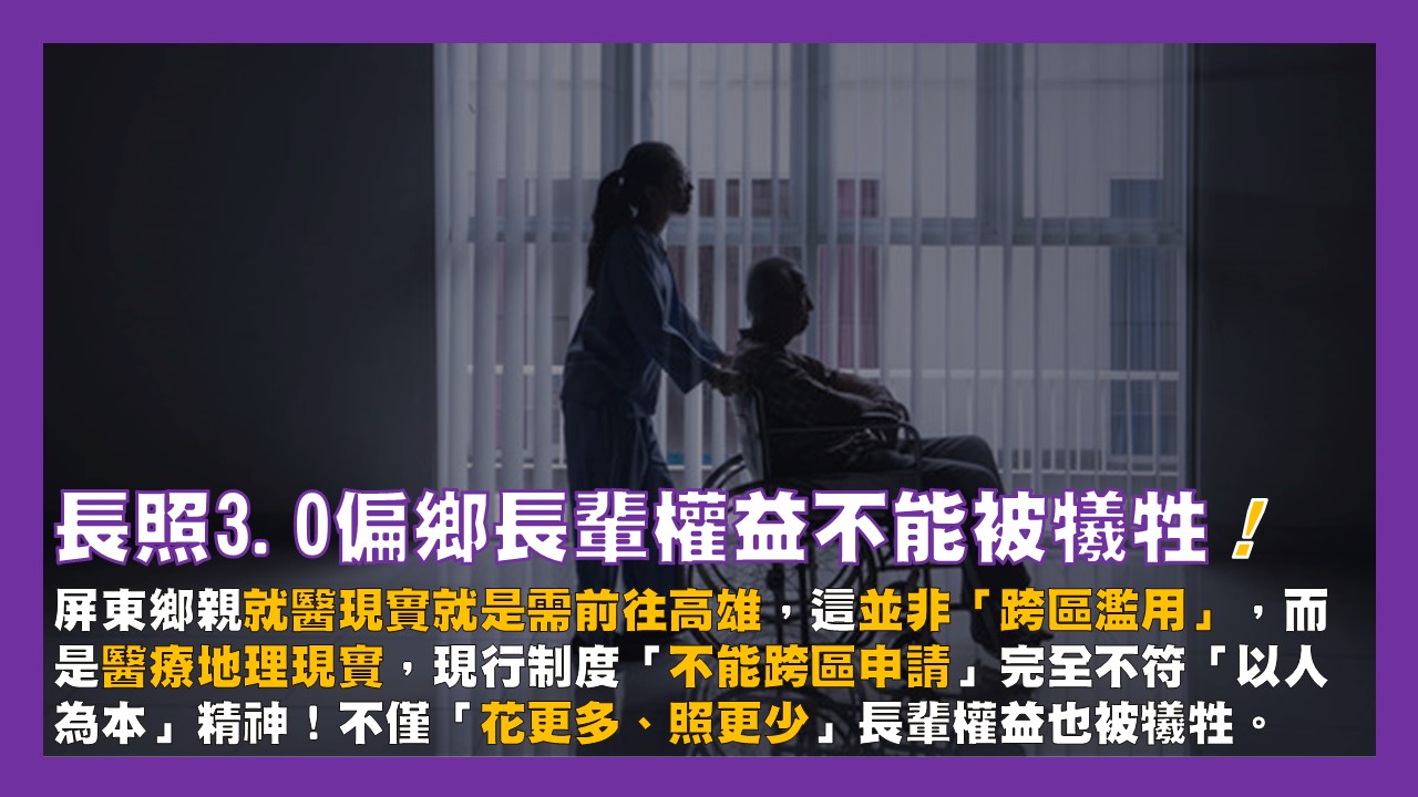 壹、長照3.0偏鄉長輩權益不能被犧牲