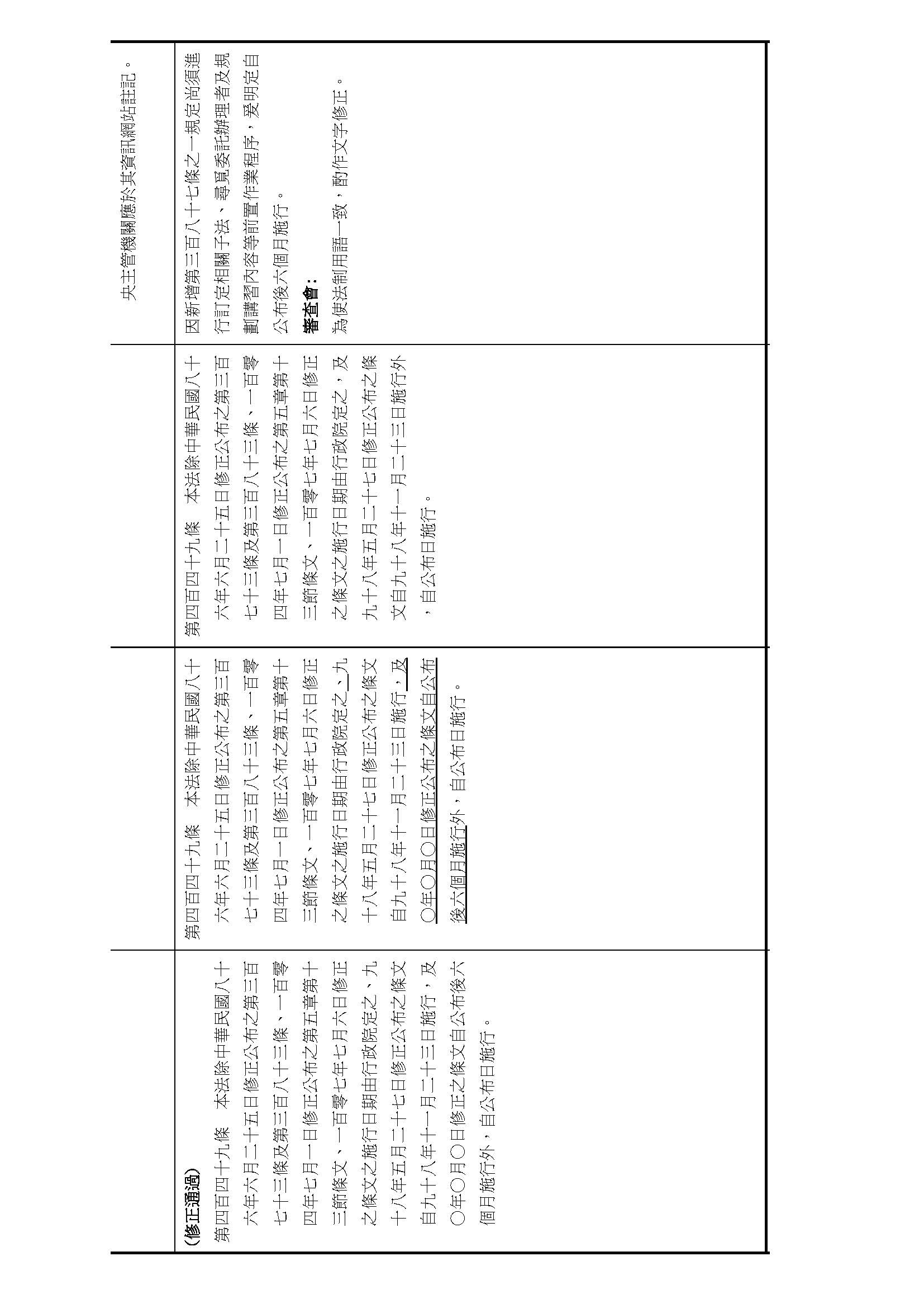 第四百四十九條 本法除中華民國八十六年六月二十五日修正公布之第三百七十三條及第三百八十三條、一百零四年七月一日修正公布之第五章第十三節條文、一百零七年七月六日修正之條文之施行日期由行政院定之、九十八年五月二十七日修正公布之條文自九十八年十一月二十三日施行,及一百十四年十二月九日修正之條文自公布後六個月施行外,自公布日施行。