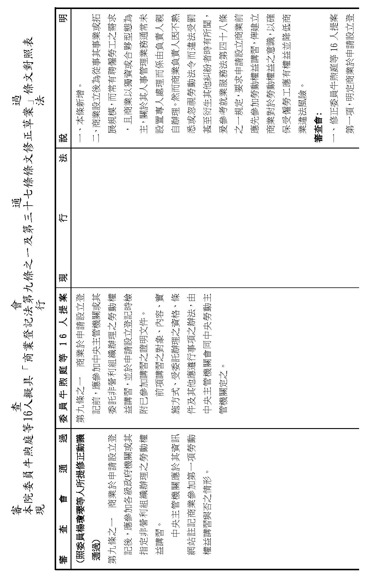 本案之修正主要係考量勞工權益,要求公司登記前參加勞動權益講習,立意良善。惟公司法主要規範公司組織及行為,並保護公司、股東及債權人等合法權益。故有關勞工課程及相關訓練之規定,建議可回歸勞動法規訂定,並由勞動主管機關主責。
