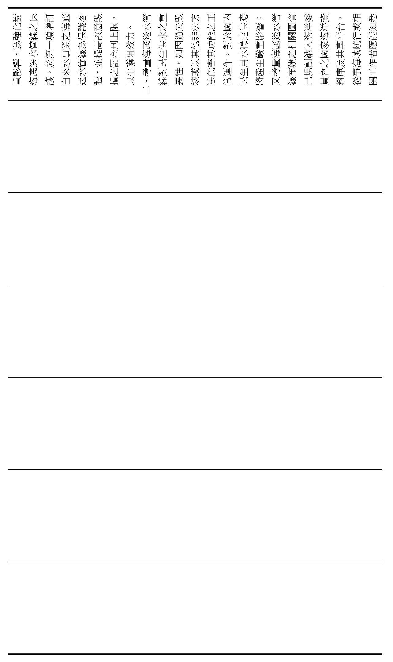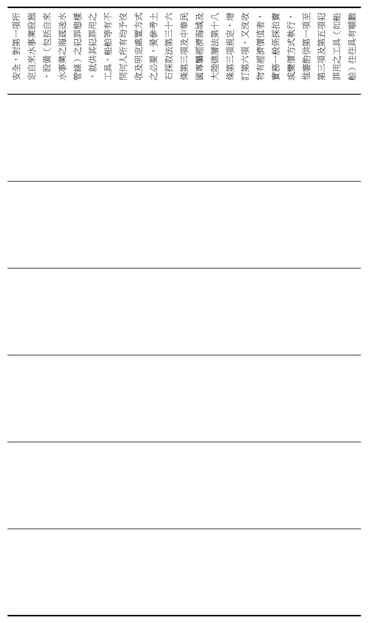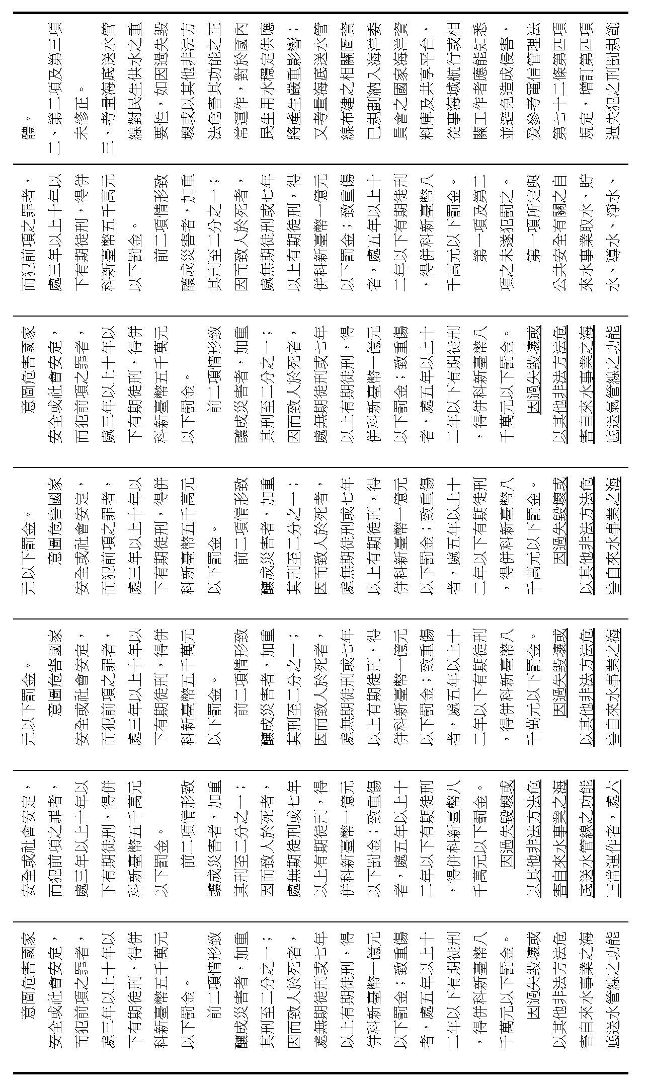 1.有關「將海底電力電纜、輸氣管線及送水管線納入法規保護範圍」、「新增過失犯刑罰規範」及「增訂故意犯之犯罪用具、船舶或其他機械設備沒收及處置規定」部分