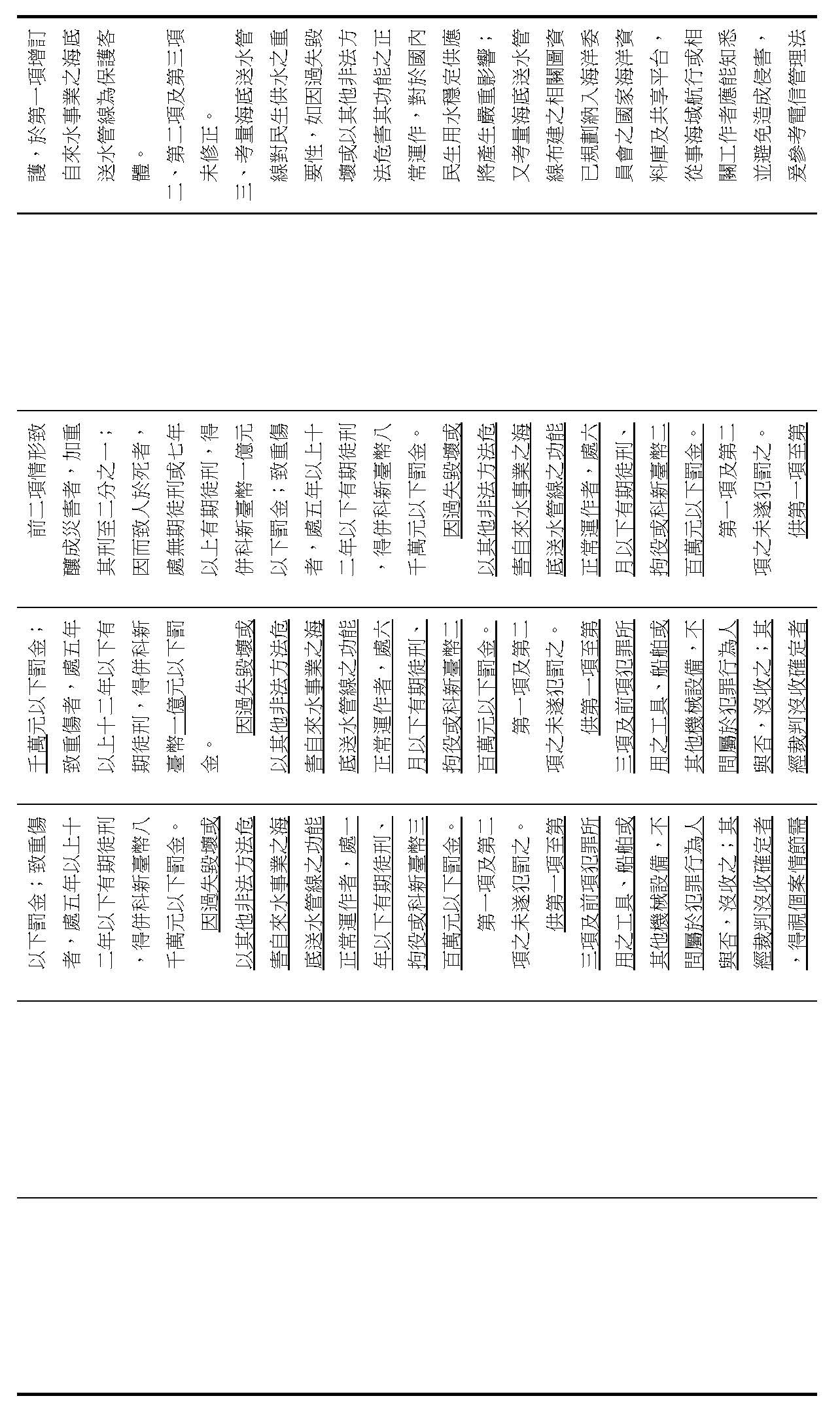 (一)增訂第四項及第六項,明定過失犯之刑罰規範。以及規範犯罪所用之船舶、工具等設備的沒收與處置程序。