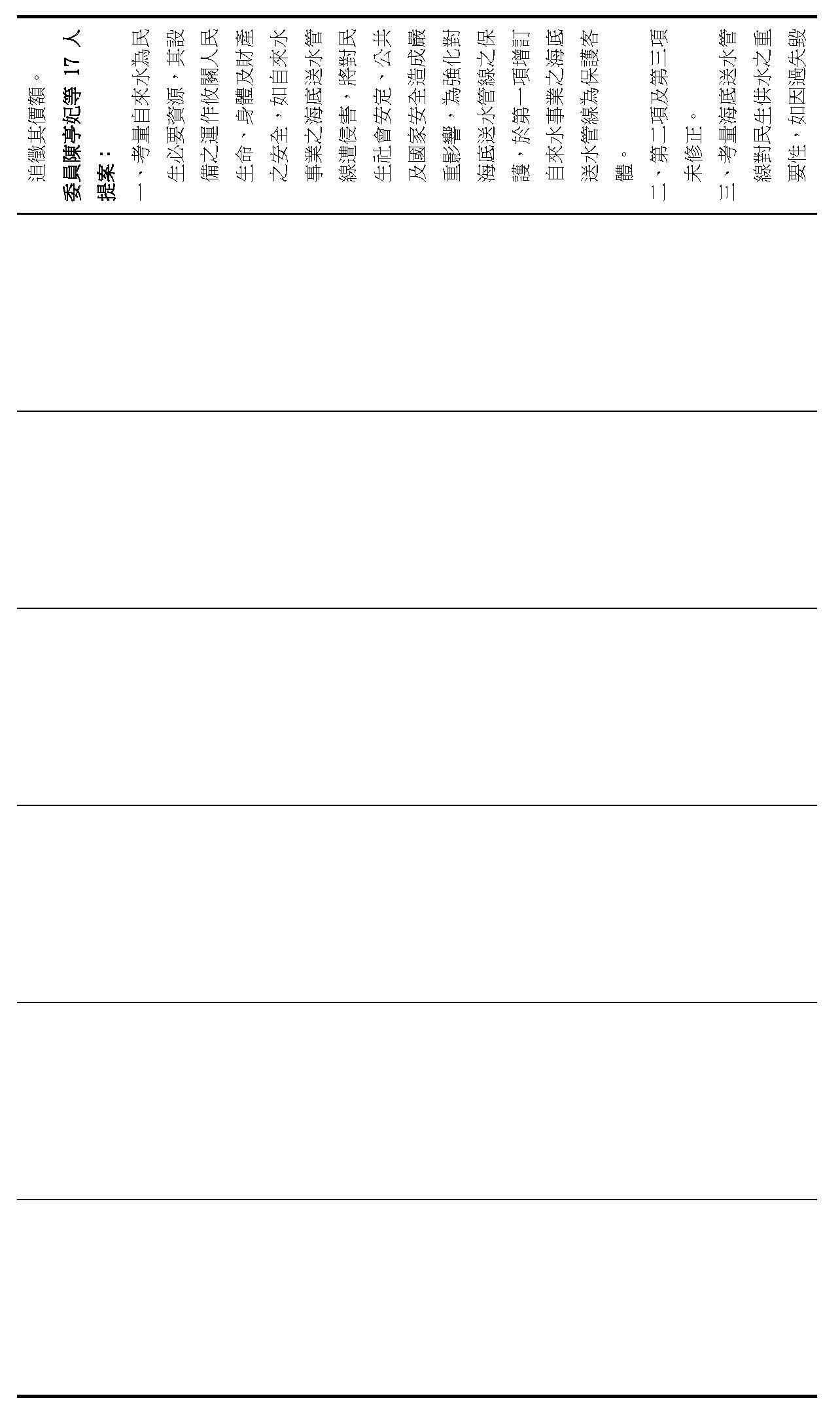 九、委員陳亭妃等17人「自來水法第九十七條之一條文修正草案」提案要旨:(參閱關係文書11016485號)