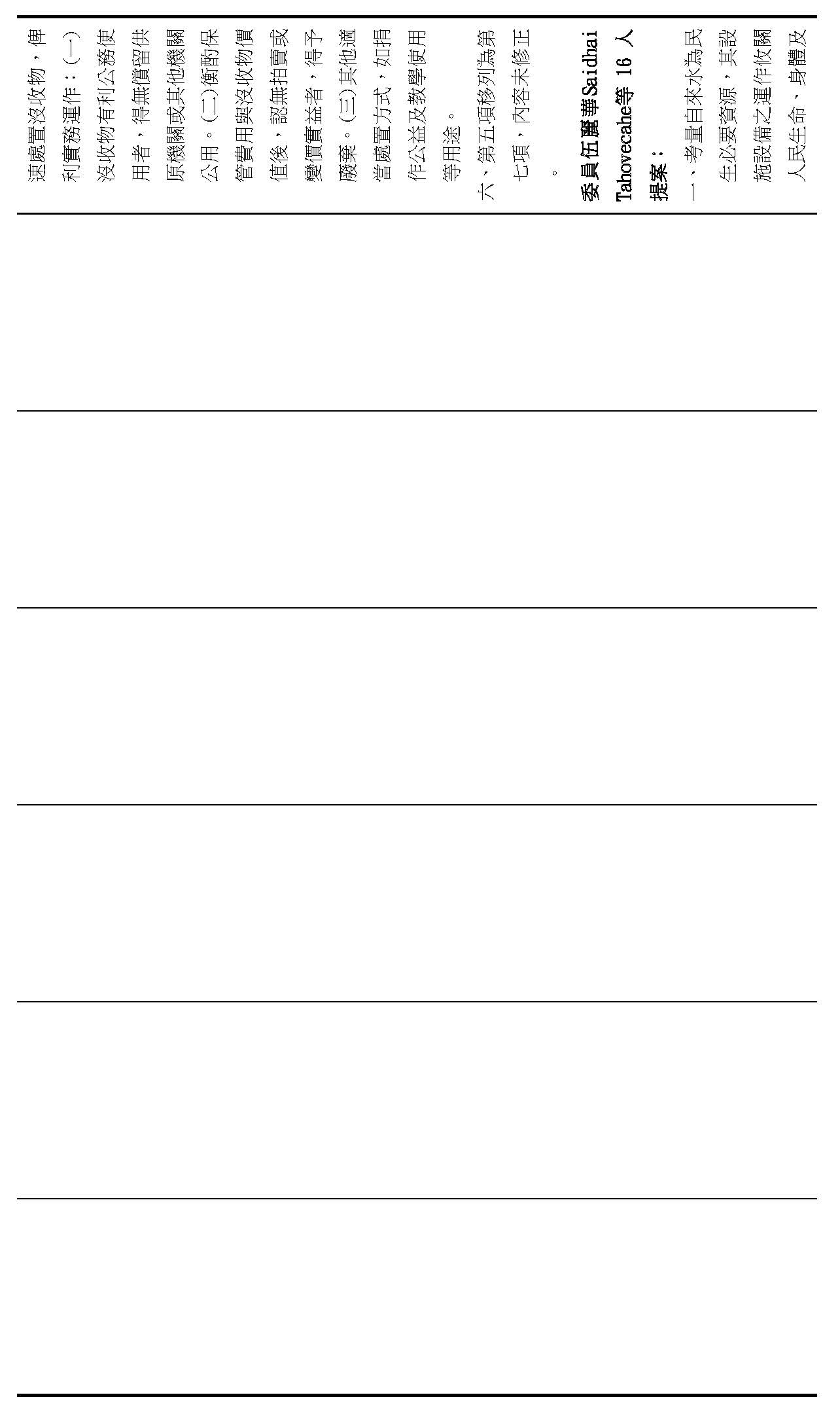 六、本院經濟委員會報告併案審查行政院函請審議、委員王美惠等19人、委員李坤城等18人、委員伍麗華Saidhai Tahovecahe等16人、委員羅美玲等19人、委員賴惠員等21人、委員黃捷等22人、委員陳亭妃等17人、委員吳沛憶等16人分別擬具「自來水法第九十七條之一條文修正草案」及委員賴瑞隆等16人擬具「自來水法第三條、第十六條之一及第九十七條之一條文修正草案」案。(本案經提本院第11屆第4會期第2、4、4、4、5、5、5、5、5、4次會議報告決定:交經濟委員會審查。茲接報告,爰於本次會議提出討論。)