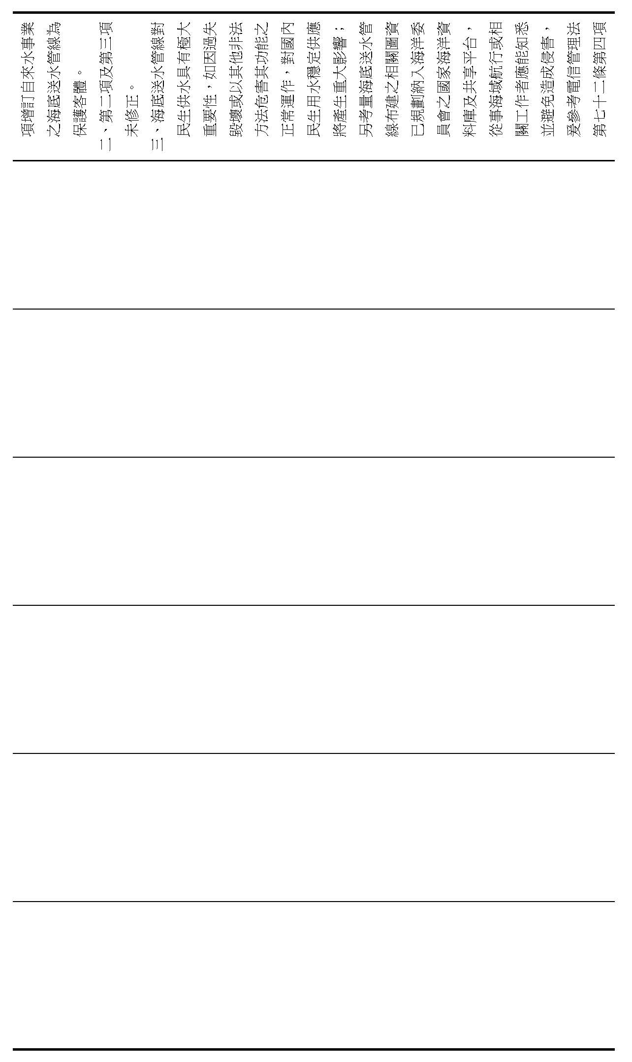 (一)增訂自來水事業之海底送水管線為保護客體。