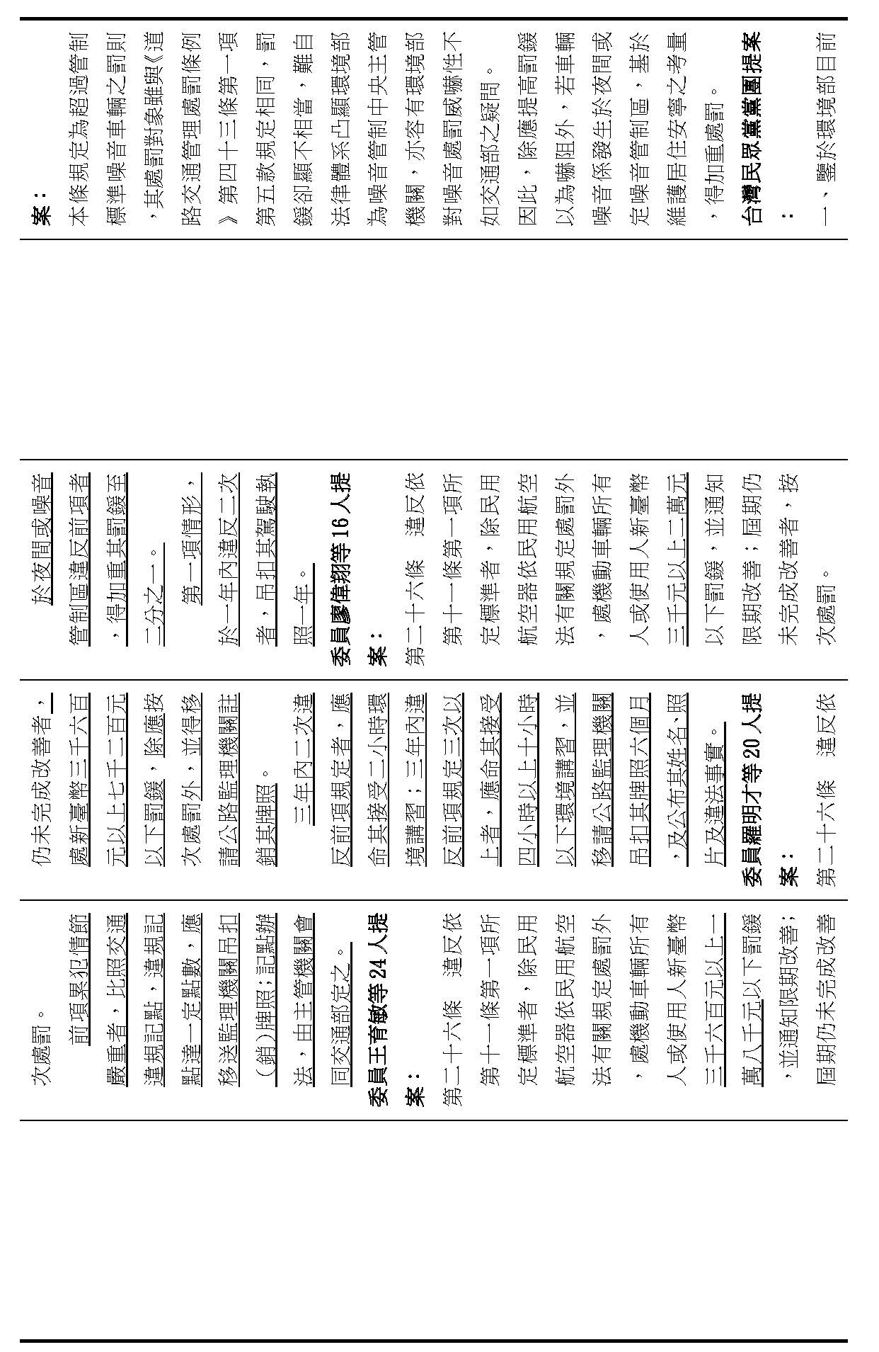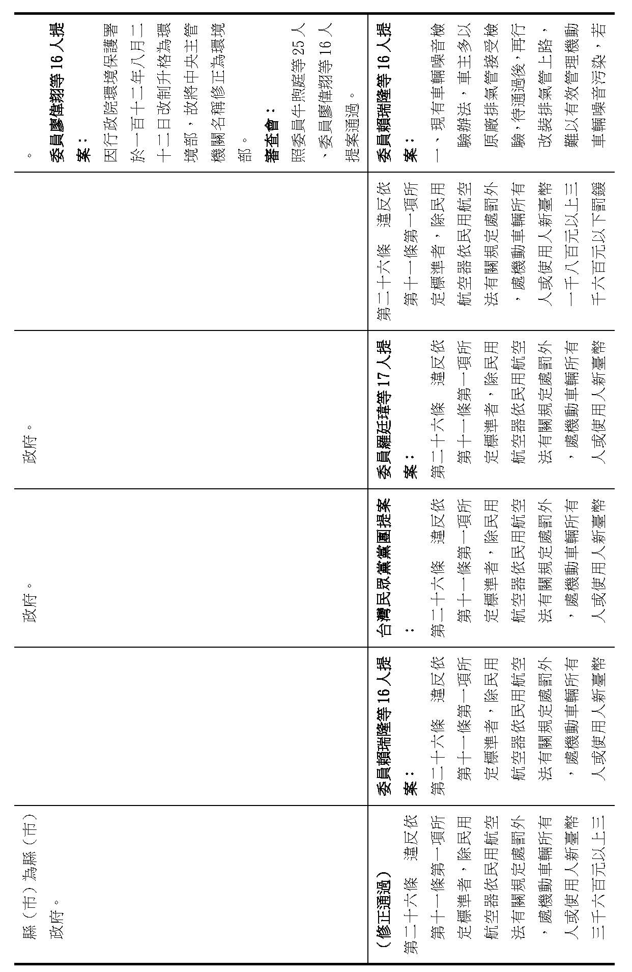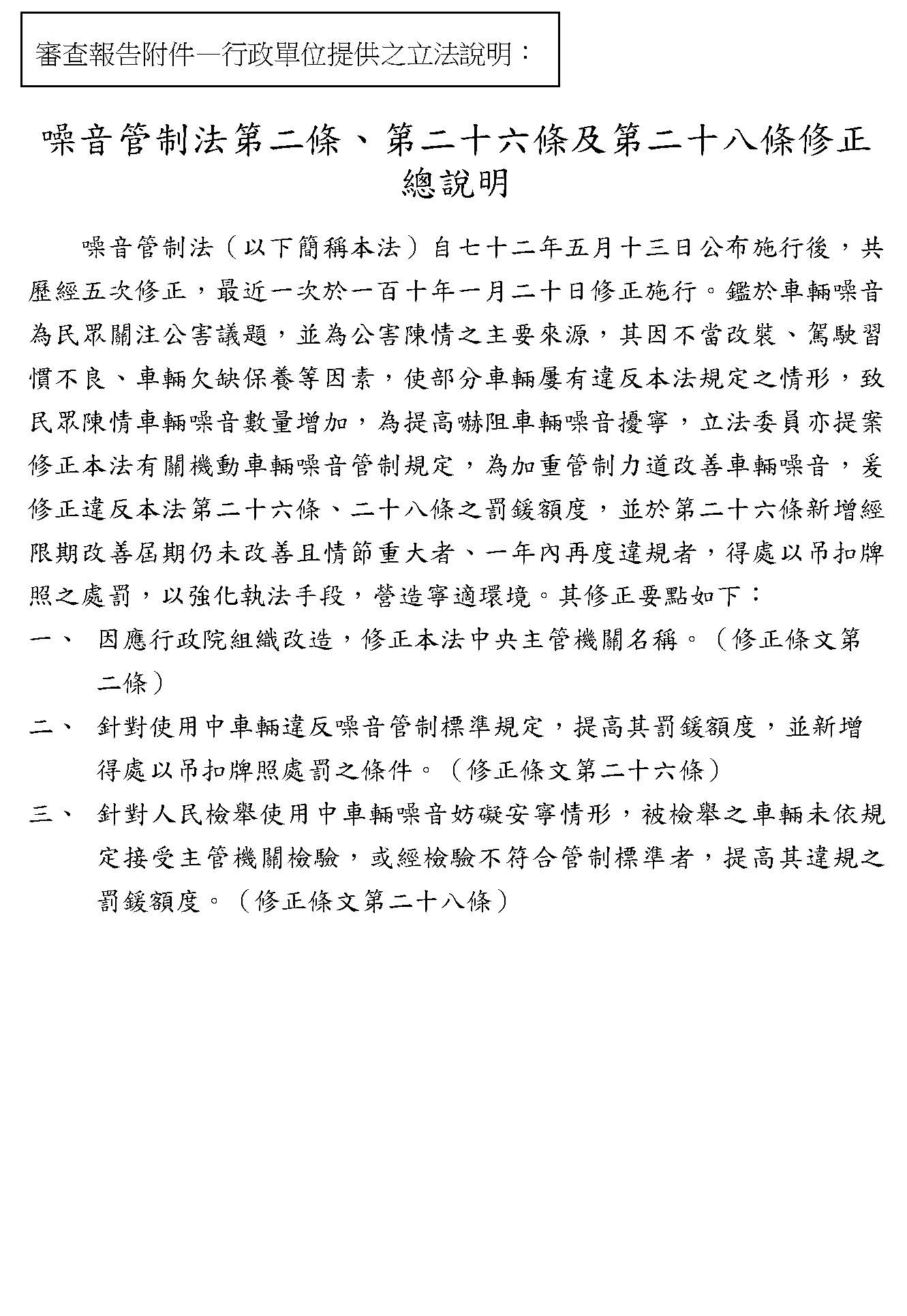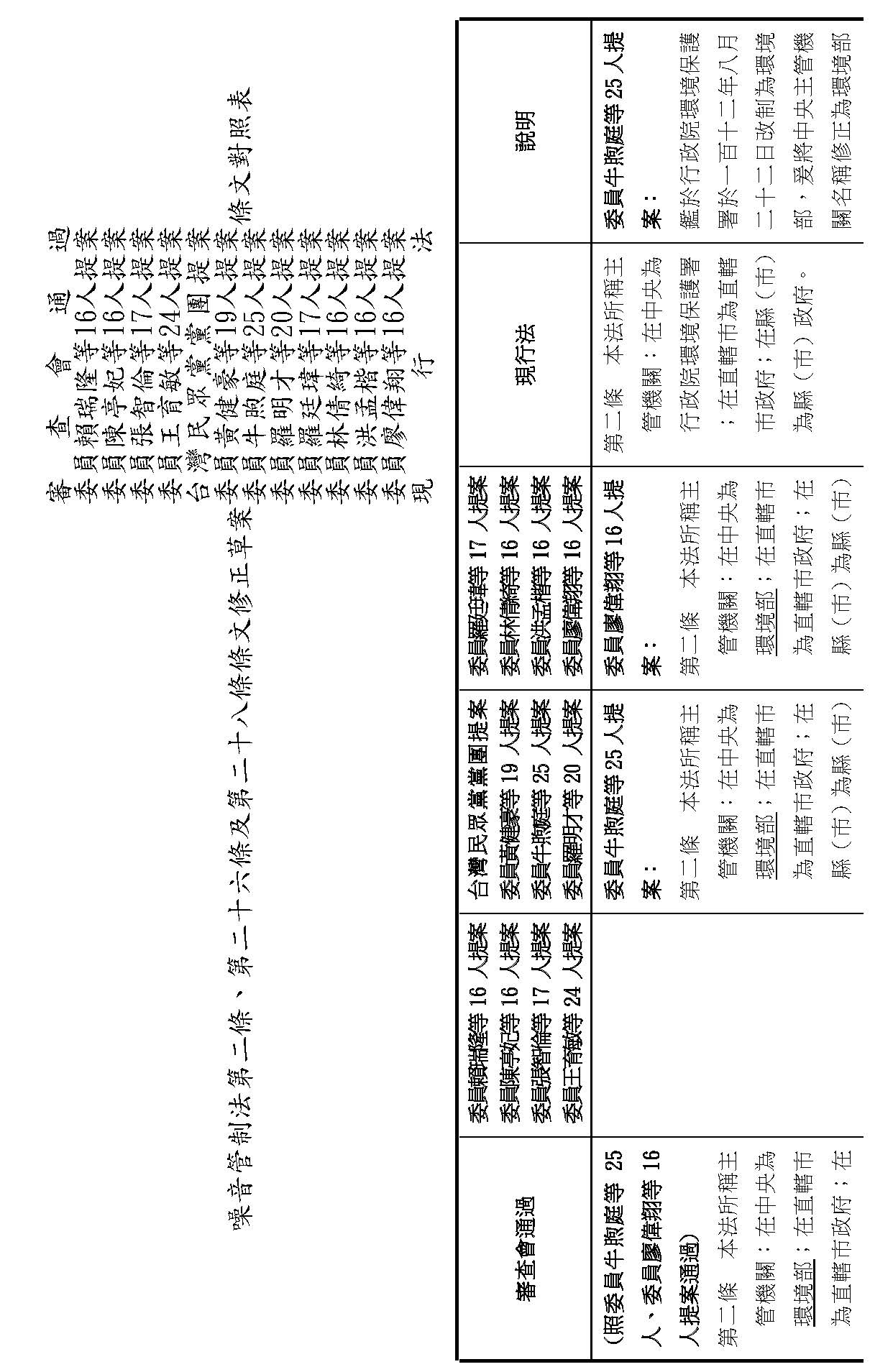 噪音管制法第二條、第二十六條及第二十八條條文修正草案(二讀)