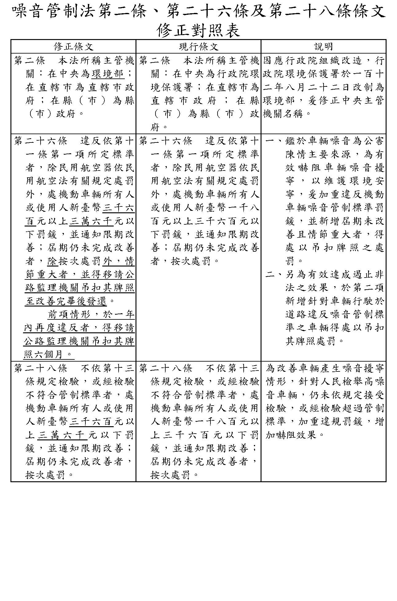 噪音管制法修正第二條、第二十六條及第二十八條條文(三讀)