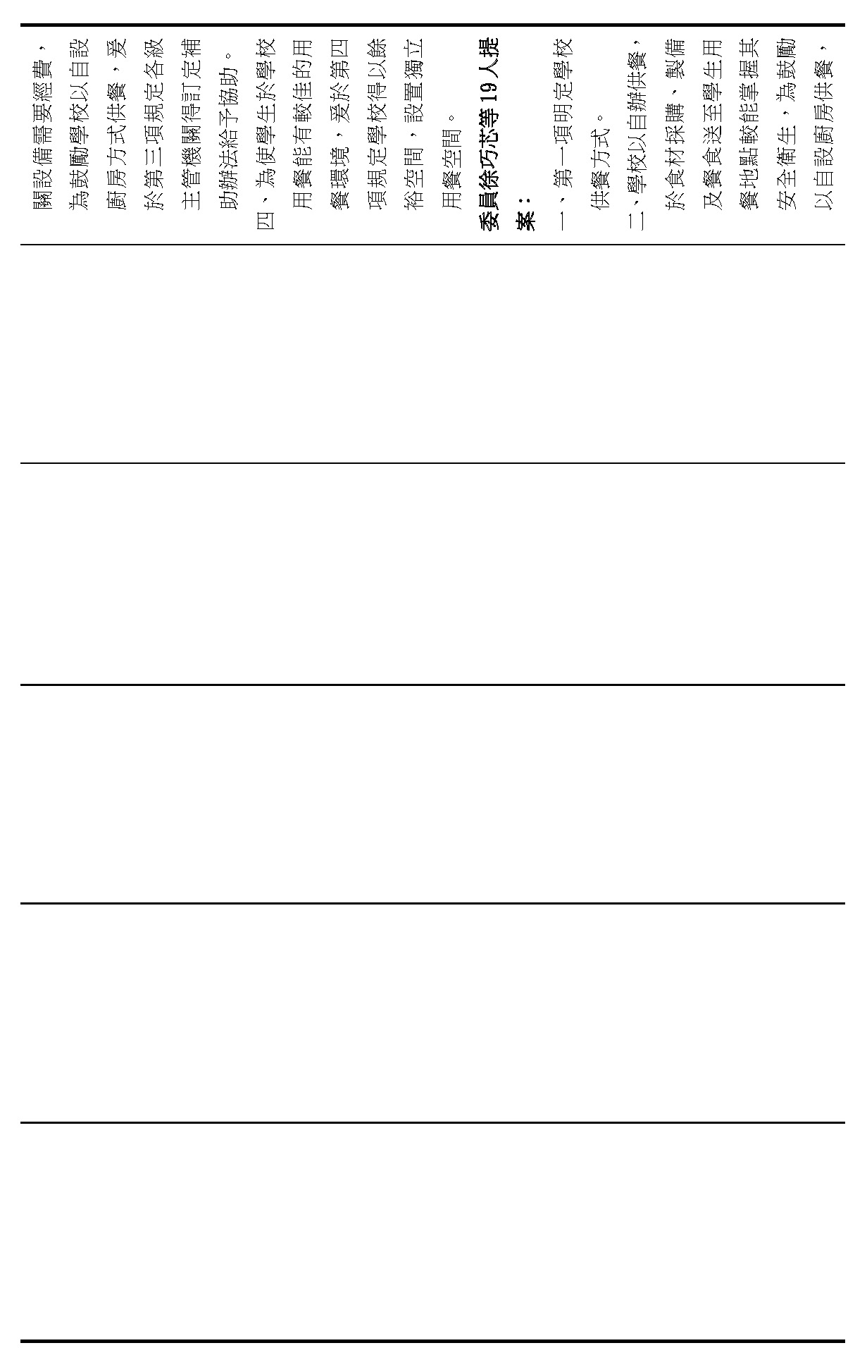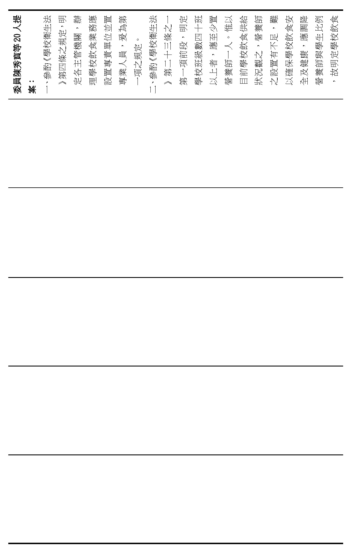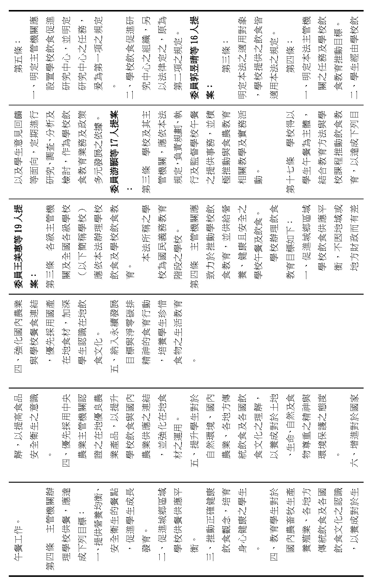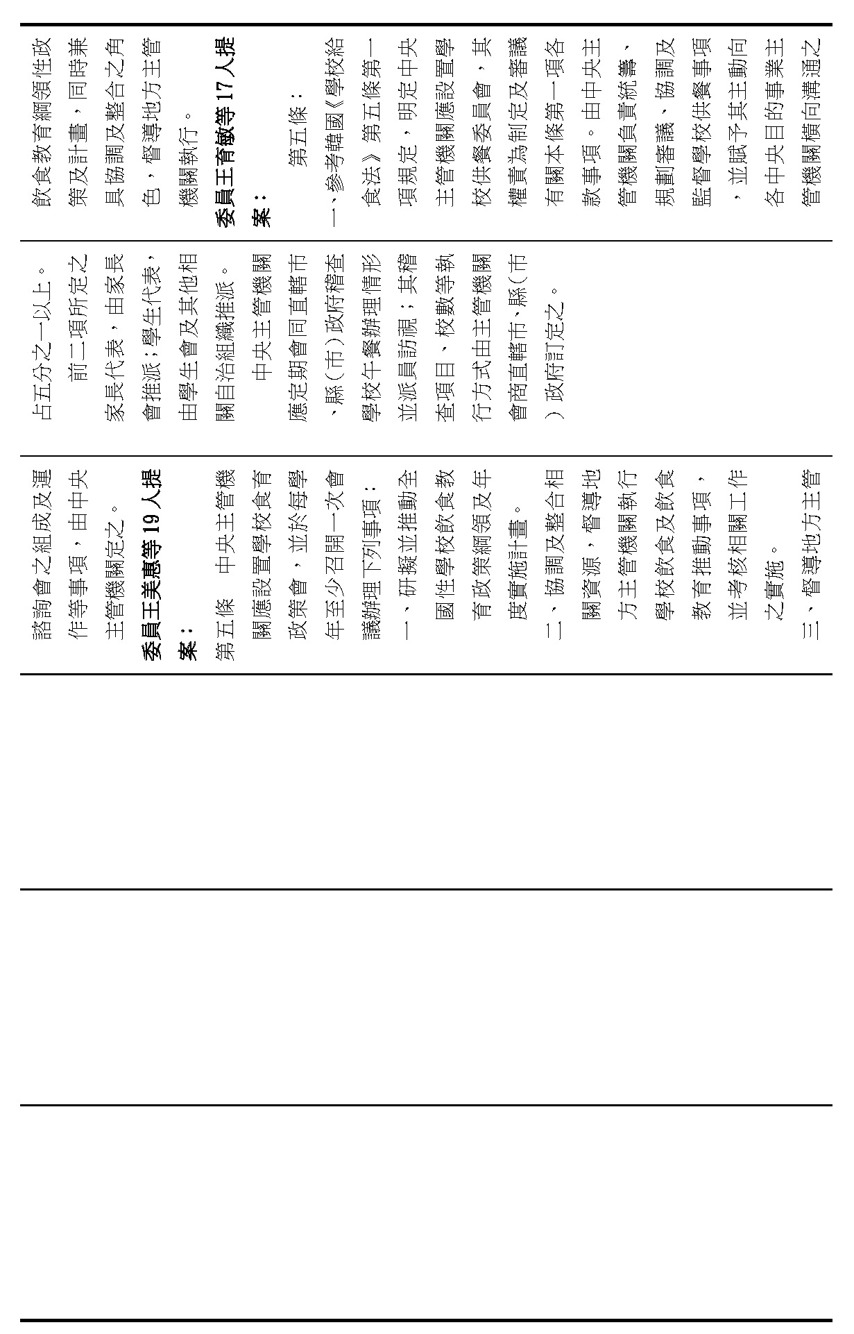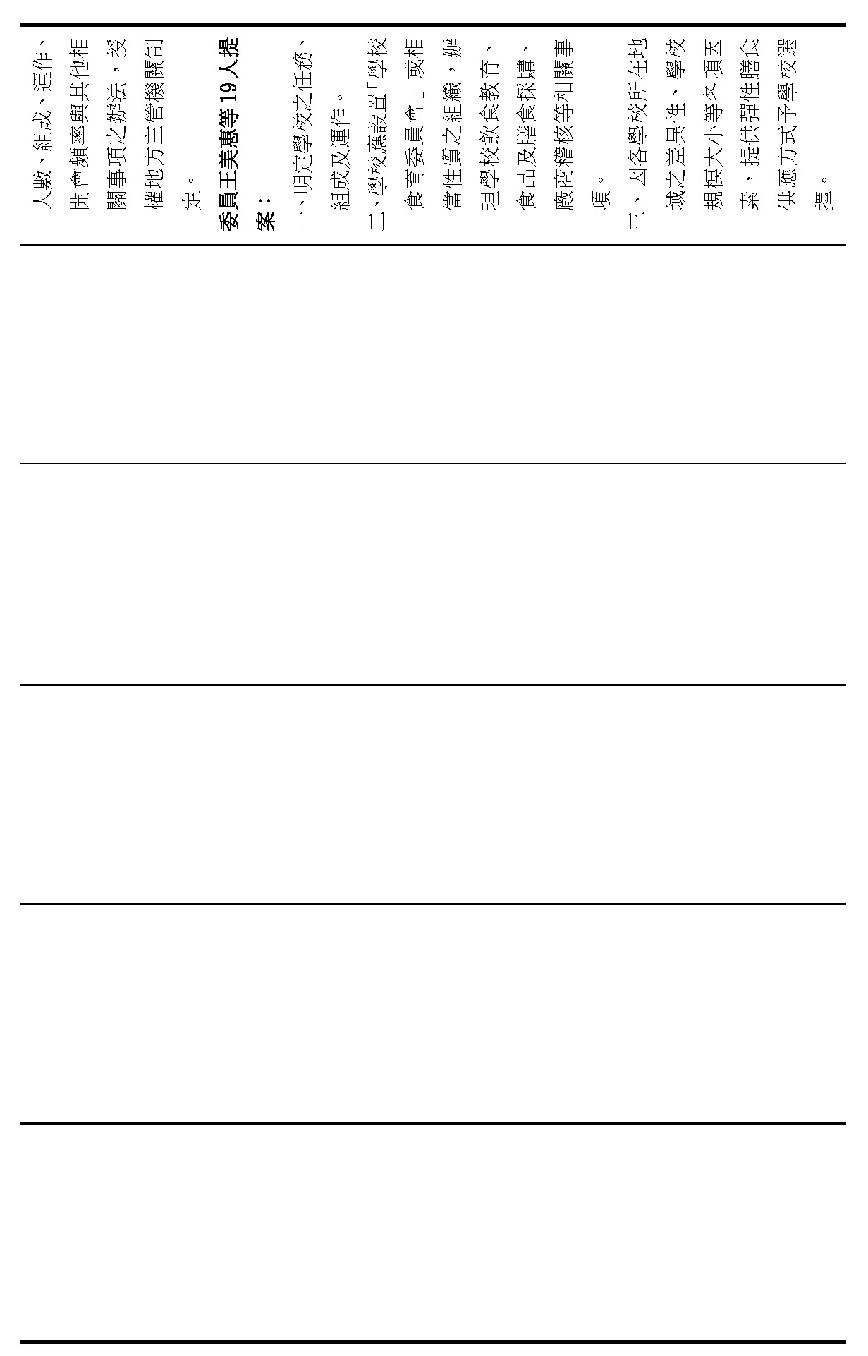 (四)委員王美惠等19人擬具「學校飲食法草案」案。