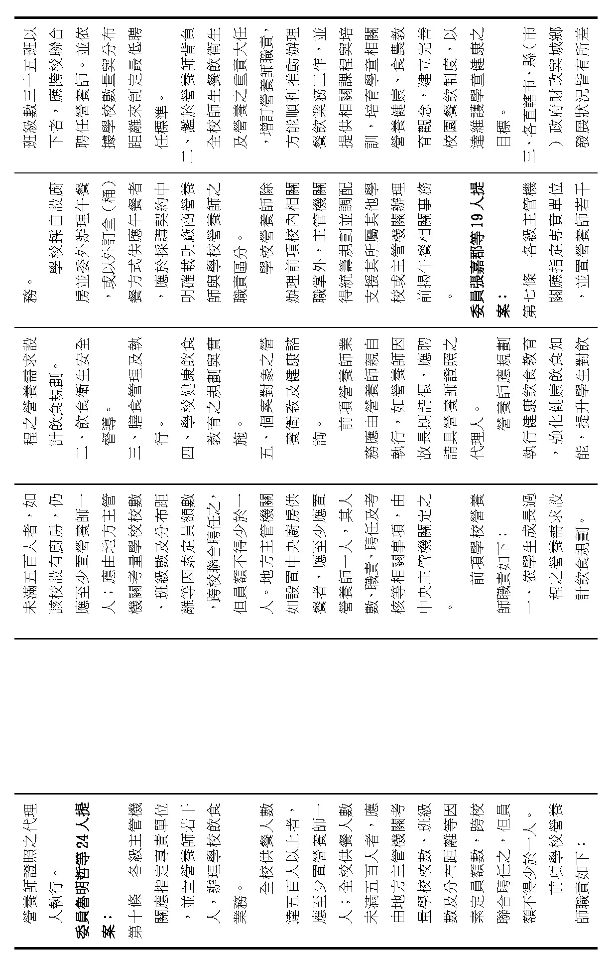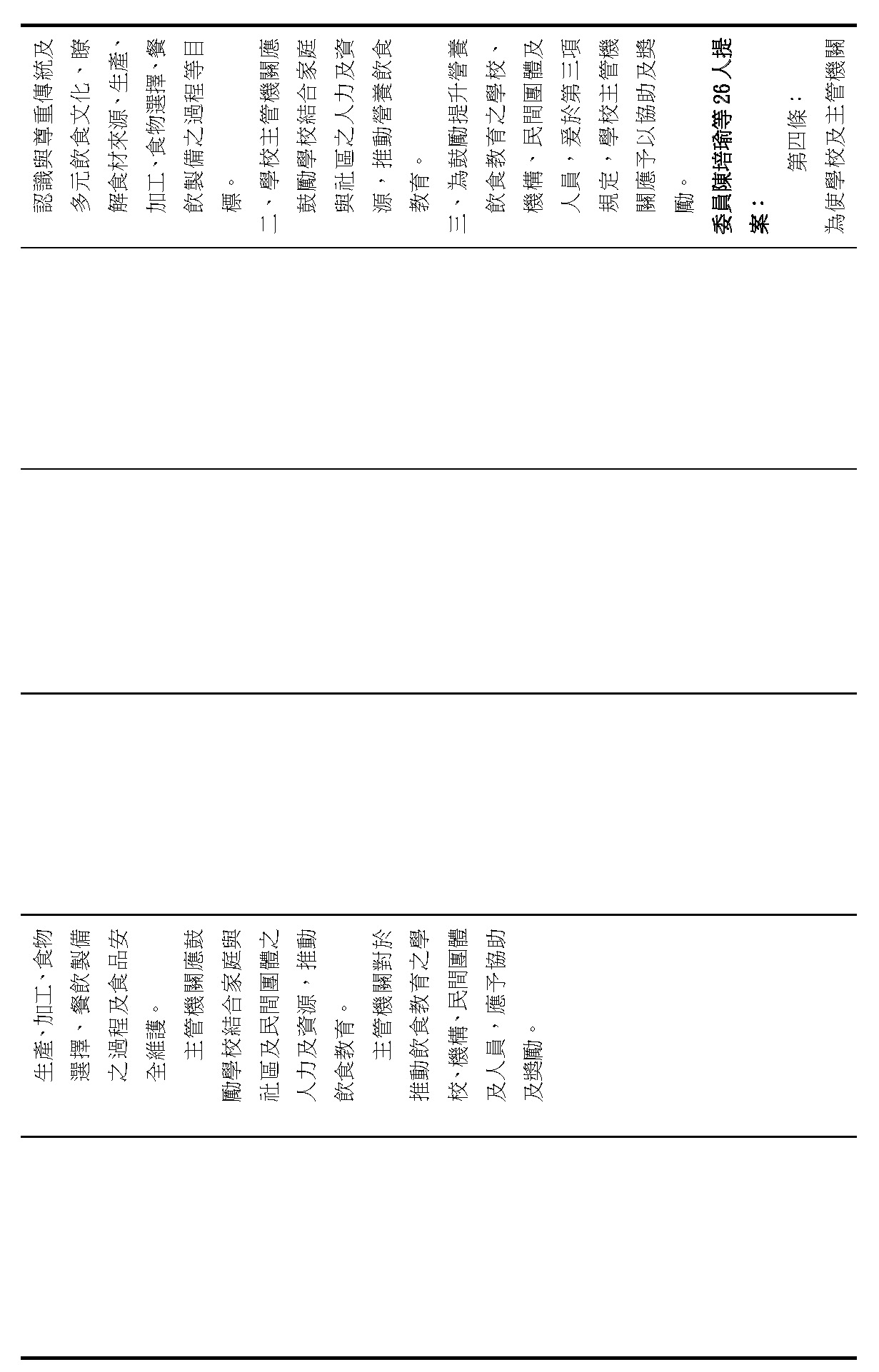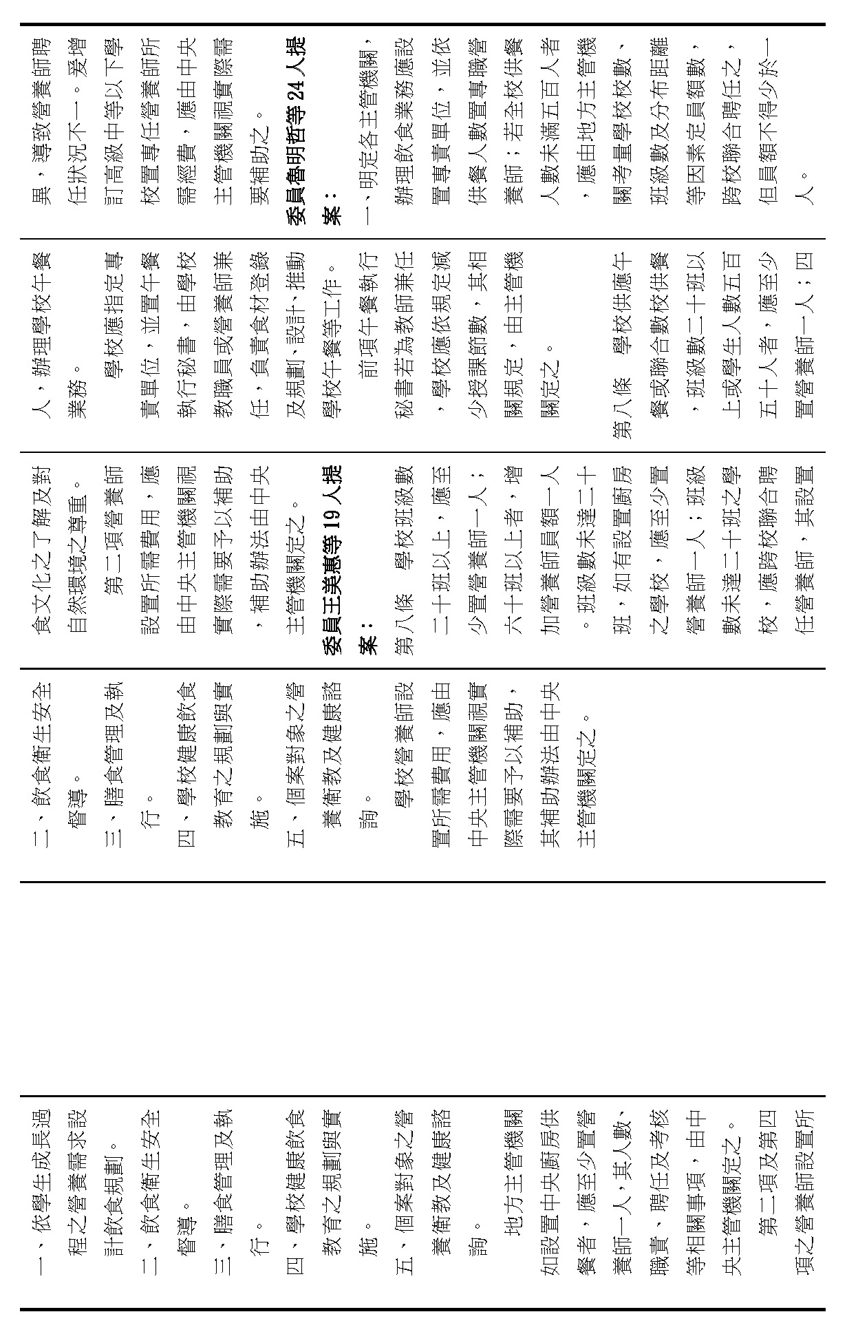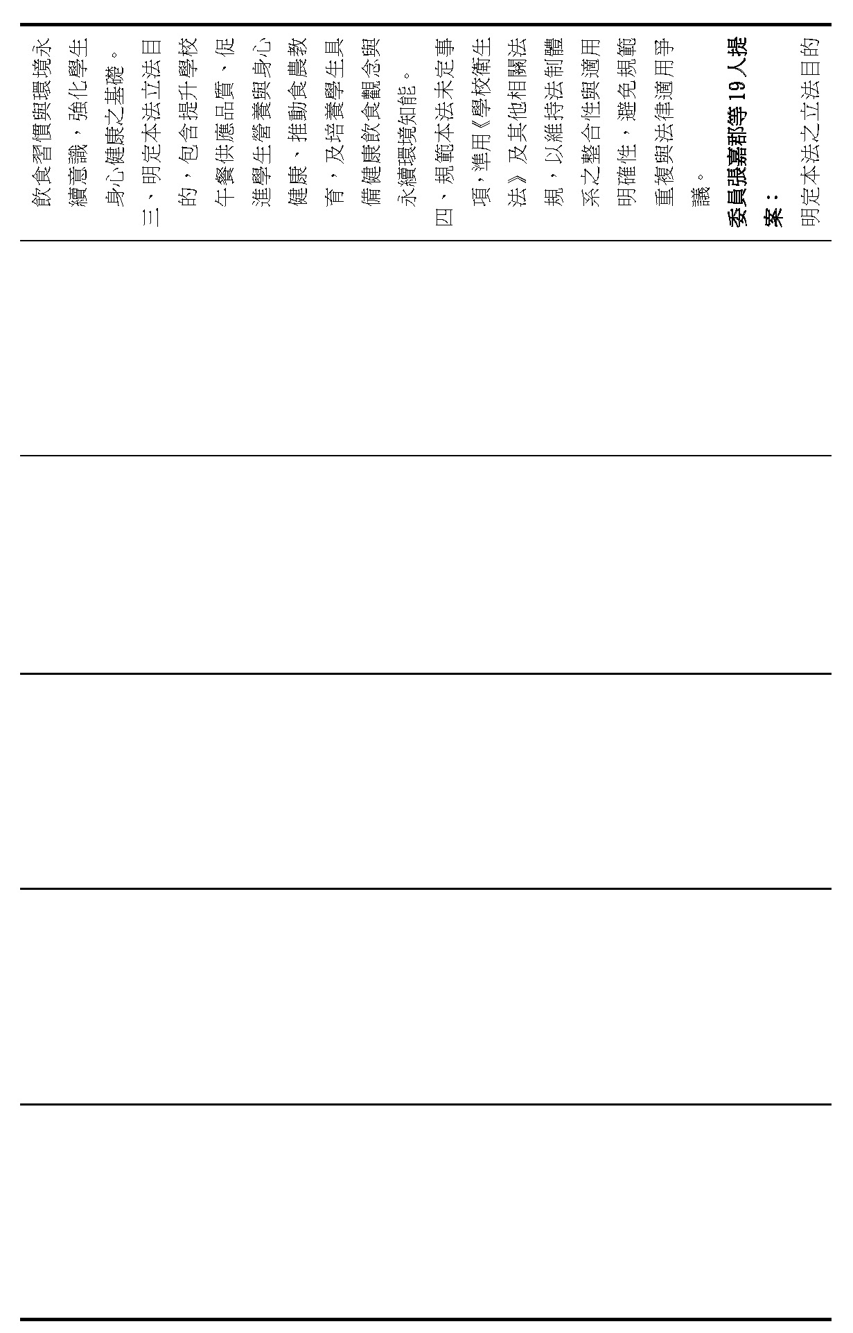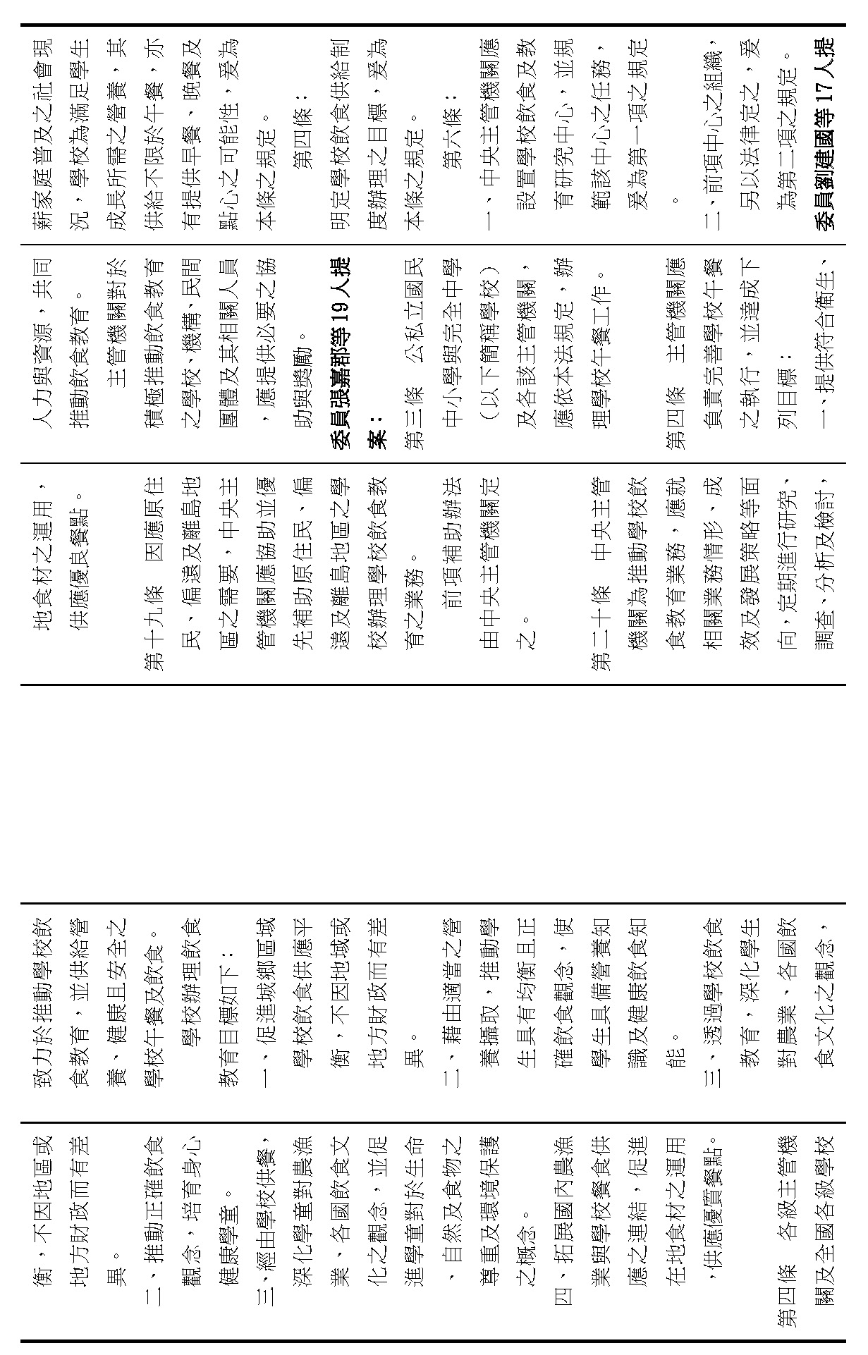 (四)委員王美惠等19人擬具「學校飲食法草案」案。