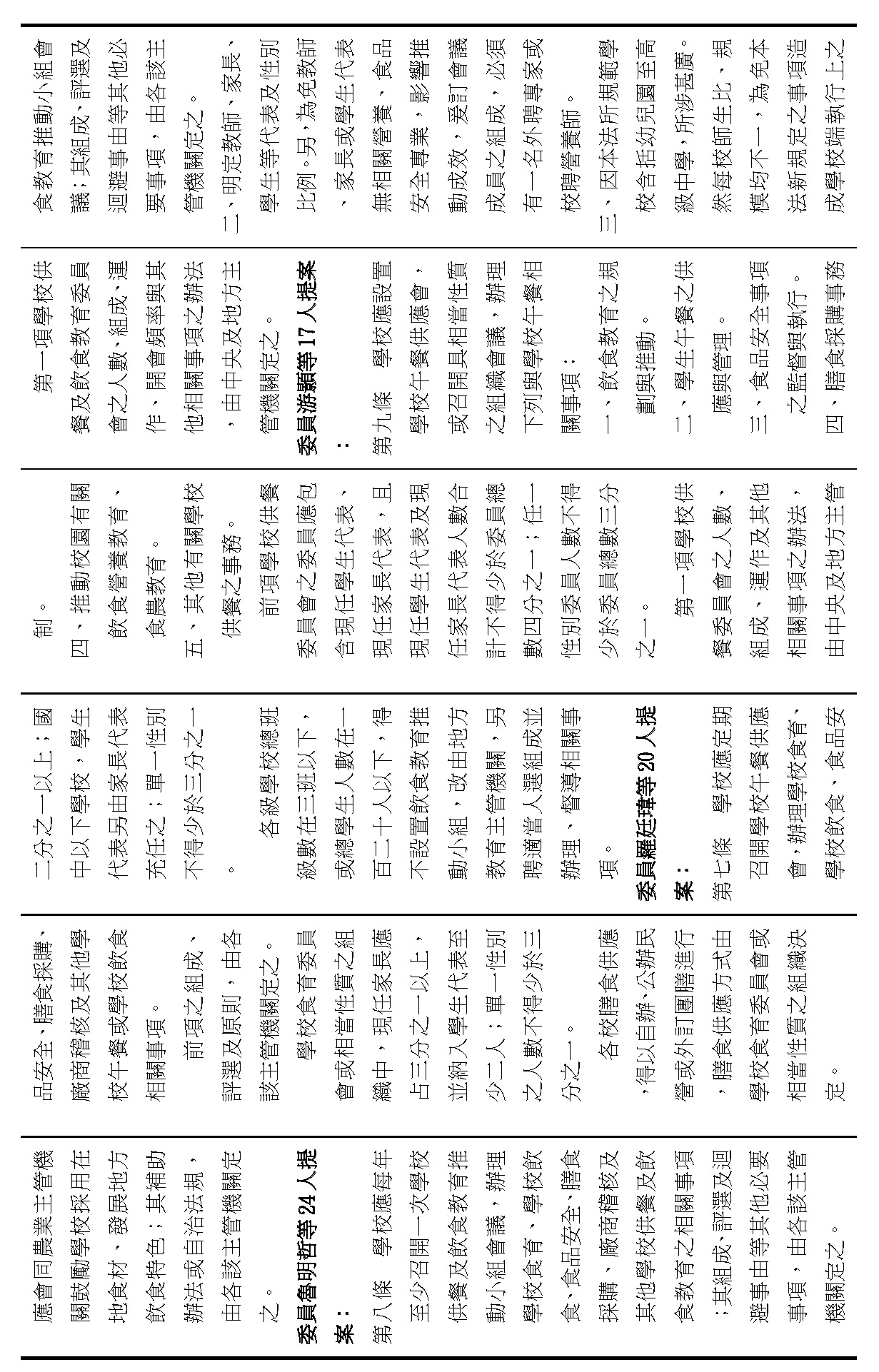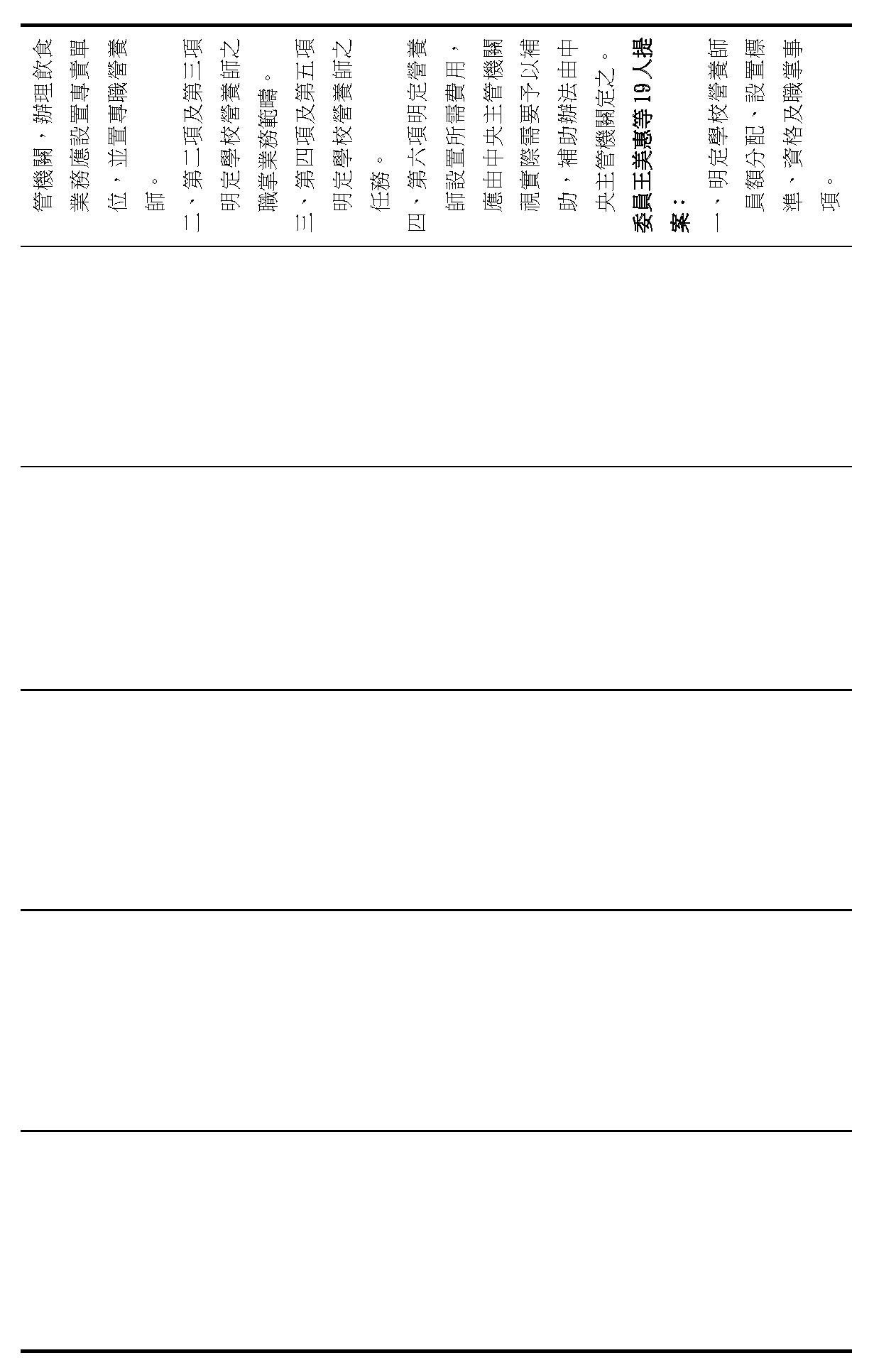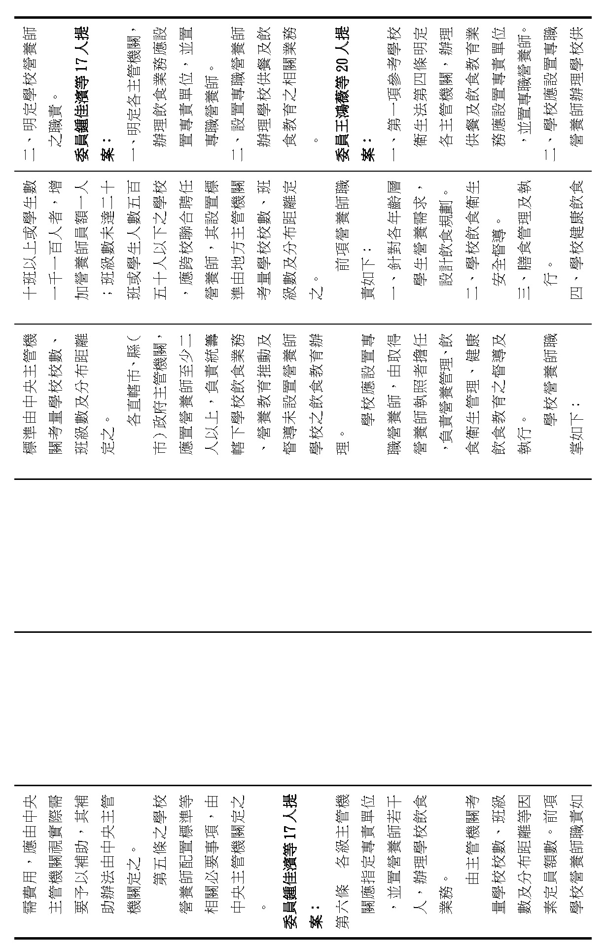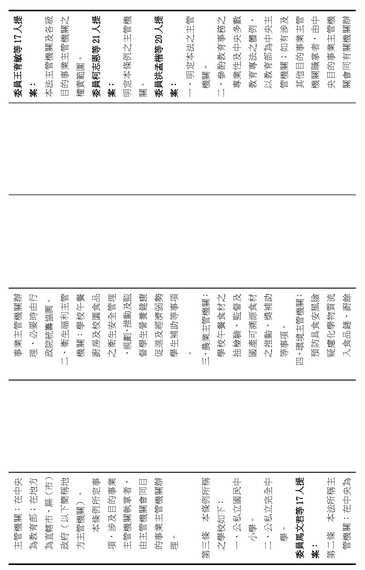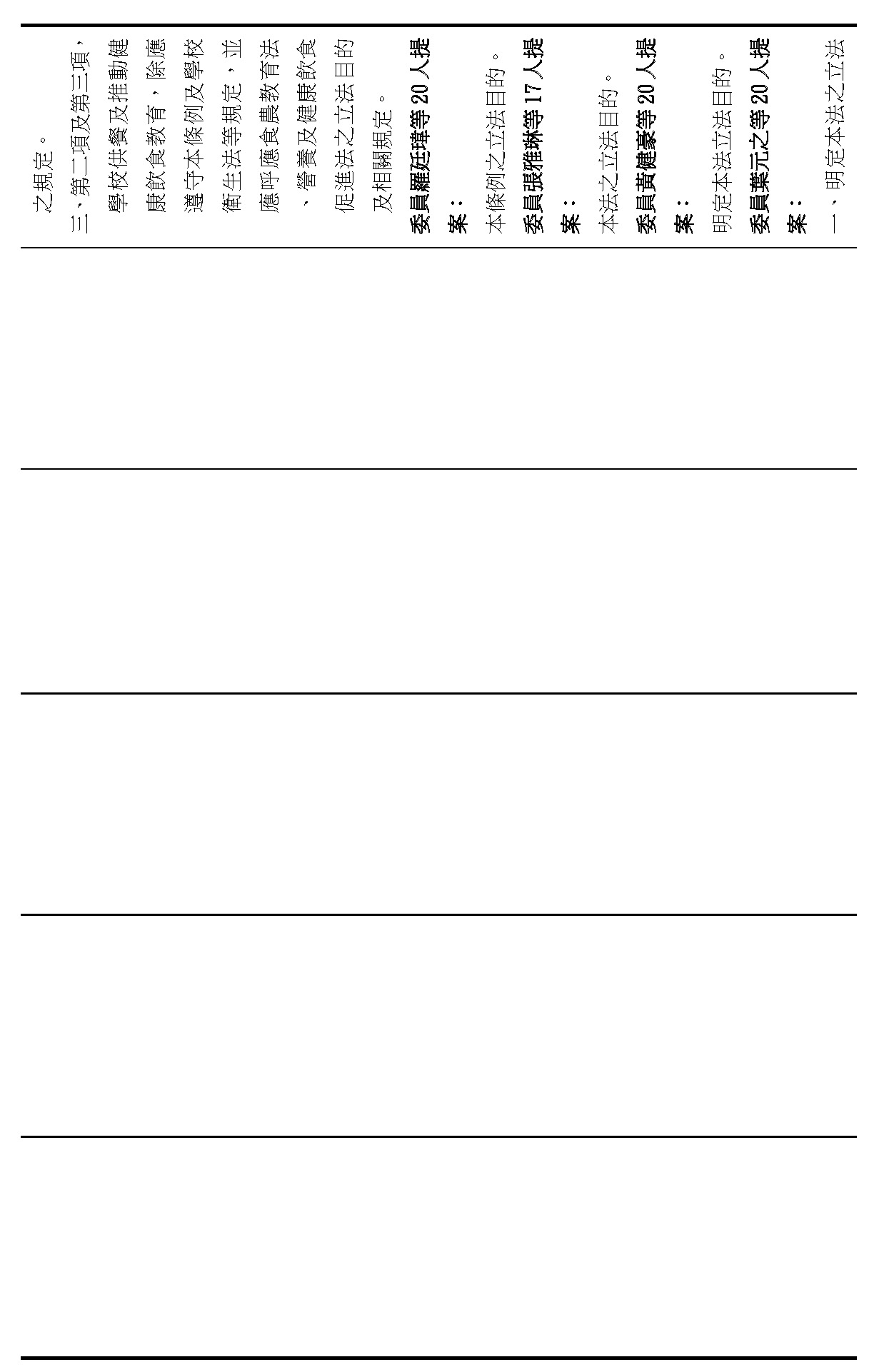 (四)委員王美惠等19人擬具「學校飲食法草案」案。