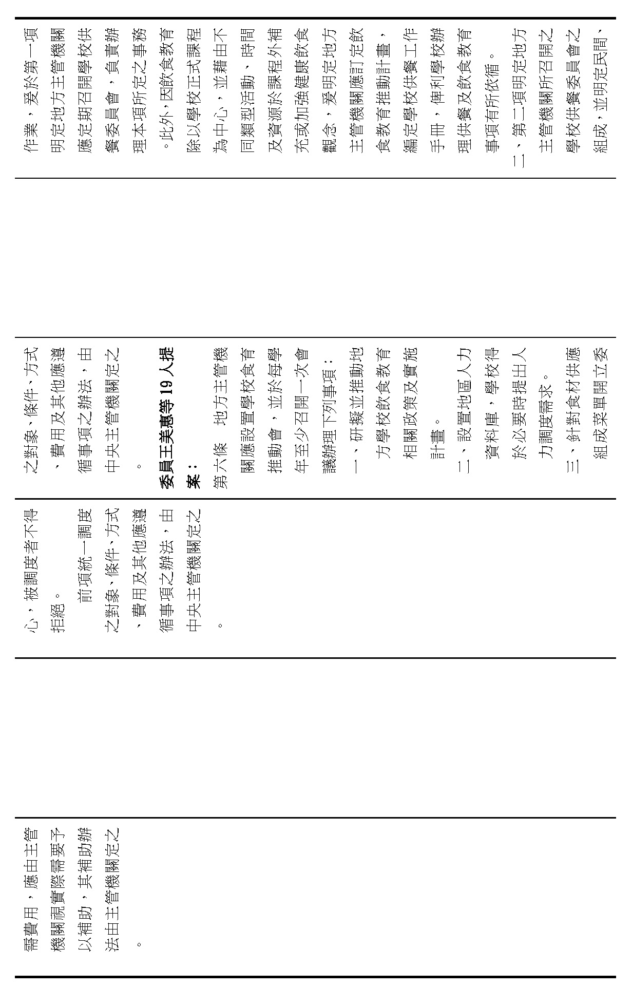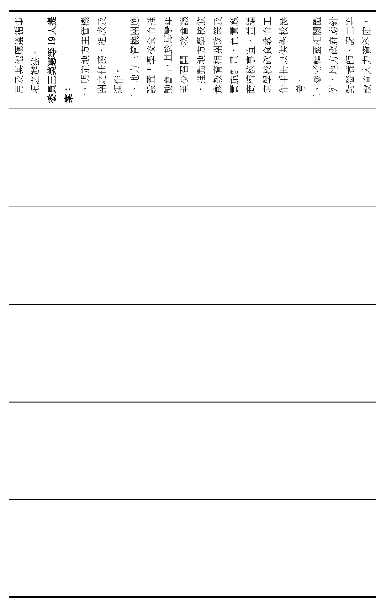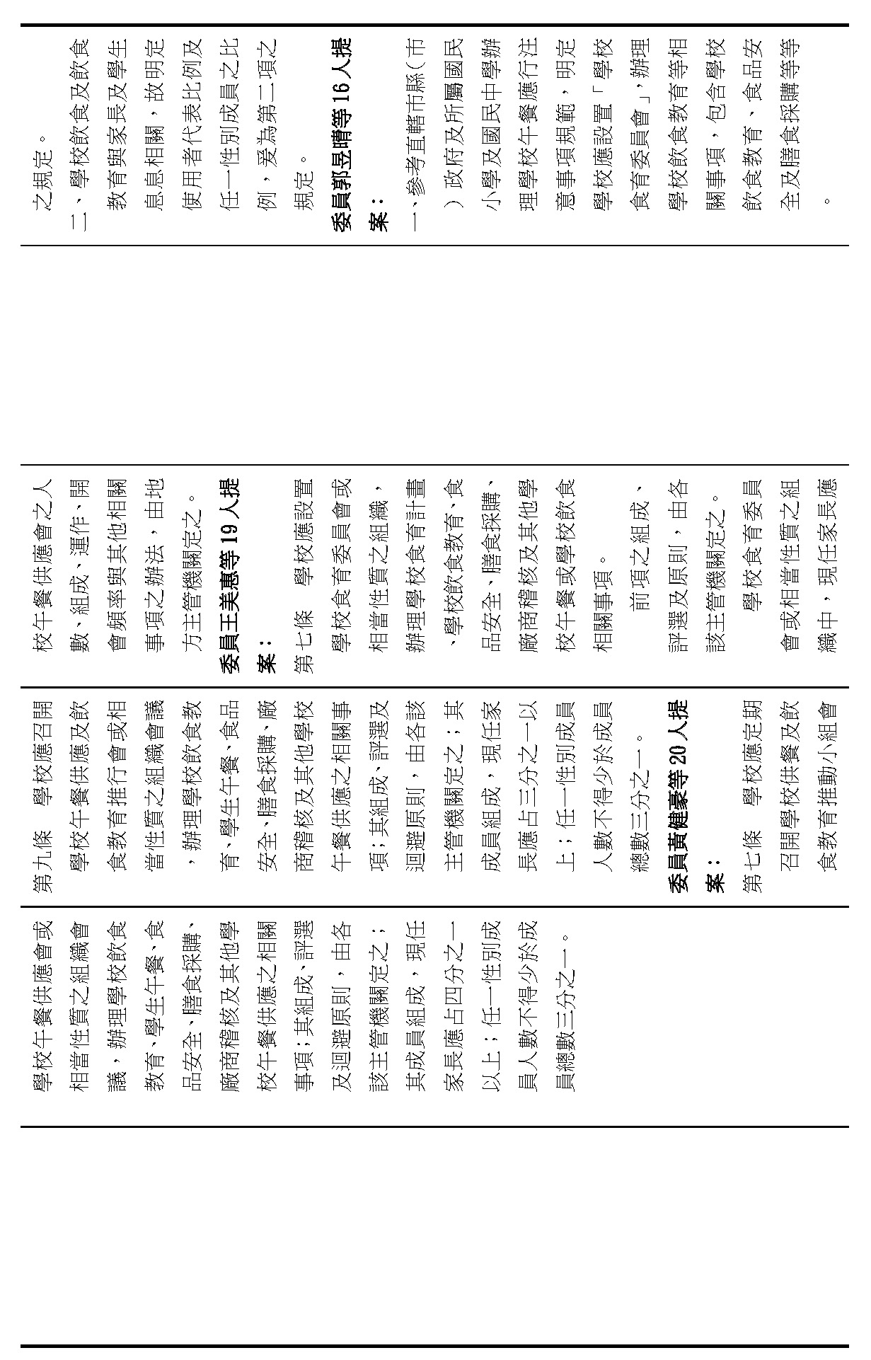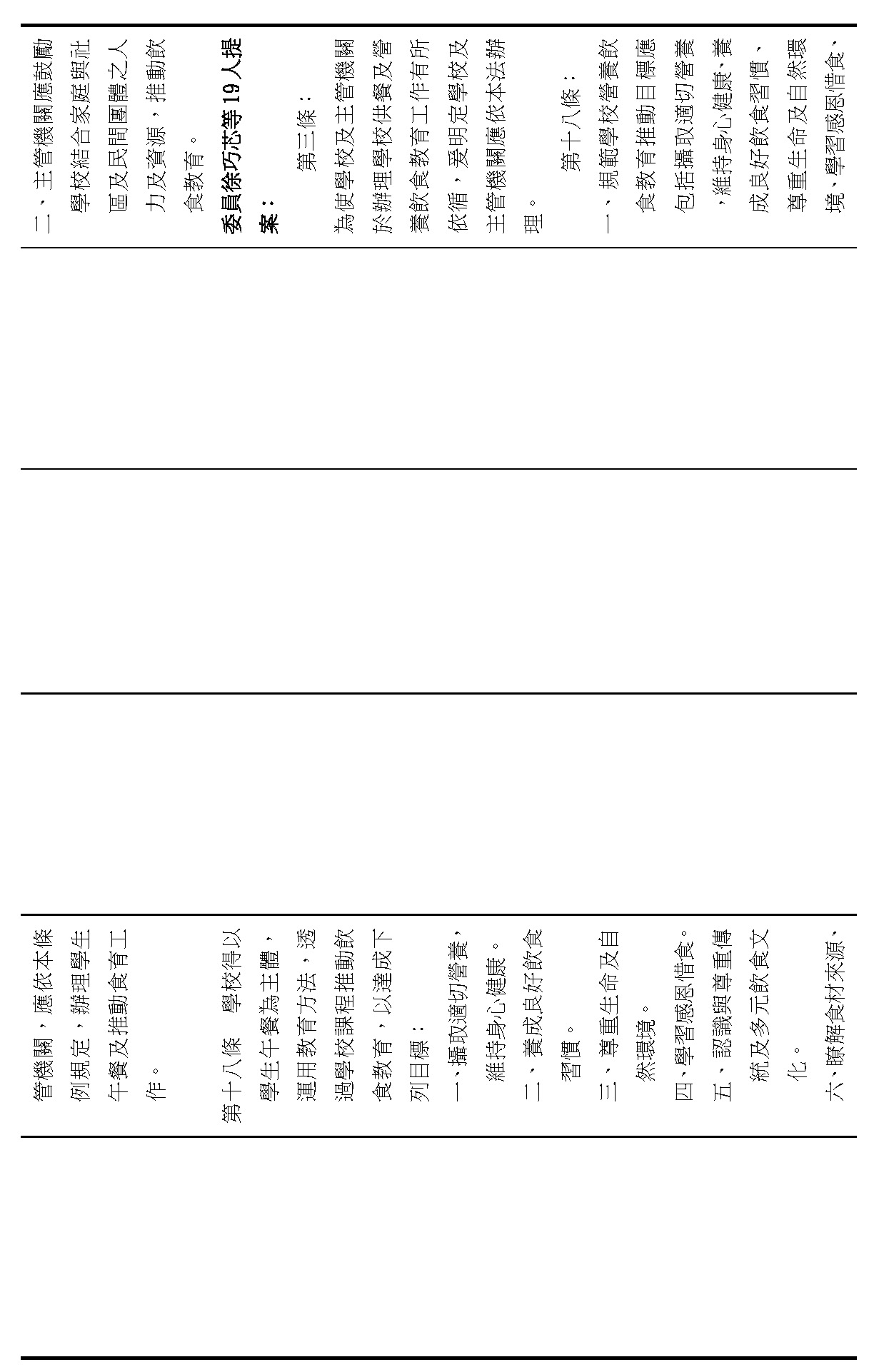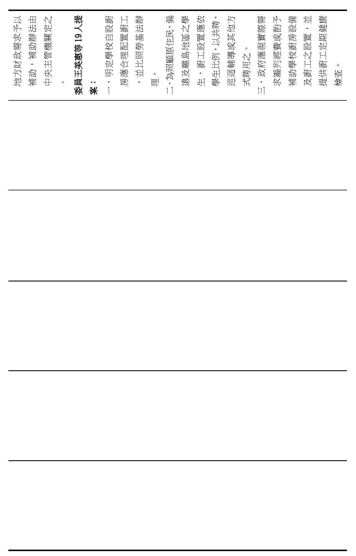(四)委員王美惠等19人擬具「學校飲食法草案」案。