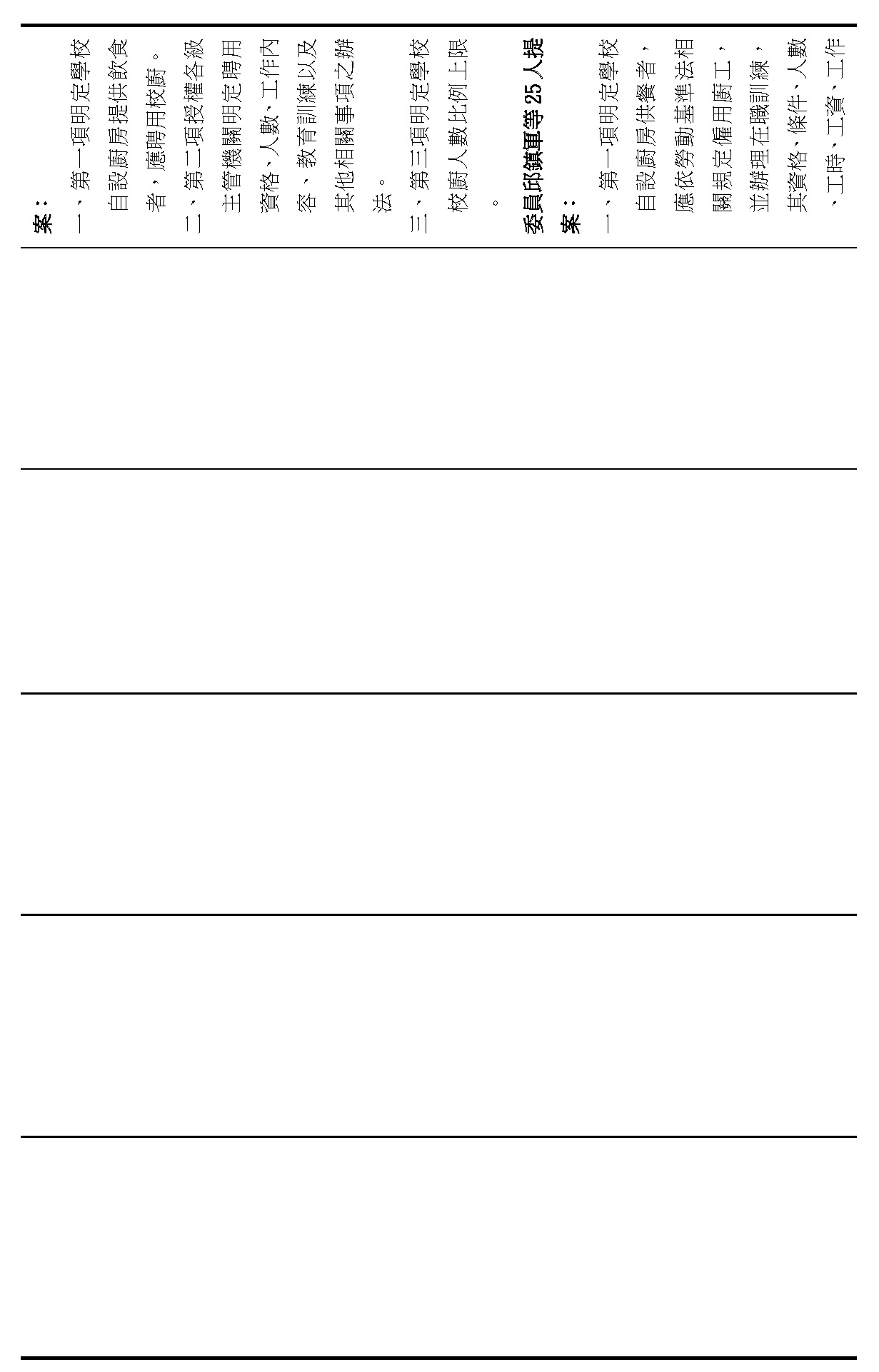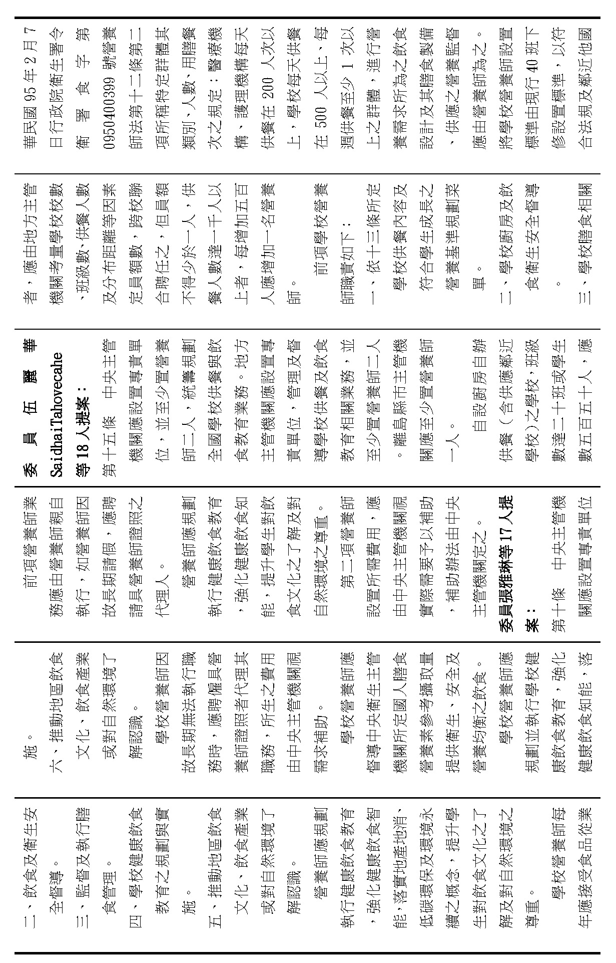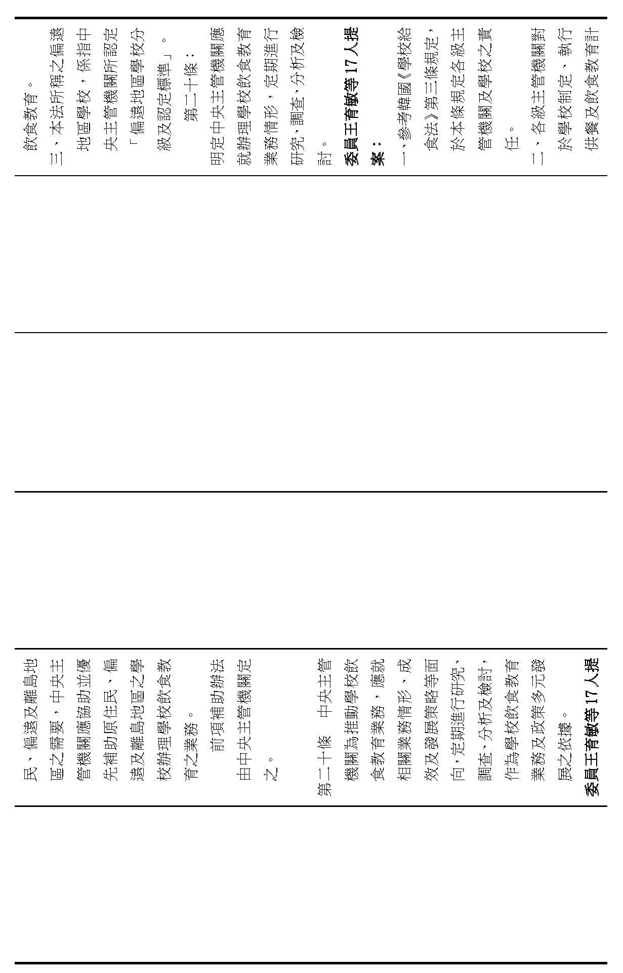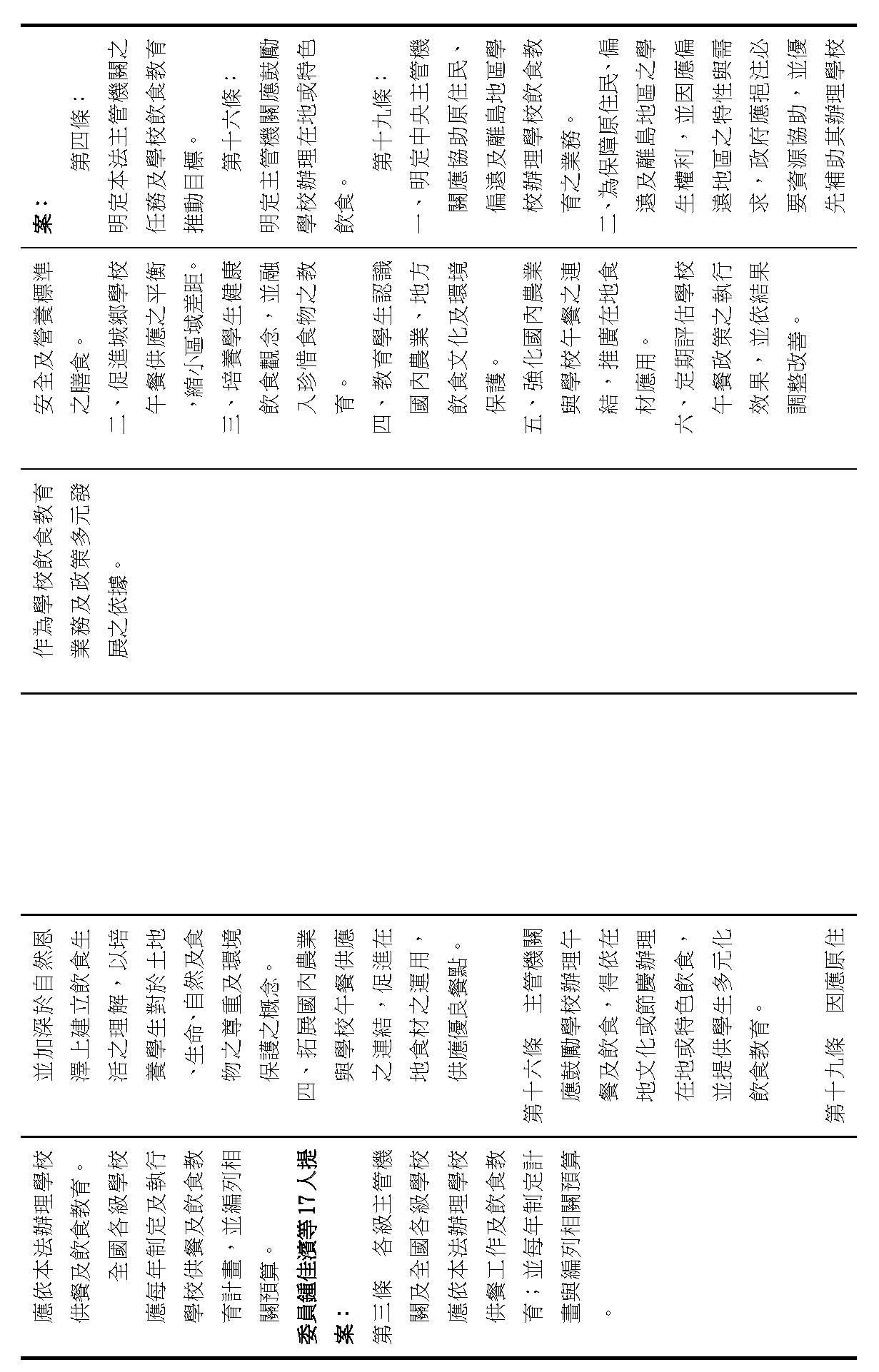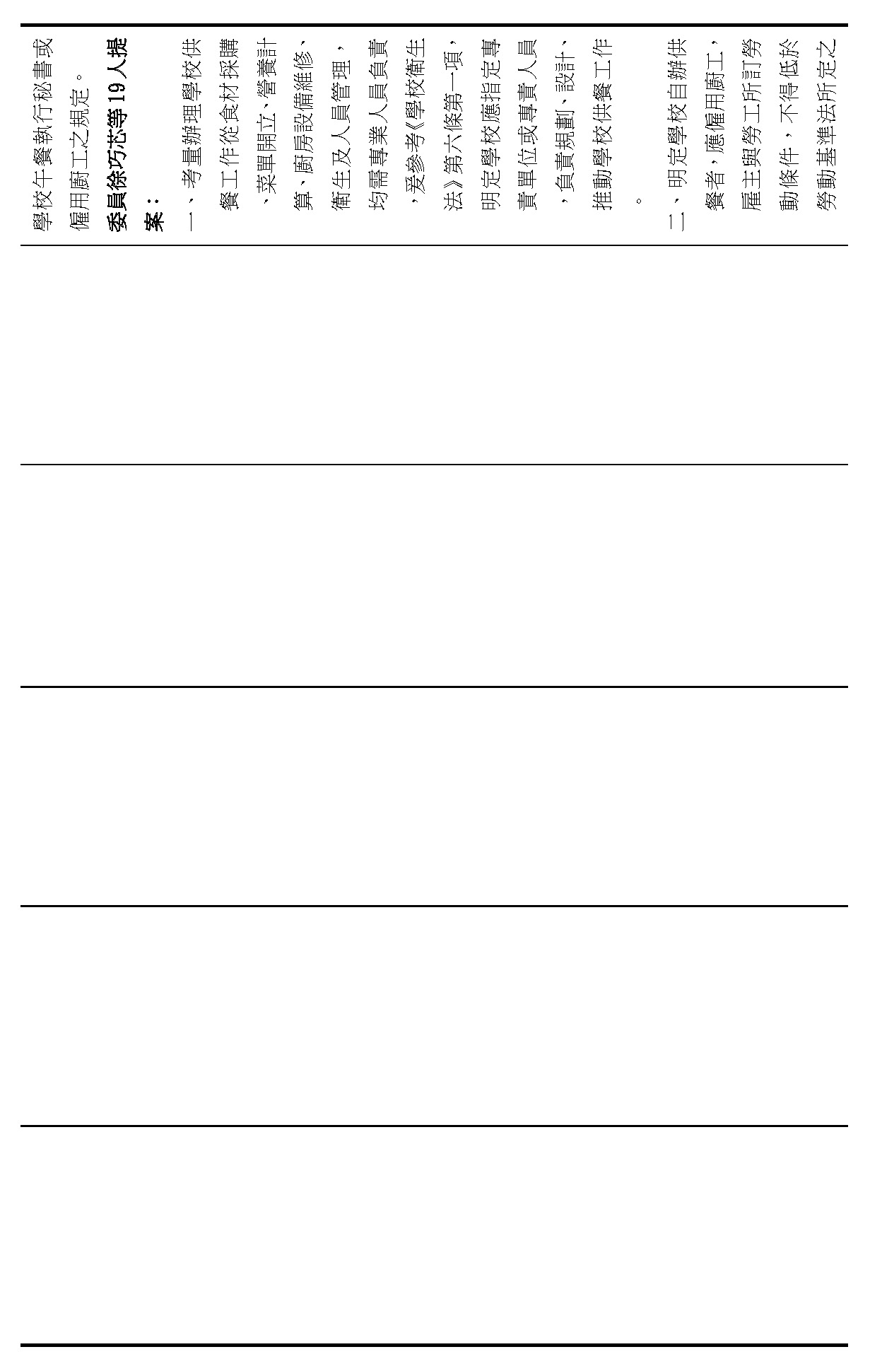 (四)委員王美惠等19人擬具「學校飲食法草案」案。