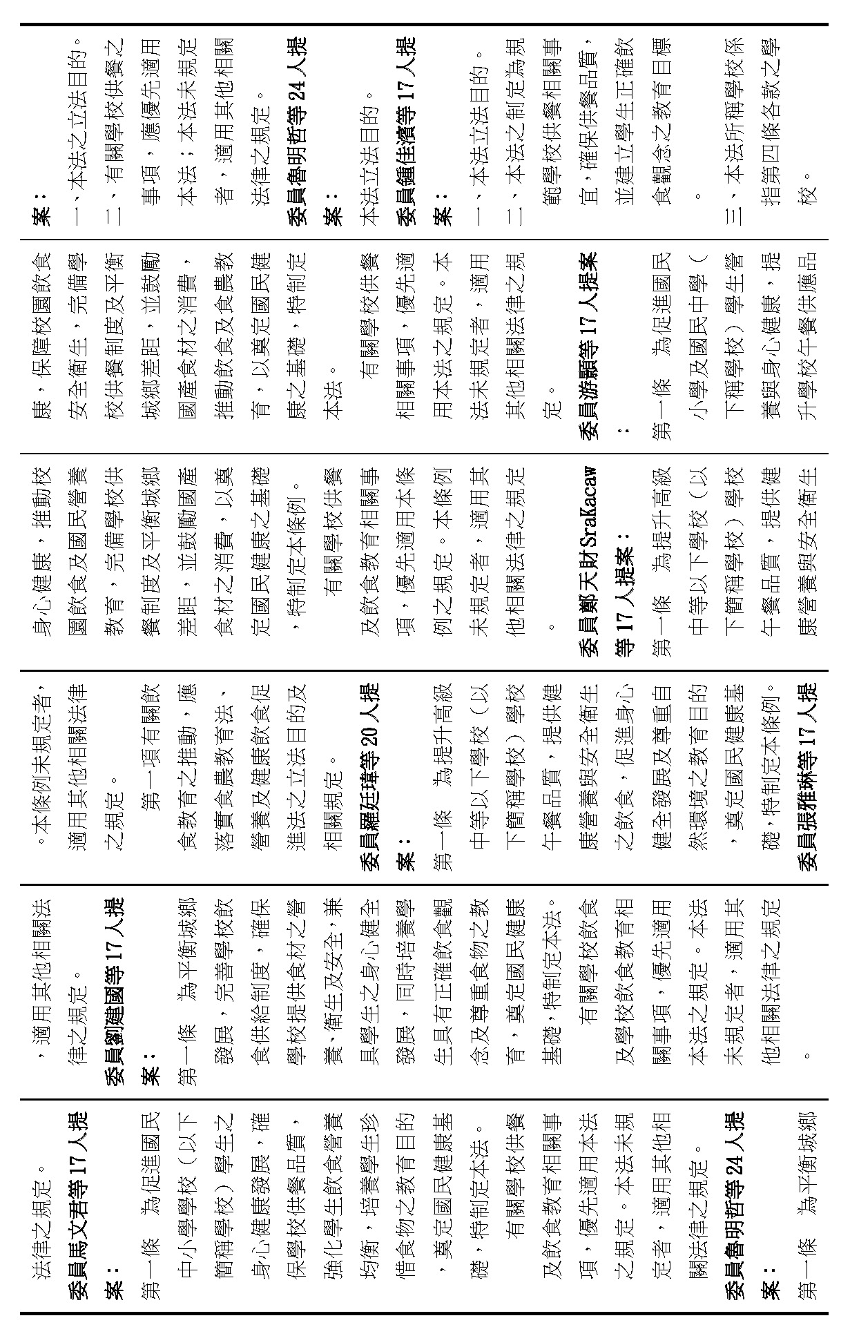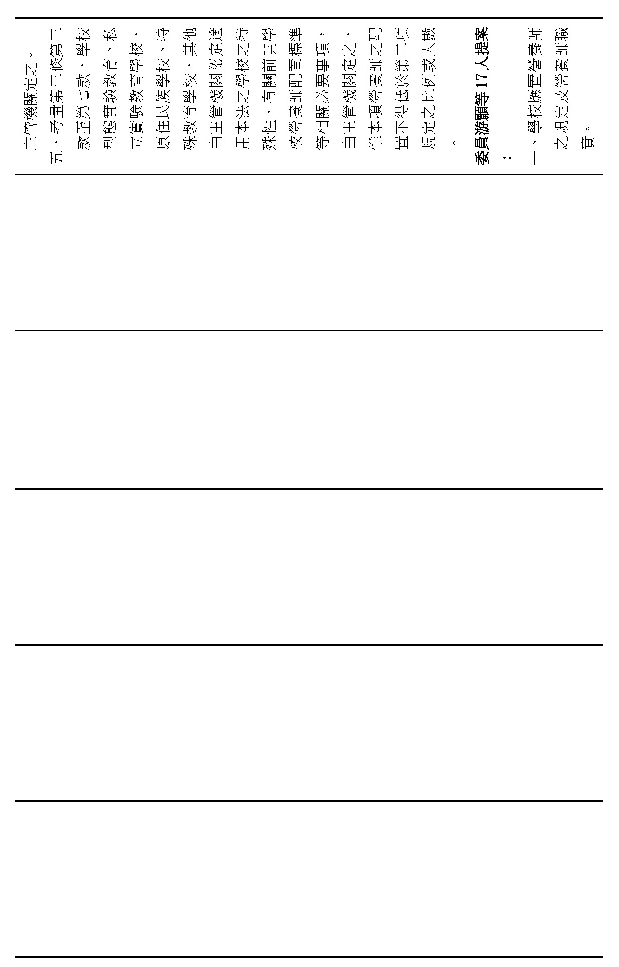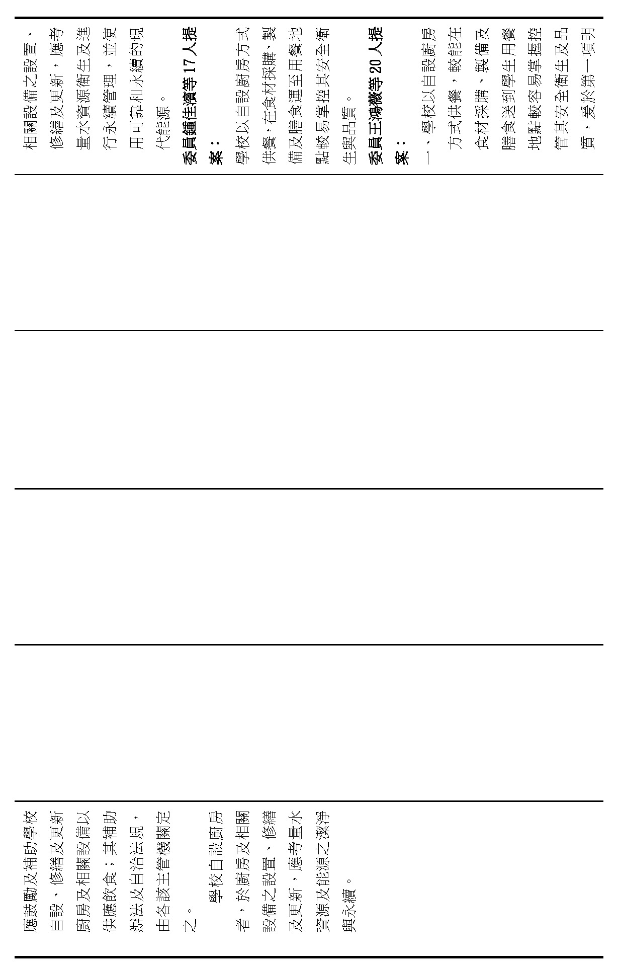 (十七)委員陳秀寳等20人擬具「學校飲食法草案」案。