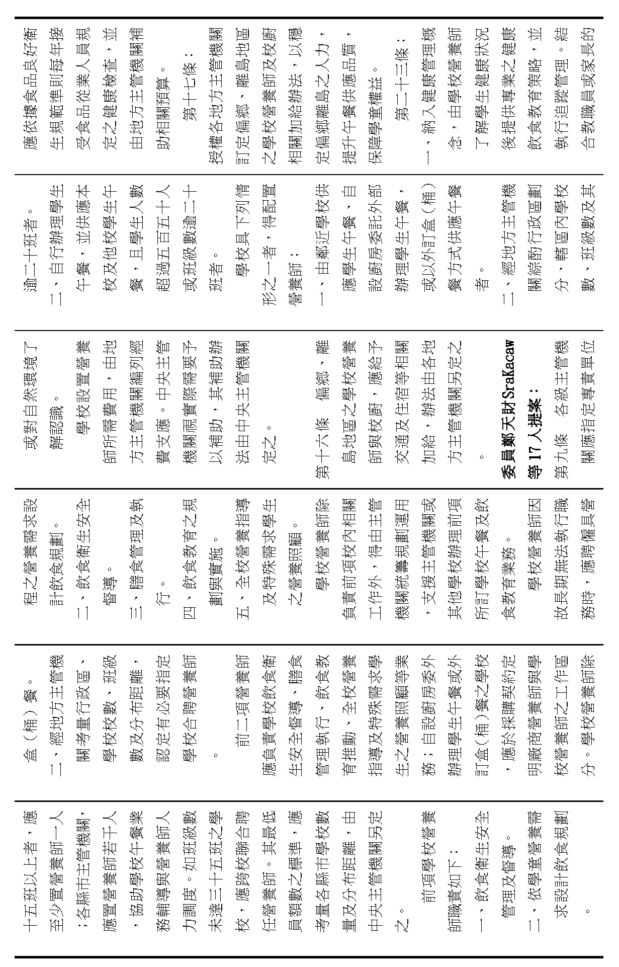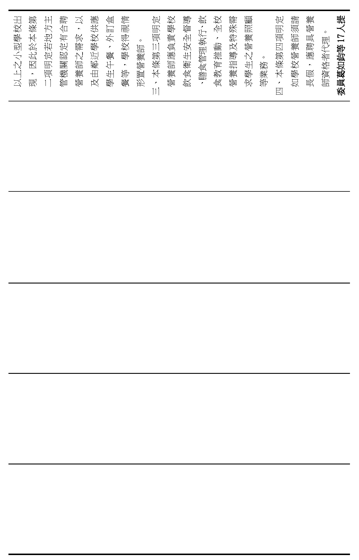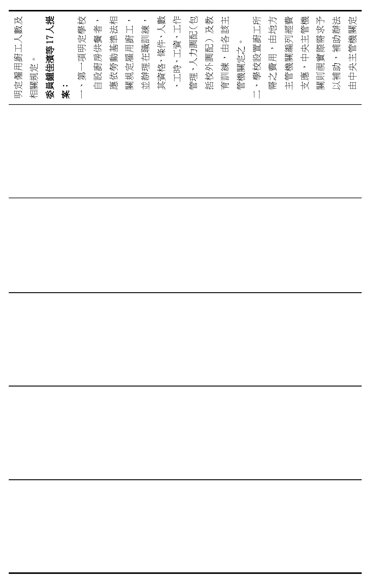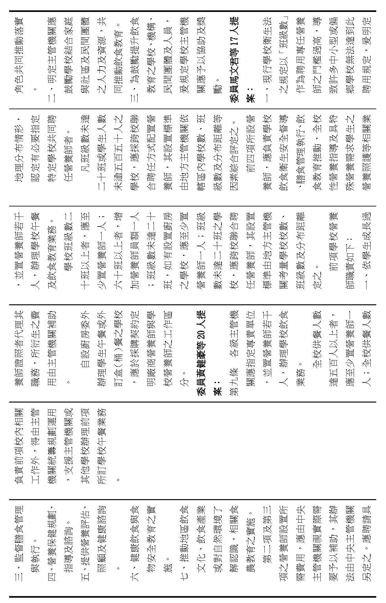 (十七)委員陳秀寳等20人擬具「學校飲食法草案」案。