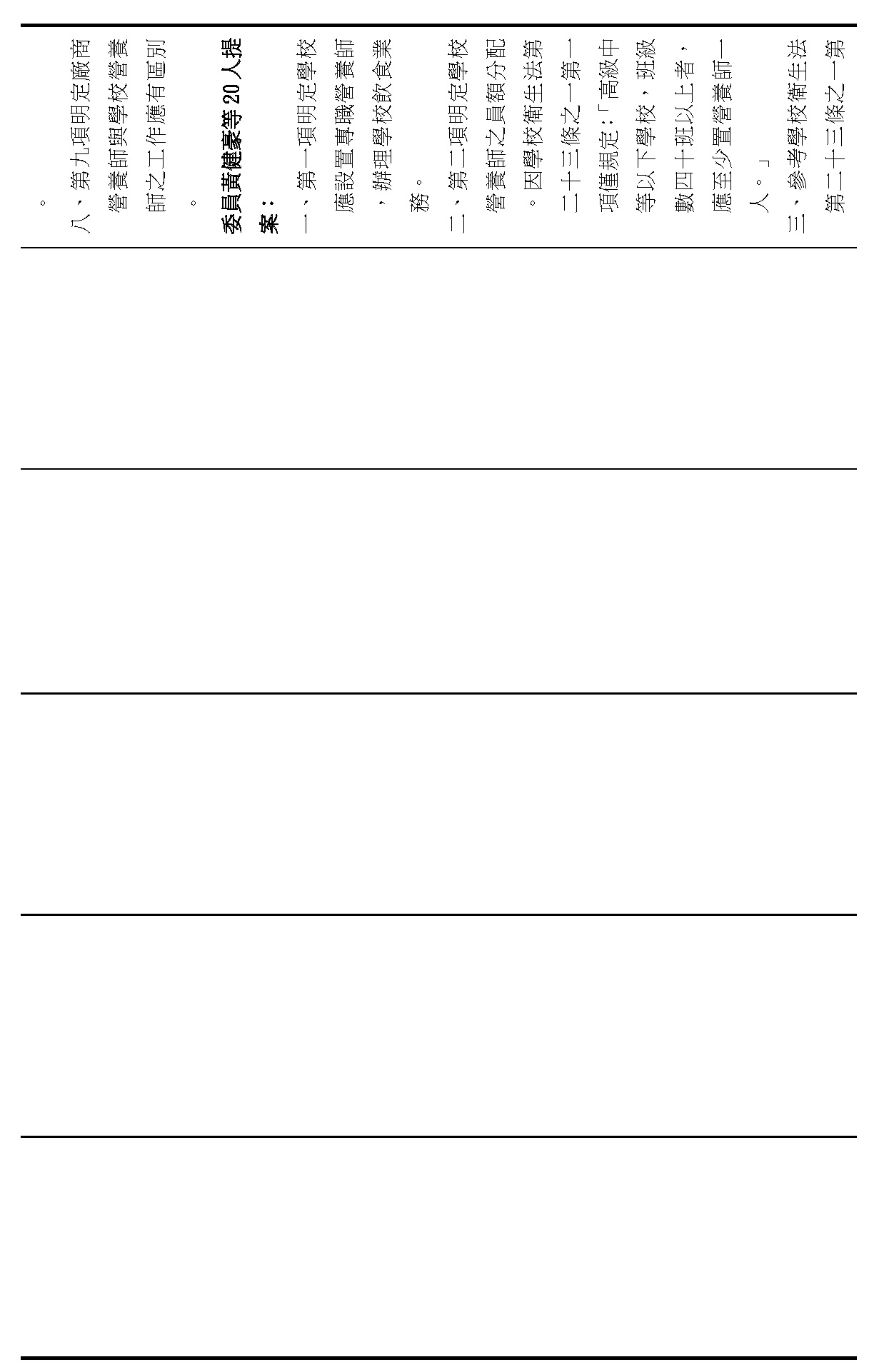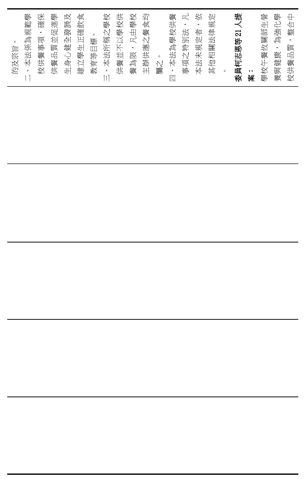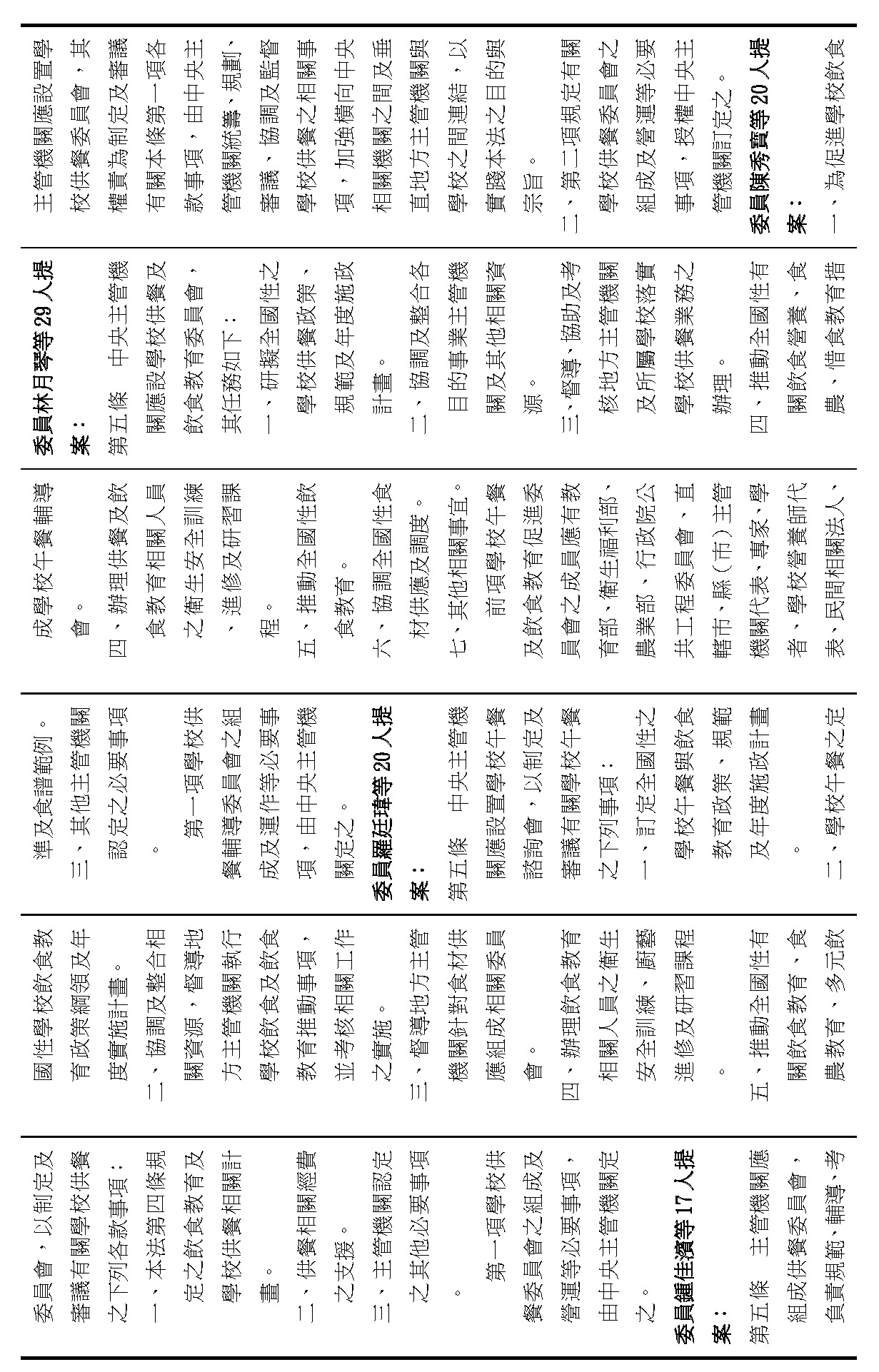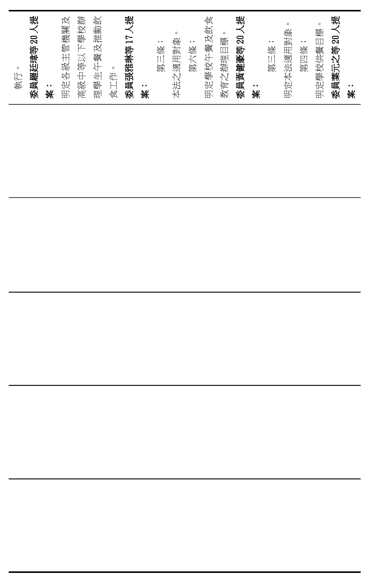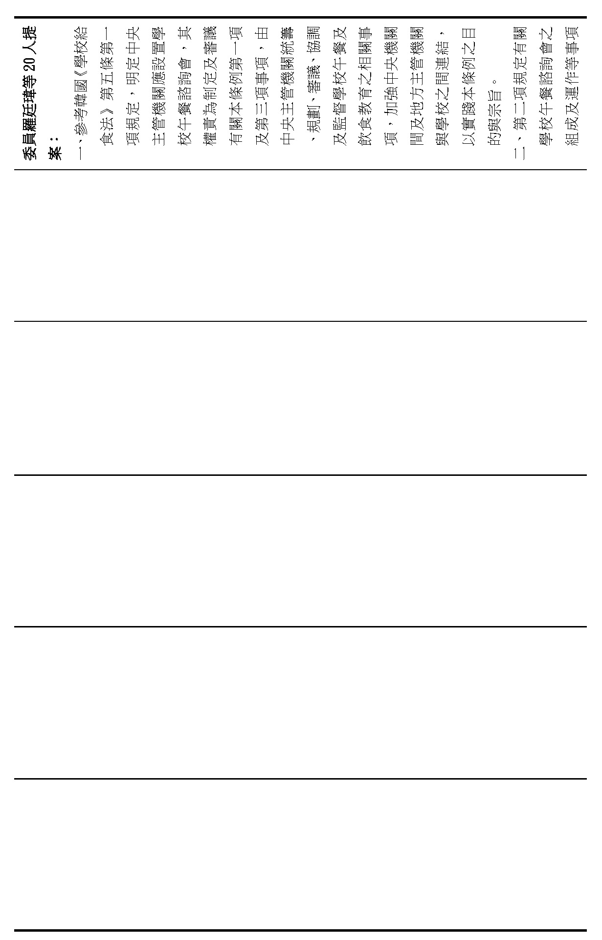 (八)委員林倩綺等21人擬具「學校午餐及營養促進條例草案」案。