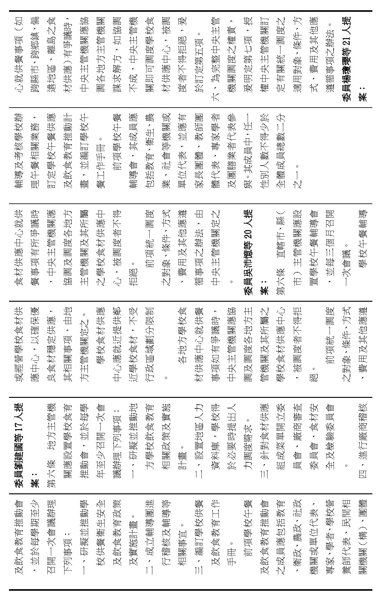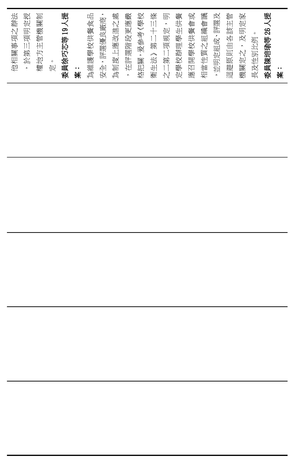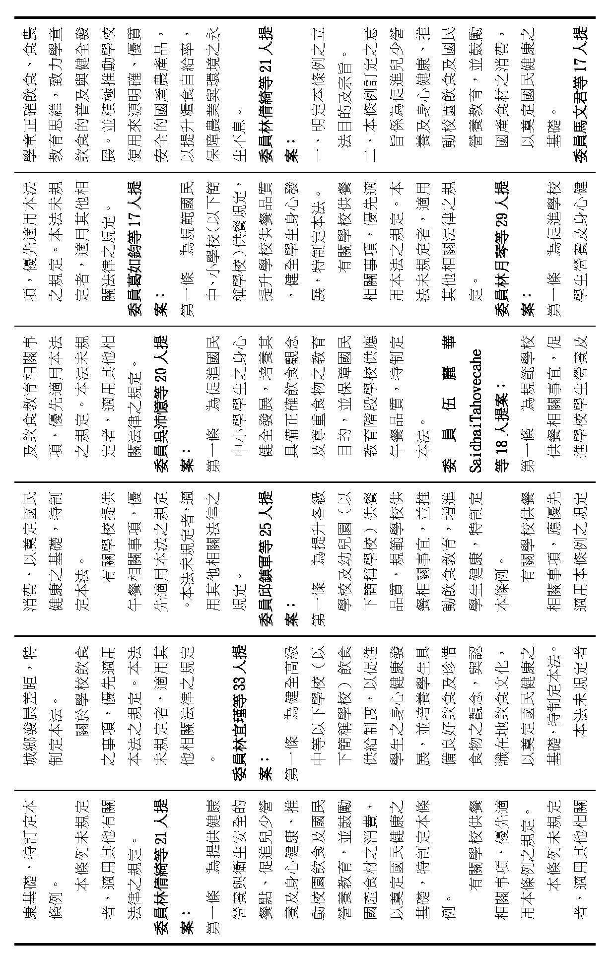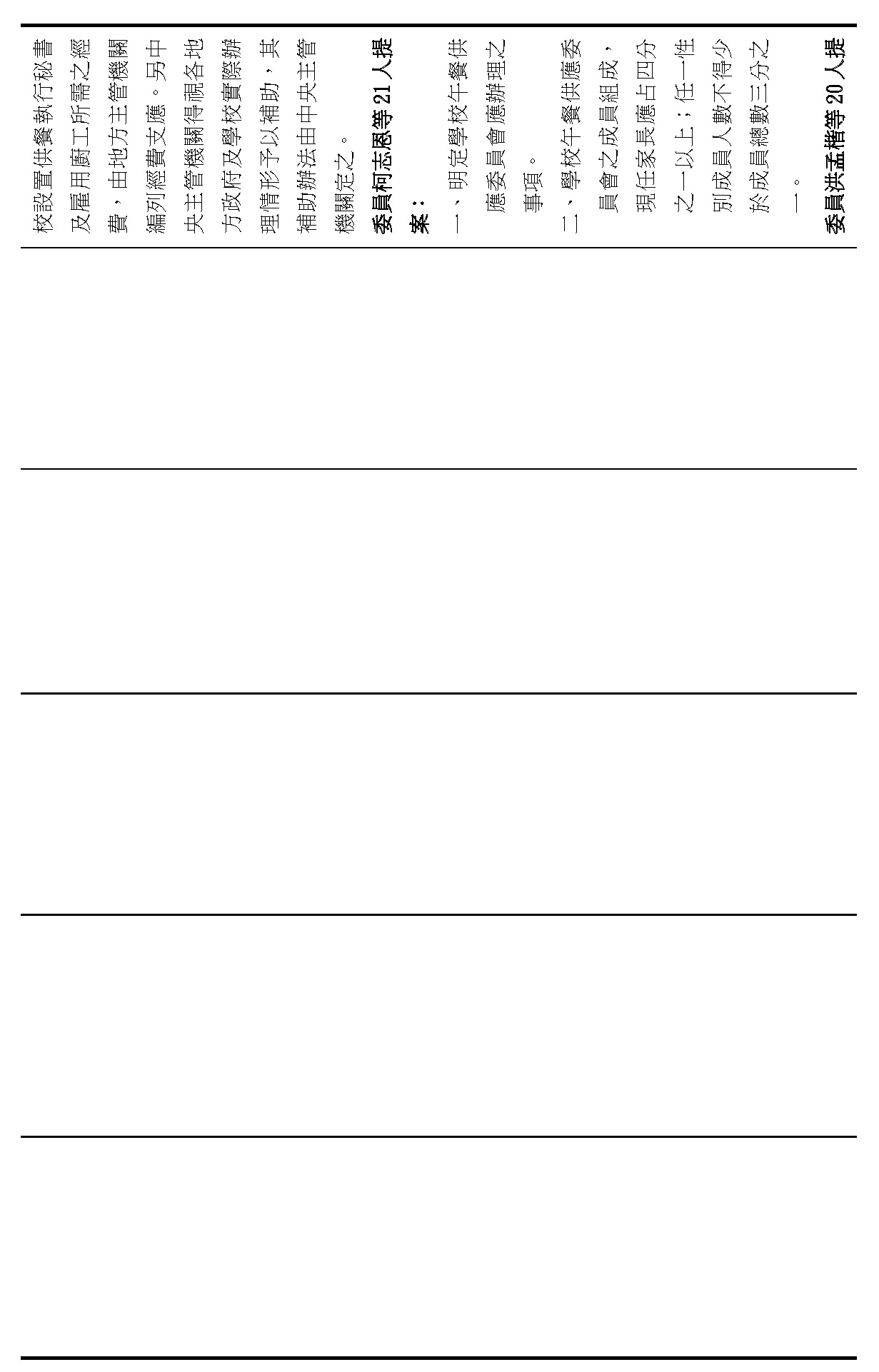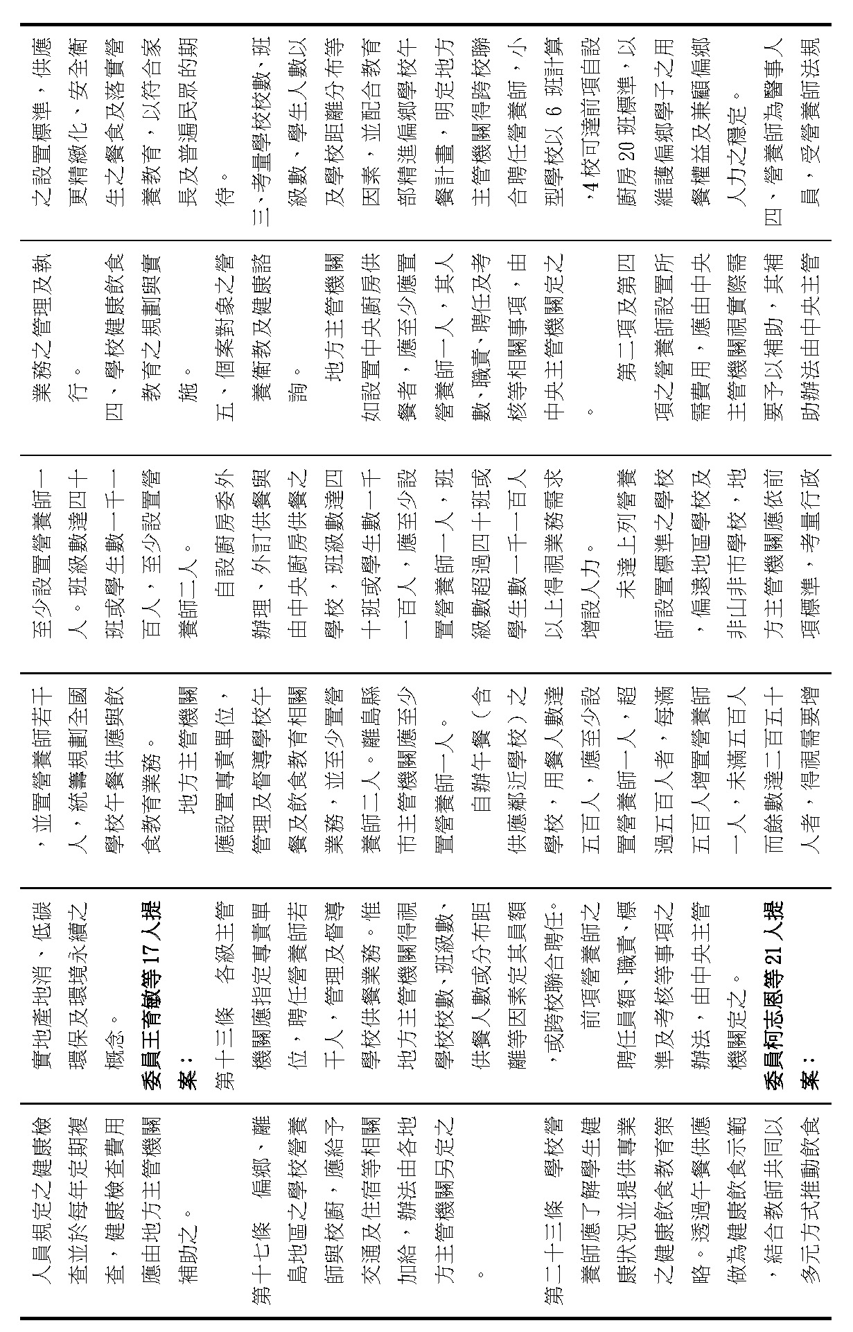 (八)委員林倩綺等21人擬具「學校午餐及營養促進條例草案」案。