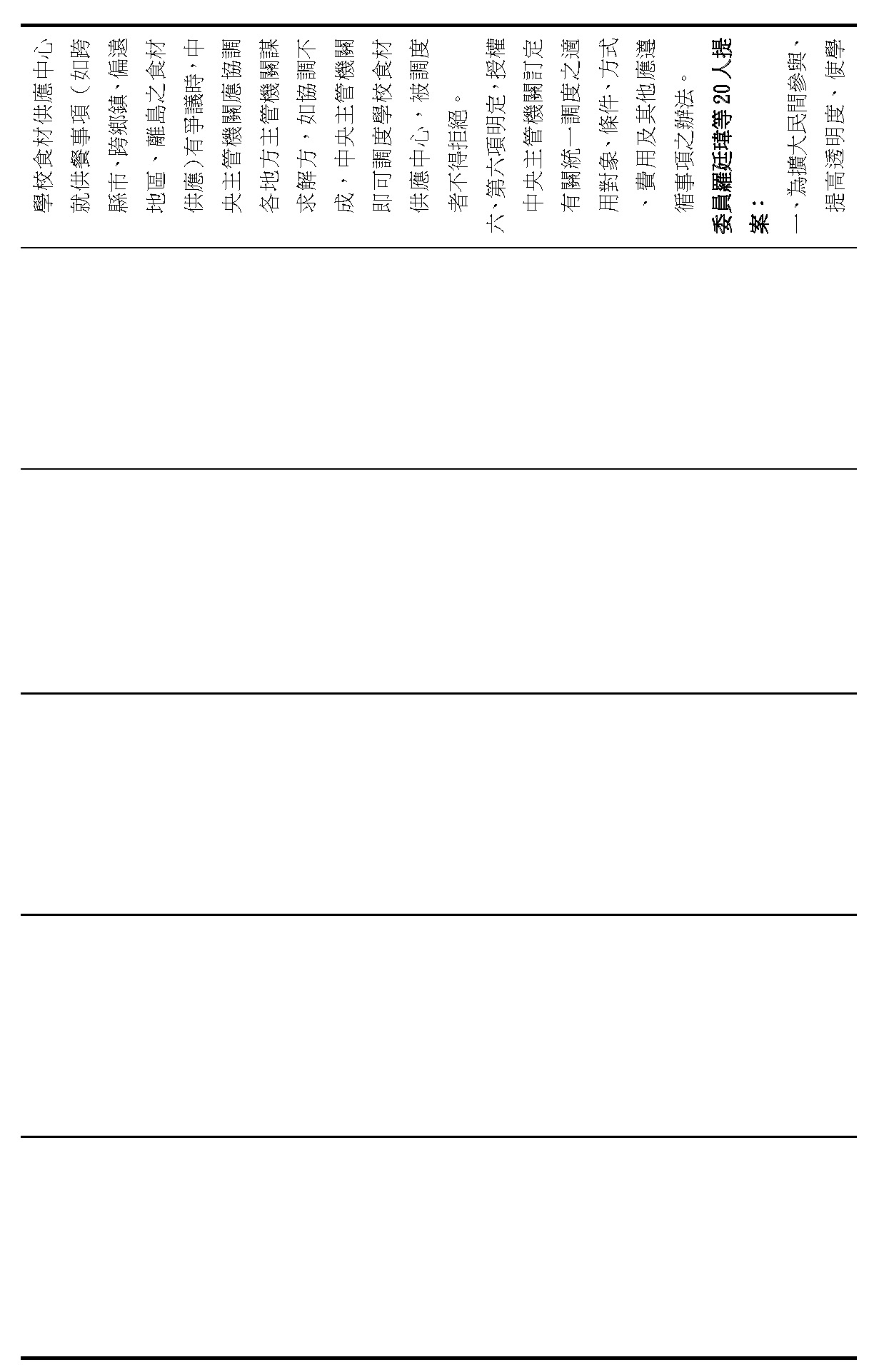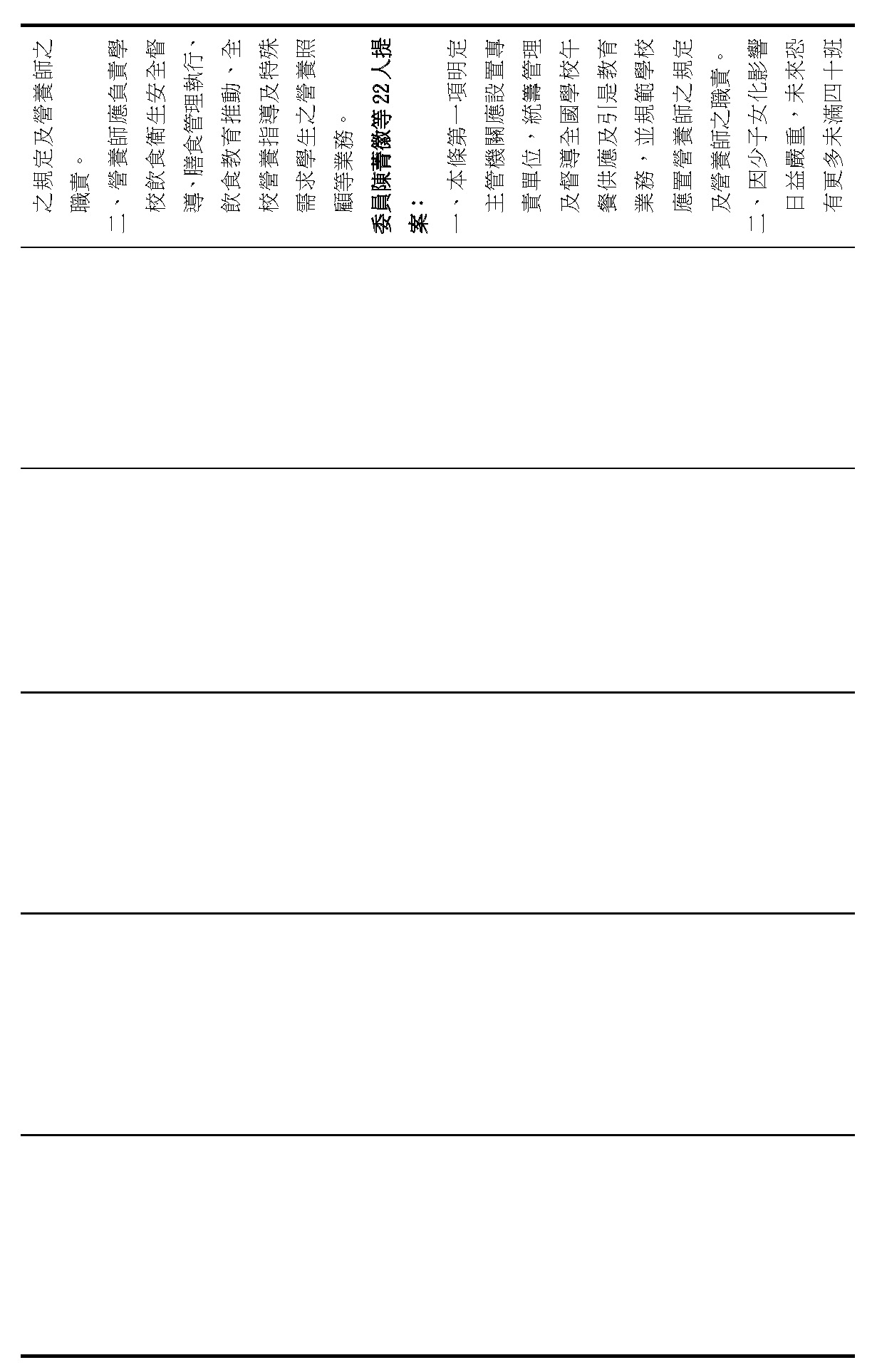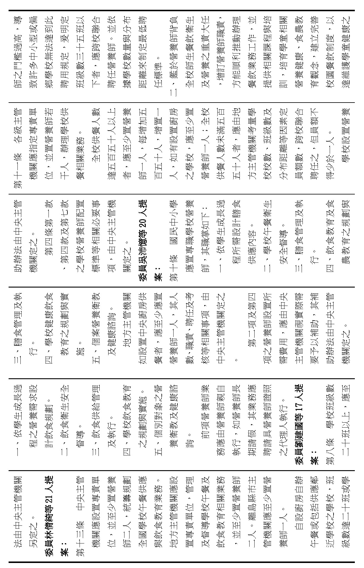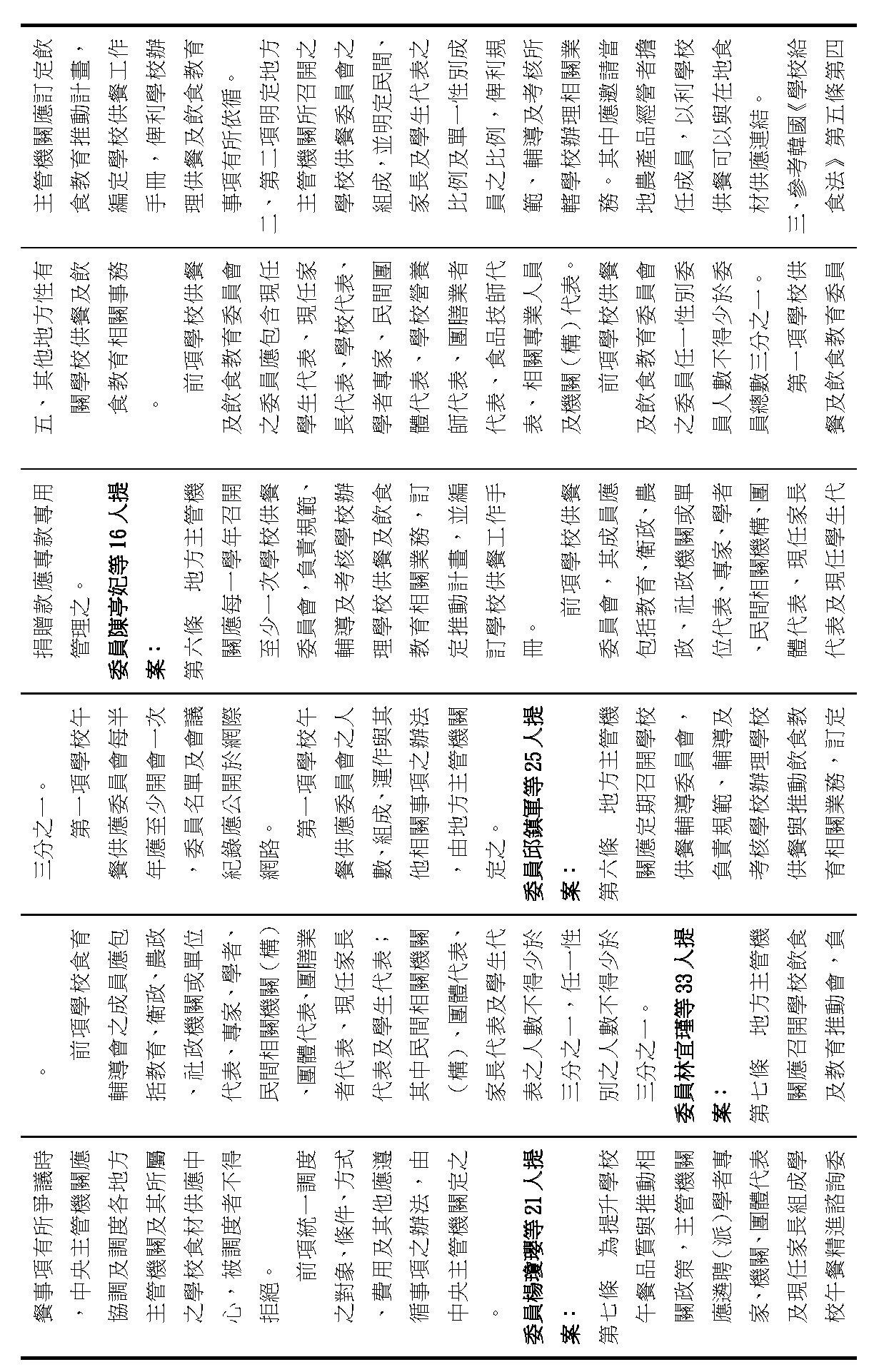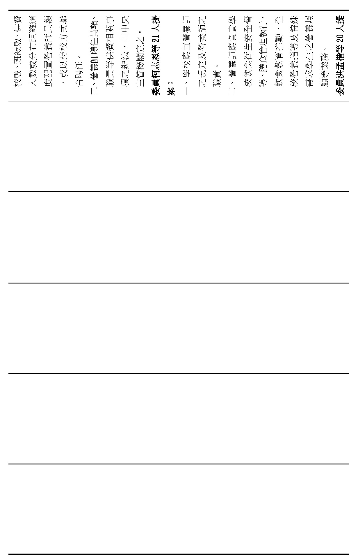 (八)委員林倩綺等21人擬具「學校午餐及營養促進條例草案」案。
