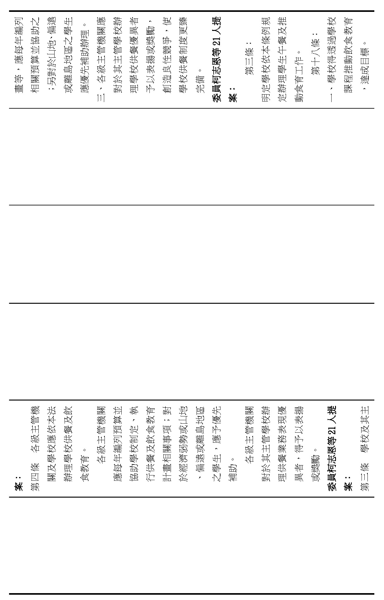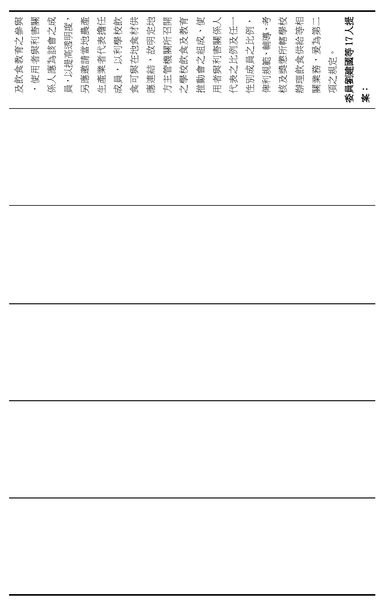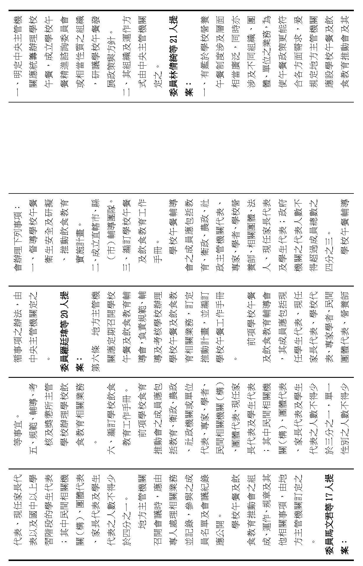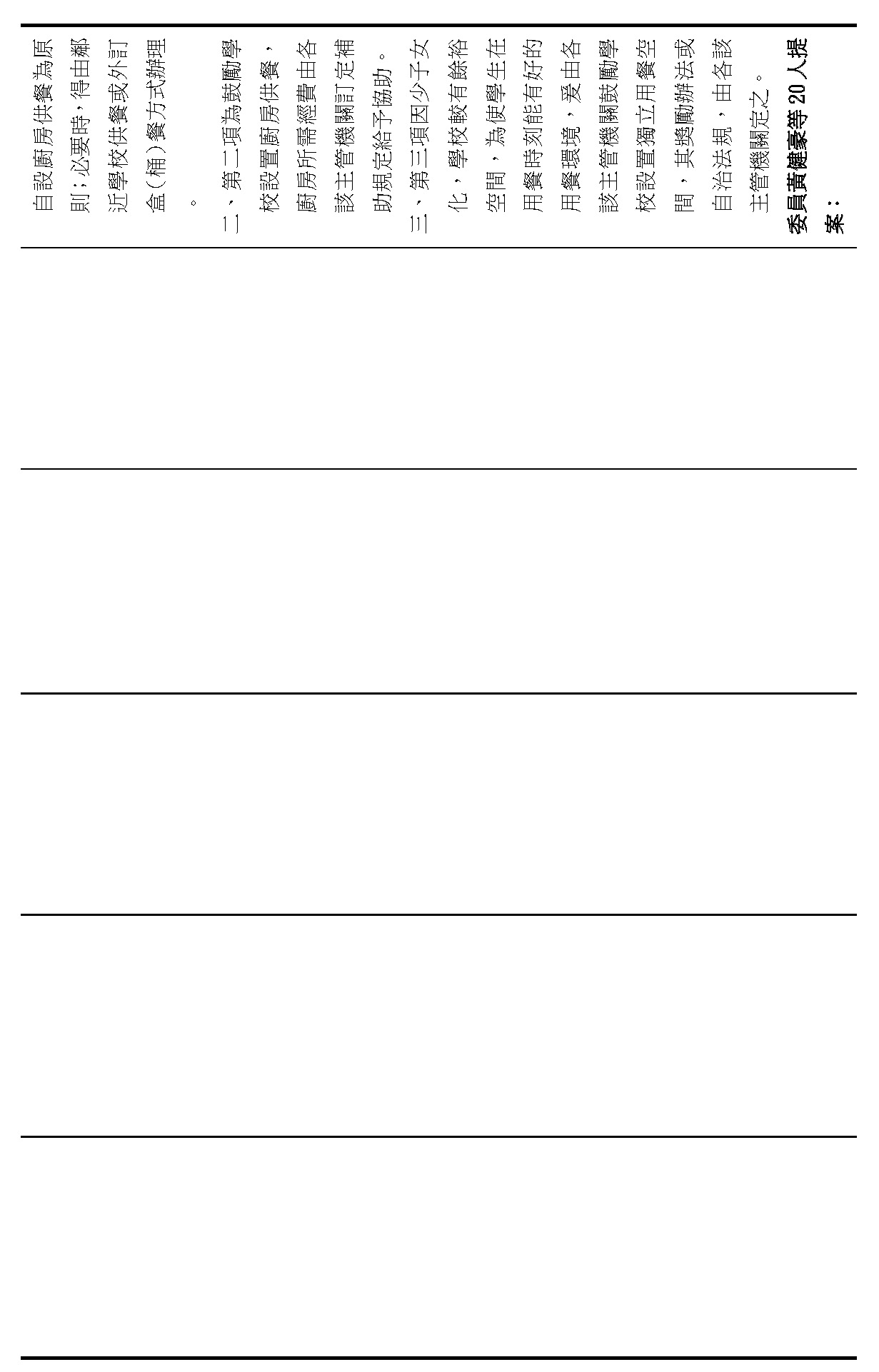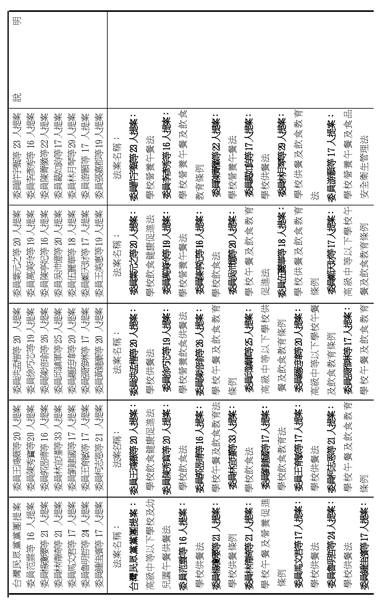 (八)委員林倩綺等21人擬具「學校午餐及營養促進條例草案」案。