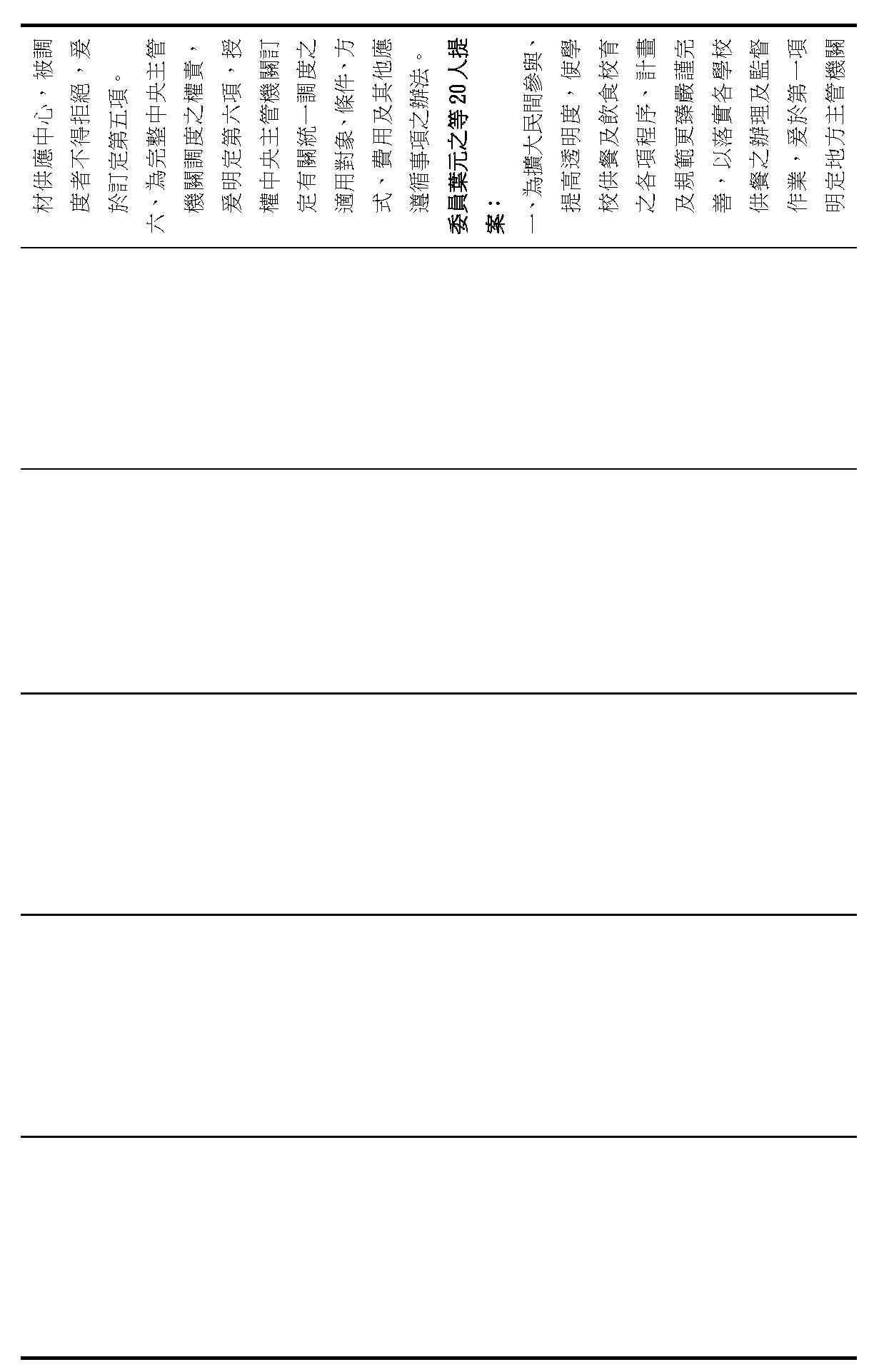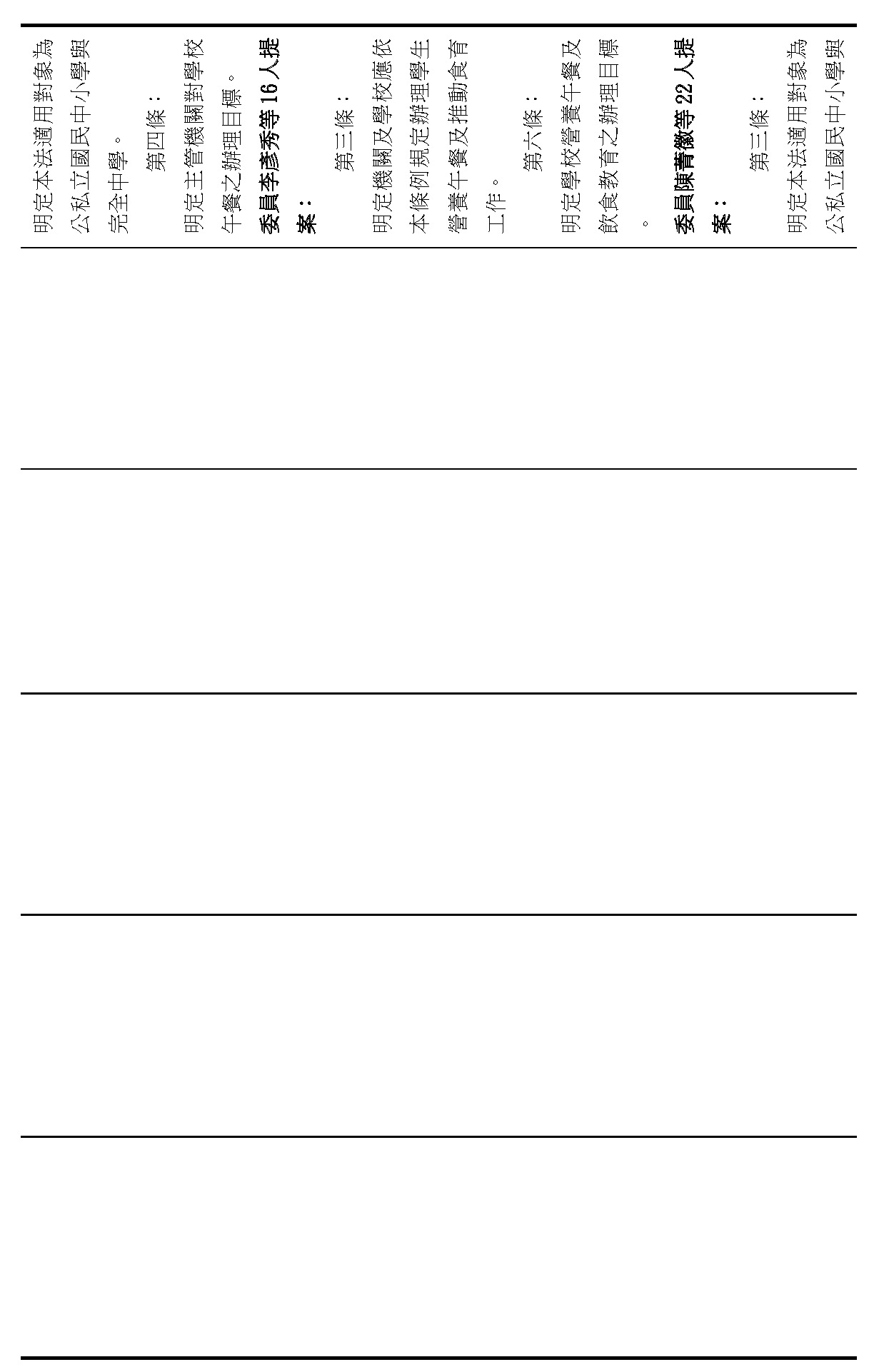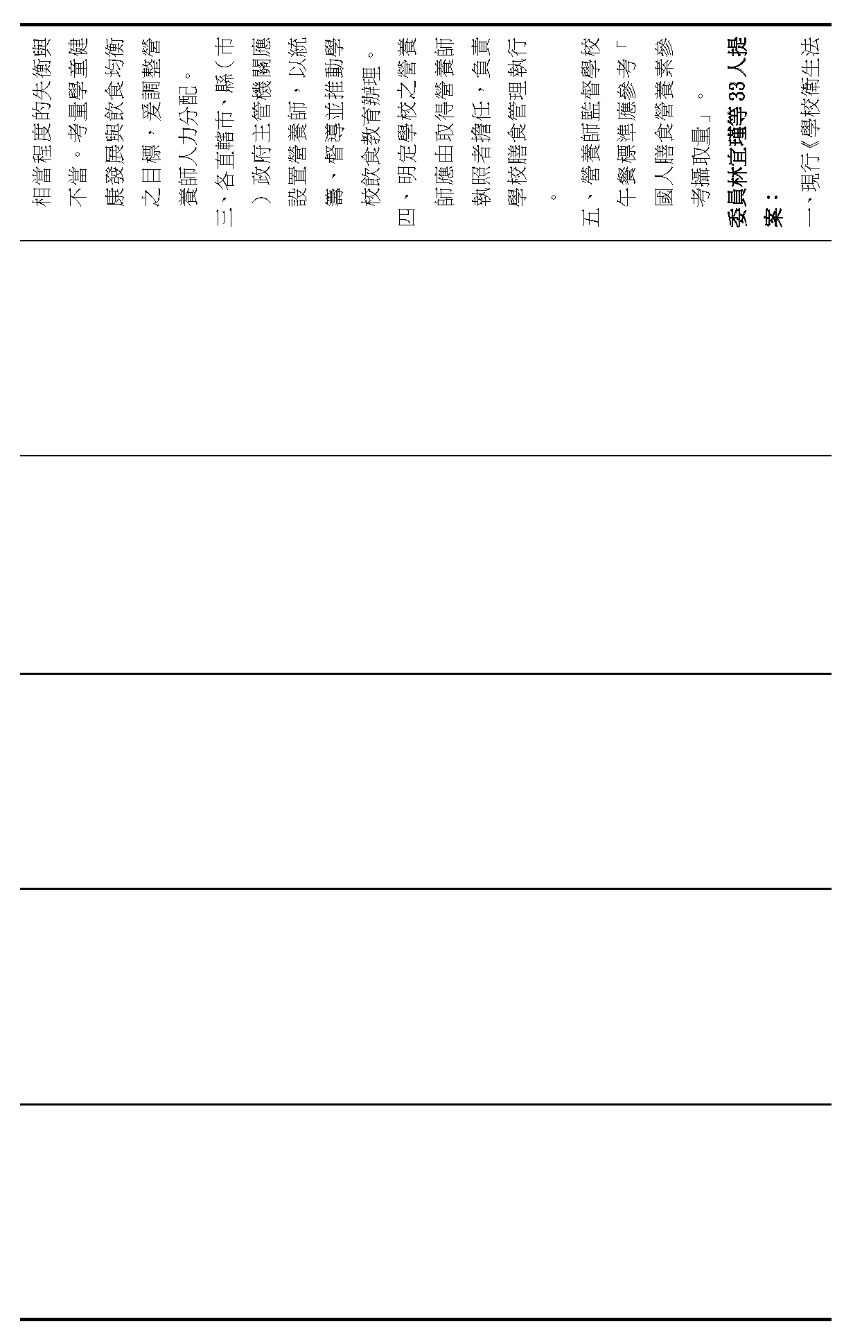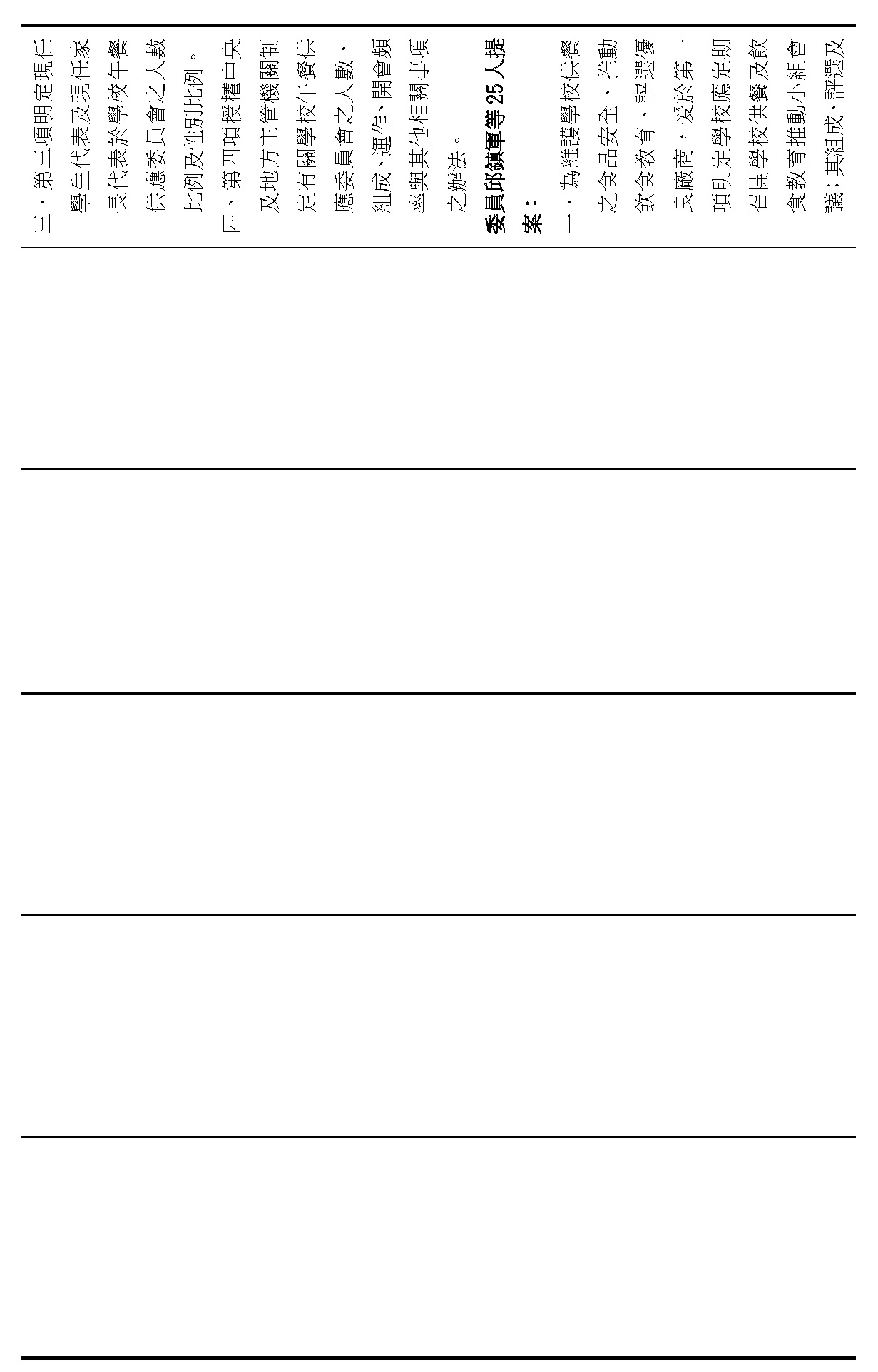 (八)委員林倩綺等21人擬具「學校午餐及營養促進條例草案」案。