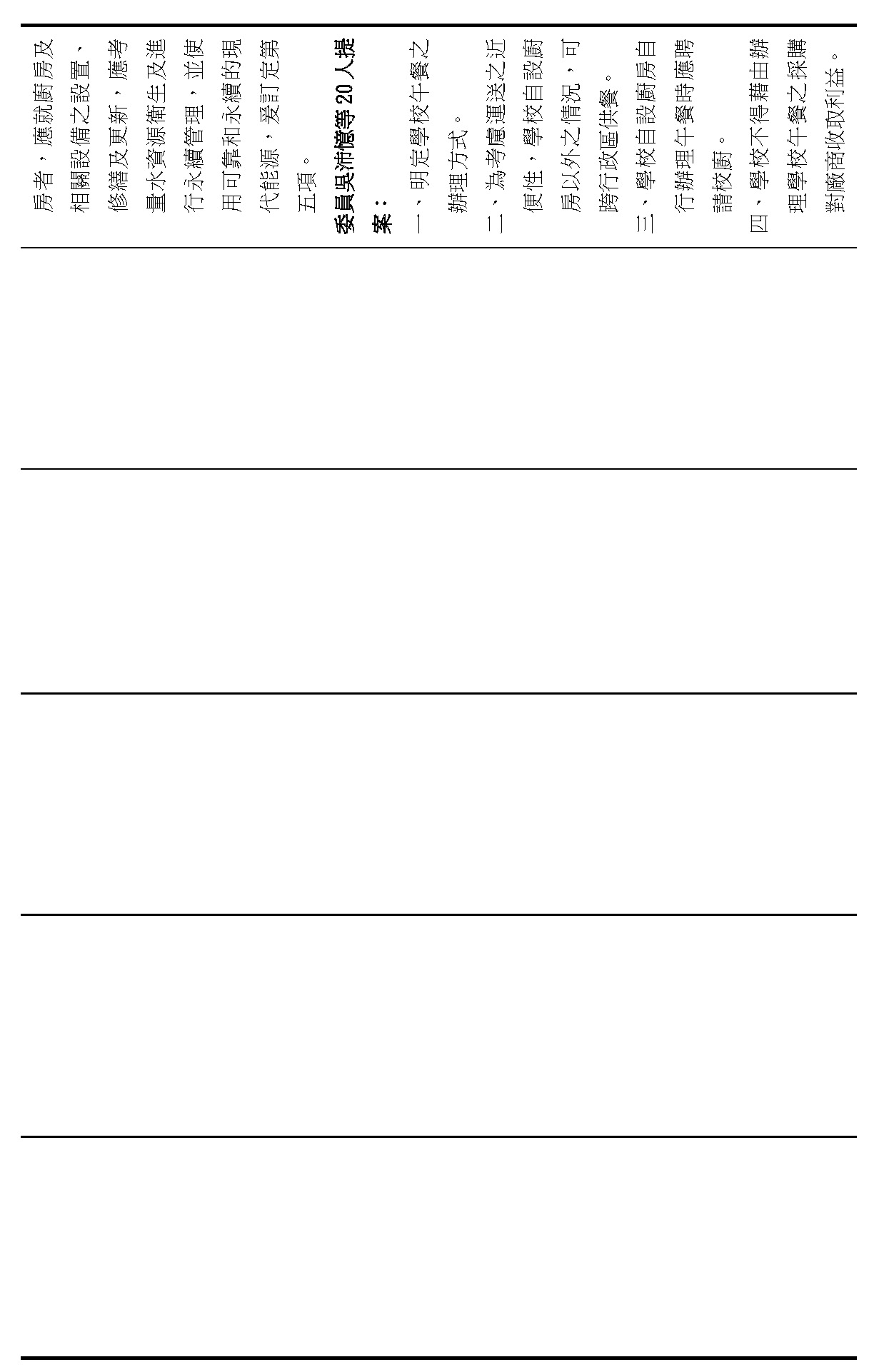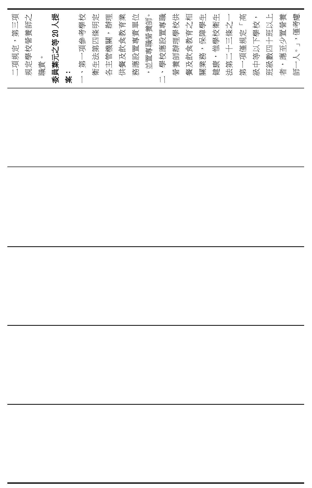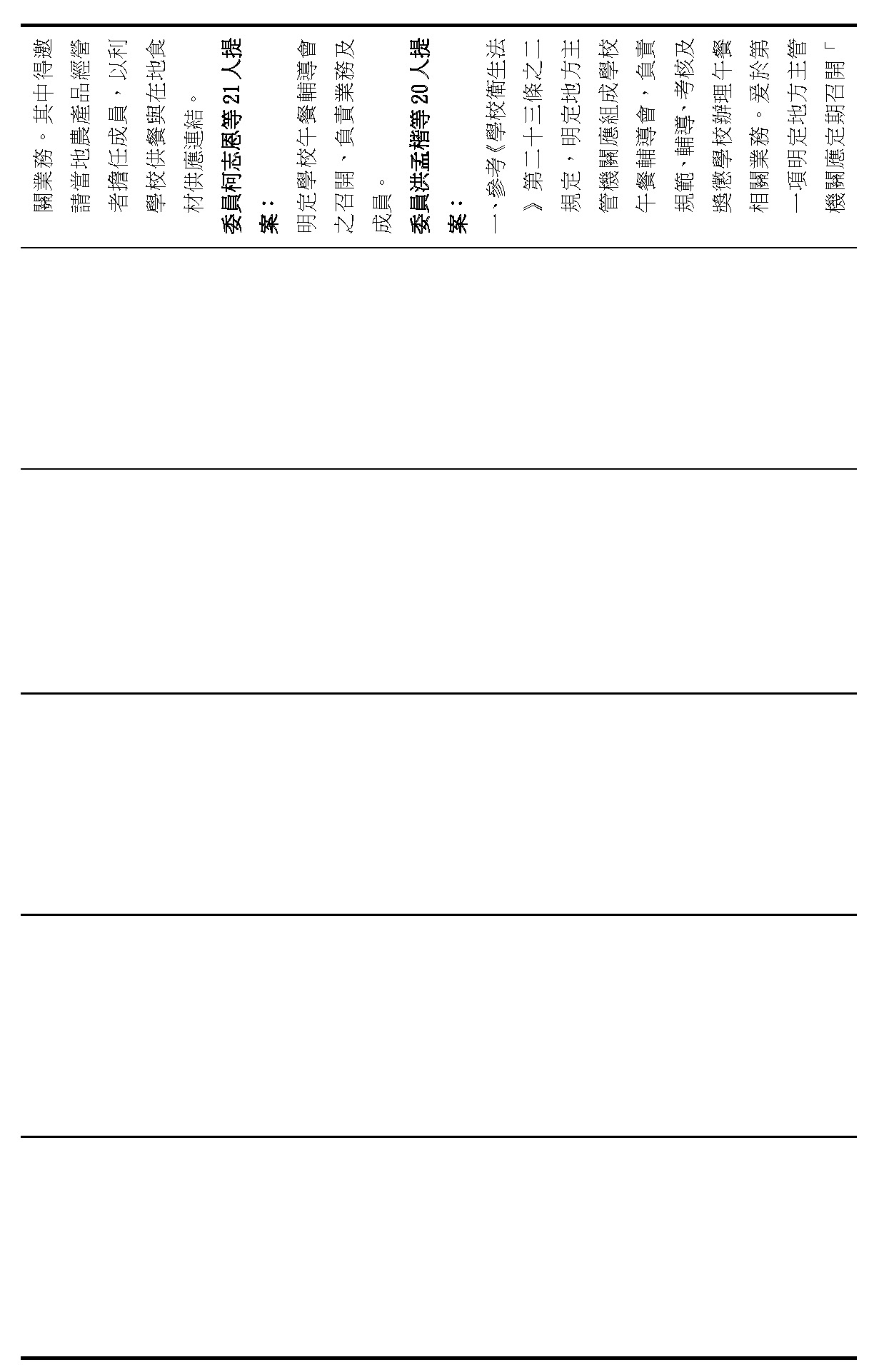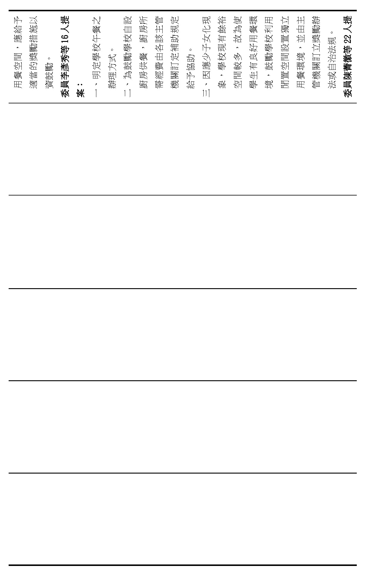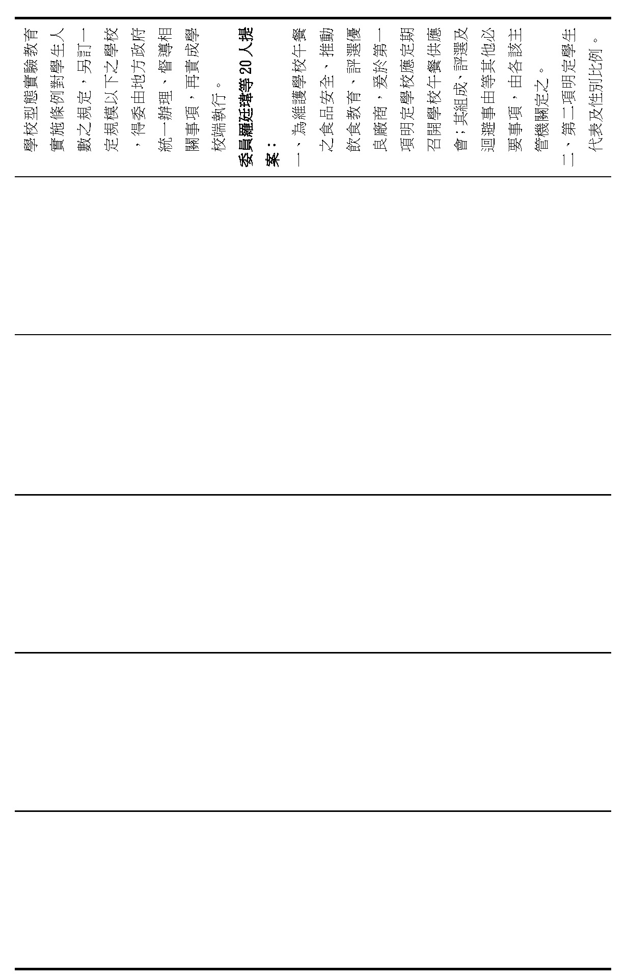(八)委員林倩綺等21人擬具「學校午餐及營養促進條例草案」案。