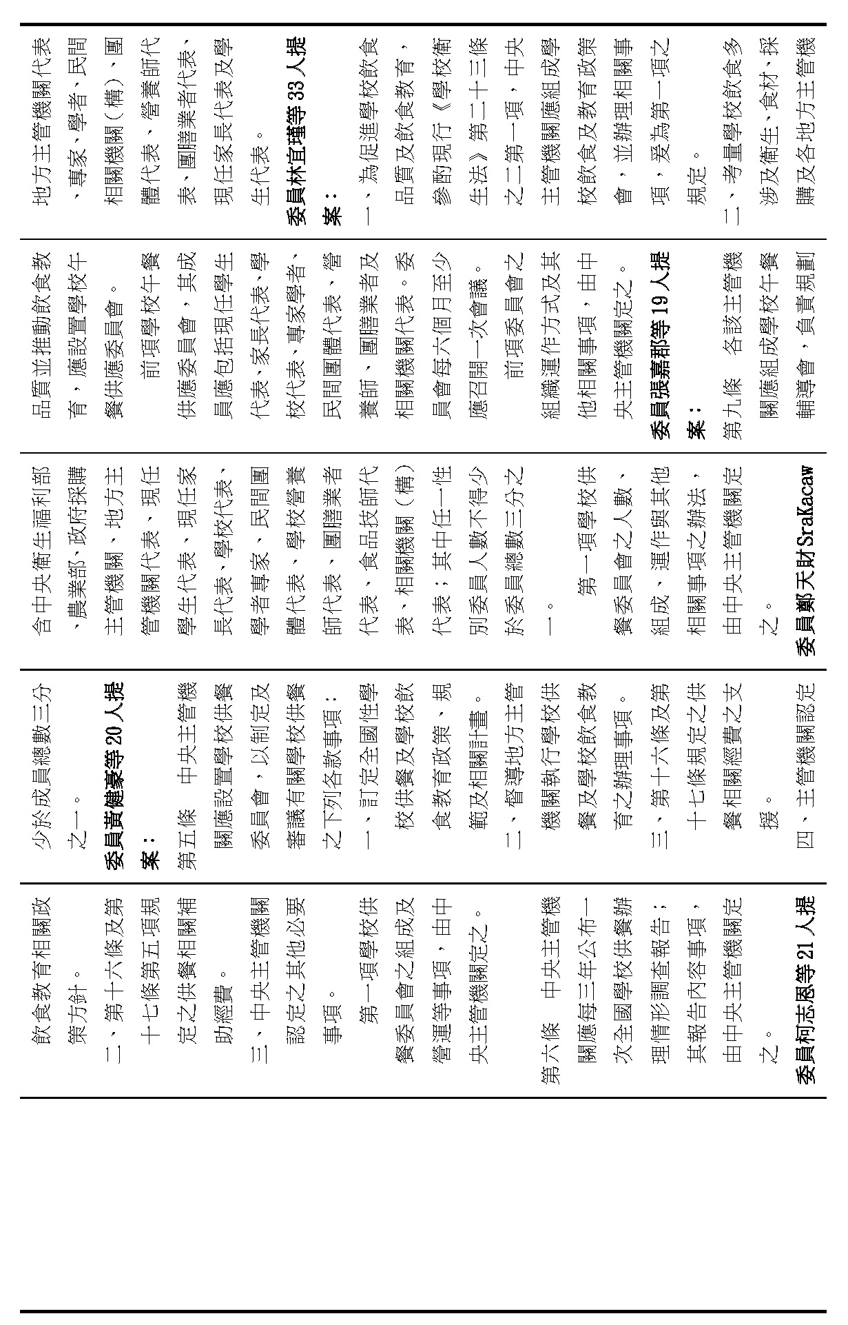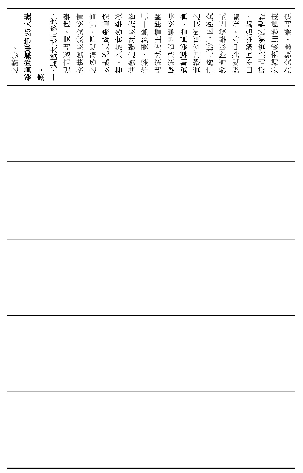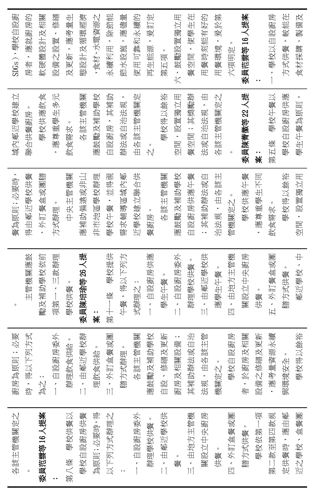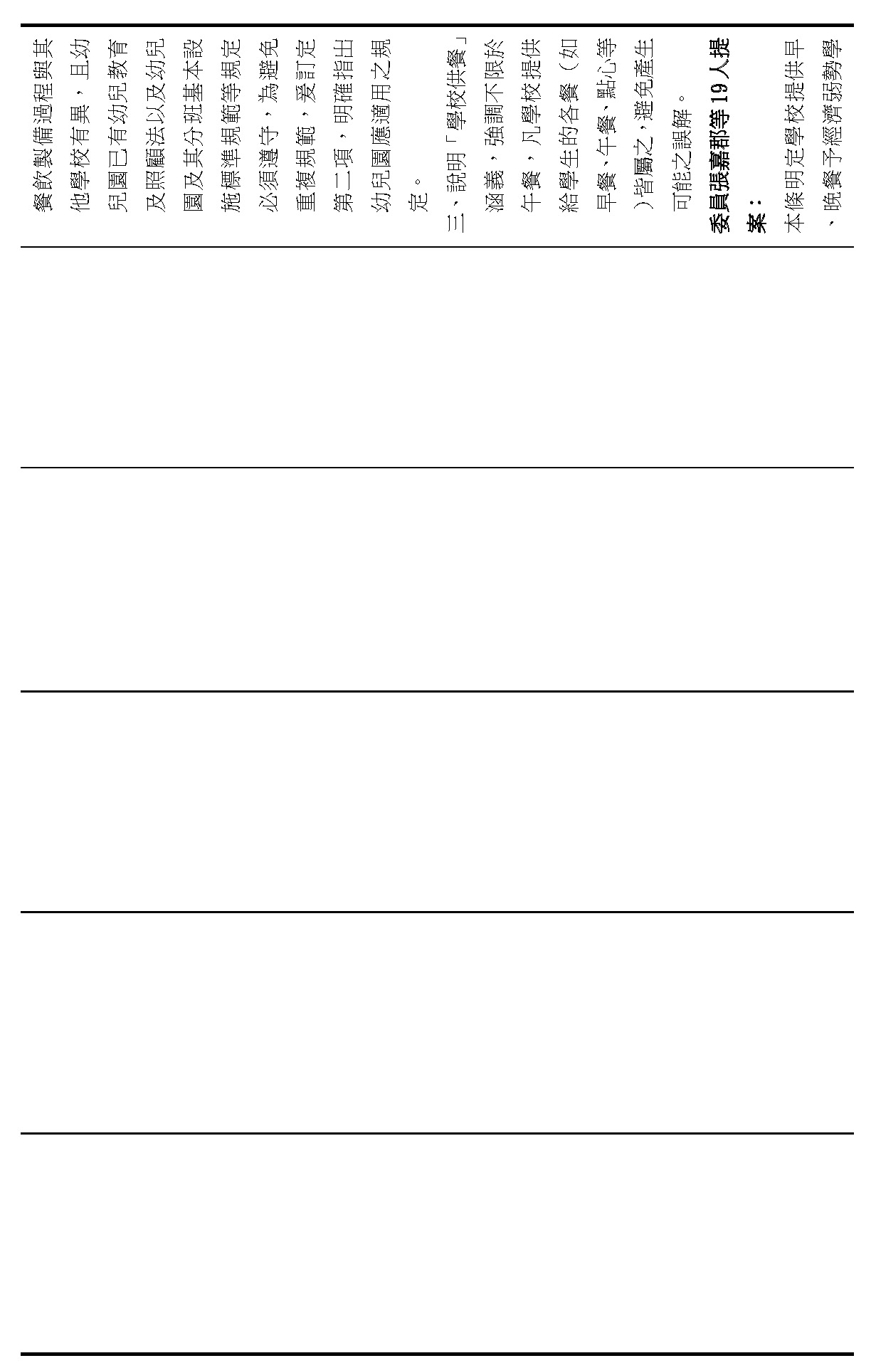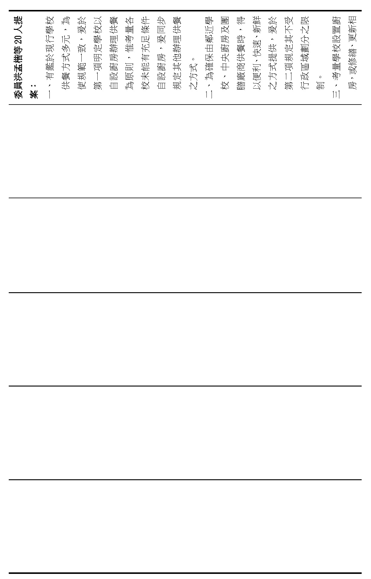 (八)委員林倩綺等21人擬具「學校午餐及營養促進條例草案」案。