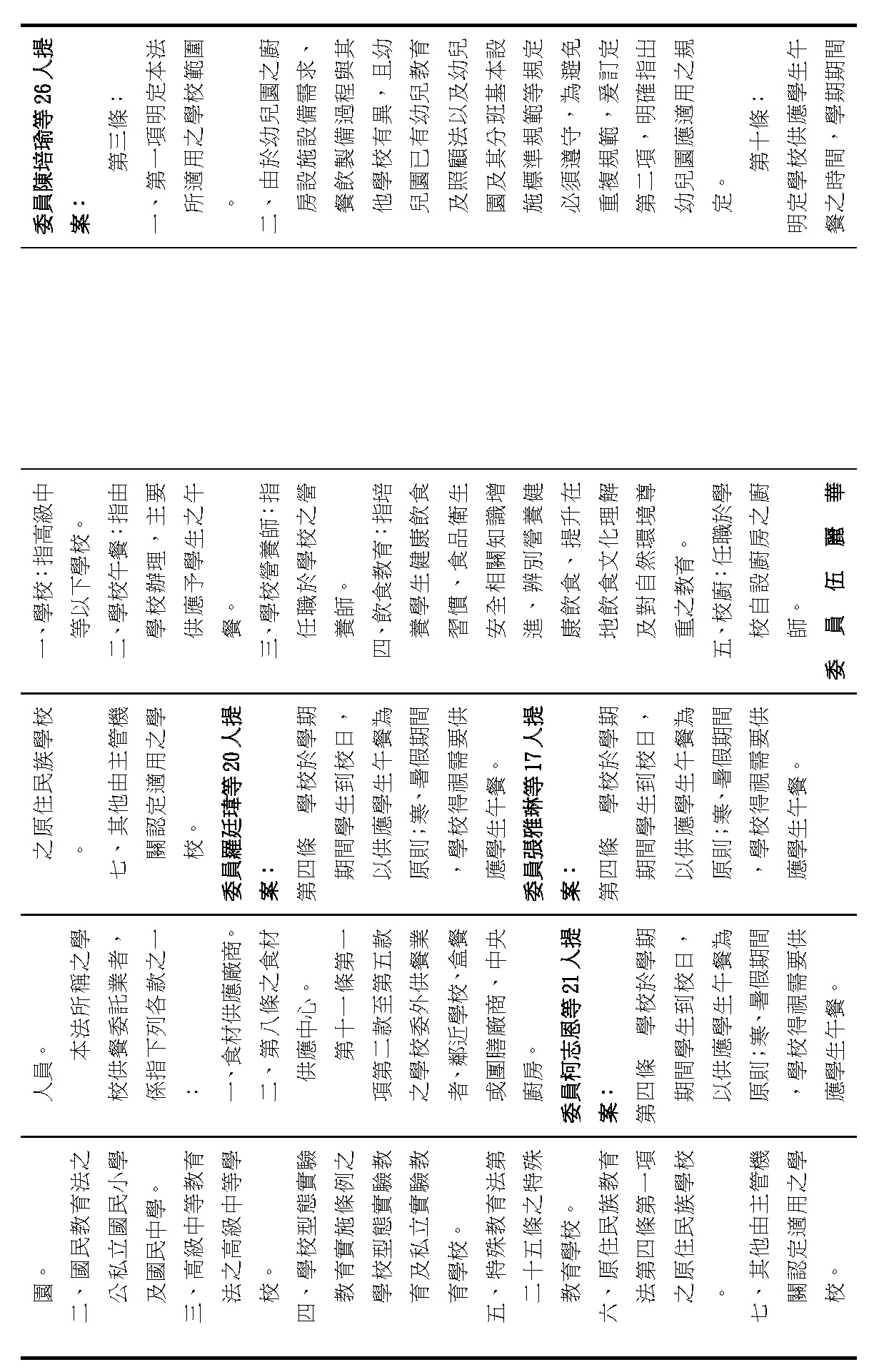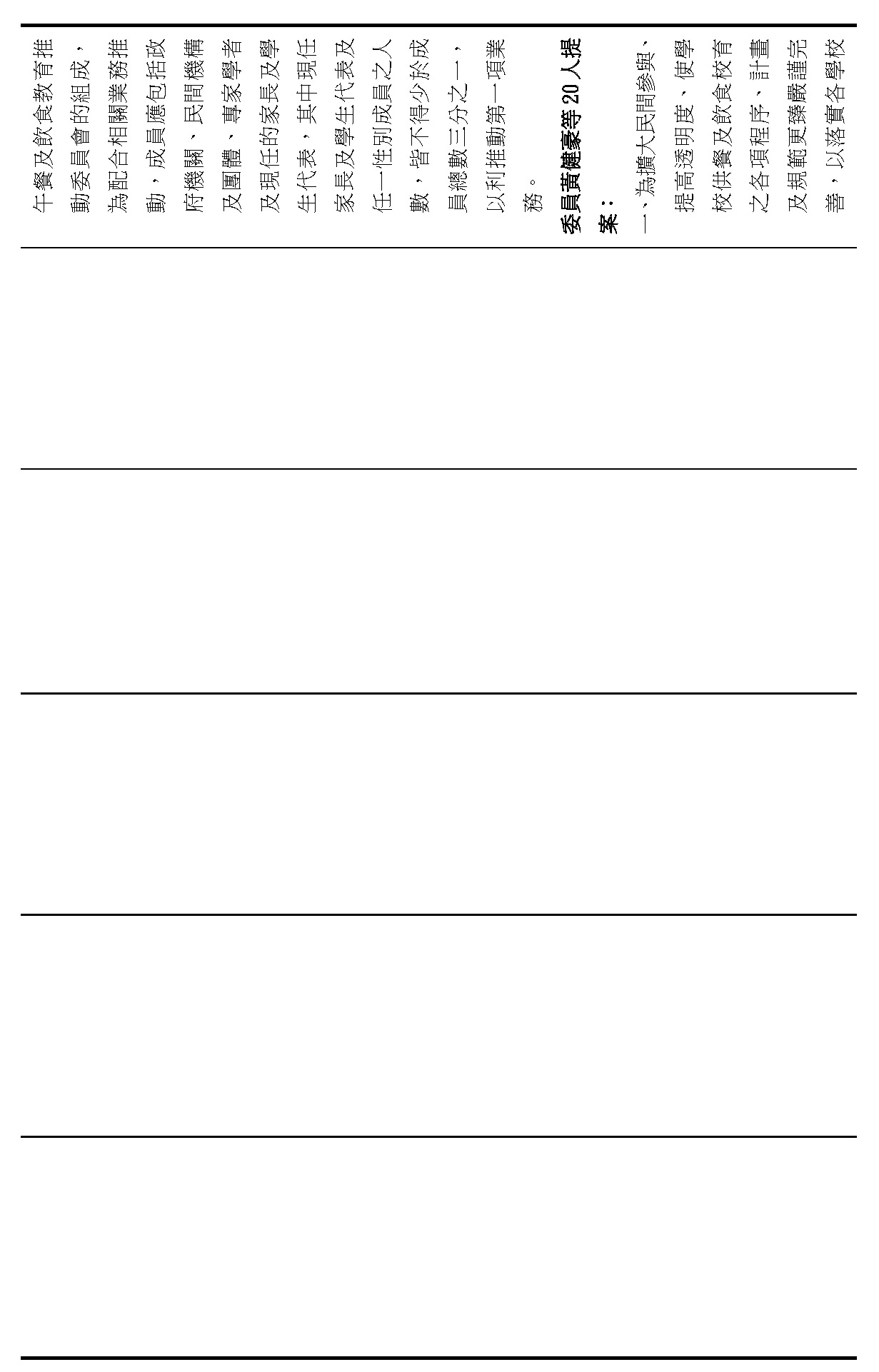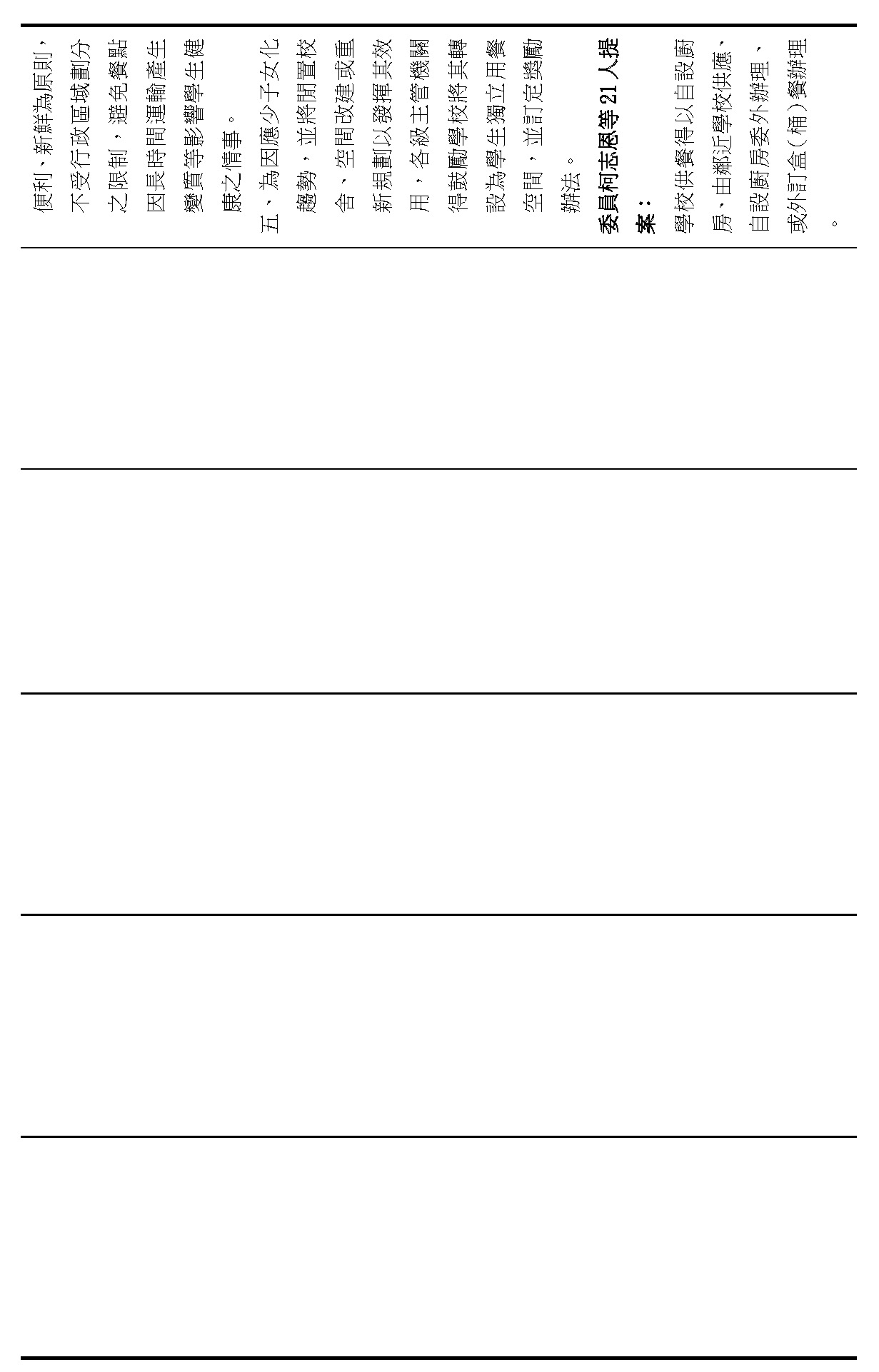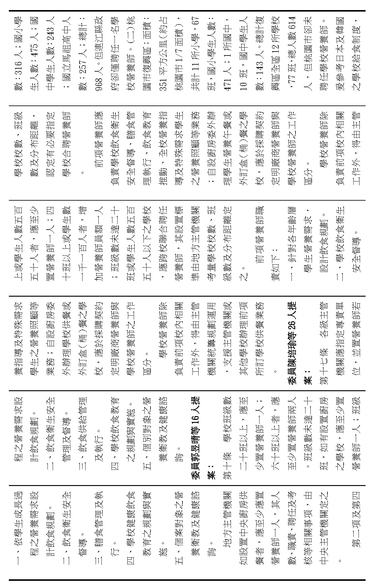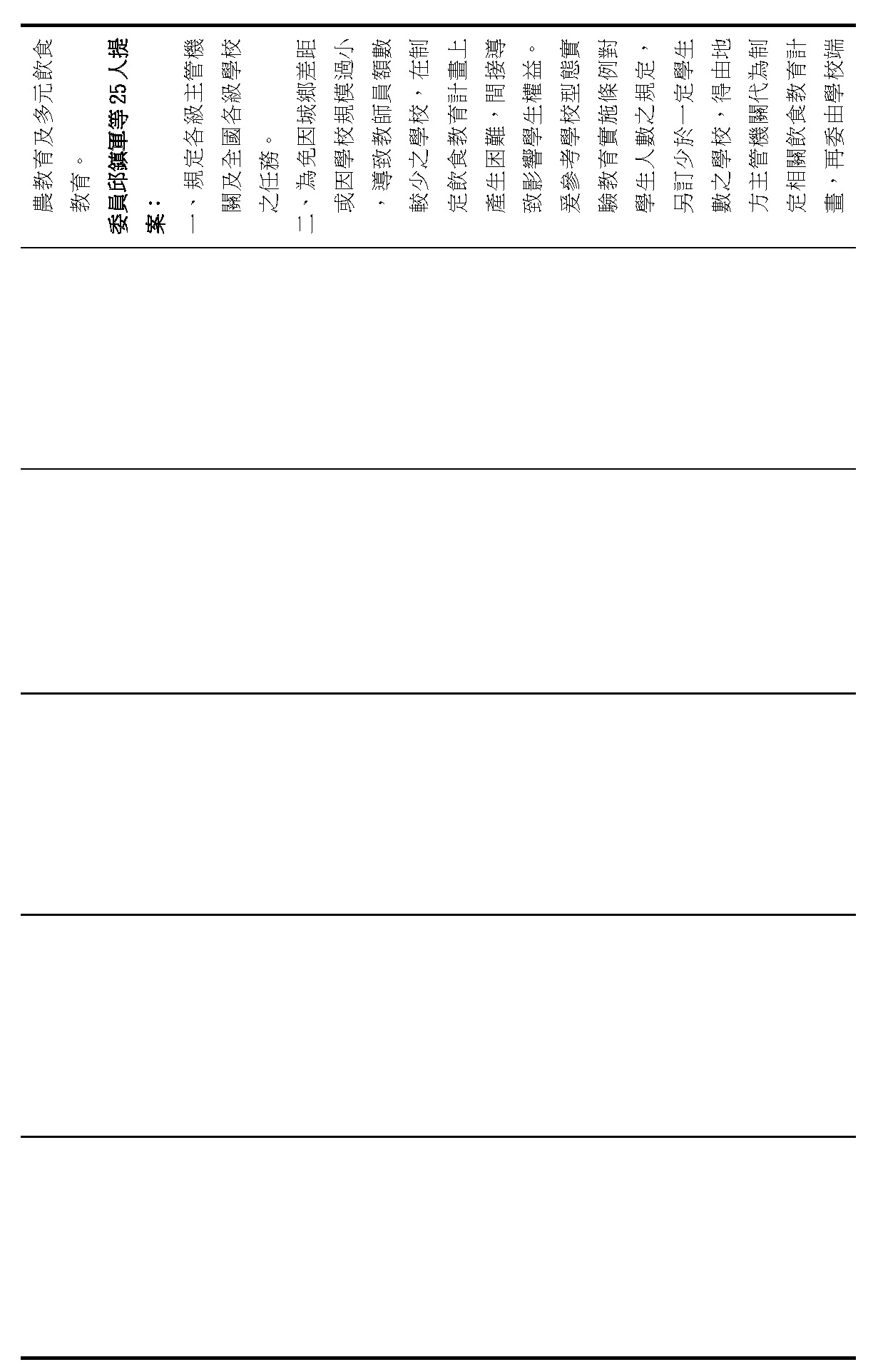 (八)委員林倩綺等21人擬具「學校午餐及營養促進條例草案」案。