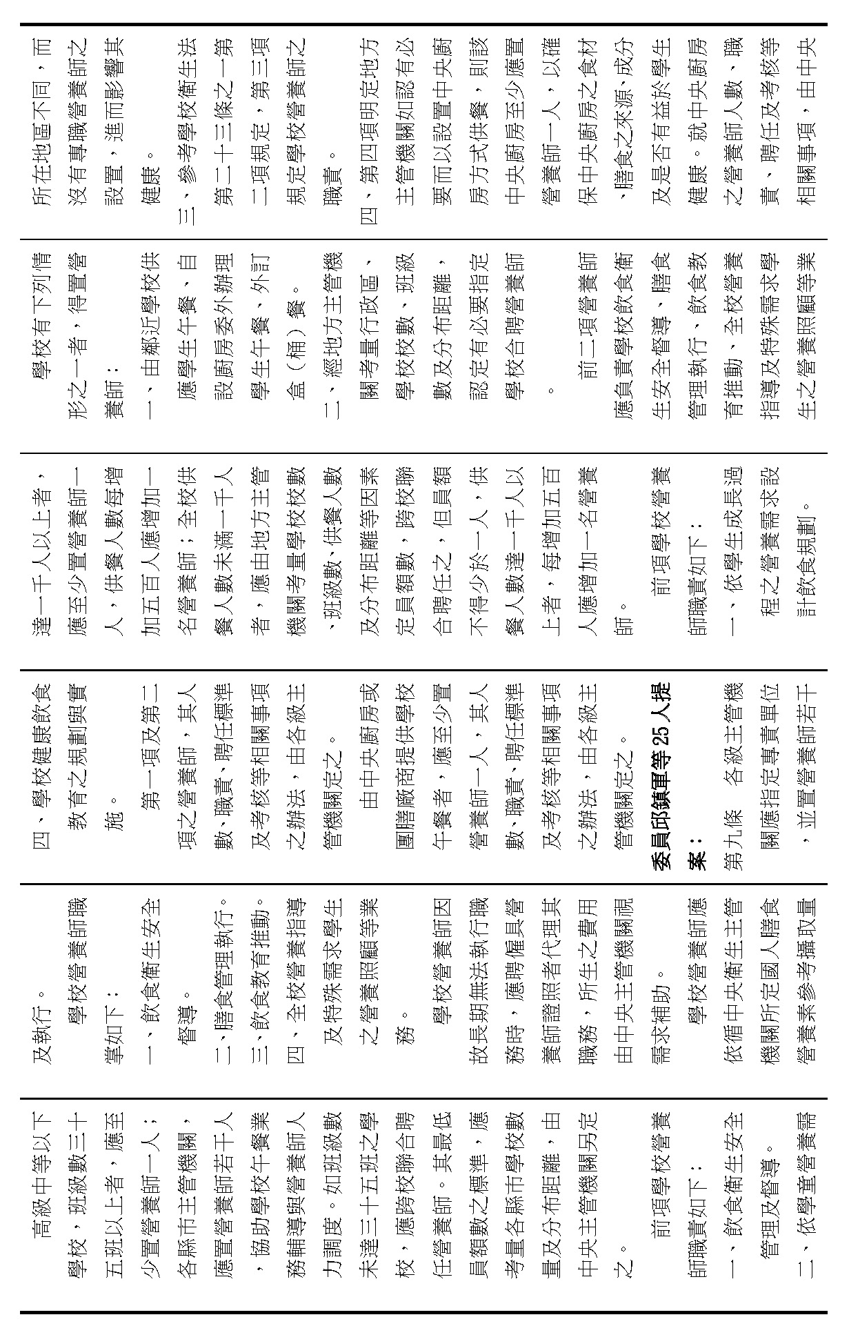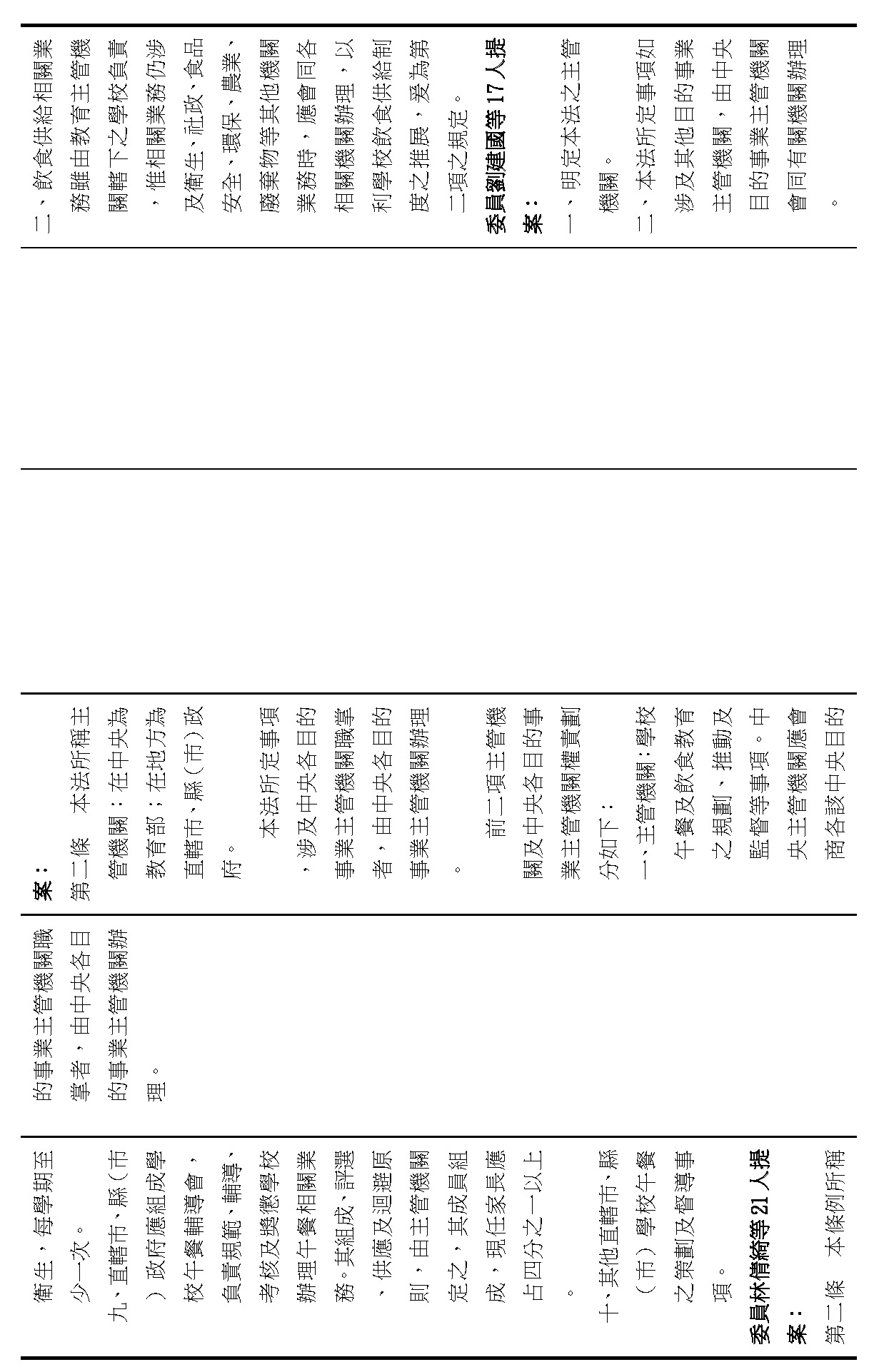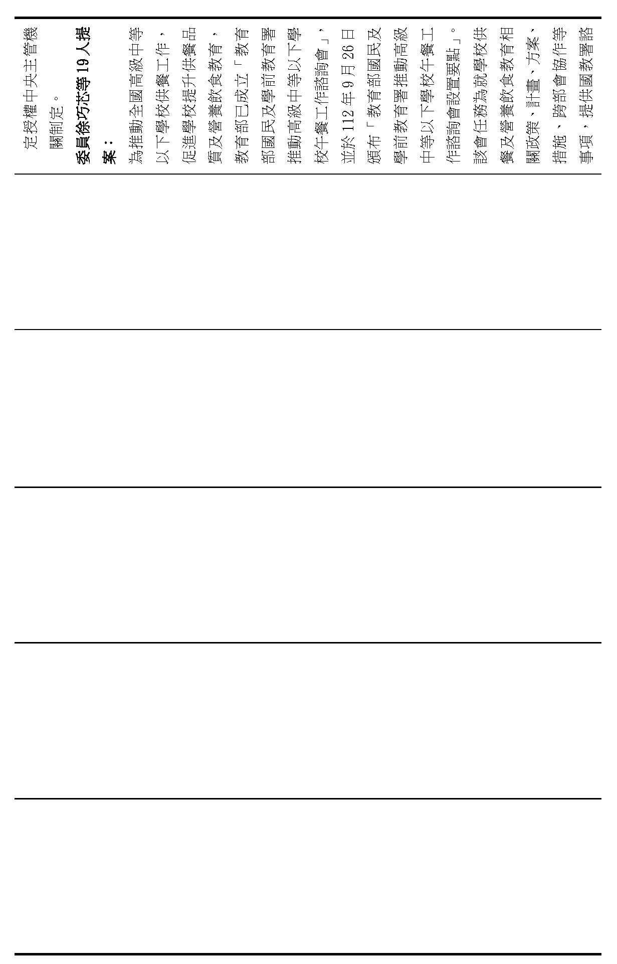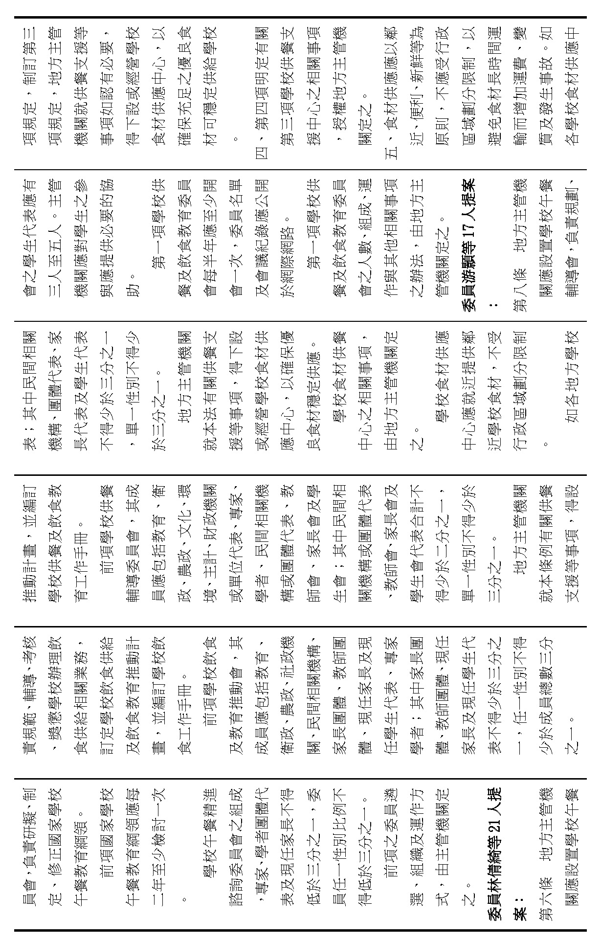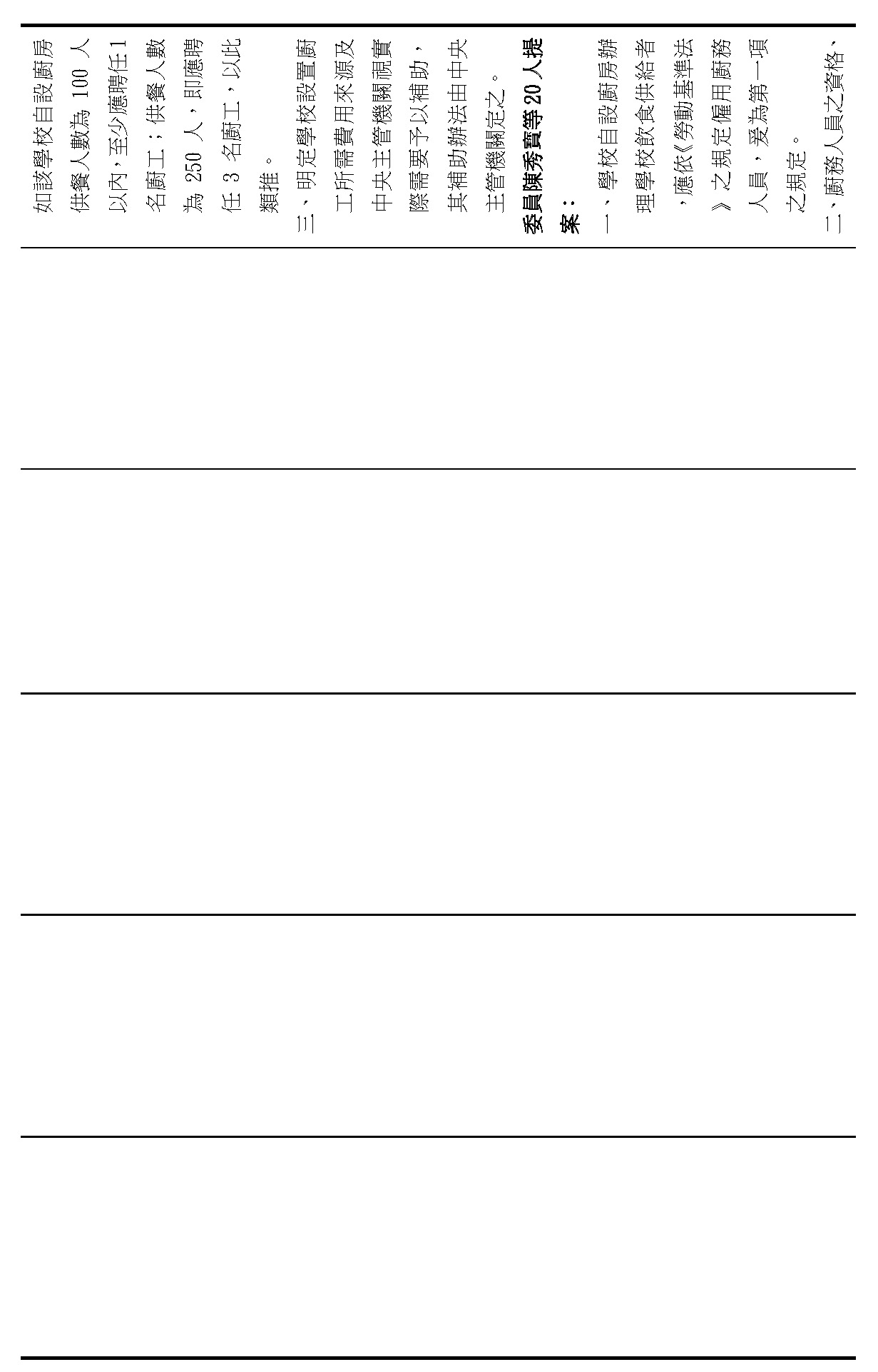 (八)委員林倩綺等21人擬具「學校午餐及營養促進條例草案」案。