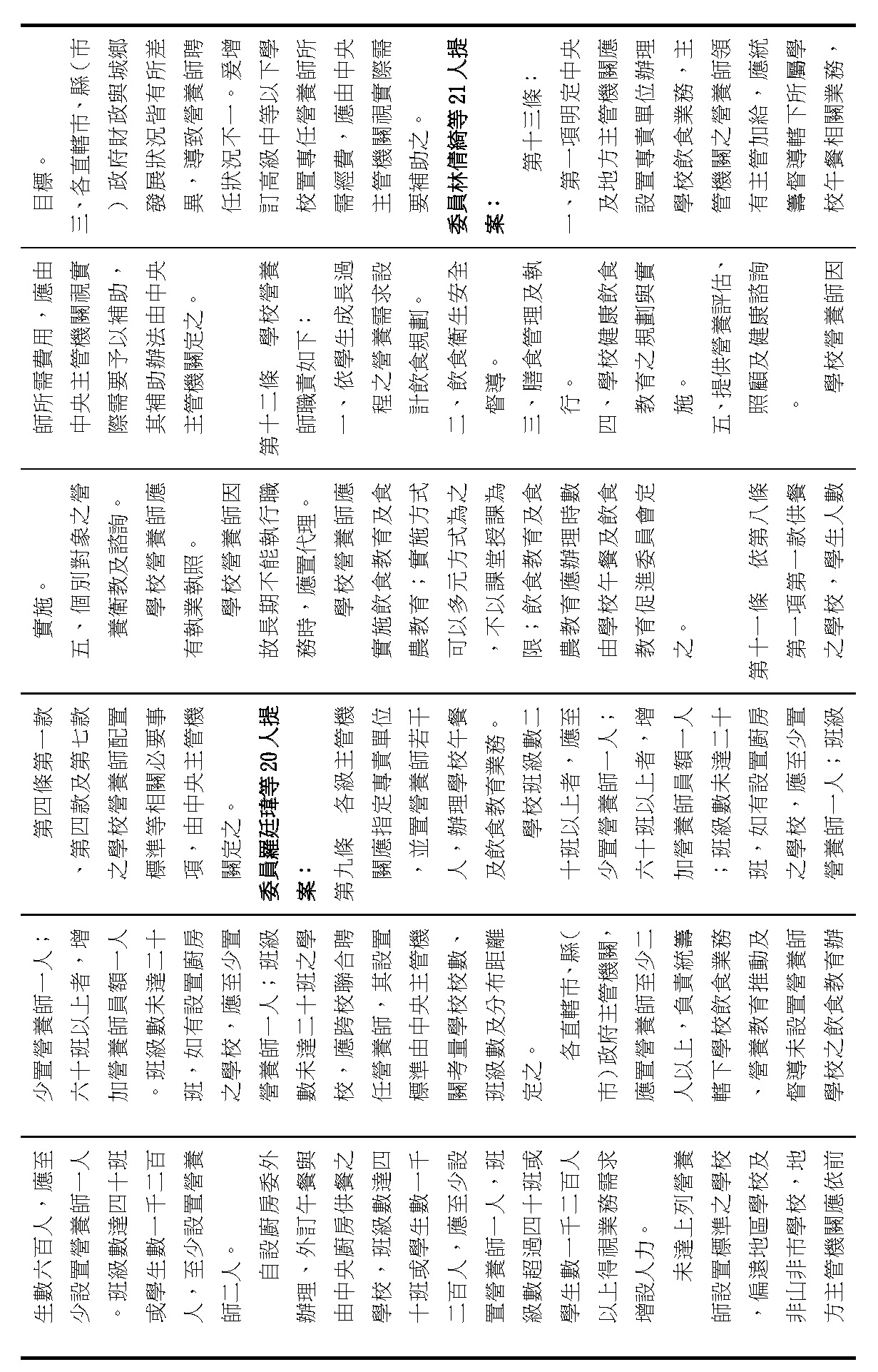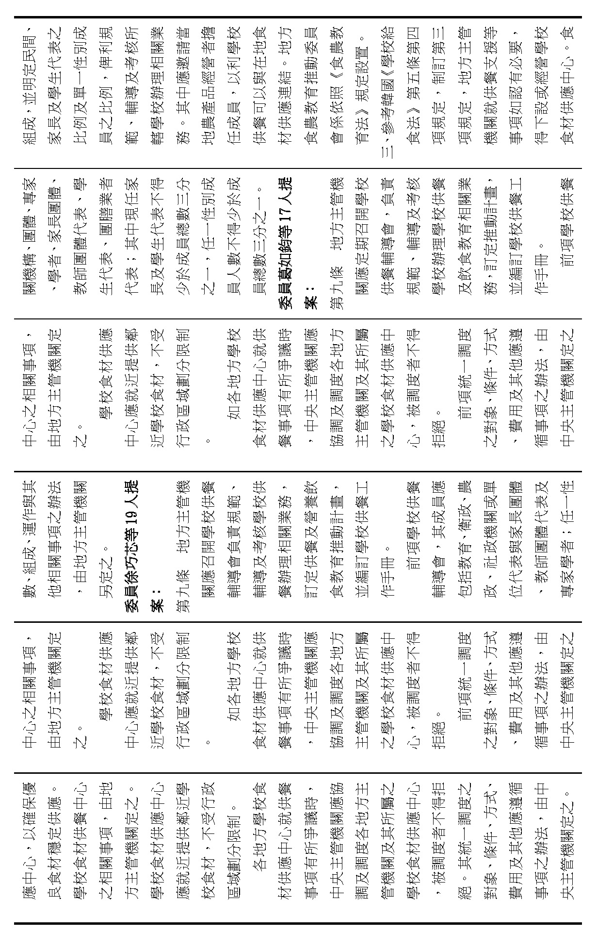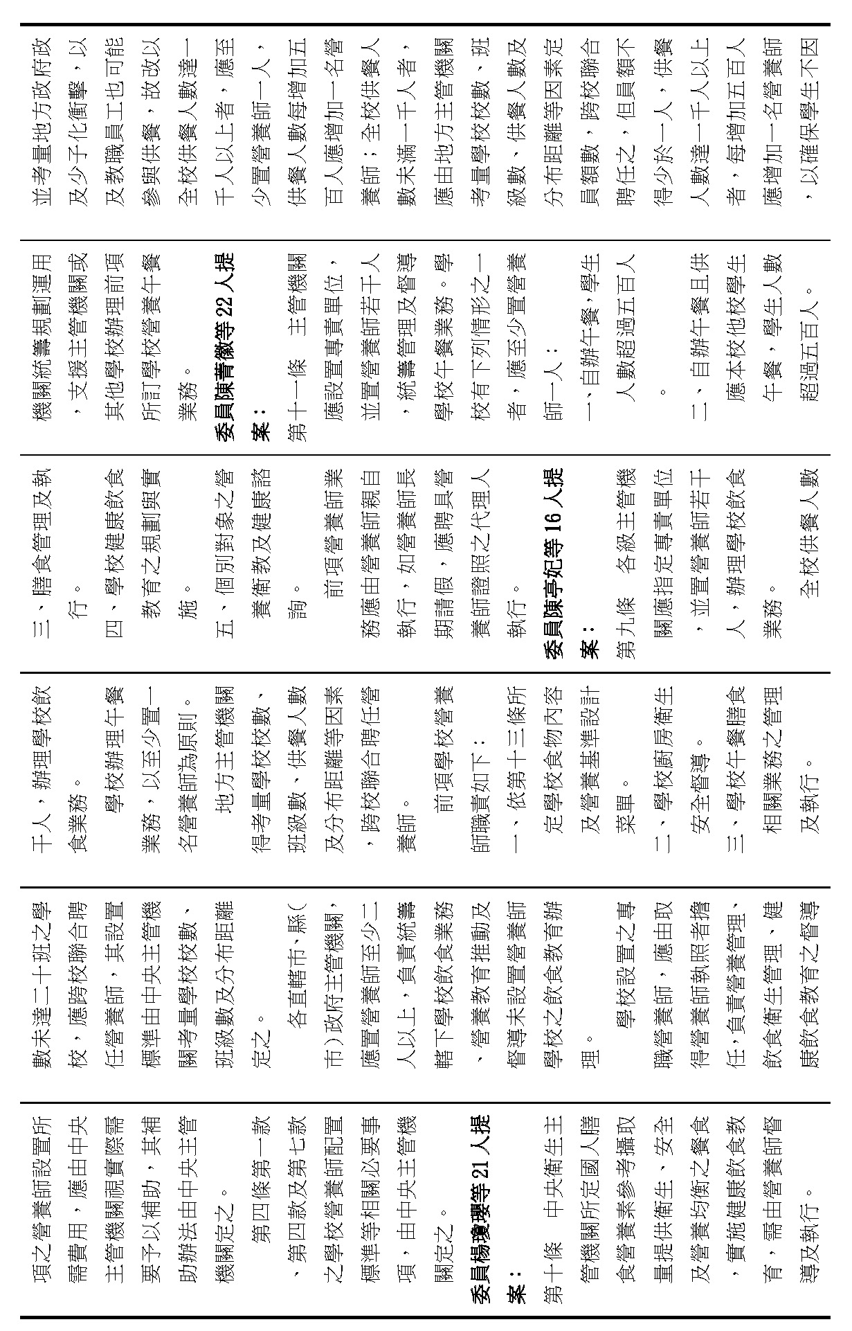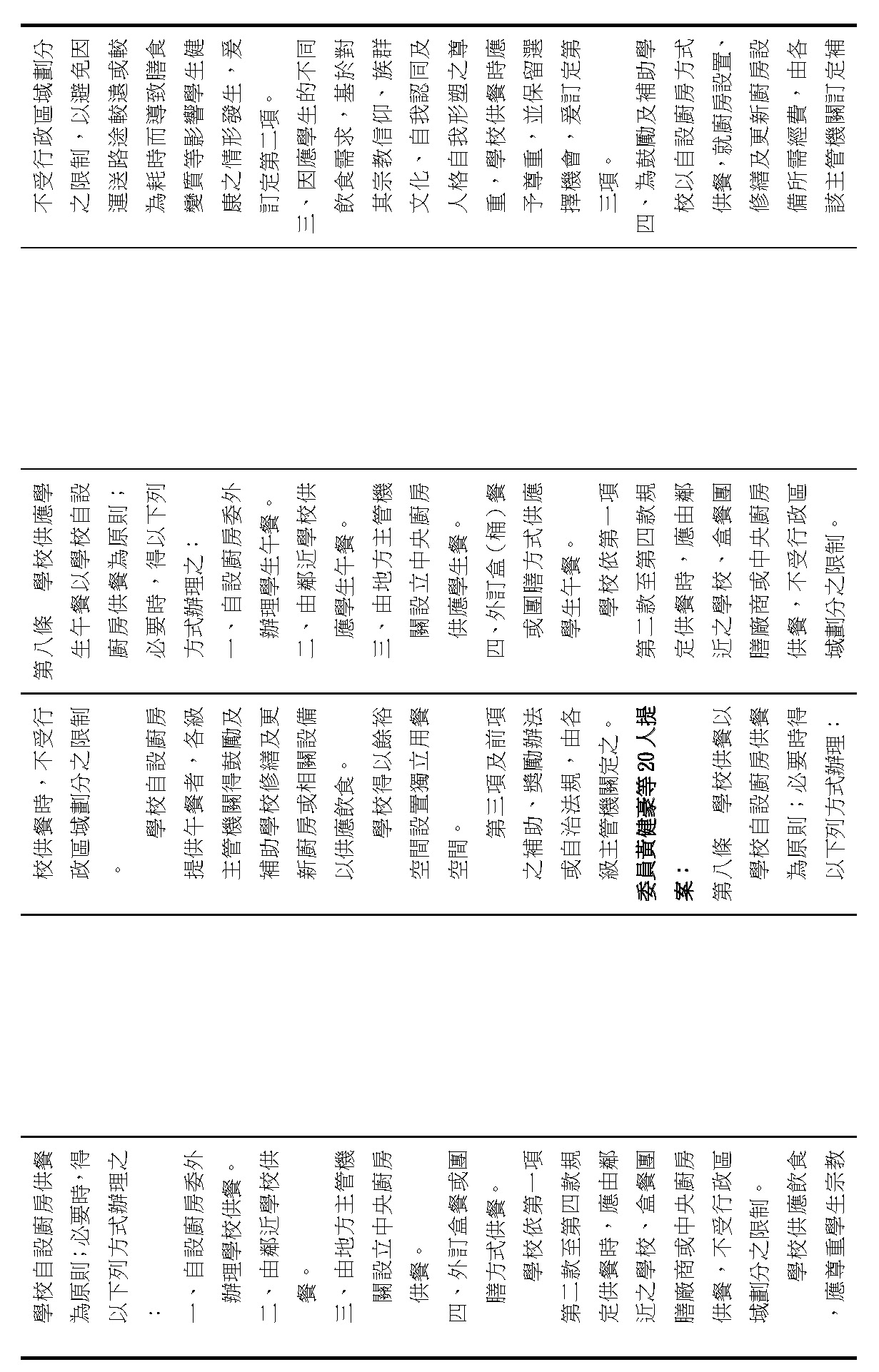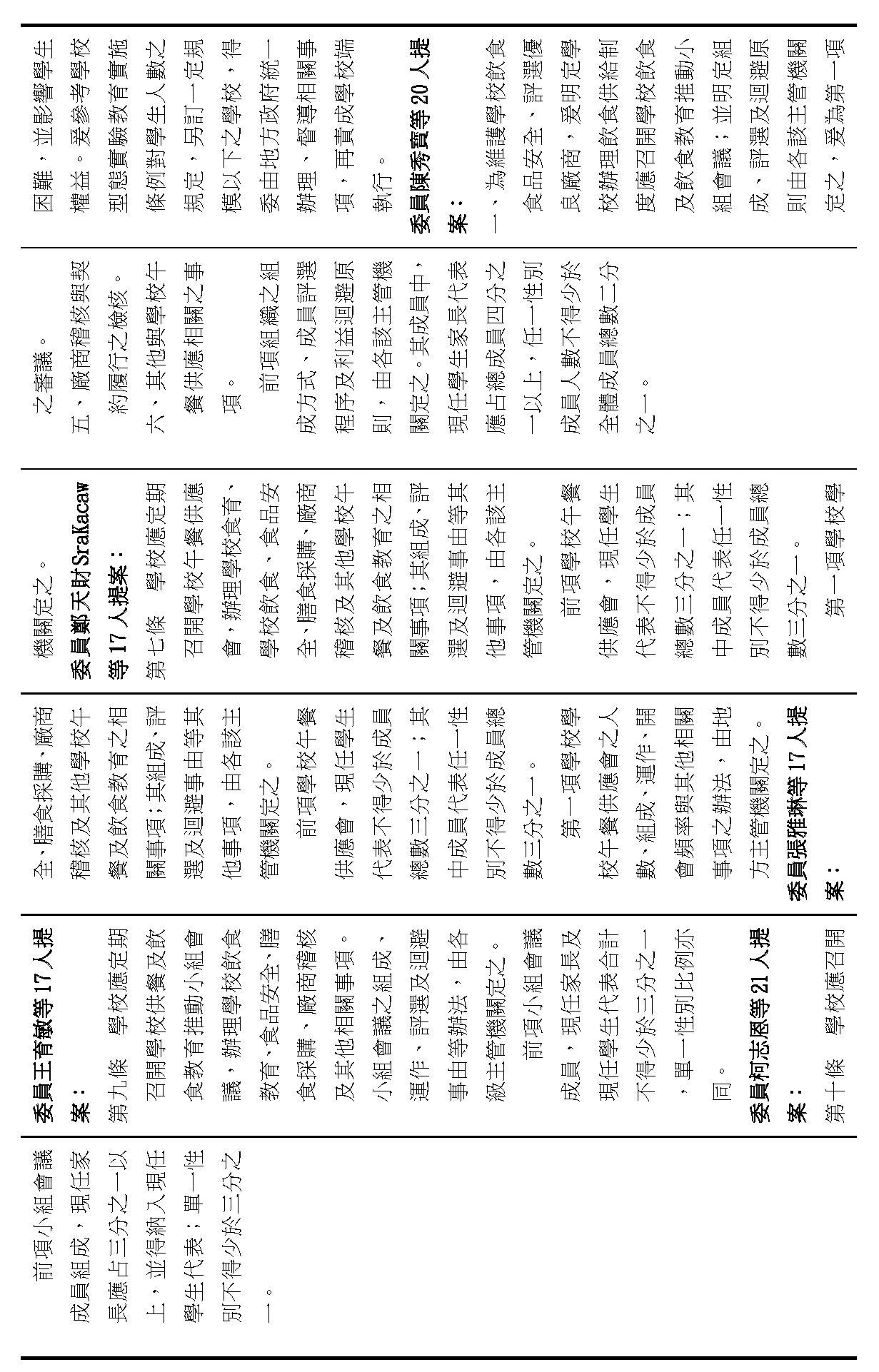(八)委員林倩綺等21人擬具「學校午餐及營養促進條例草案」案。