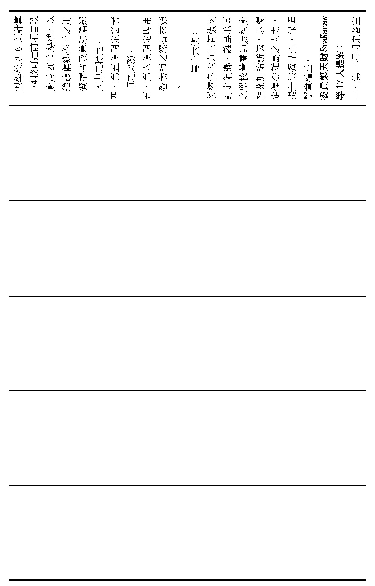 (九)委員鍾佳濱等17人擬具「學校午餐法草案」案。