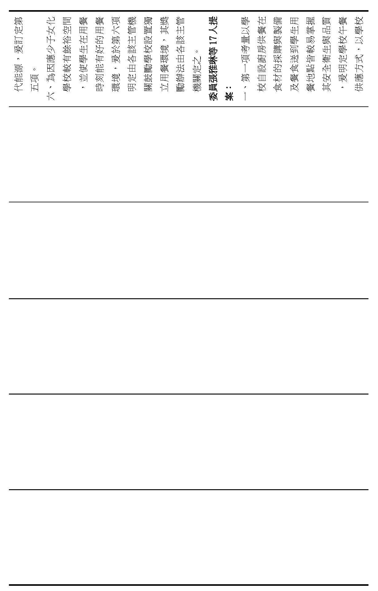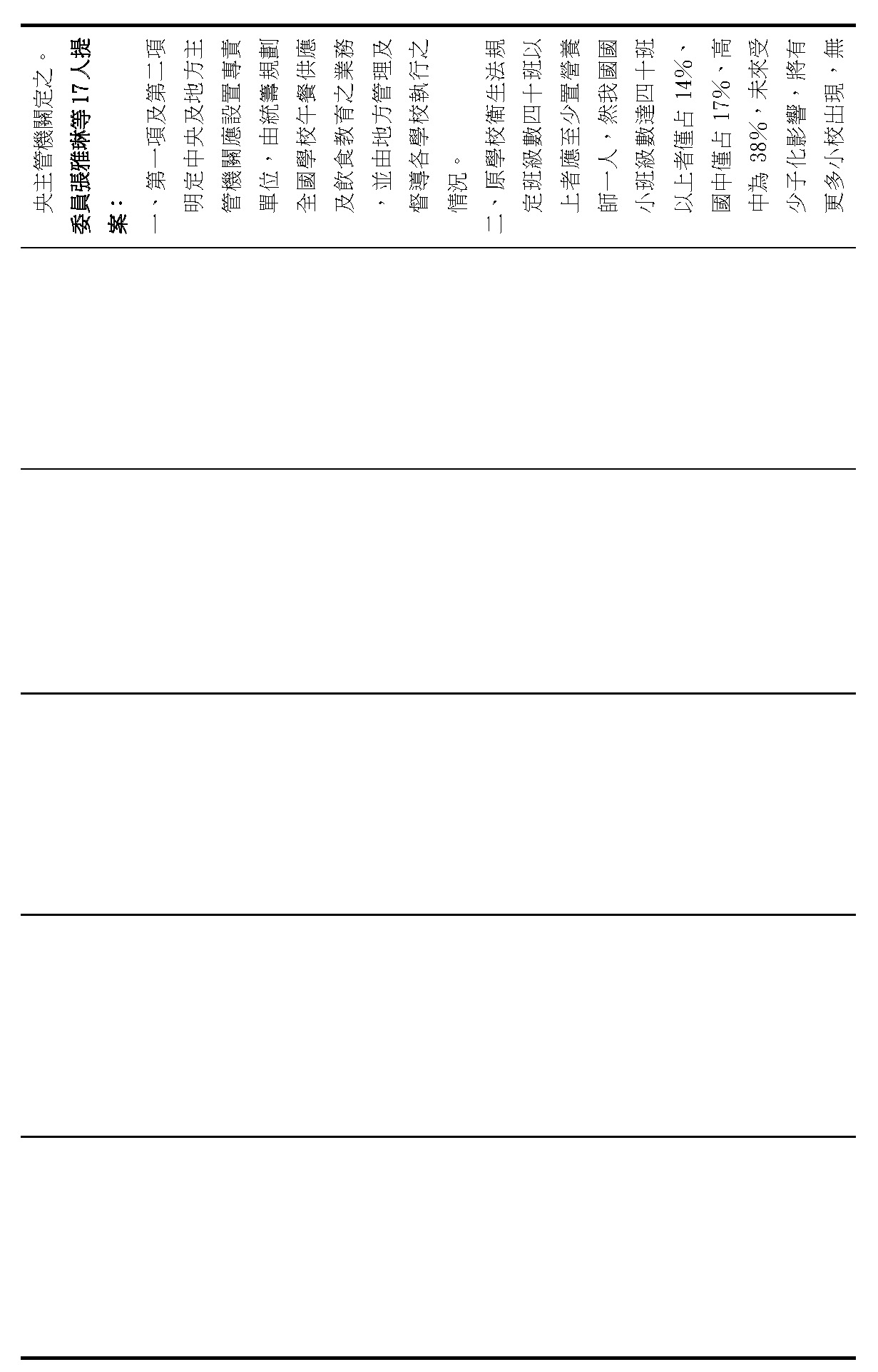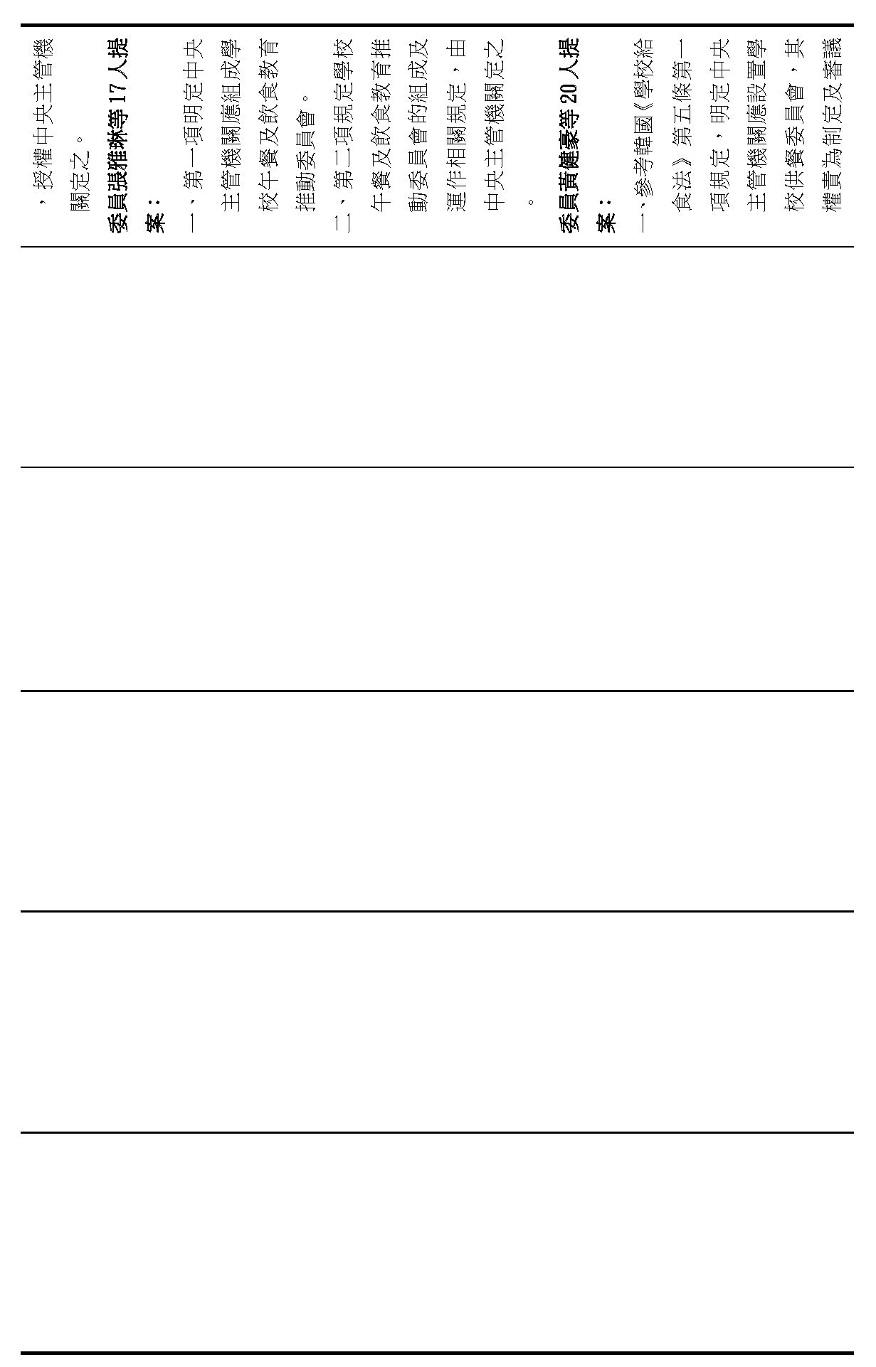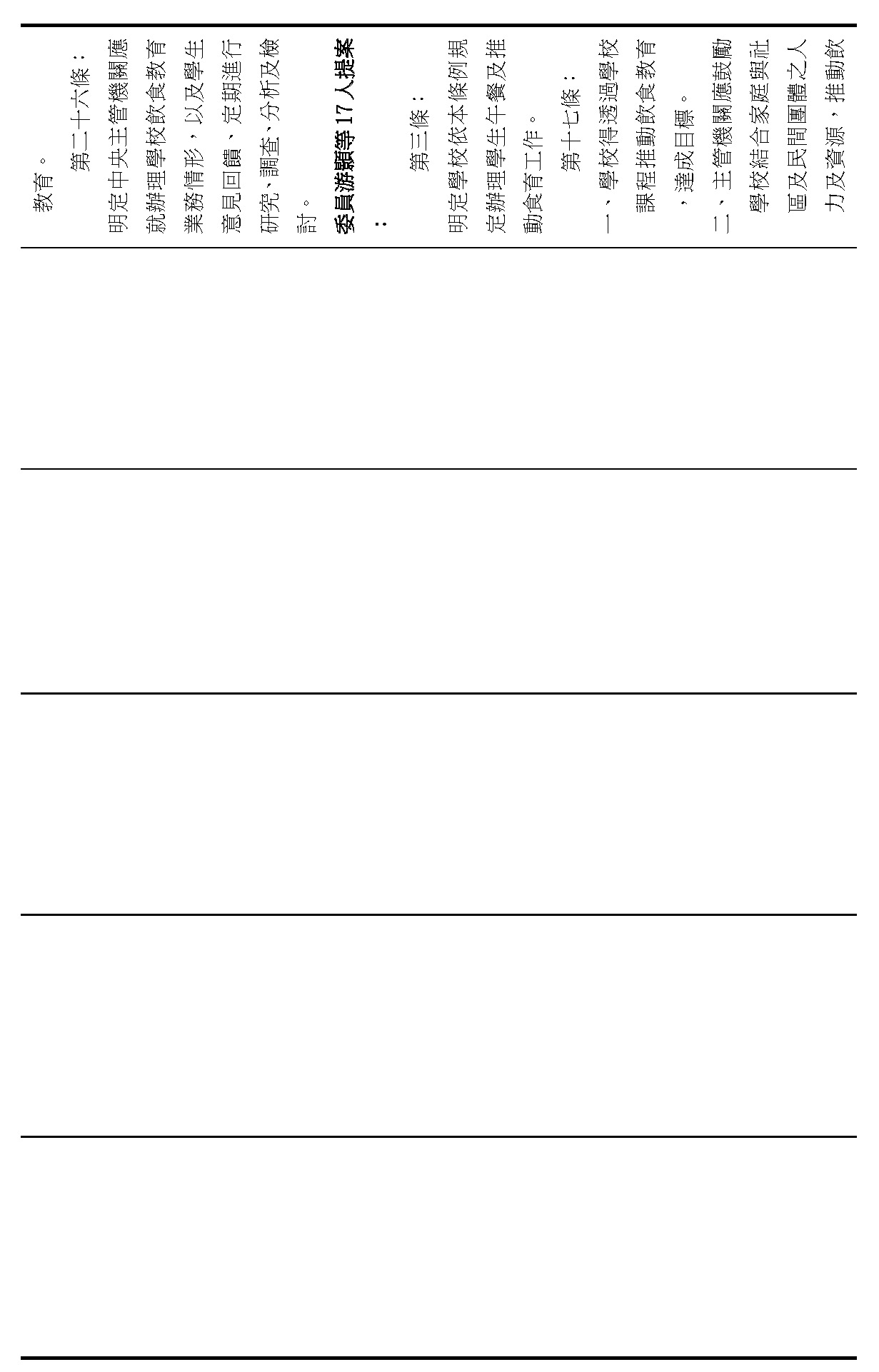 (十一)委員張雅琳等17人擬具「學校午餐及飲食教育法草案」案。