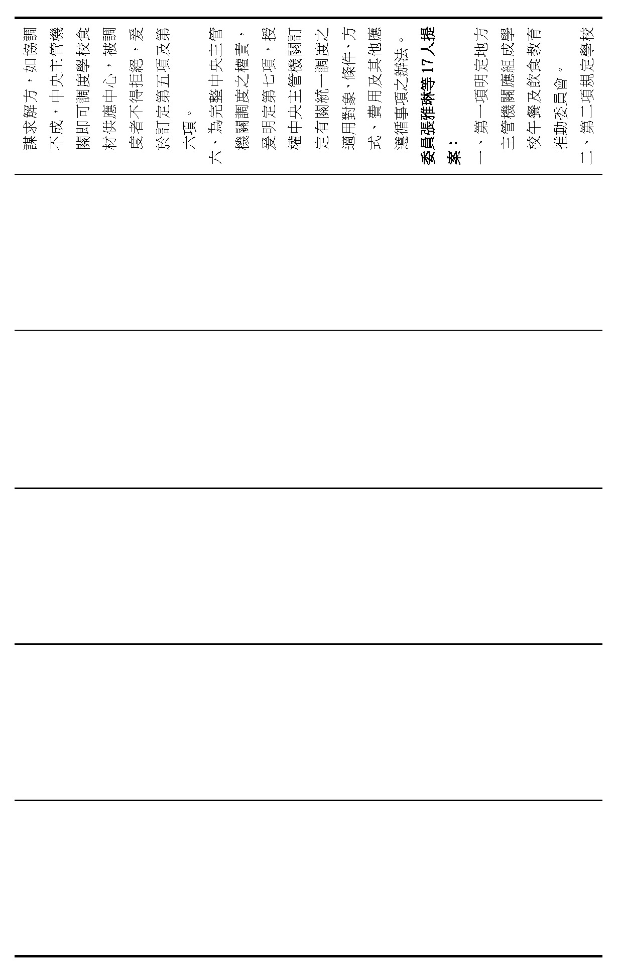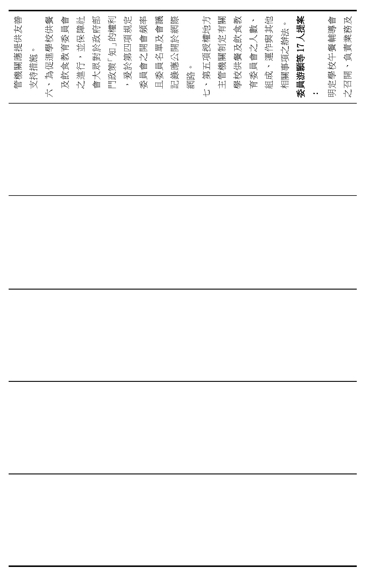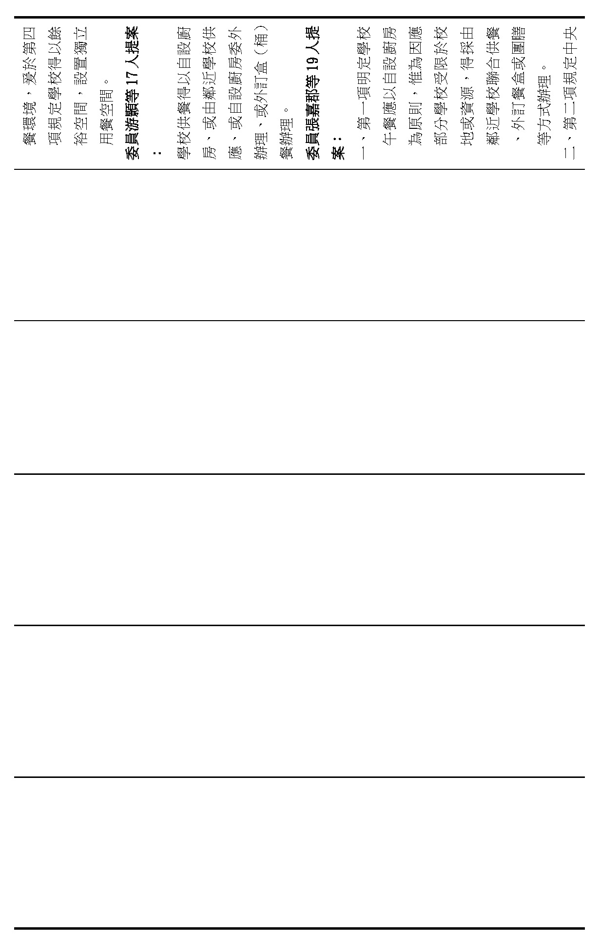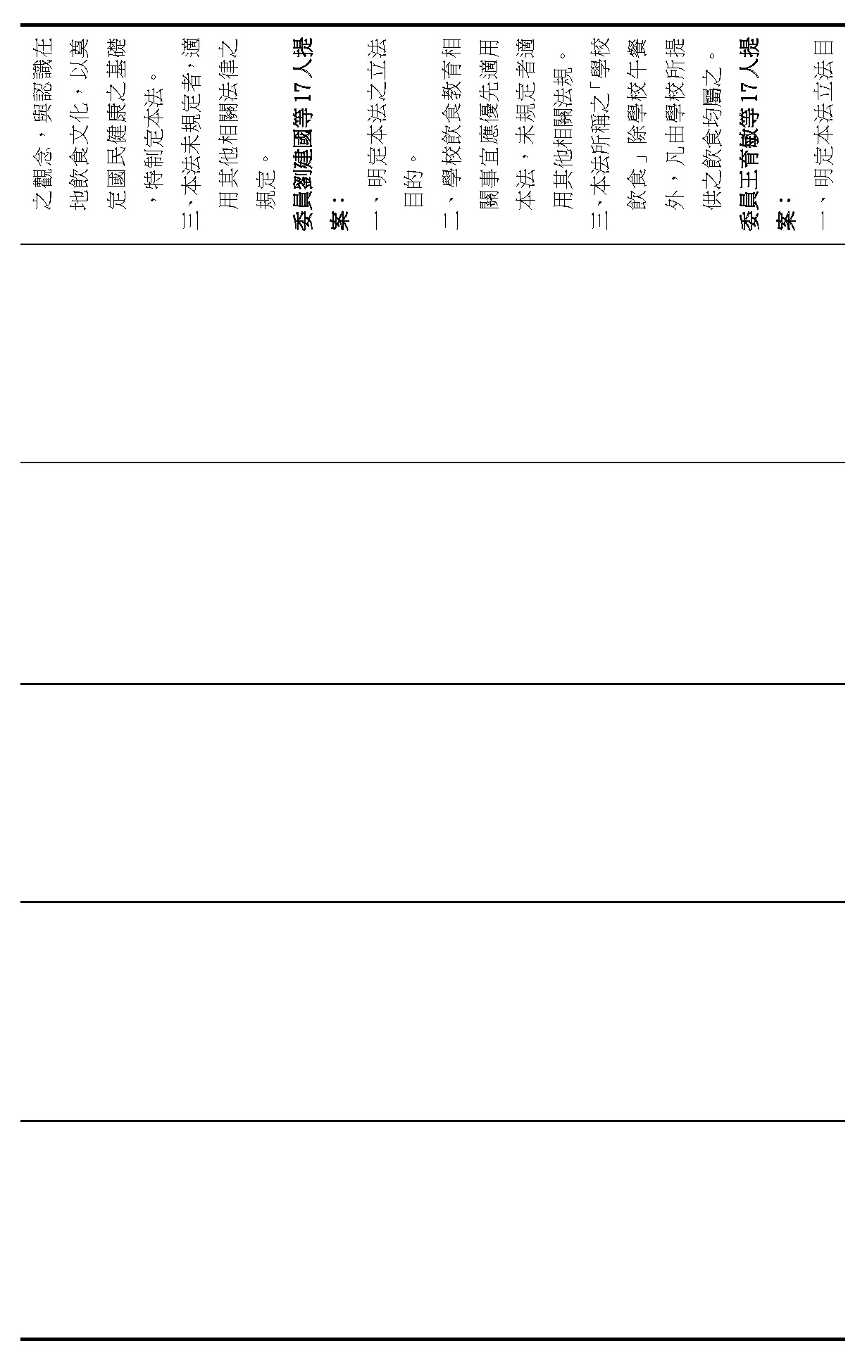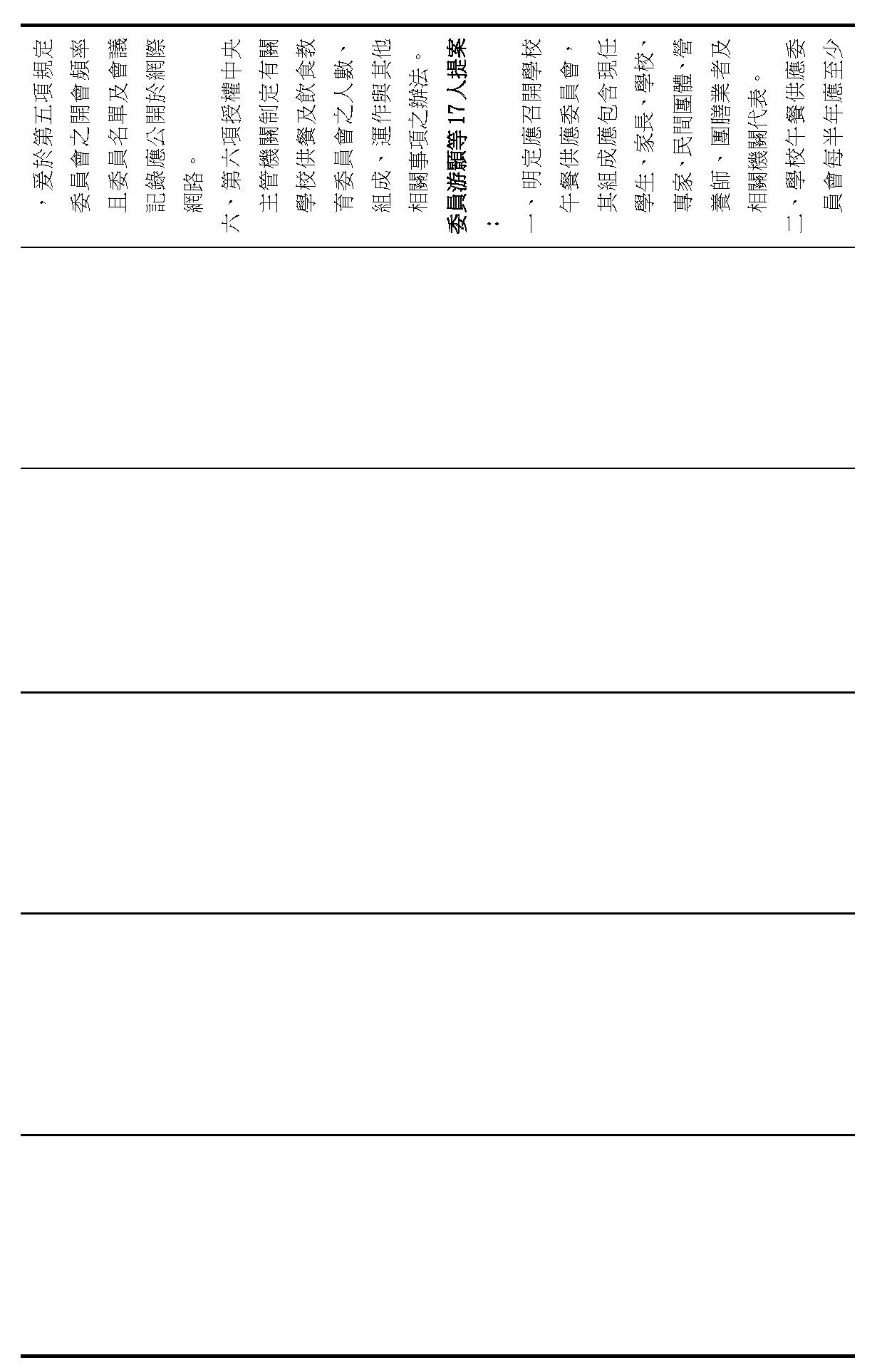 (十一)委員張雅琳等17人擬具「學校午餐及飲食教育法草案」案。