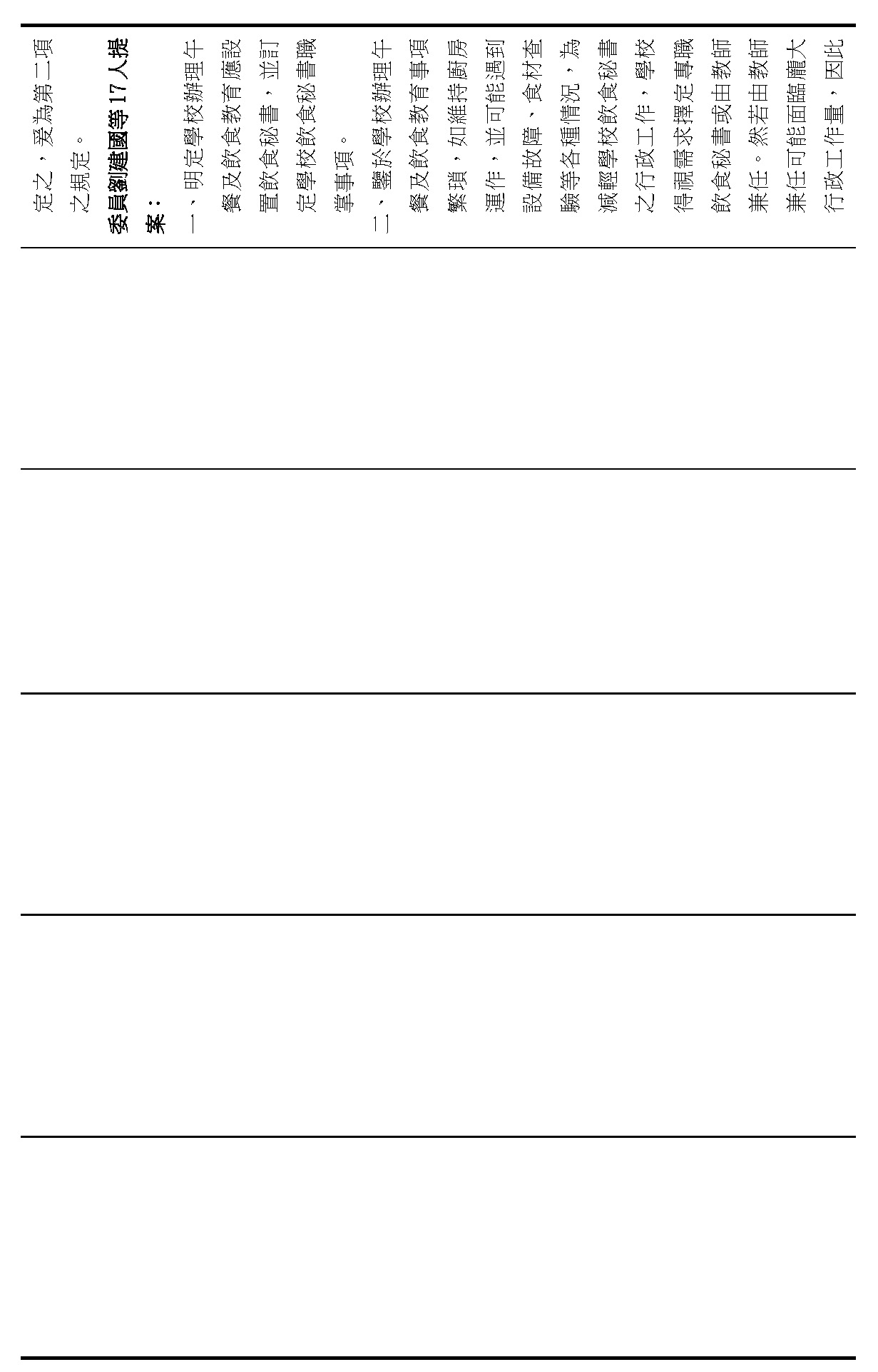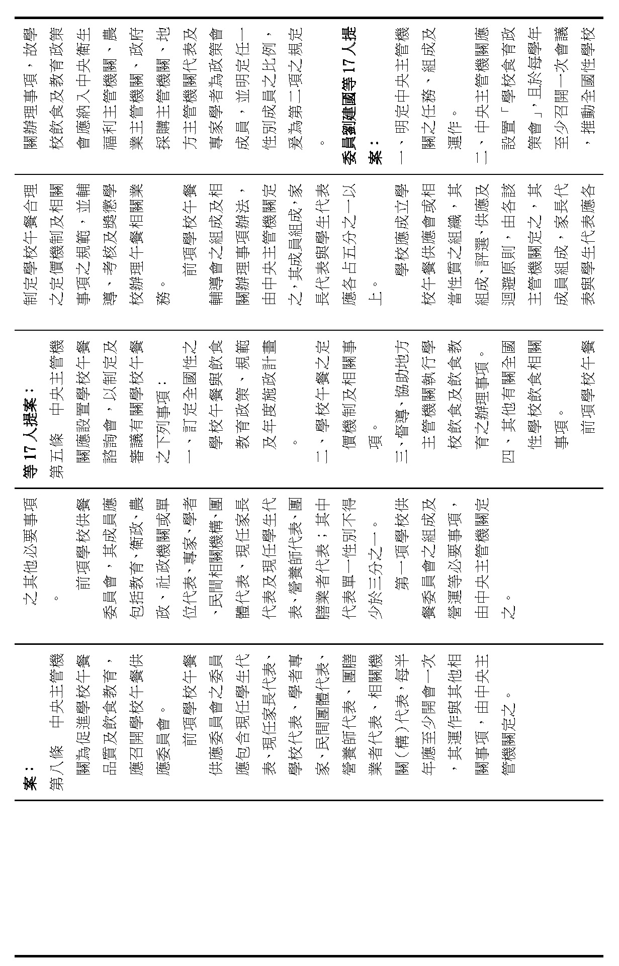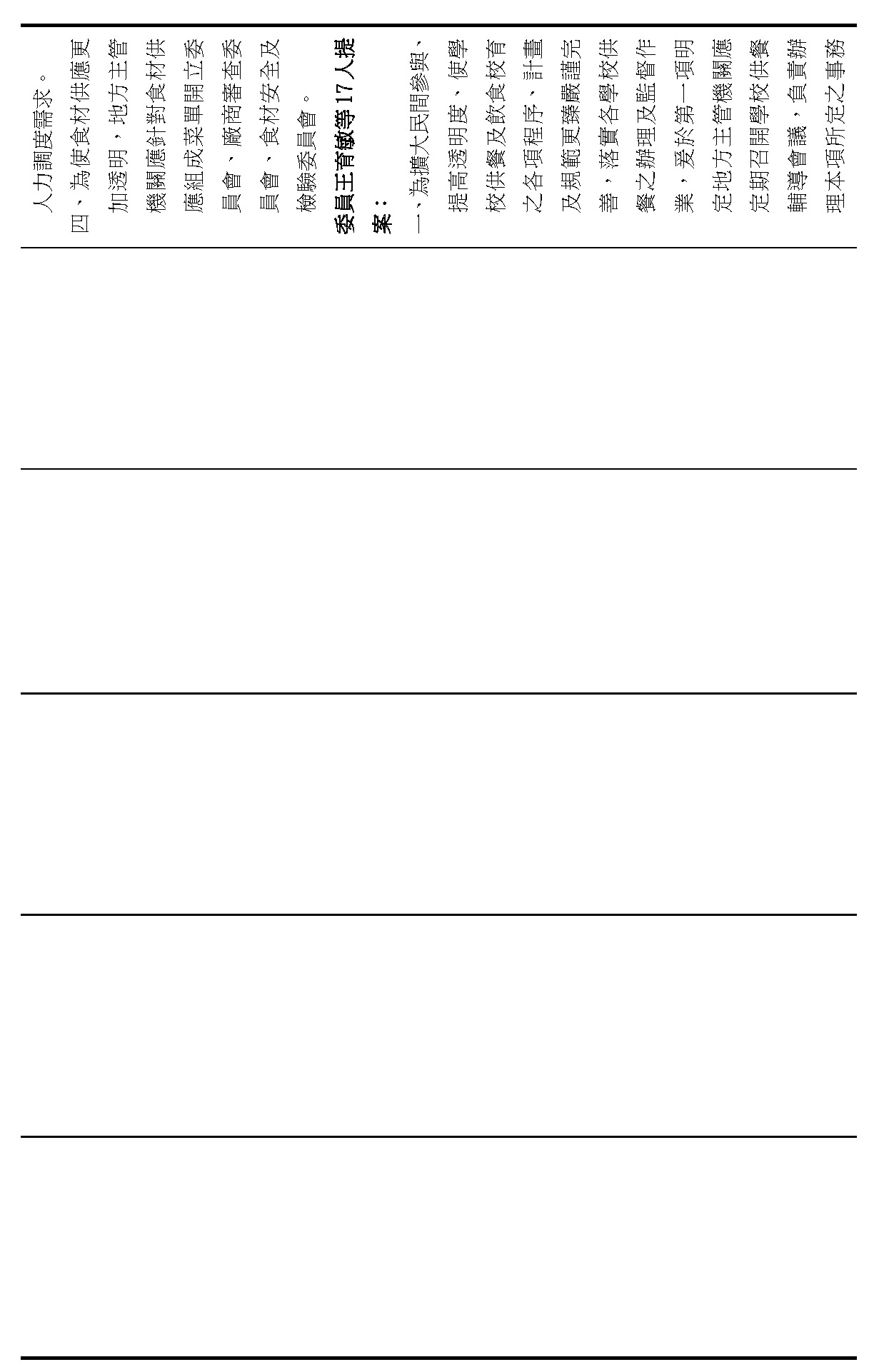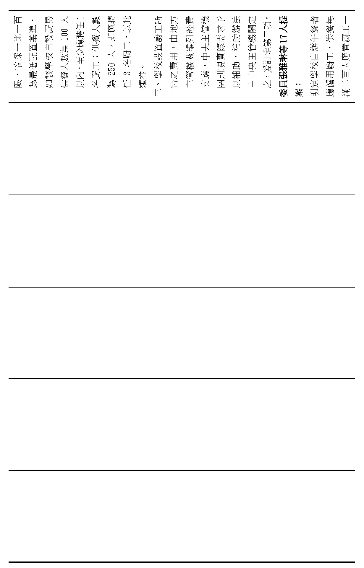 (十一)委員張雅琳等17人擬具「學校午餐及飲食教育法草案」案。